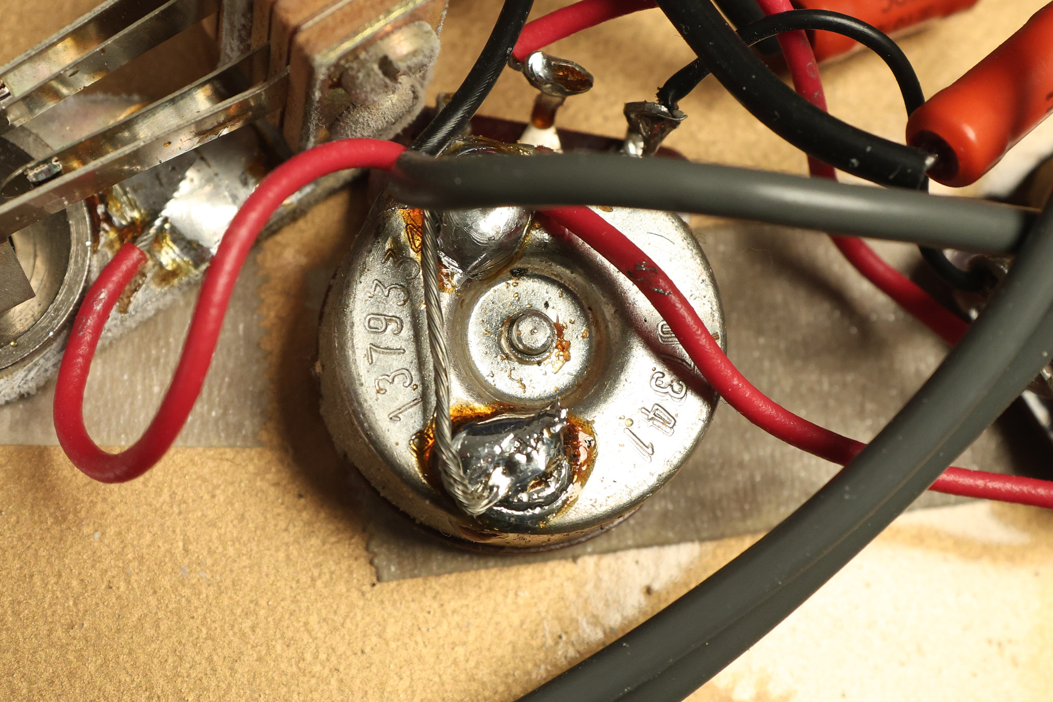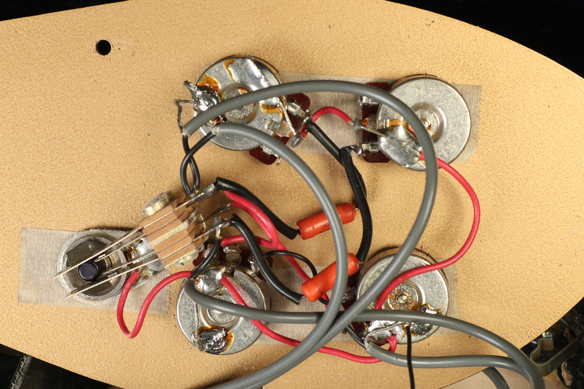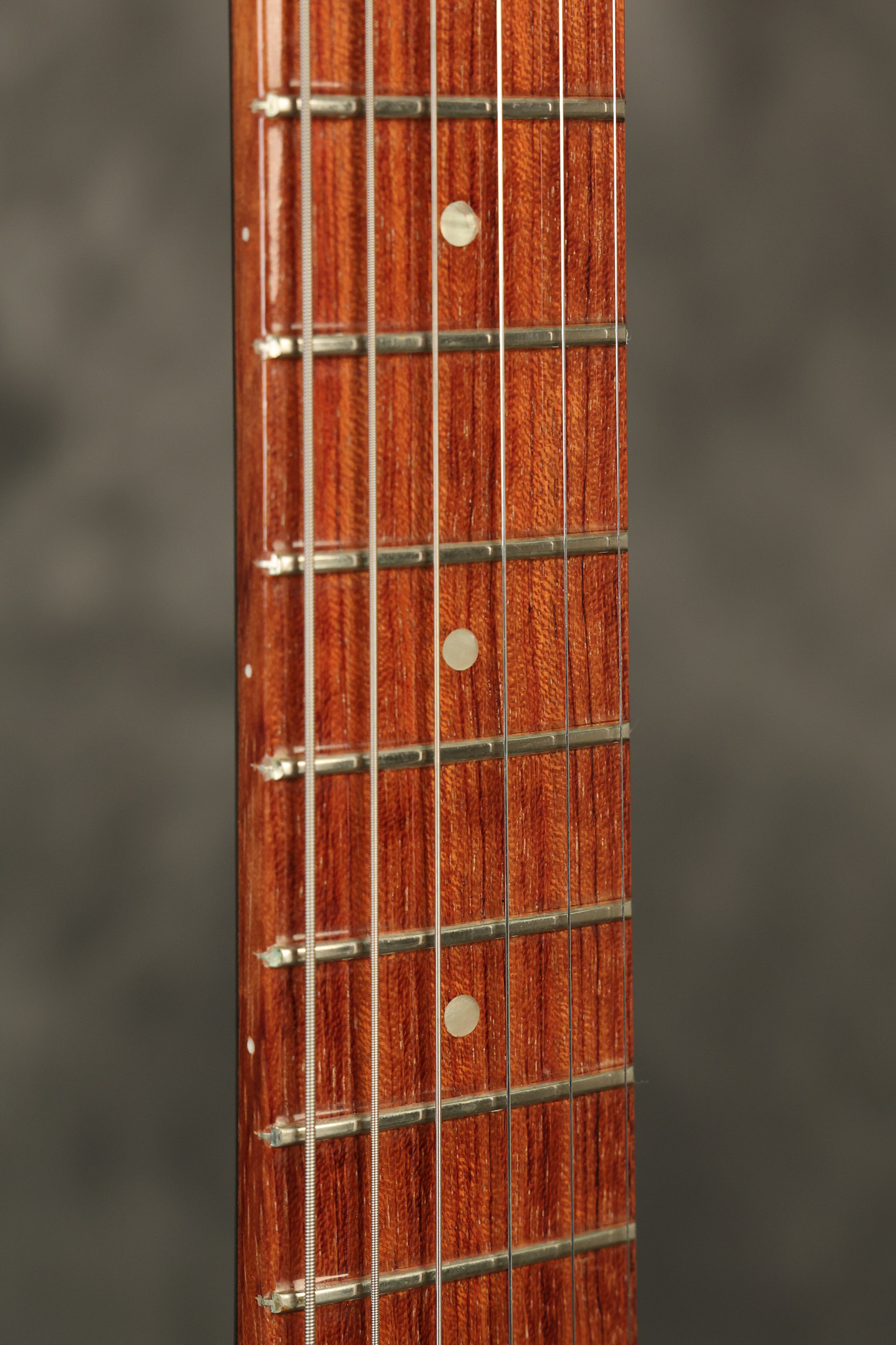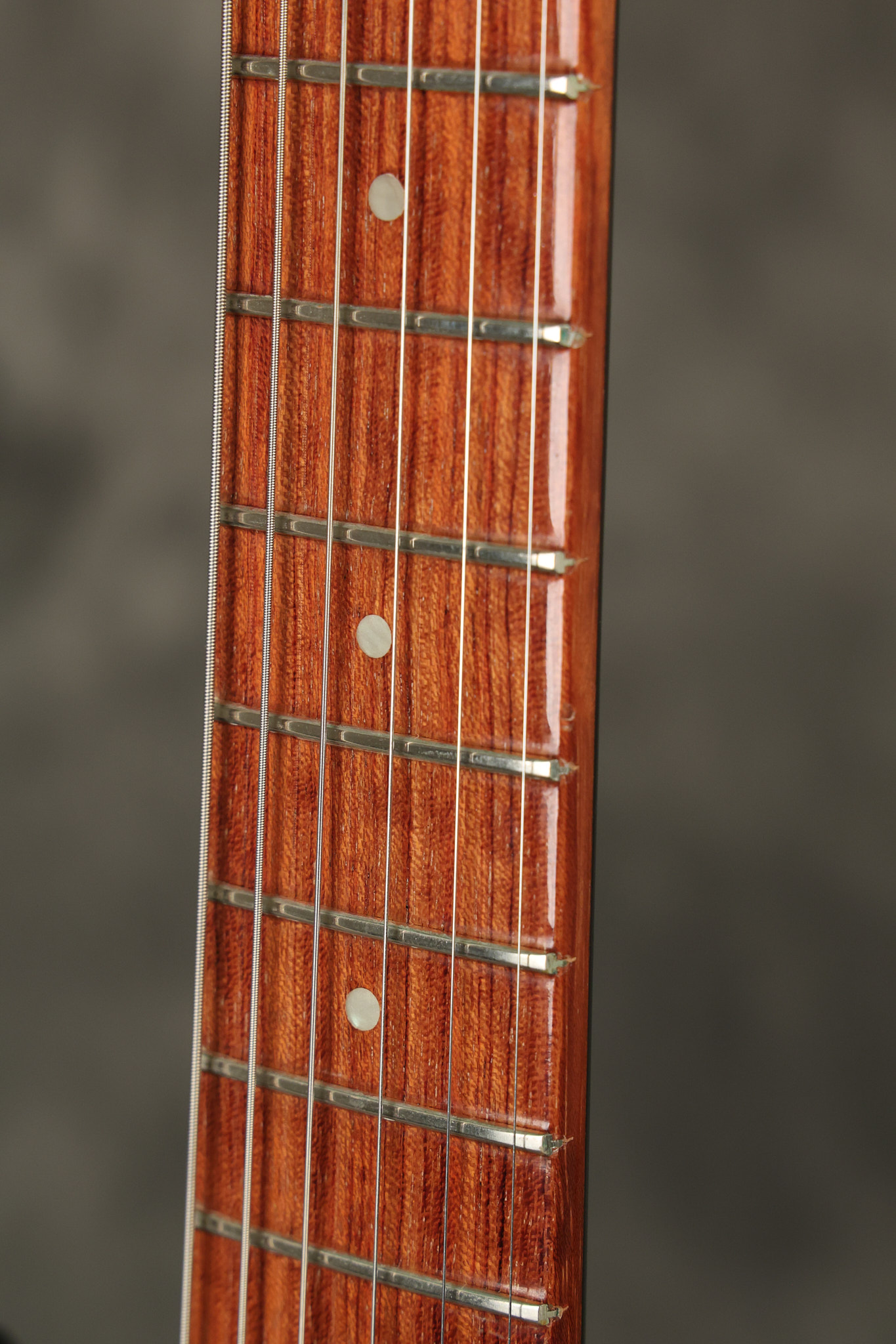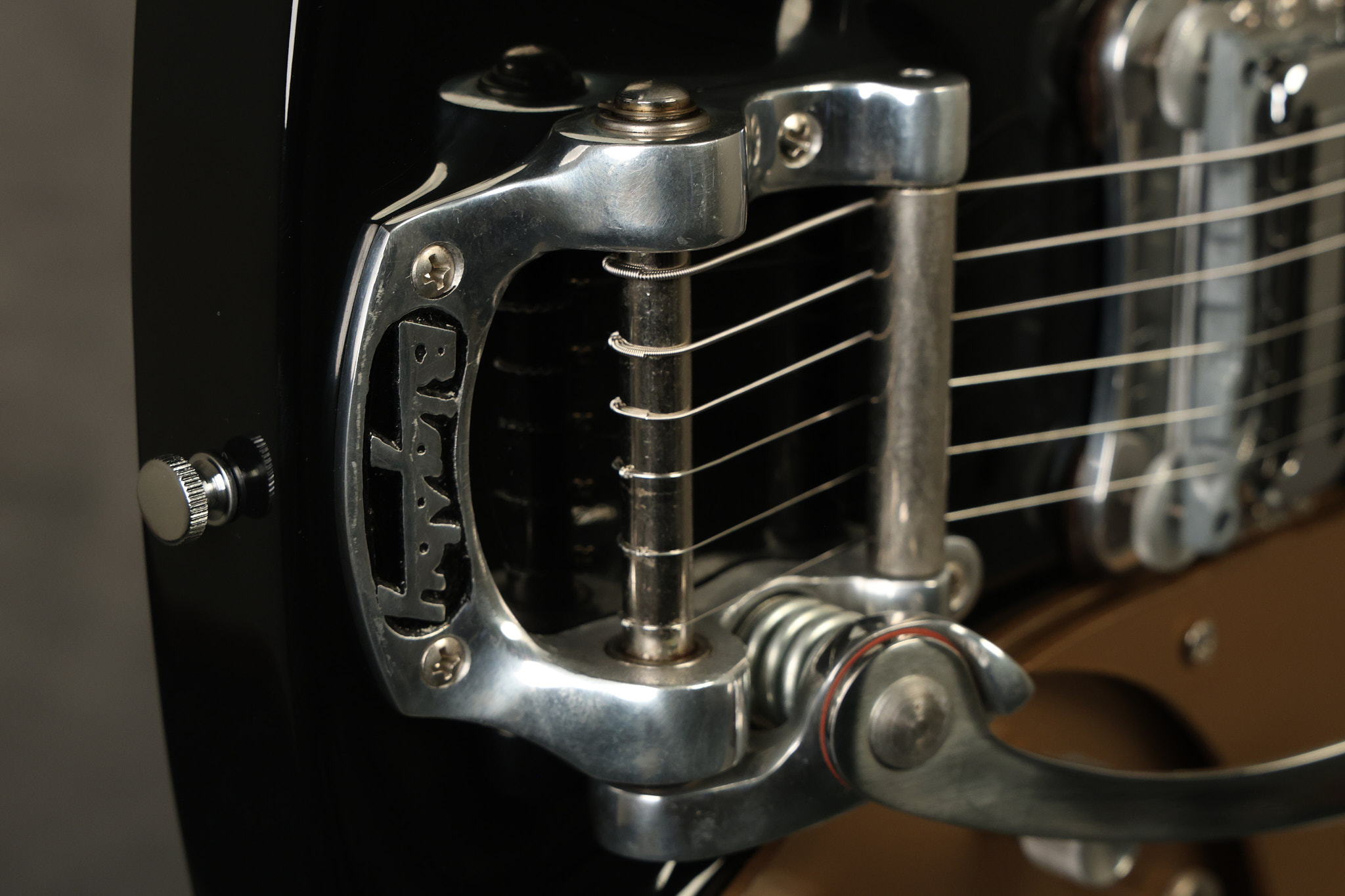 1994 Rickenbacker 325V59 in Jetglo that has had parts changed (Burns volume and tone knobs, Sorkin bridge, and open back Grover tuners) to resemble the specs of John Lennon's 1958 Rickenbacker model 325, with the exception of the upper portion of the pickguard being left on. It has a great playing neck with great frets. It's all original and 100% complete along with its original hardshell case. It's in EXCELLENT condition with only very little extremely minor surface wear. Pads were placed underneath the bridge to help protect the finish. Everything remains structurally sound with no cracks, breaks or repairs. All electronics work and sound great.