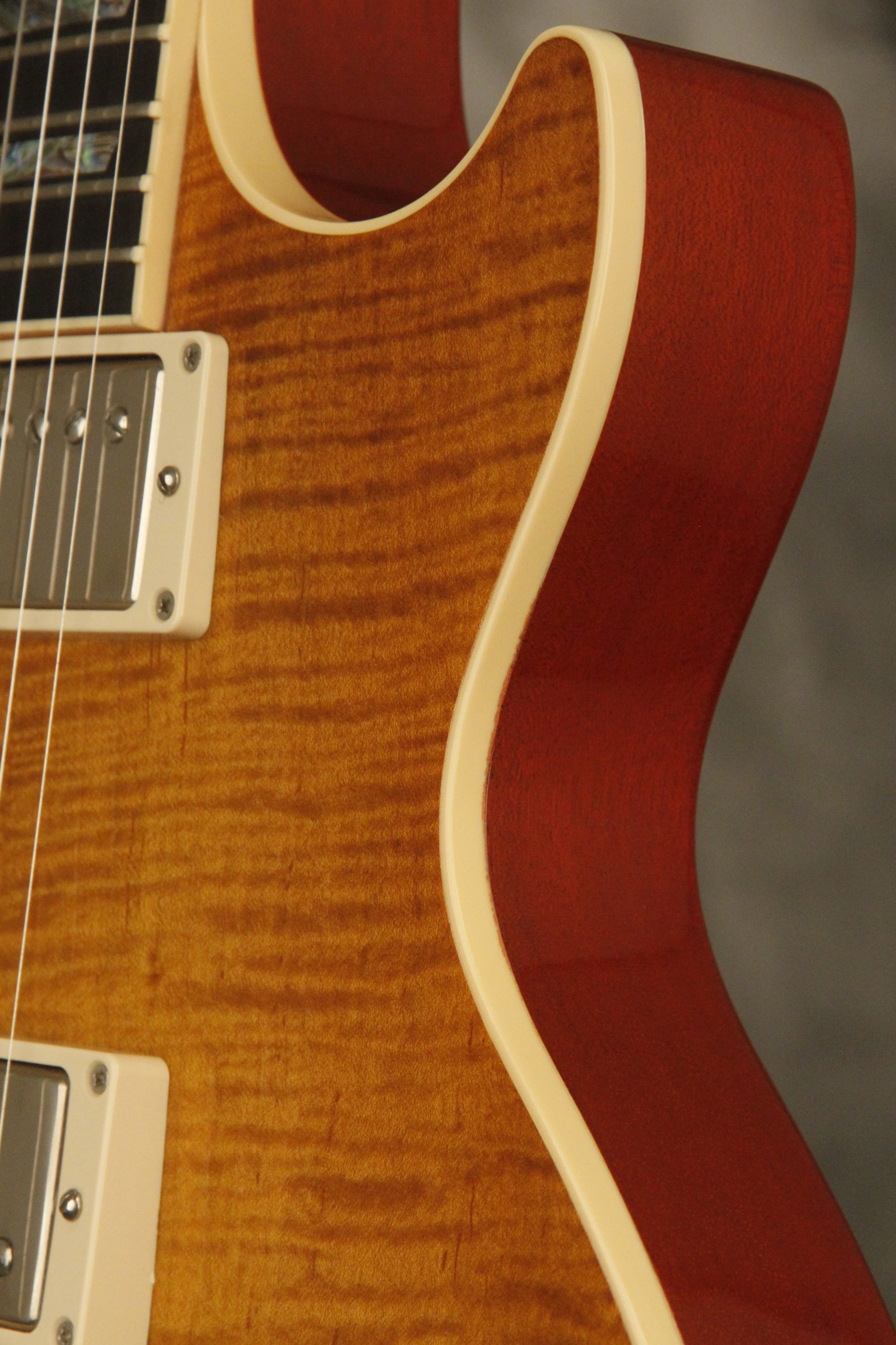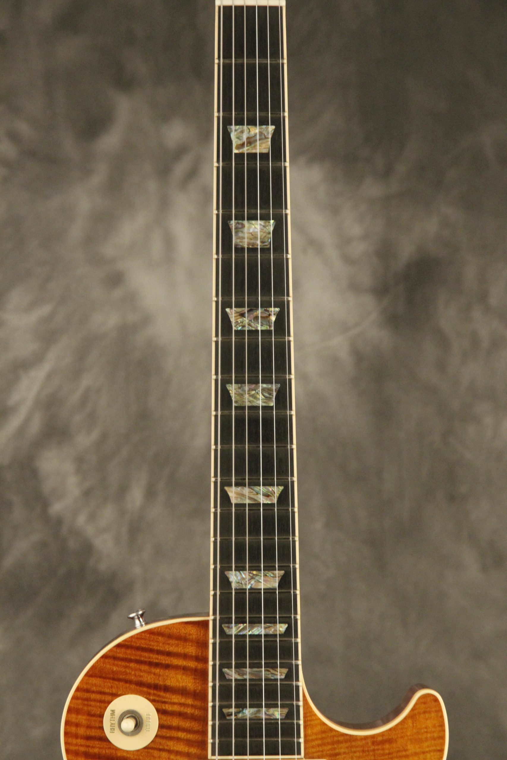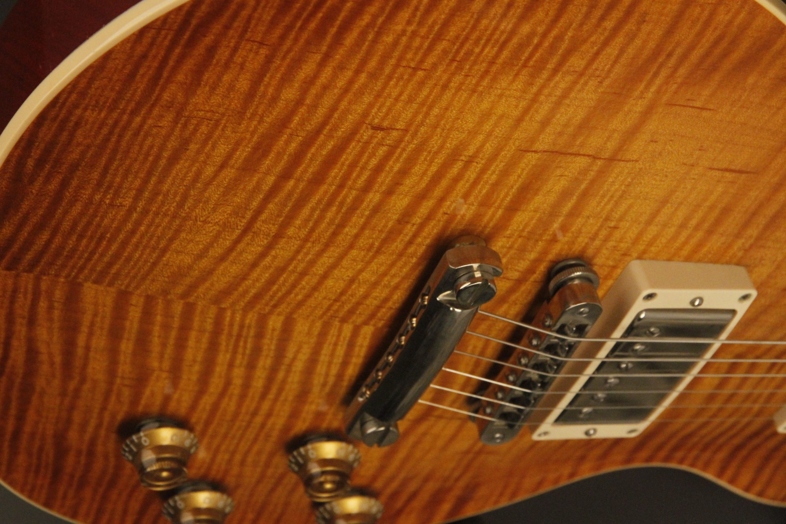 2000 Gibson Custom Shop Les Paul Elegant in Honeyburst which really shows off its incredible AAA flame maple top on a chambered body. It has a great playing neck with great frets. It's all original and 100% complete along with its original hardshell case. It's in EXCELLENT condition with only a few very minor nicks + dings, one short line of finish checking on the back of the headstock, a cracked jack plate and other barely noticeable surface wear. Everything remains structurally sound with no cracks, breaks or repairs. All electronics work and sound great with its original set of Classic '57 pickups.