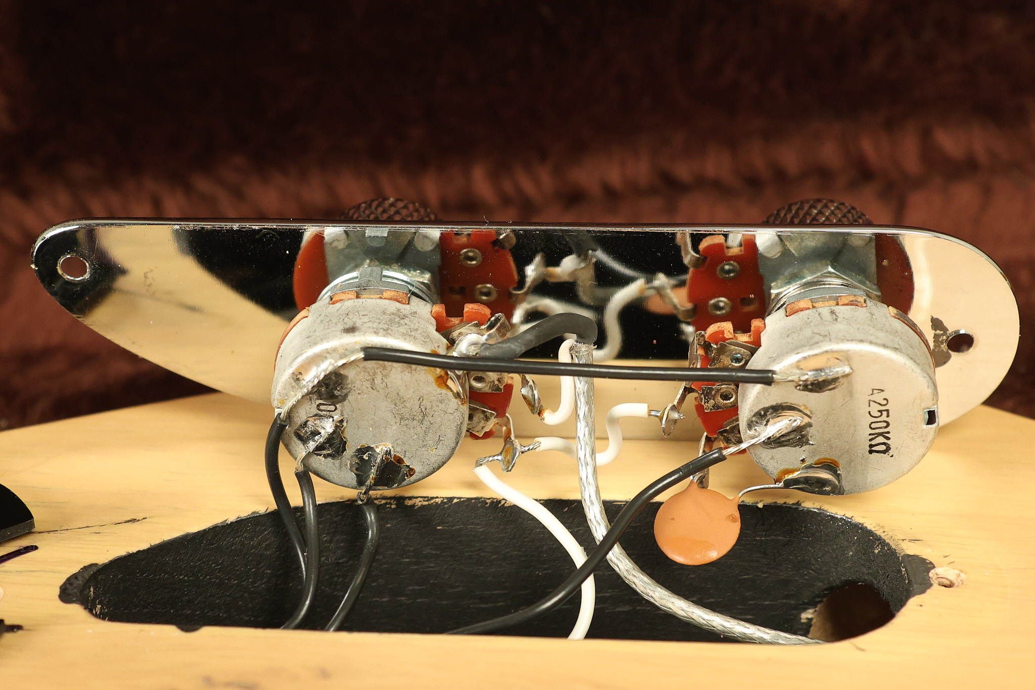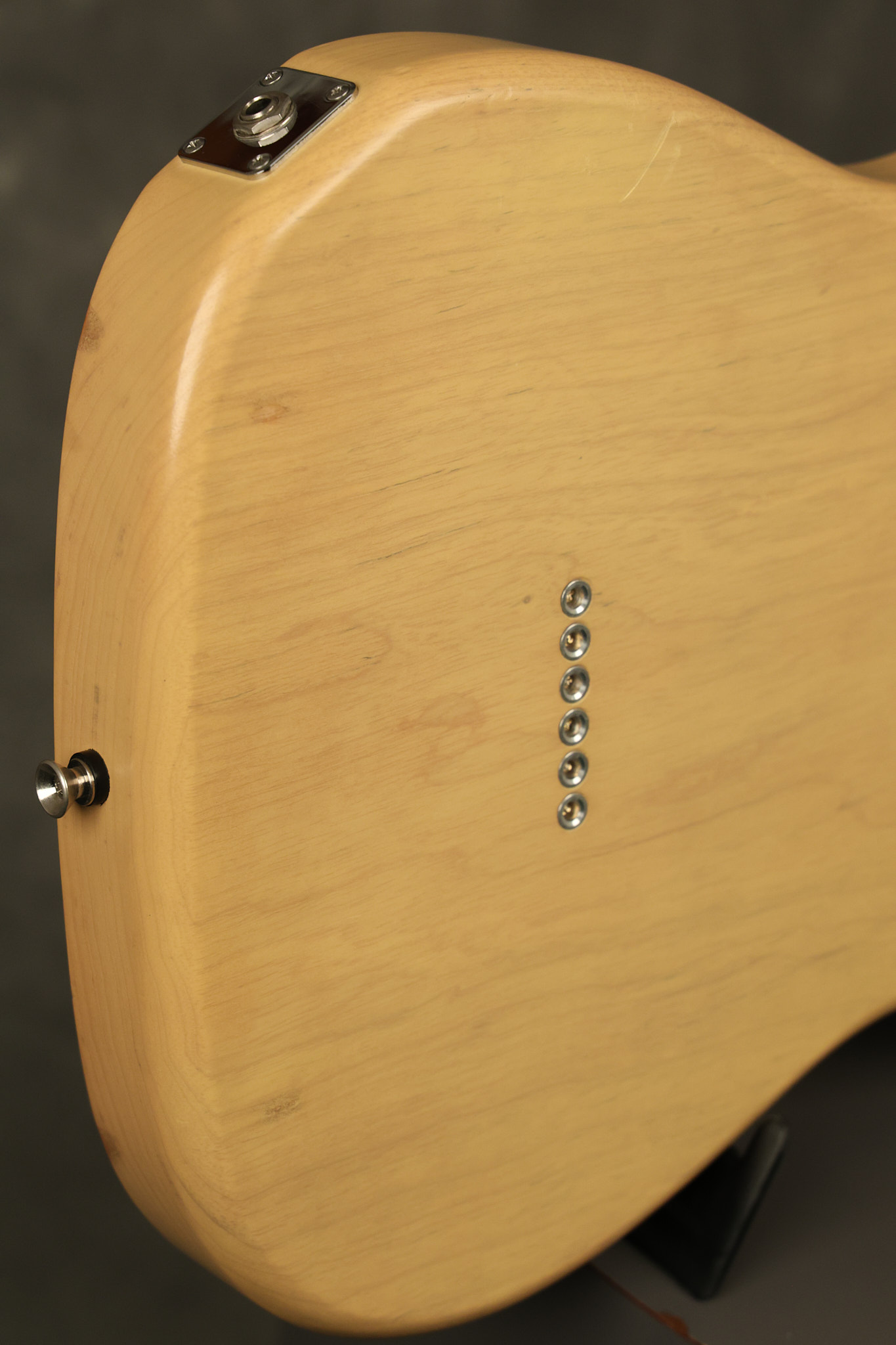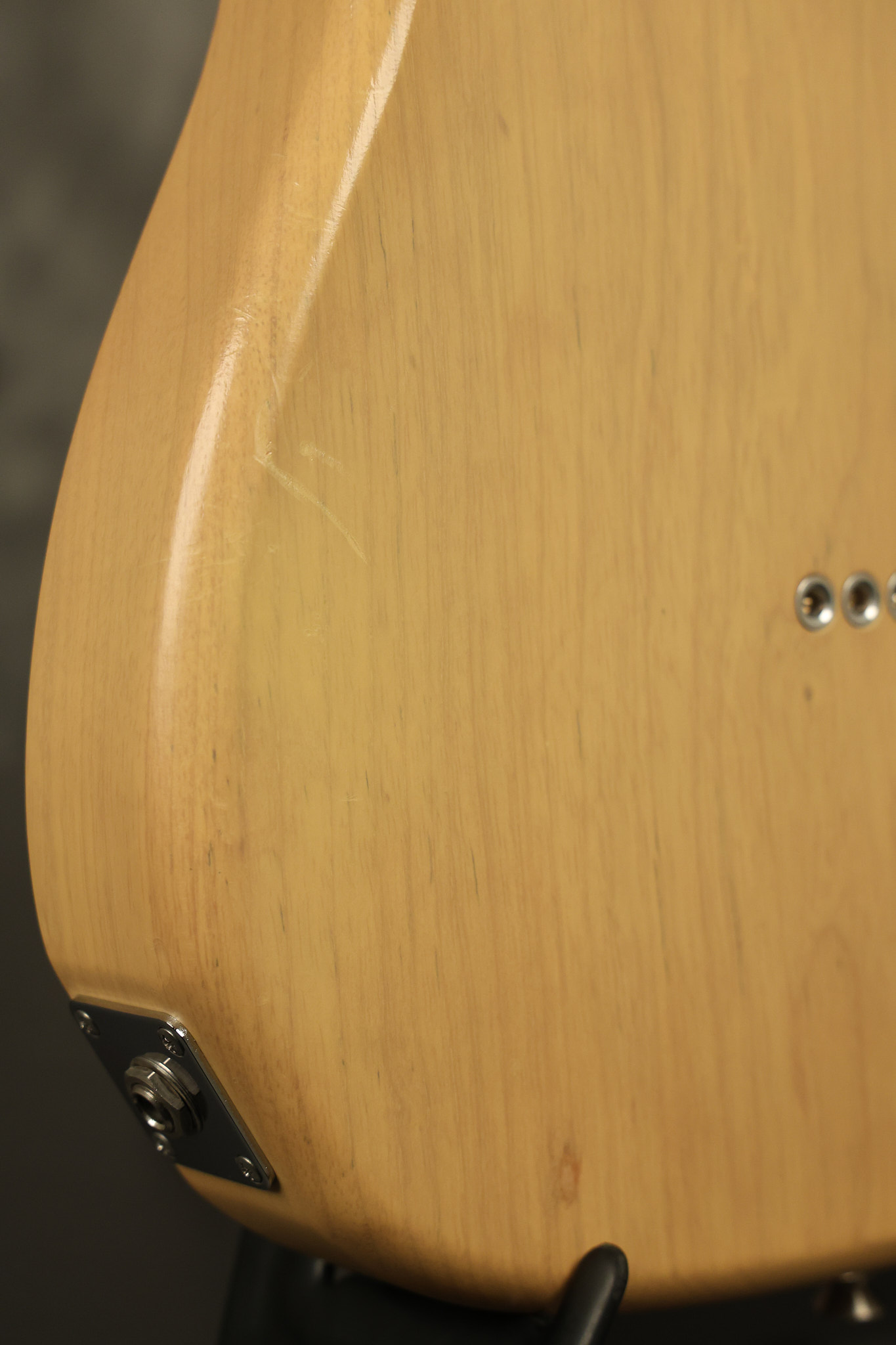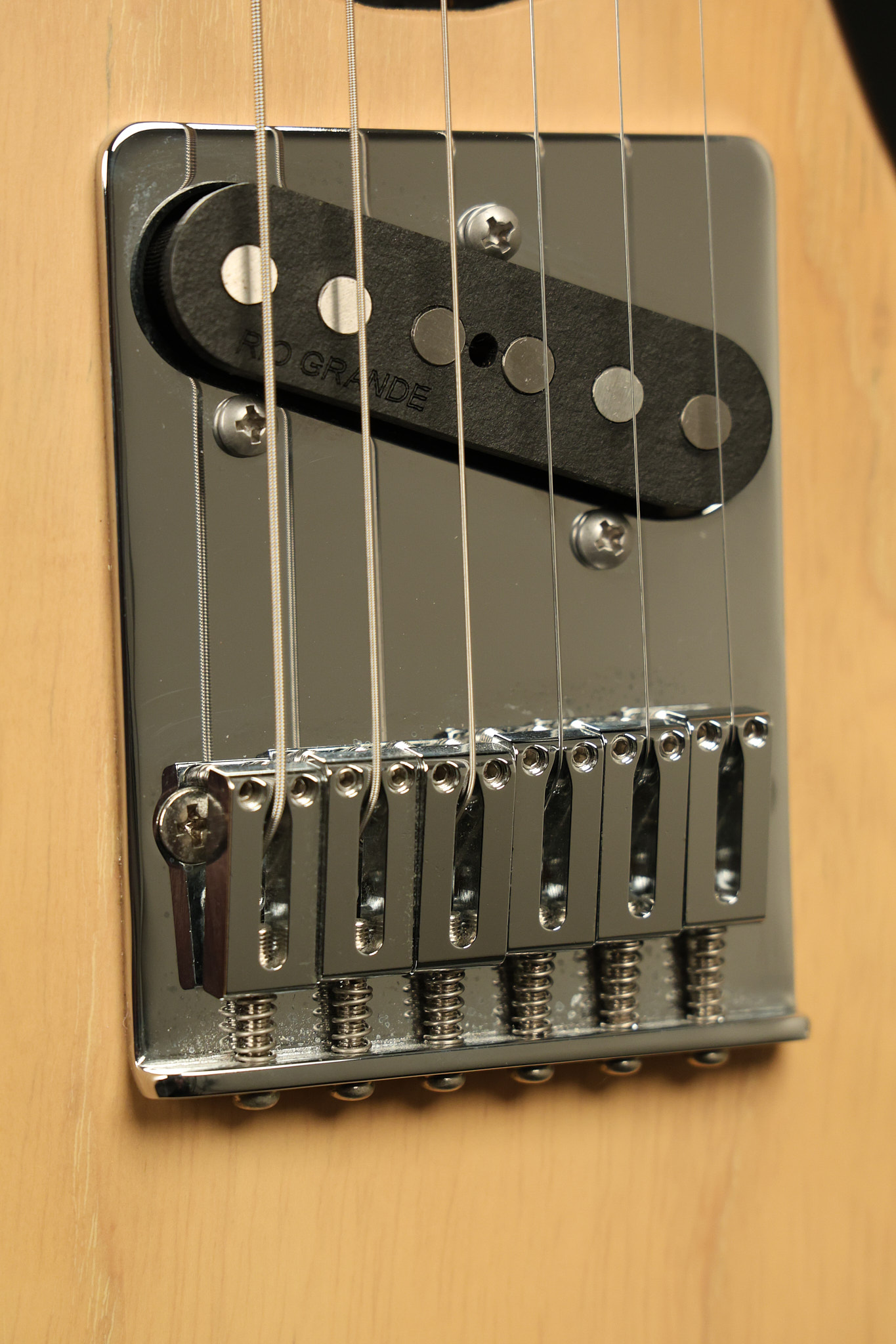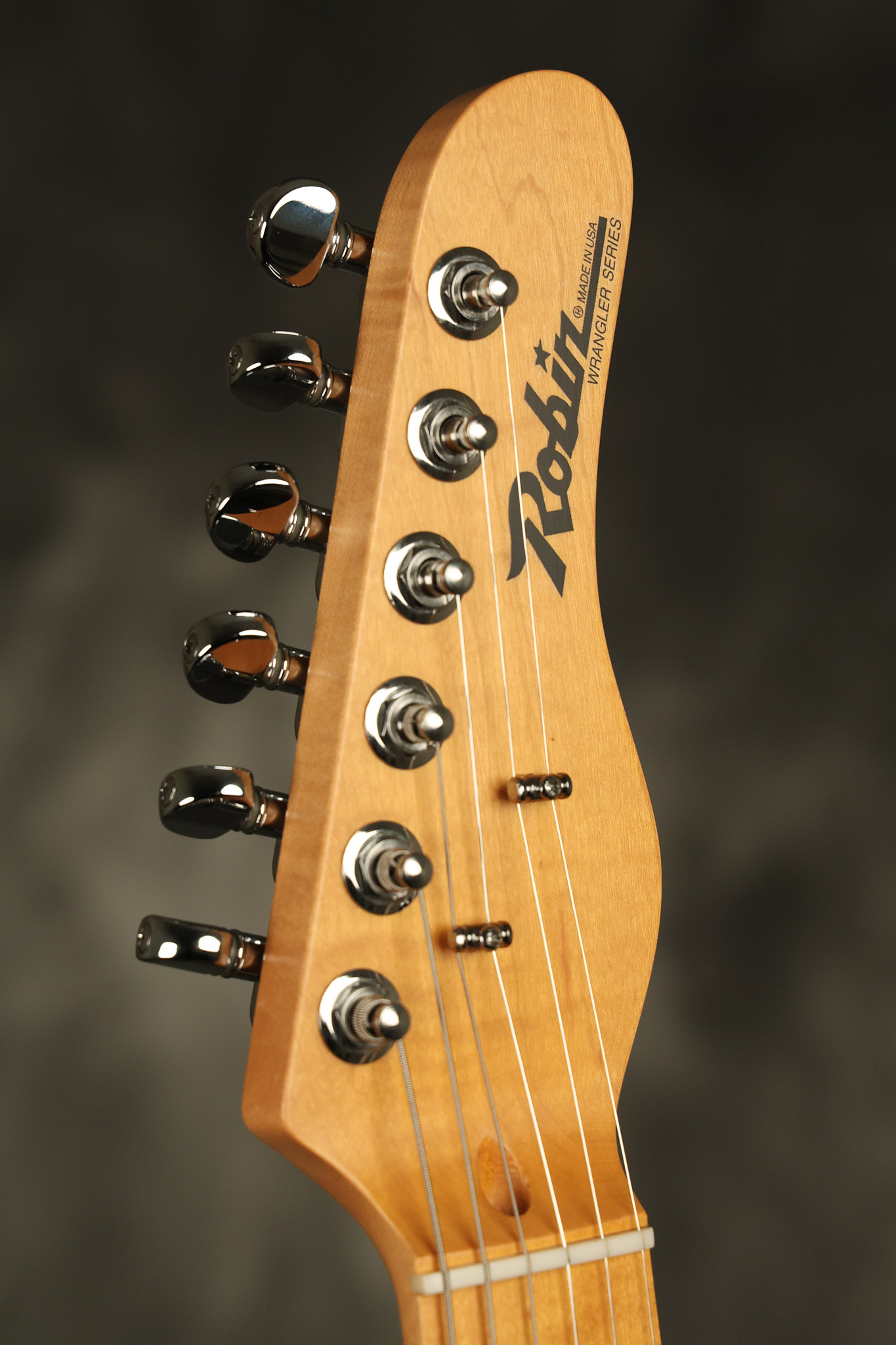2003 Robin Wrangler Pro in its original Old Blonde finish. It has a great playing neck with great frets. It's all original and 100% complete along with its original hardshell case and papers. It's in very good condition with some minor cosmetic wear including a few small areas where the finish was blemished from the use of an old guitar stand. Everything remains structurally sound with no cracks, breaks or repairs. All electronics work and sound great with its original Rio Grande pickups.