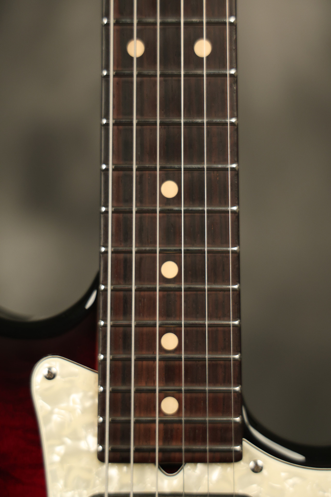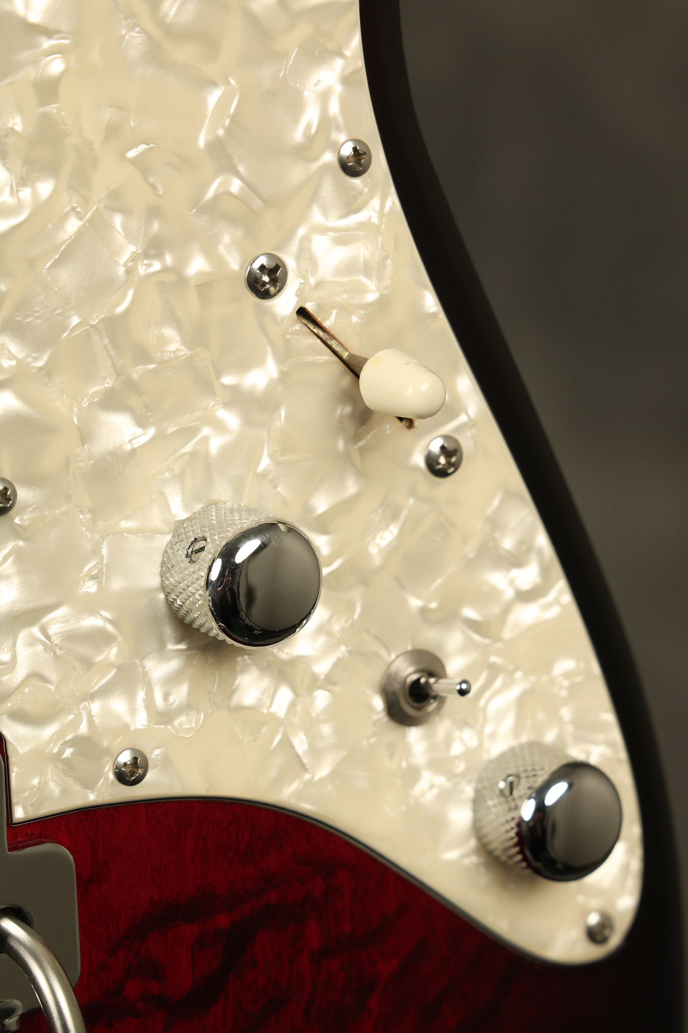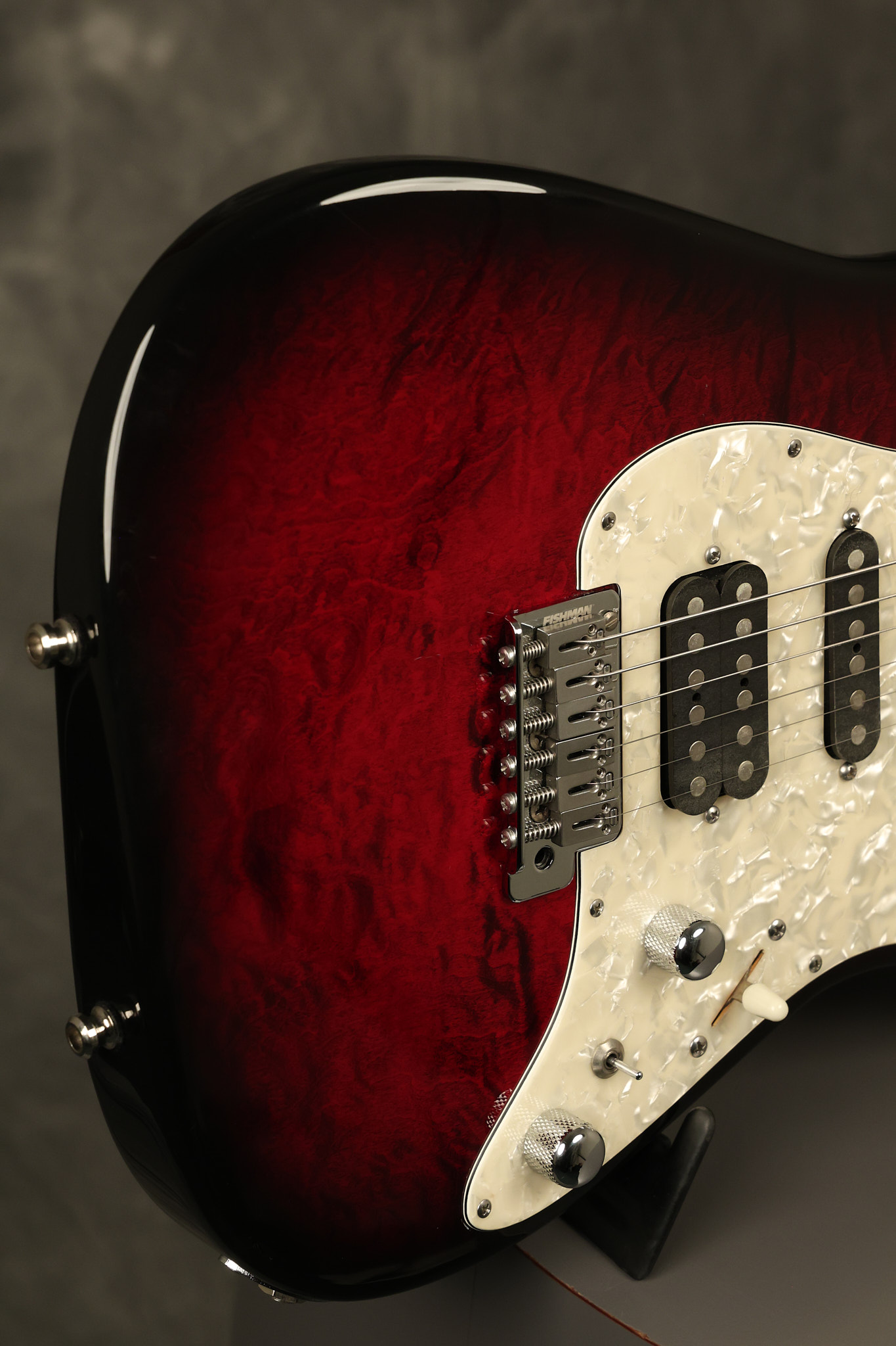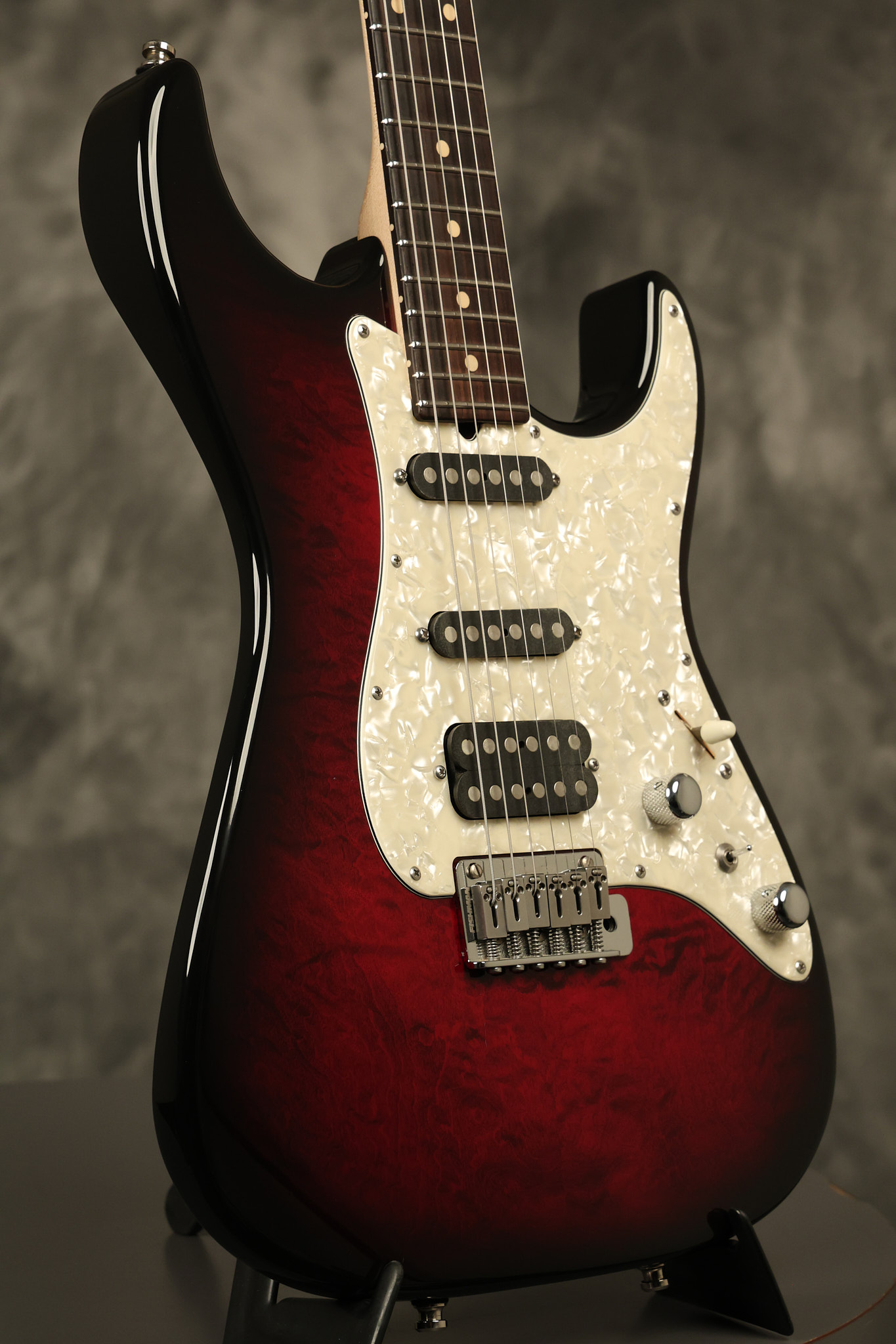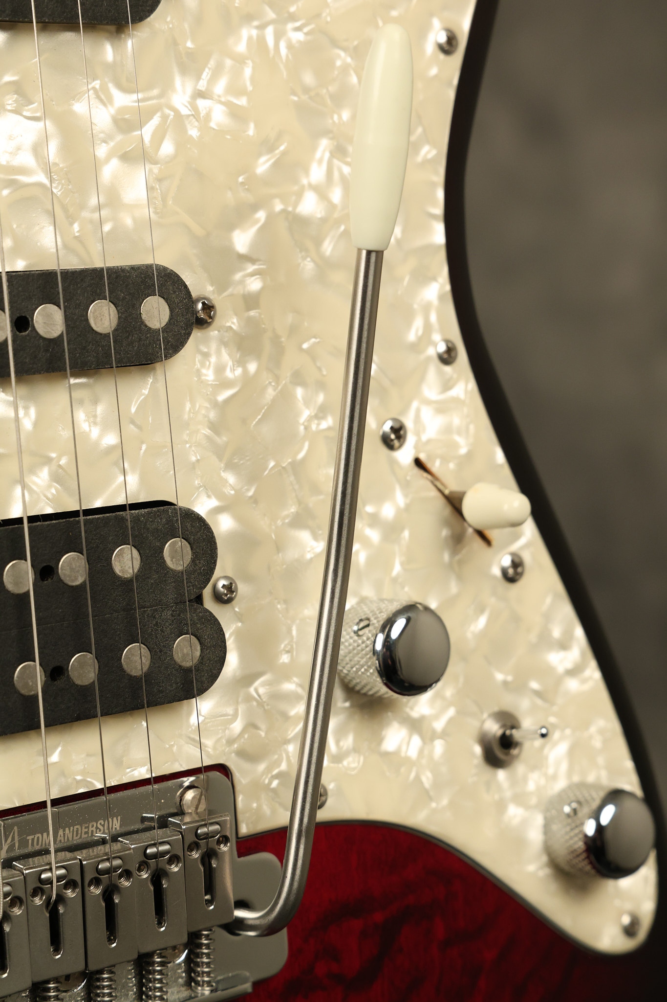 2003 Tom Anderson Drop Top Classic in Cajun Red to Black Burst with a quilted maple top. It has a great playing neck with great frets. It's all original and 100% complete along with its original hardshell case and spec sheet. It's in NEAR MINT condition with only very little barely noticeable surface wear. Everything remains structurally sound with no cracks, breaks or repairs. All electronics work and sound great.