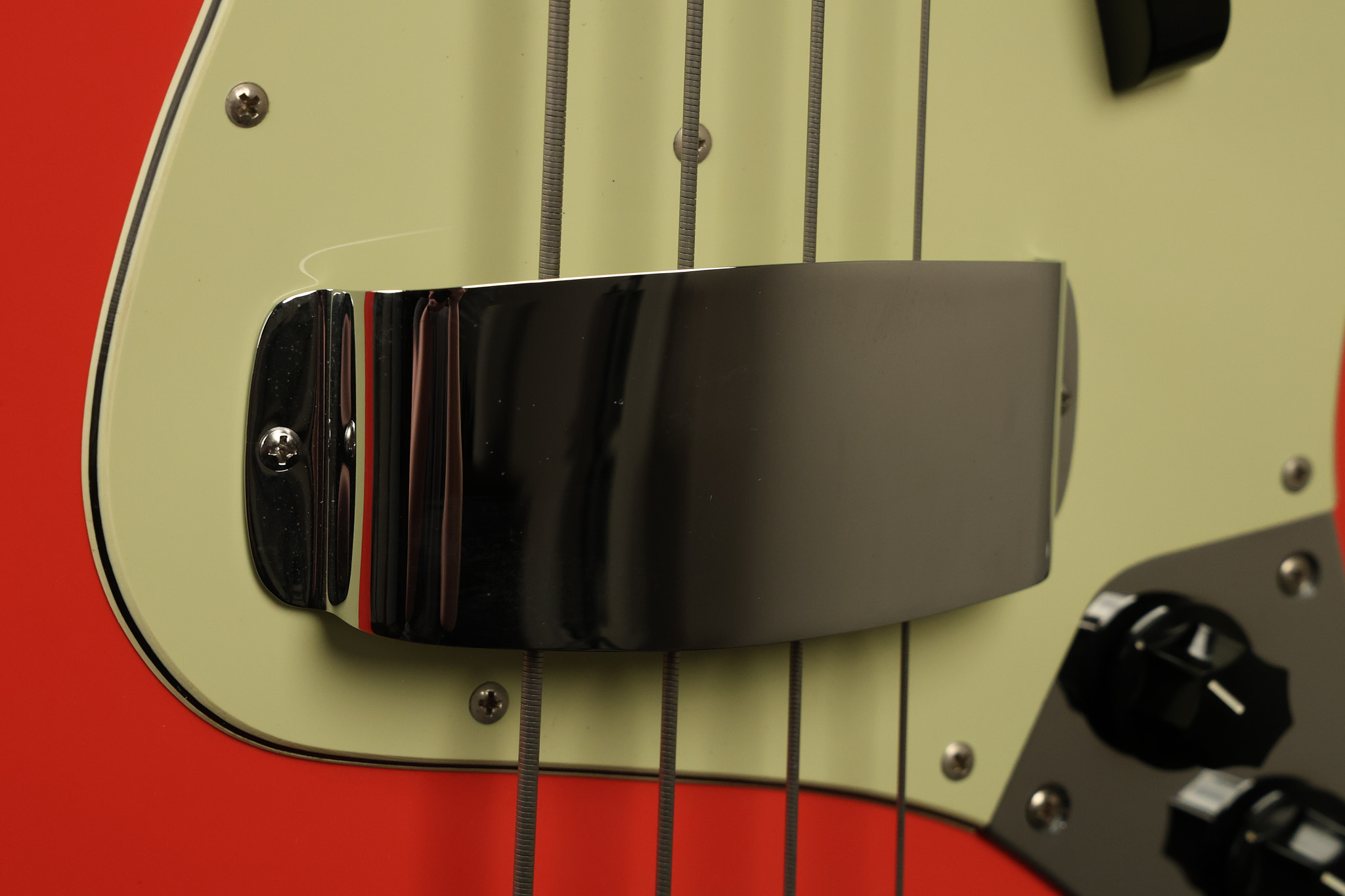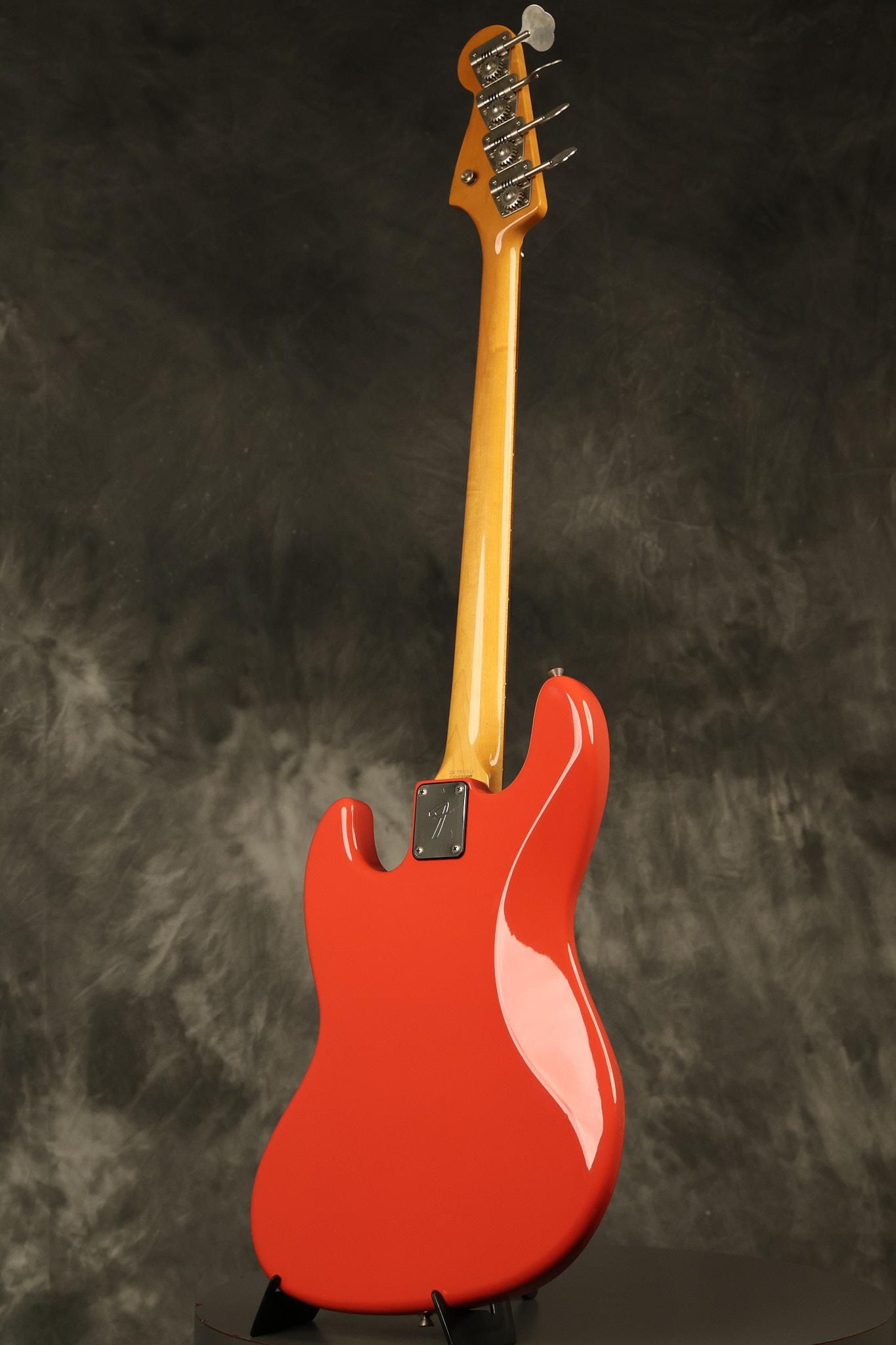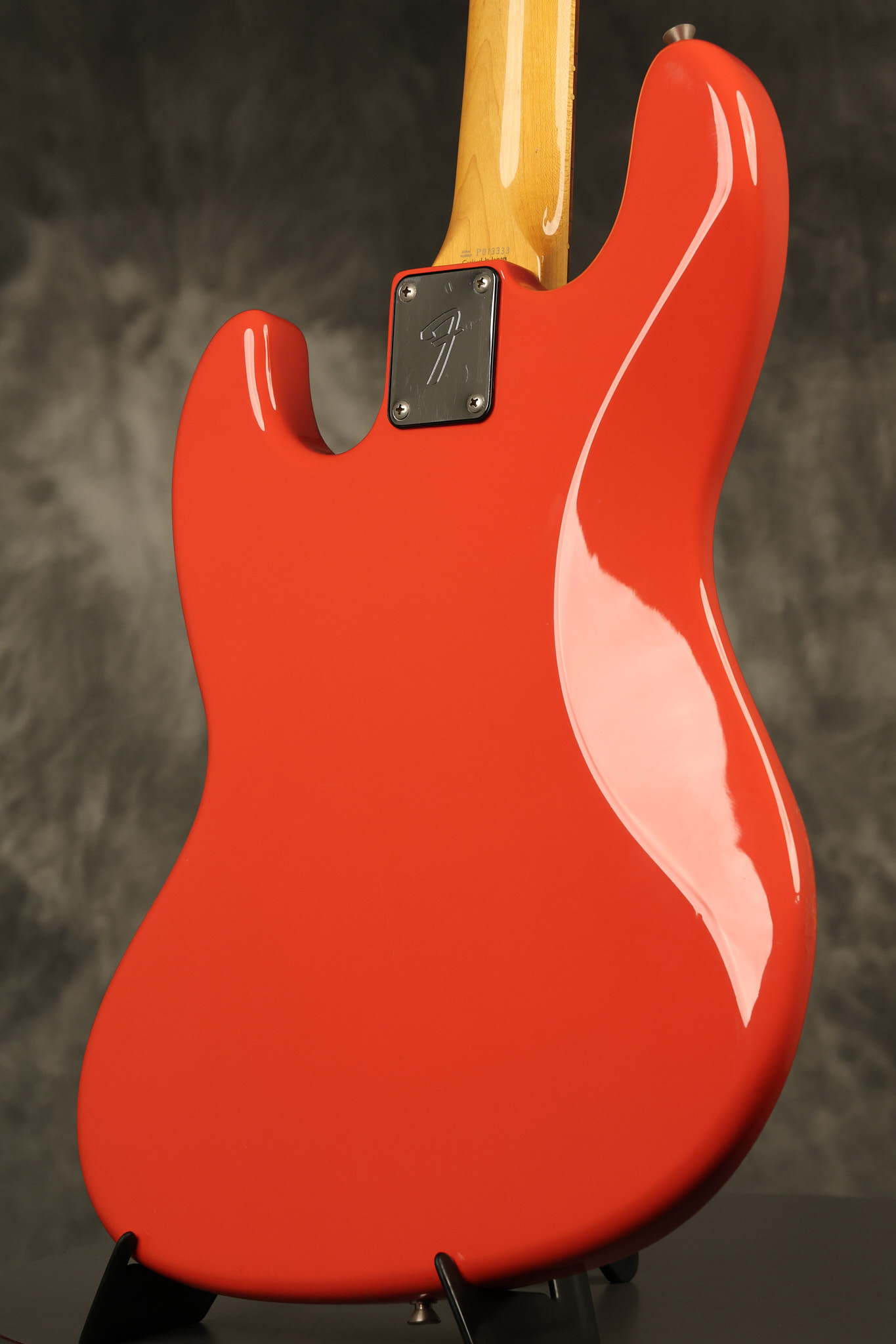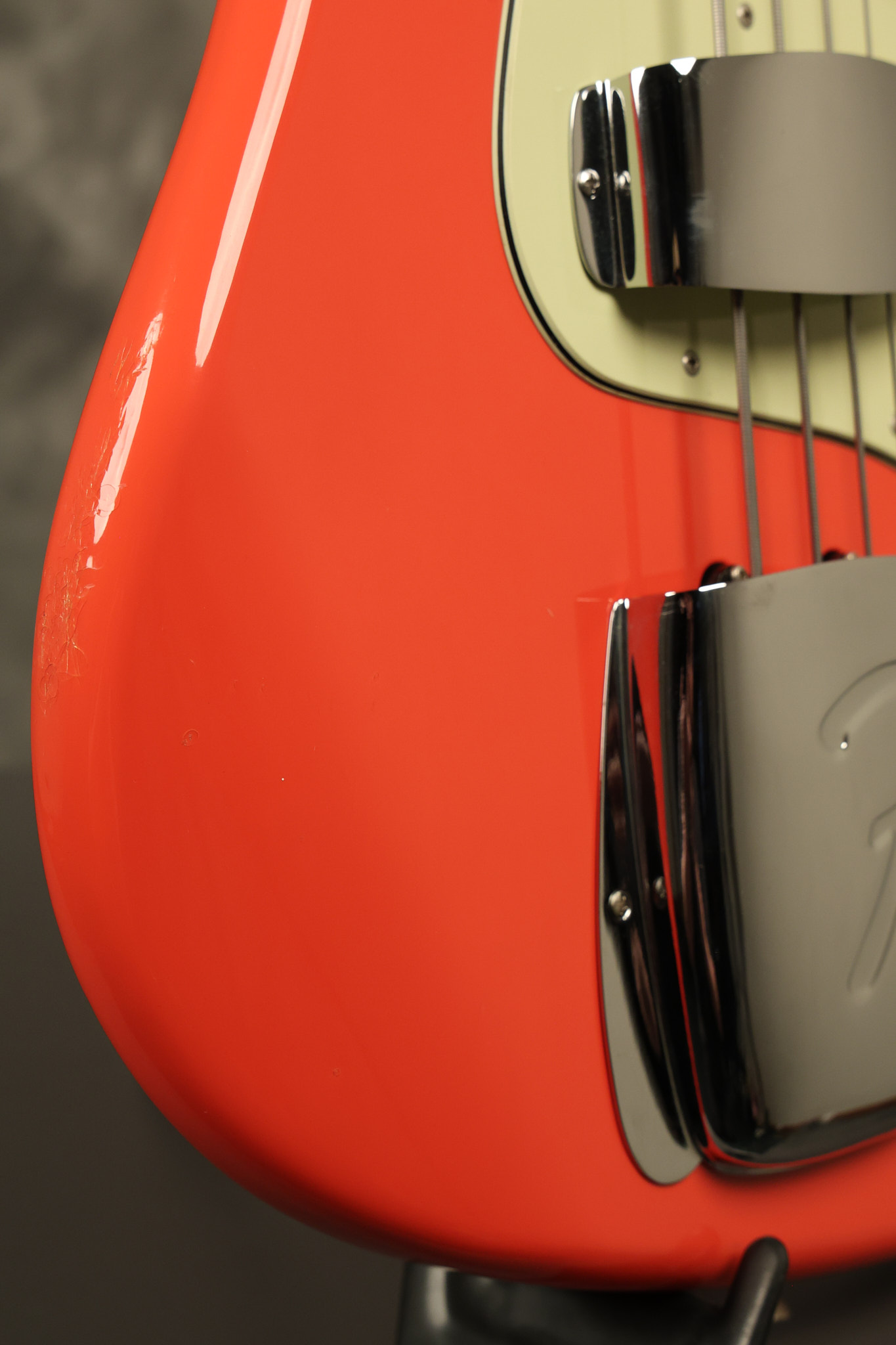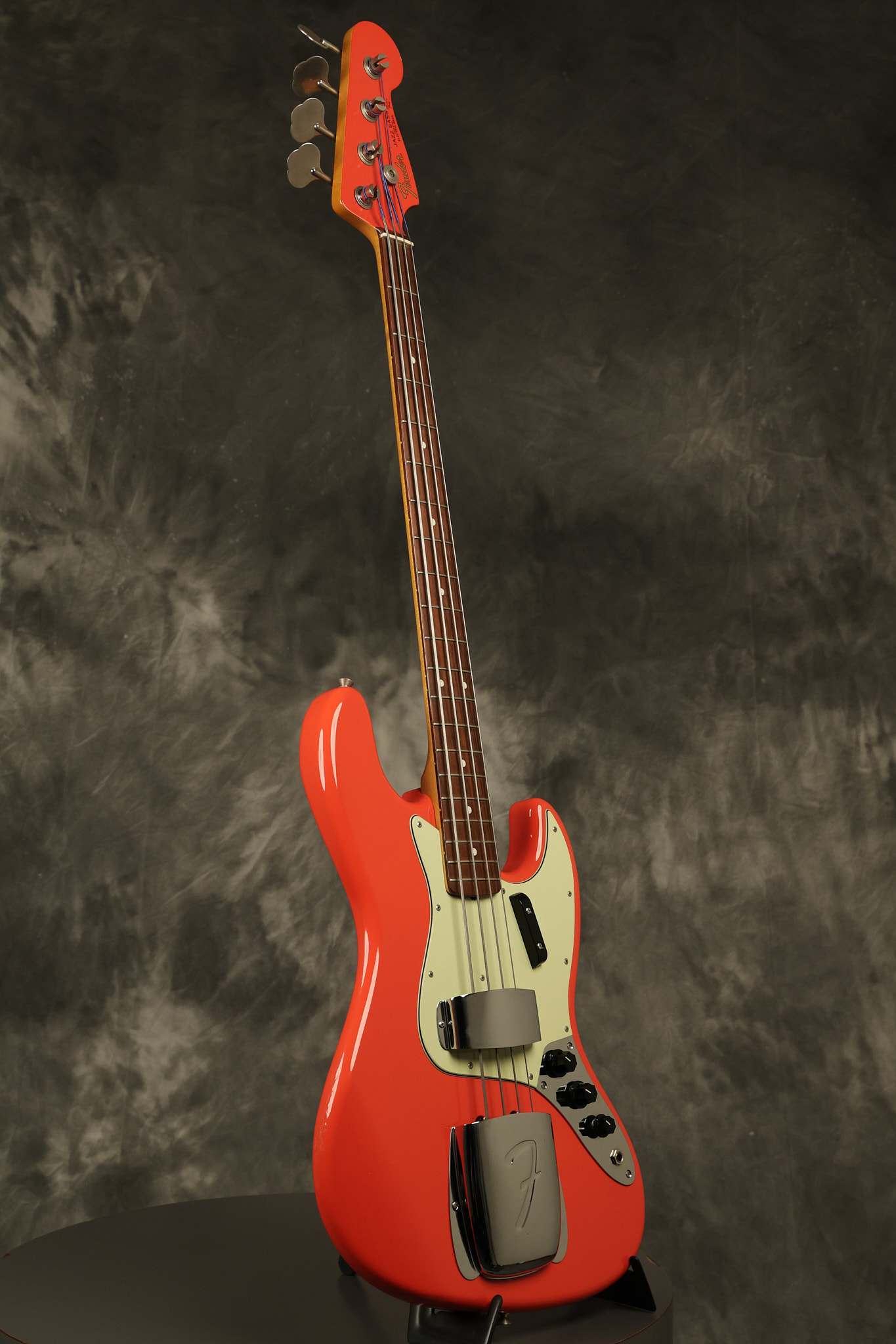 2005 Fender Crafted in Japan '62 Reissue Jazz Bass in Fiesta Red. It has a great playing neck with great frets. It's all original and 100% complete along with its original hardshell case. It's in EXCELLENT condition with only a couple of small surface blemsihes, including finish cracks on the lower bass side contour of the body, and a few small marks on the underside of the headstock. Everything remains structurally sound with no breaks or repairs. All electronics work and sound great.