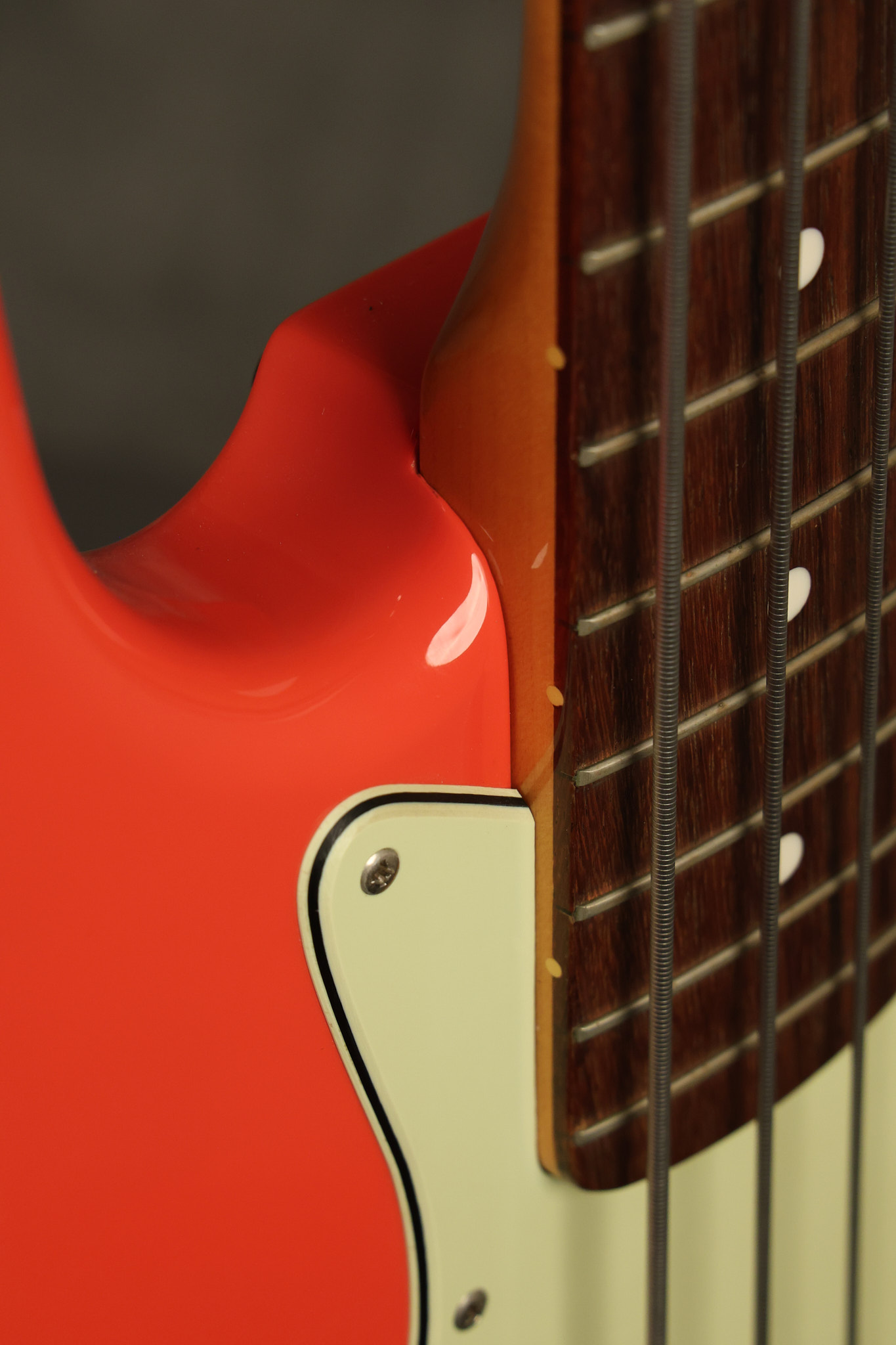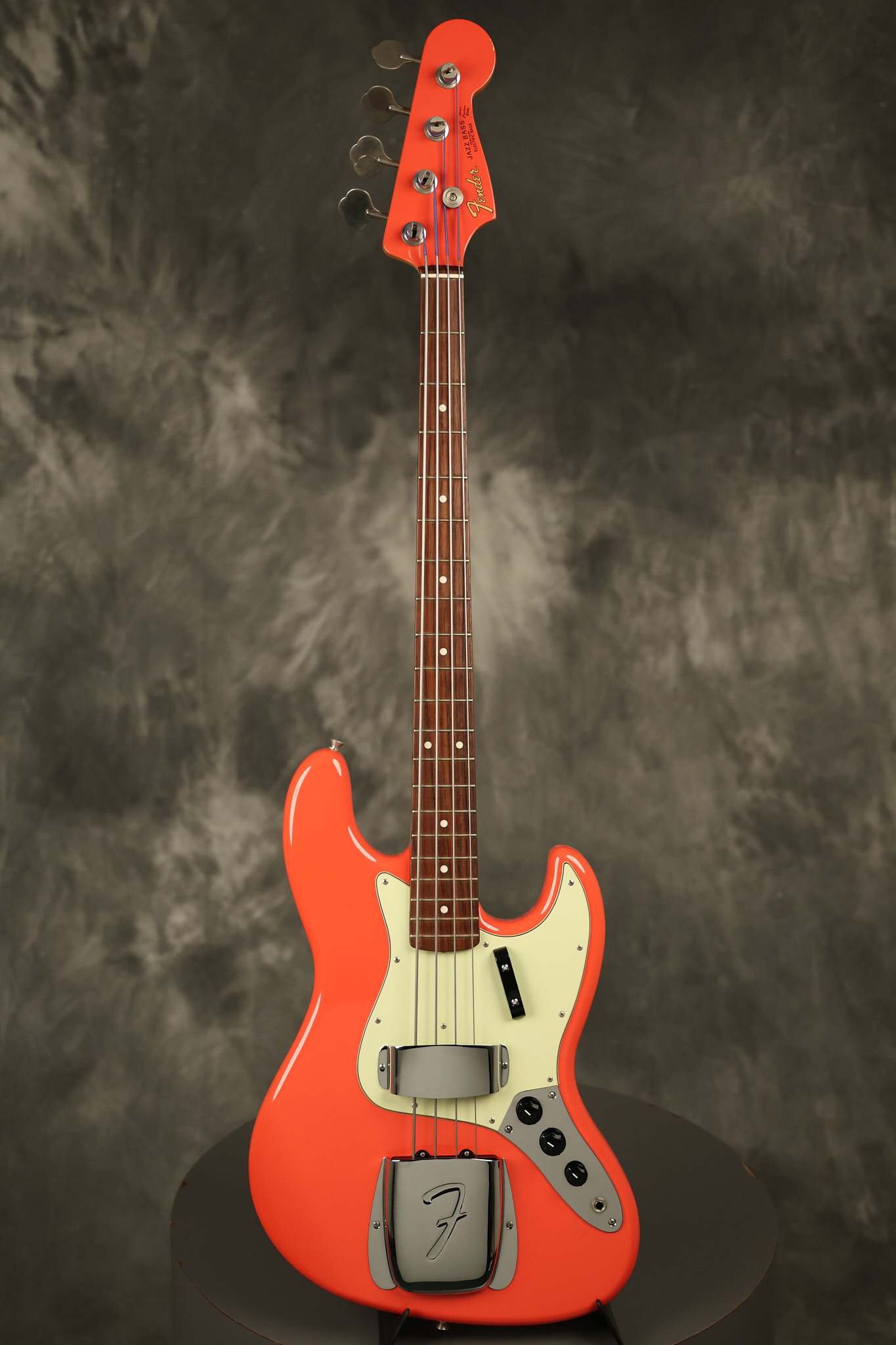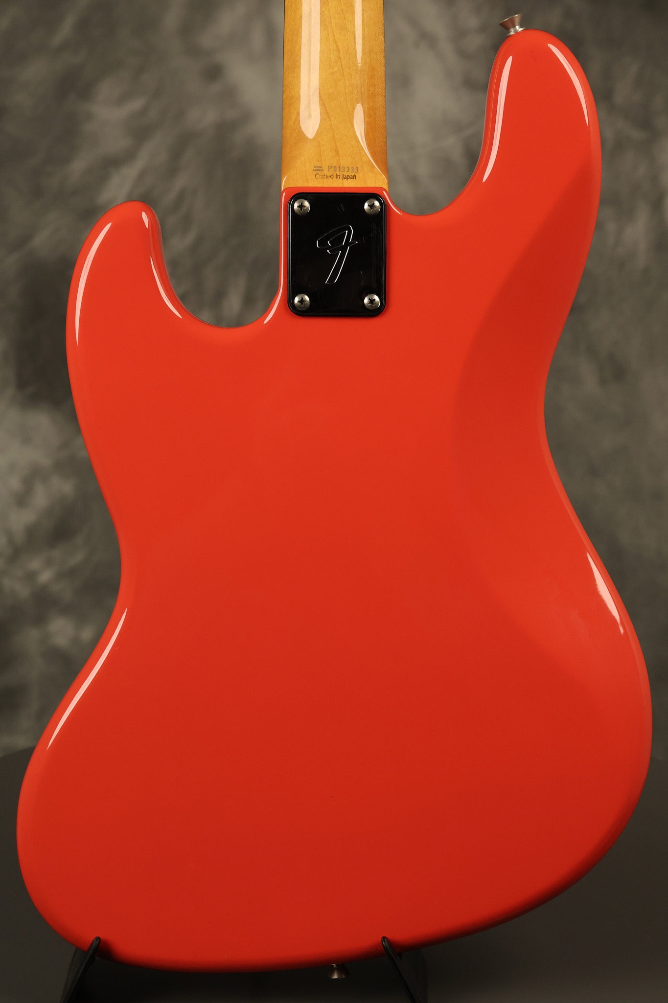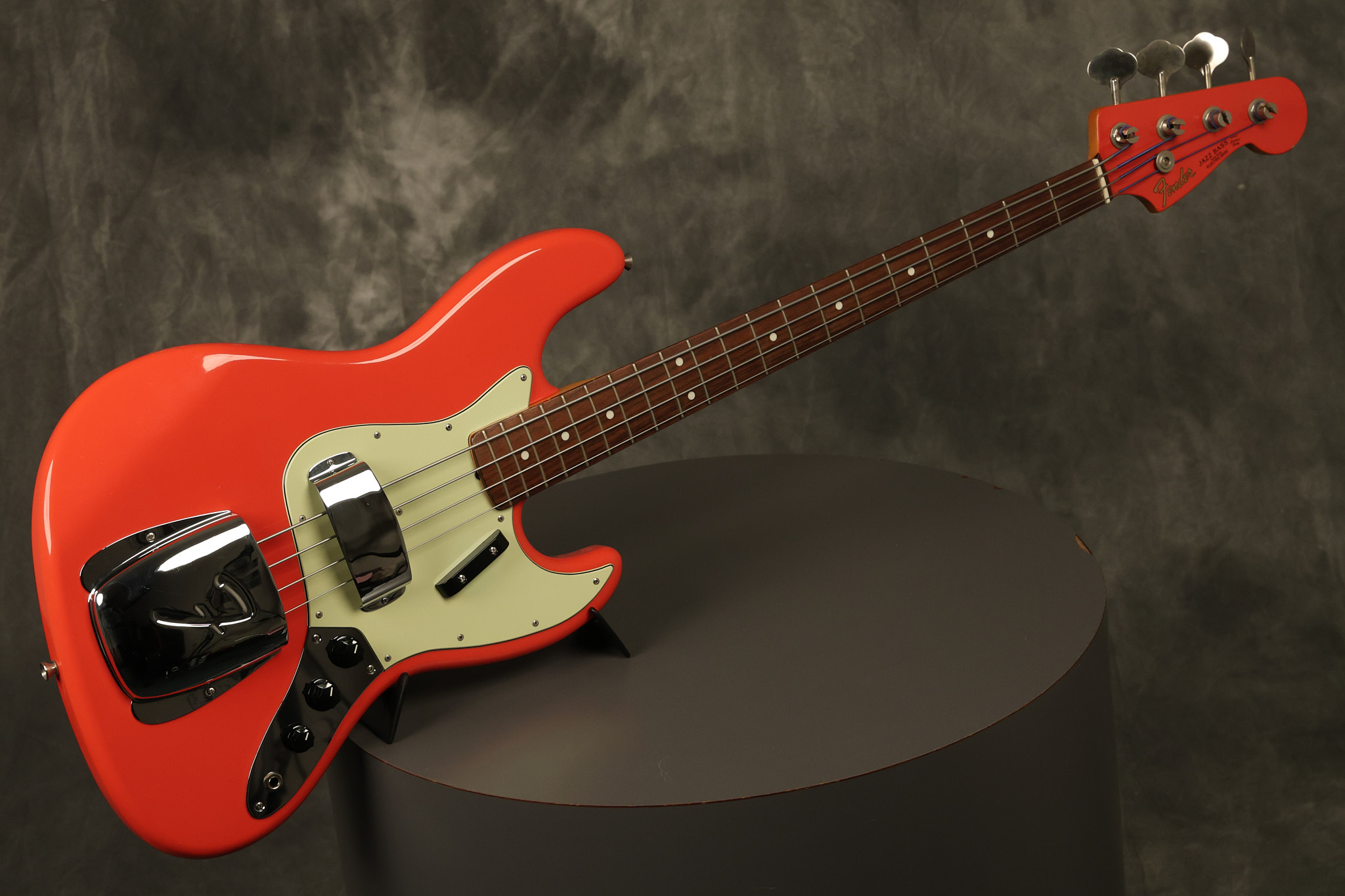 2005 Fender Crafted in Japan '62 Reissue Jazz Bass in Fiesta Red. It has a great playing neck with great frets. It's all original and 100% complete along with its original hardshell case. It's in EXCELLENT condition with only a couple of small surface blemsihes, including finish cracks on the lower bass side contour of the body, and a few small marks on the underside of the headstock. Everything remains structurally sound with no breaks or repairs. All electronics work and sound great.