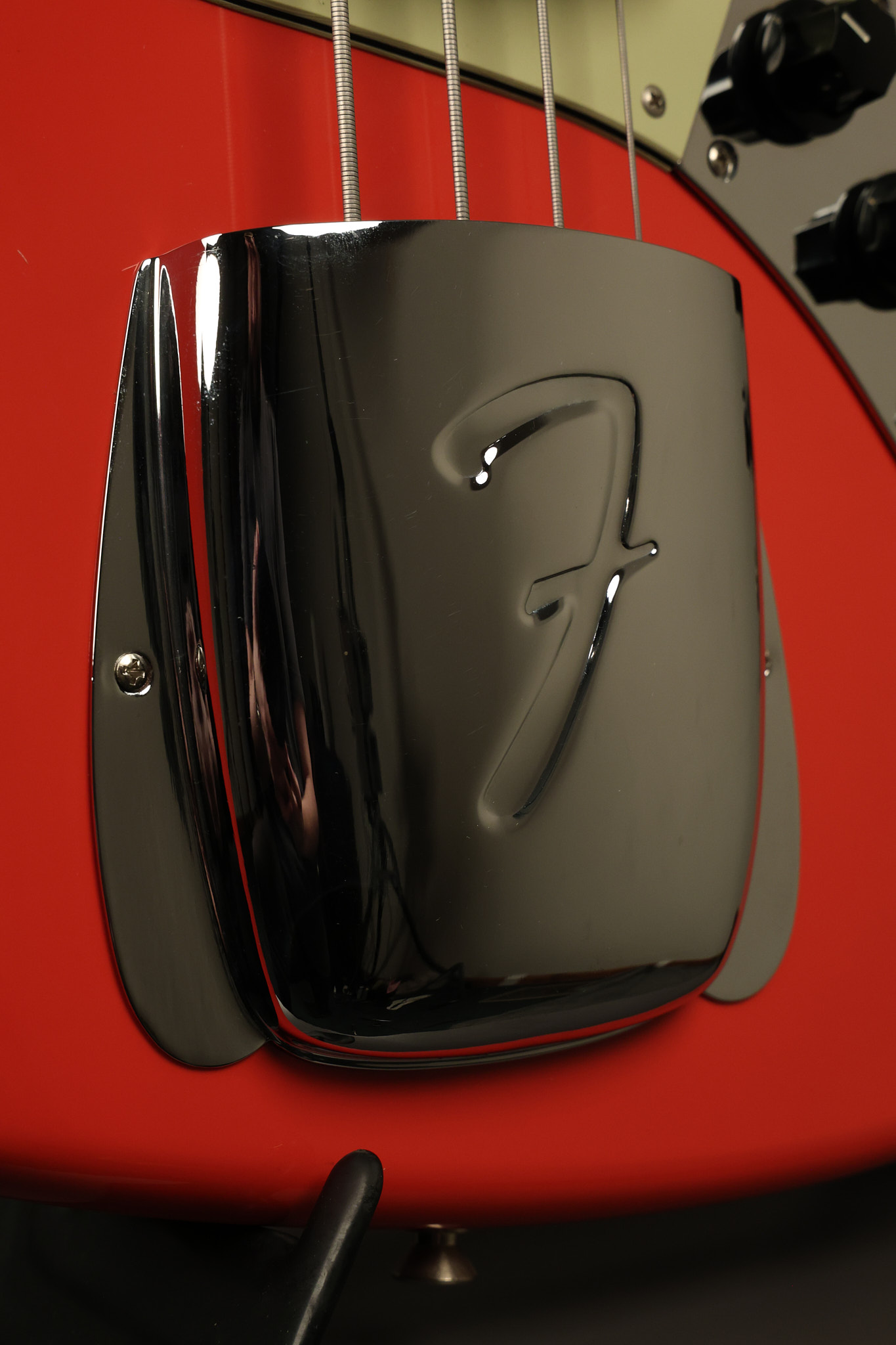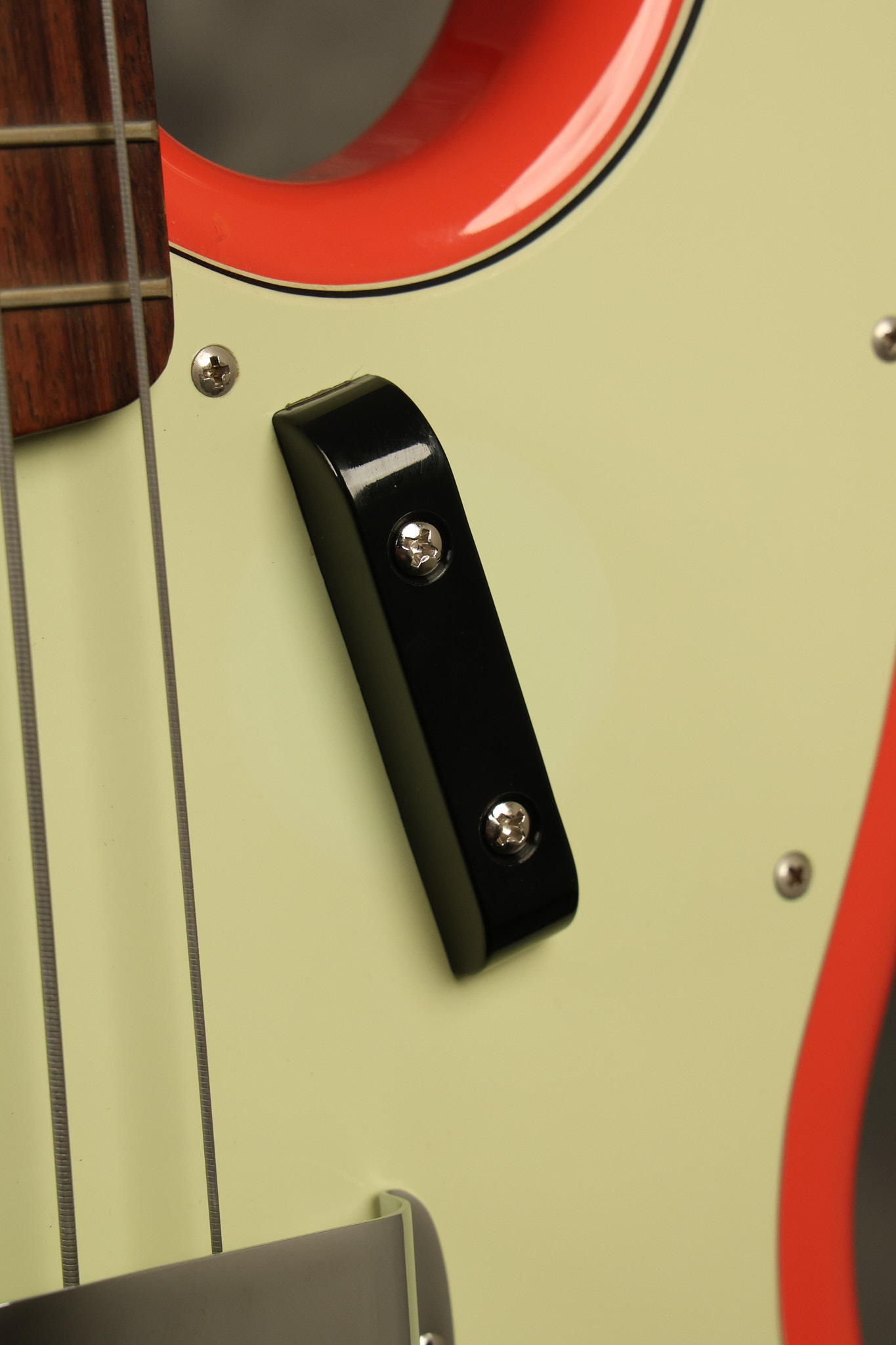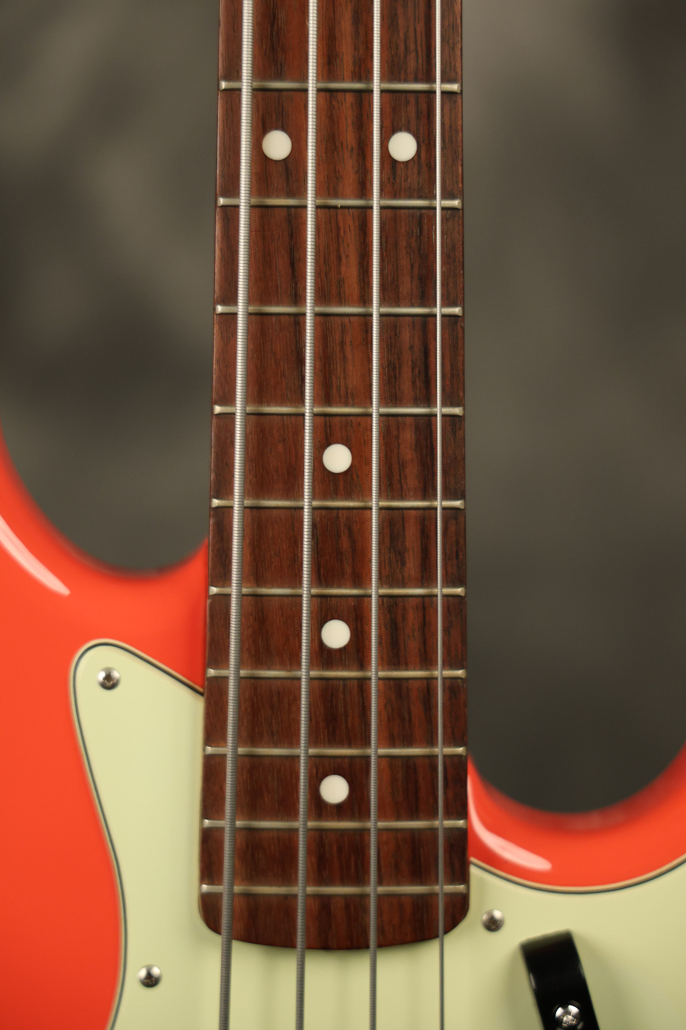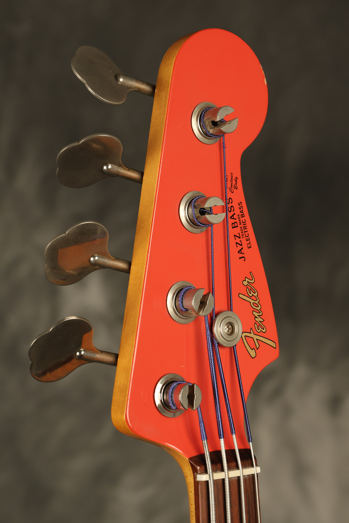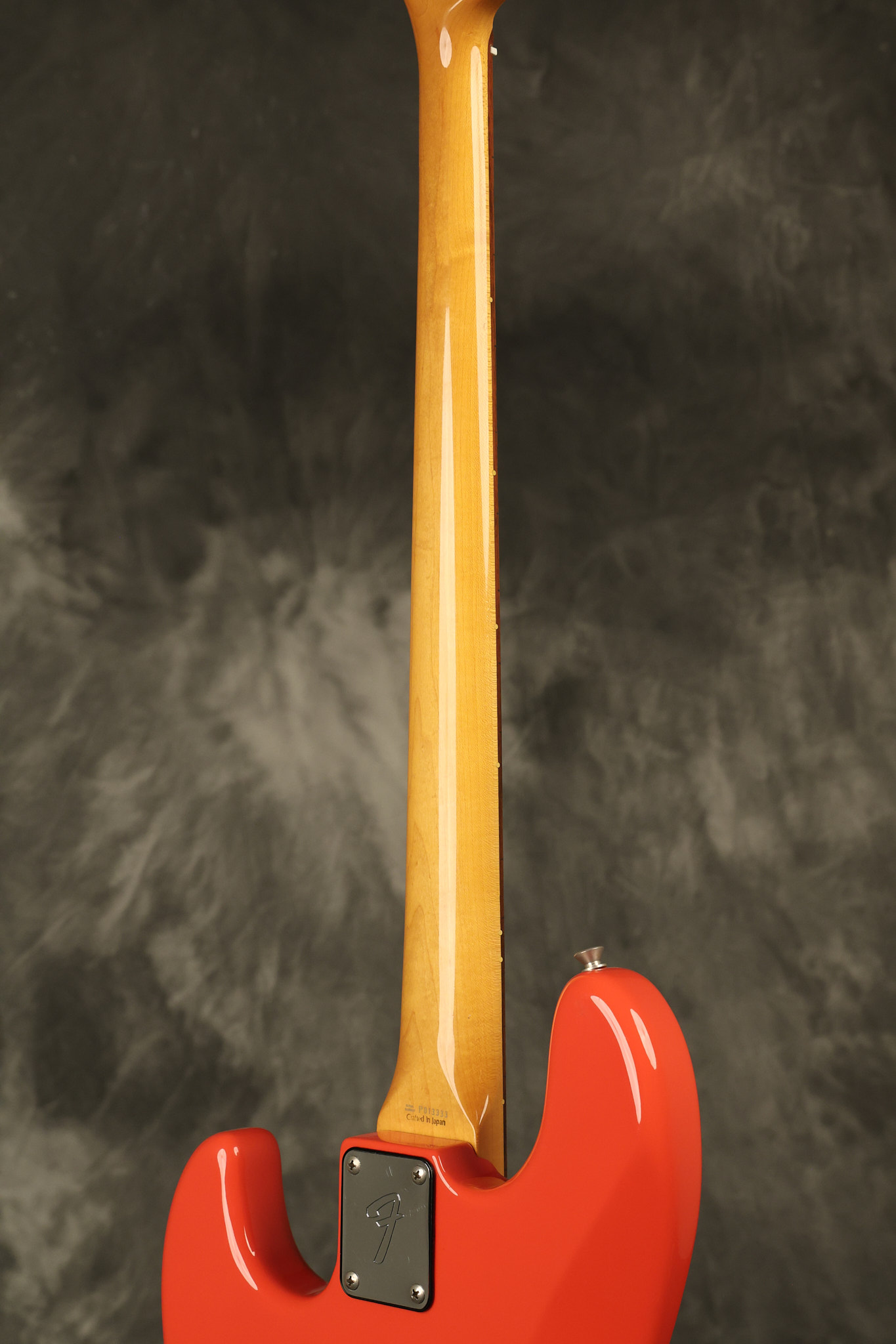 2005 Fender Crafted in Japan '62 Reissue Jazz Bass in Fiesta Red. It has a great playing neck with great frets. It's all original and 100% complete along with its original hardshell case. It's in EXCELLENT condition with only a couple of small surface blemsihes, including finish cracks on the lower bass side contour of the body, and a few small marks on the underside of the headstock. Everything remains structurally sound with no breaks or repairs. All electronics work and sound great.