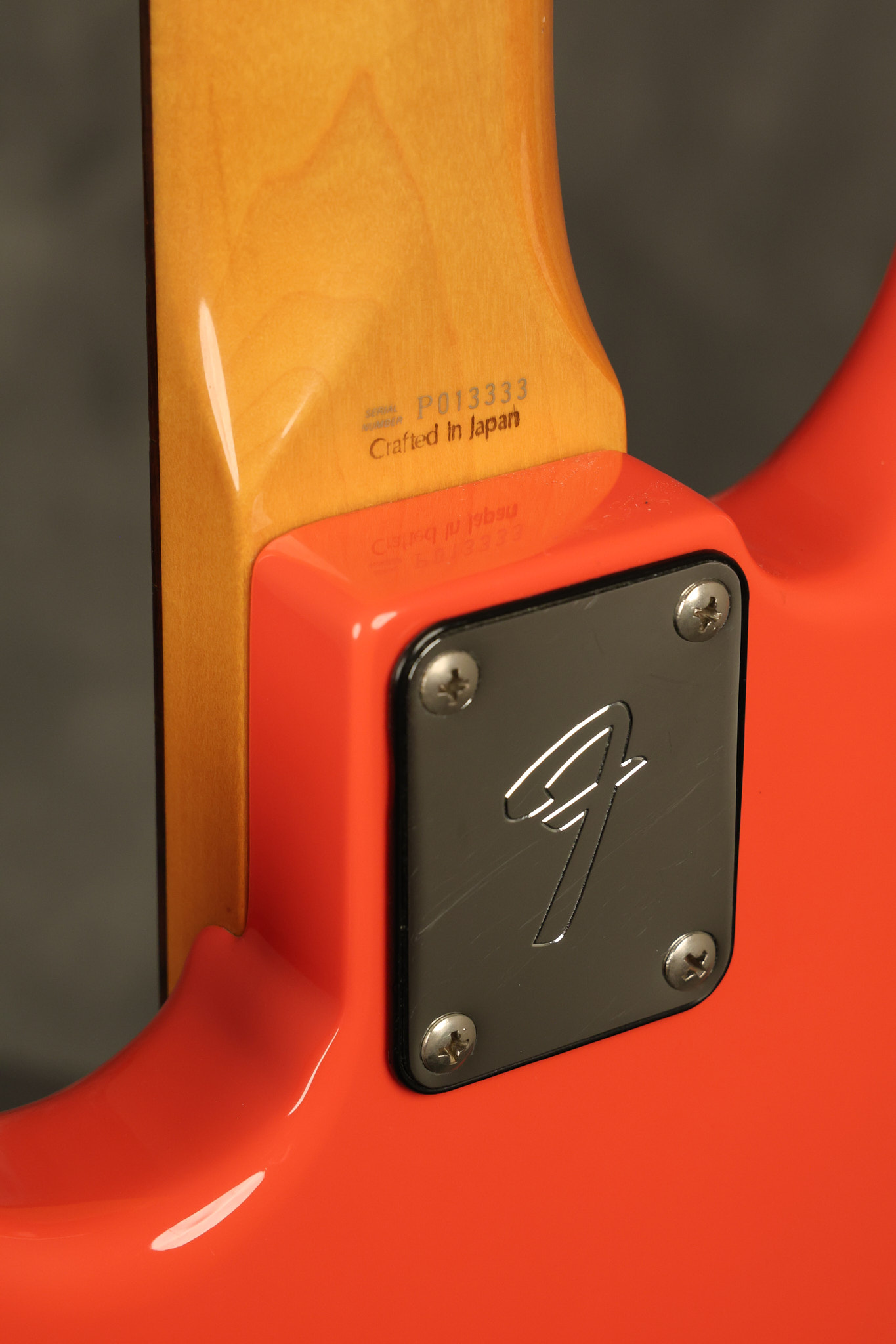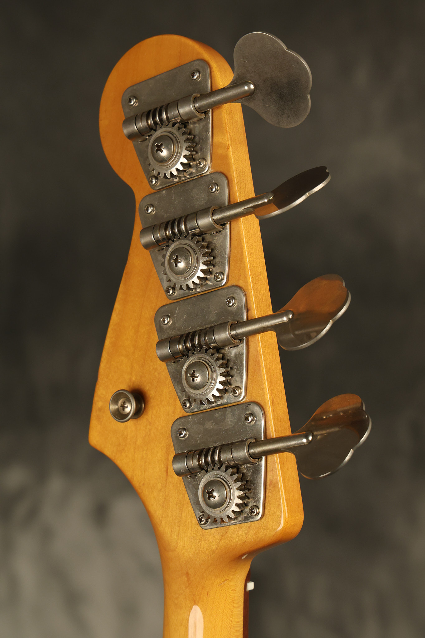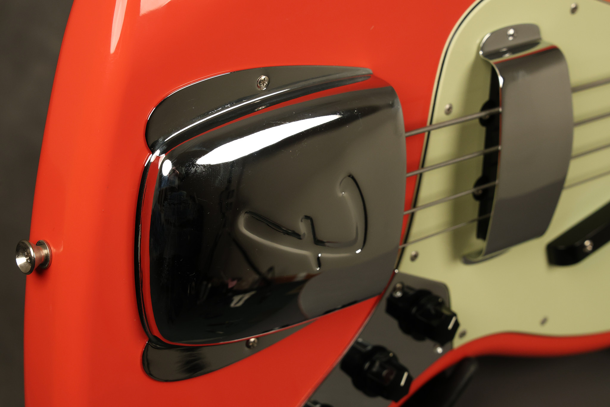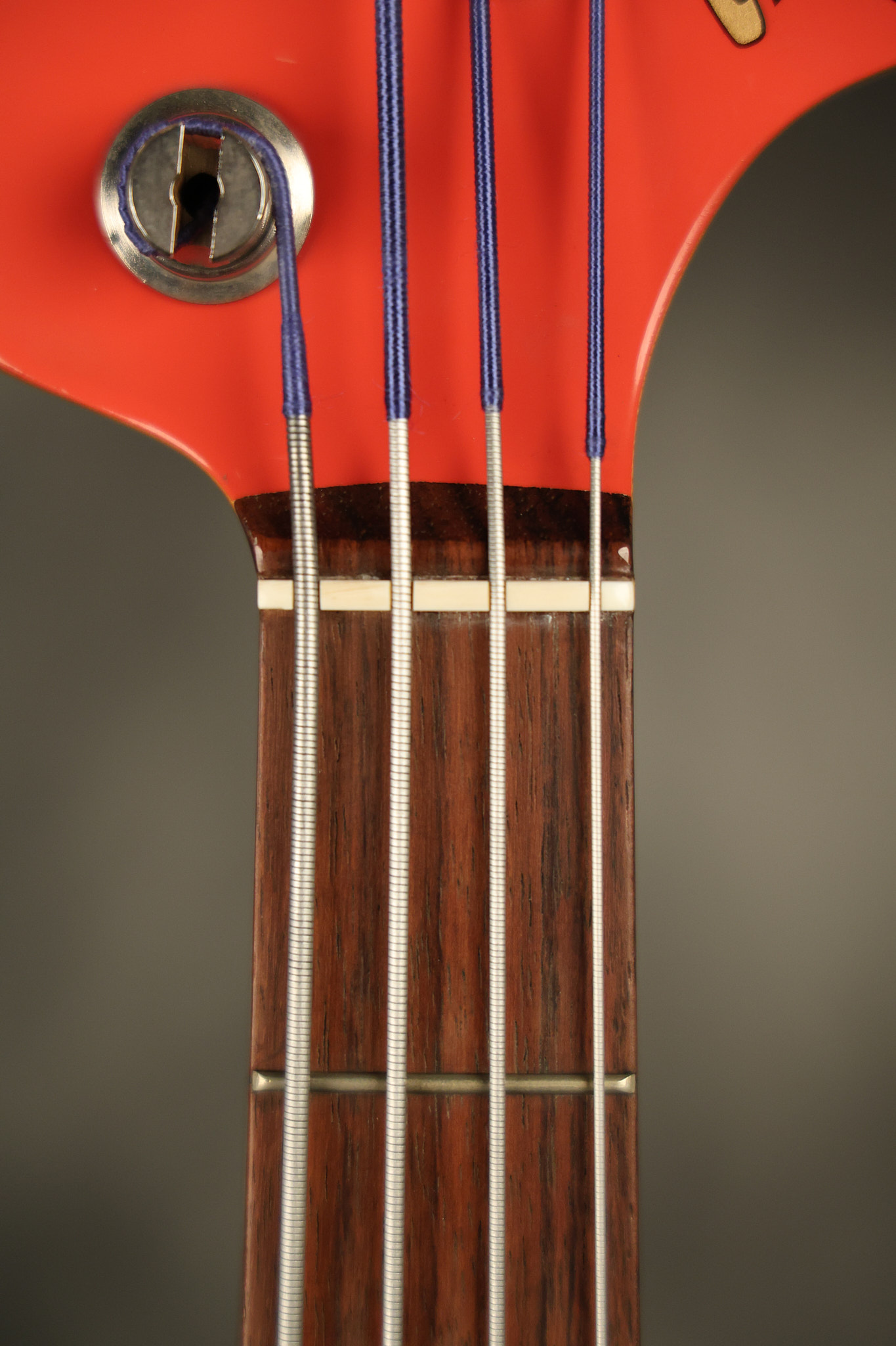 2005 Fender Crafted in Japan '62 Reissue Jazz Bass in Fiesta Red. It has a great playing neck with great frets. It's all original and 100% complete along with its original hardshell case. It's in EXCELLENT condition with only a couple of small surface blemsihes, including finish cracks on the lower bass side contour of the body, and a few small marks on the underside of the headstock. Everything remains structurally sound with no breaks or repairs. All electronics work and sound great.