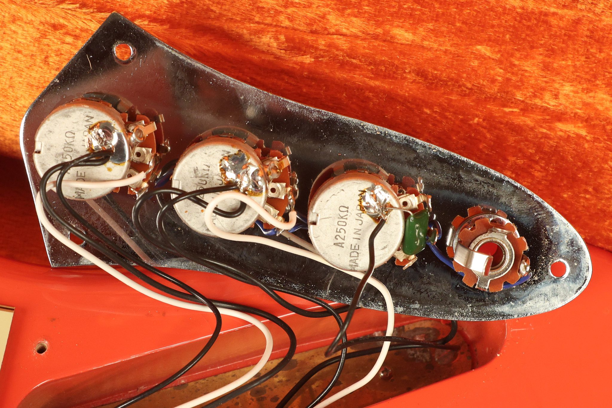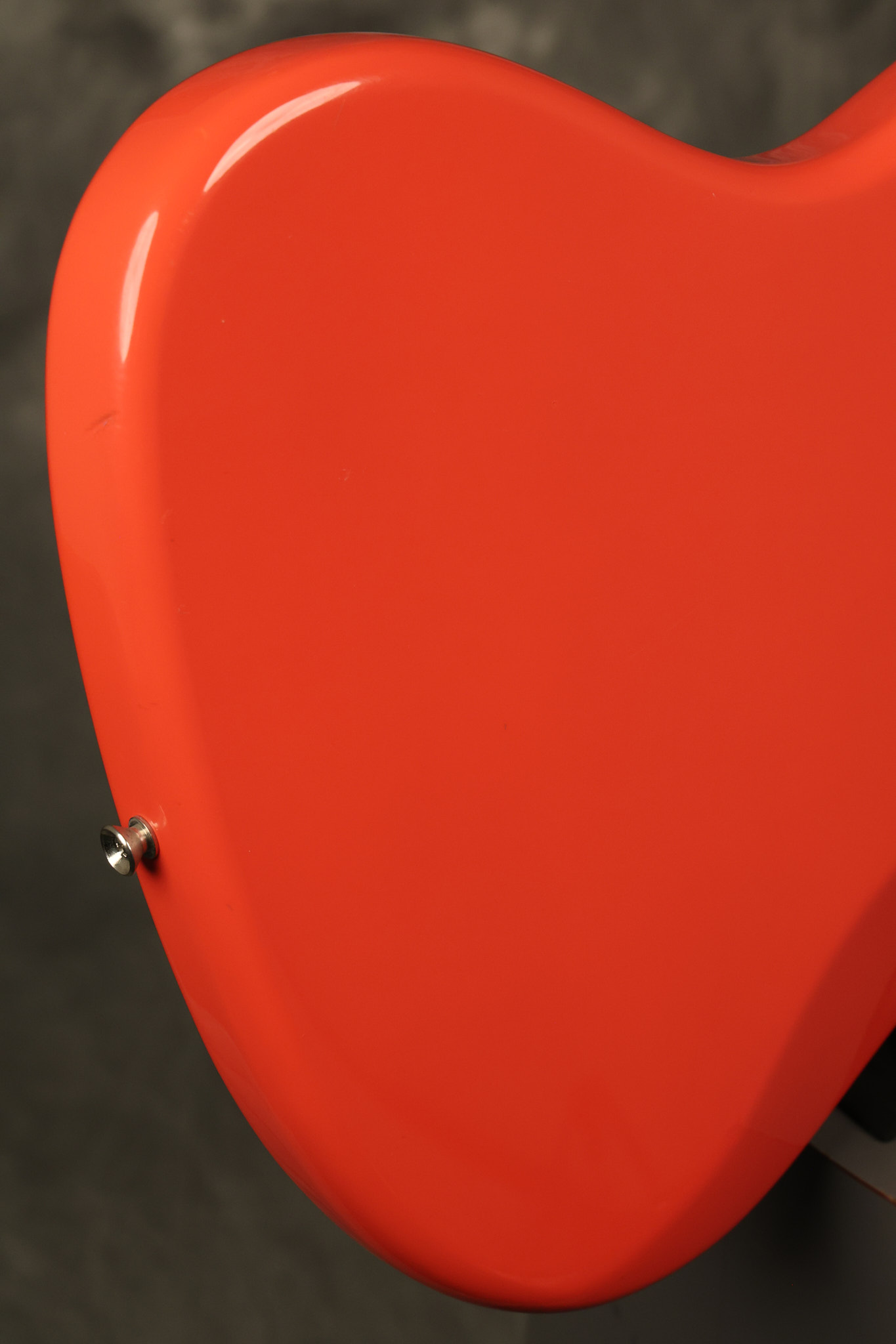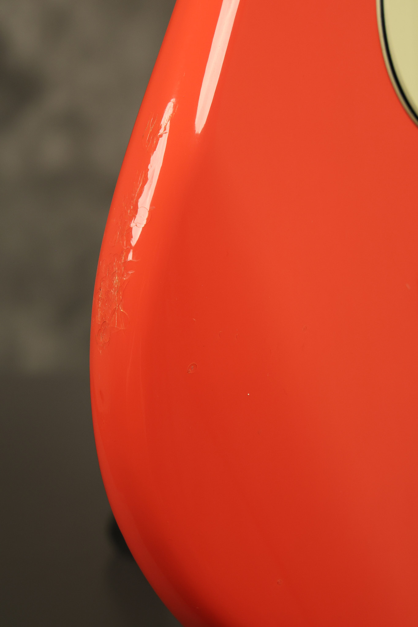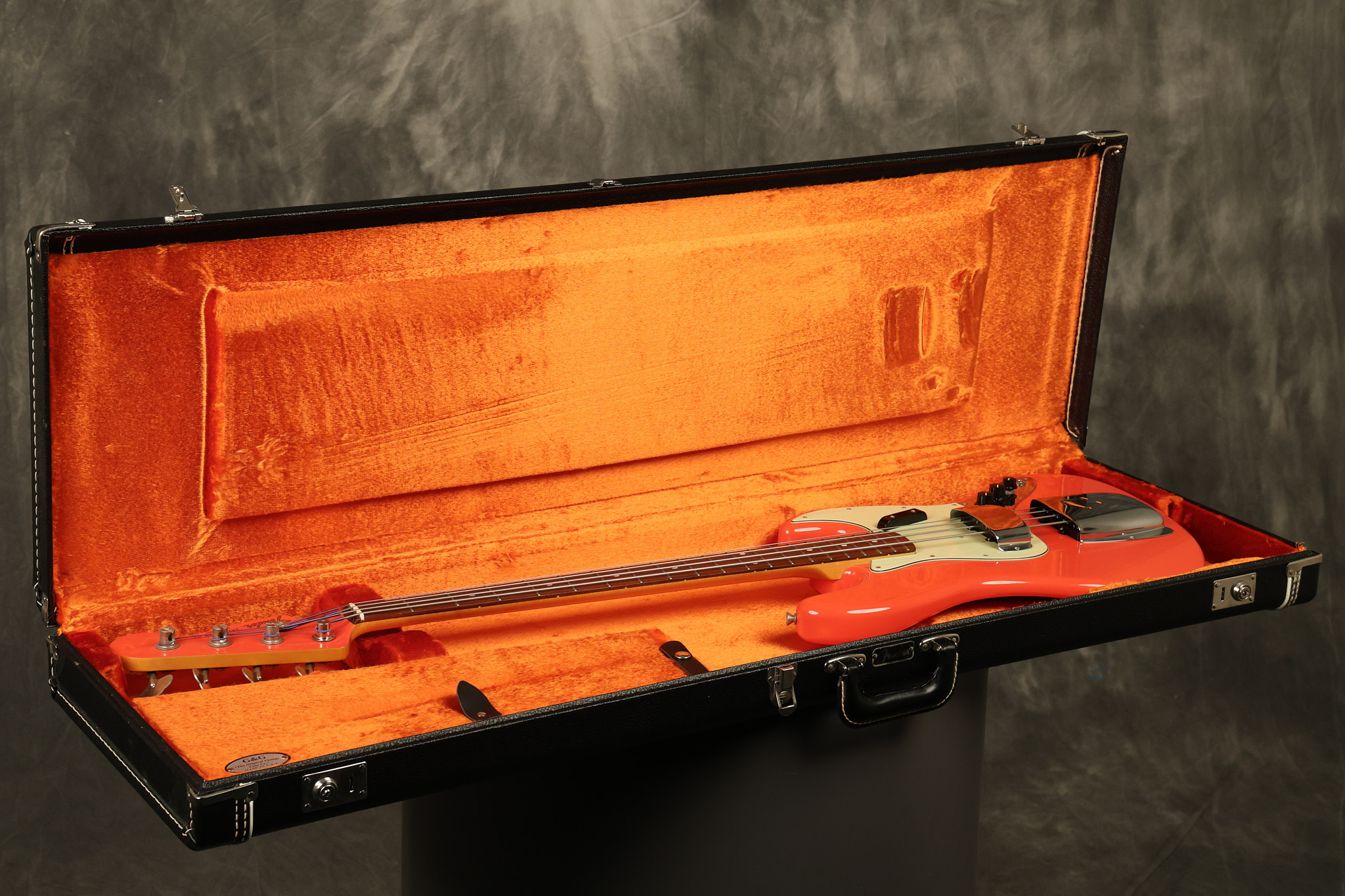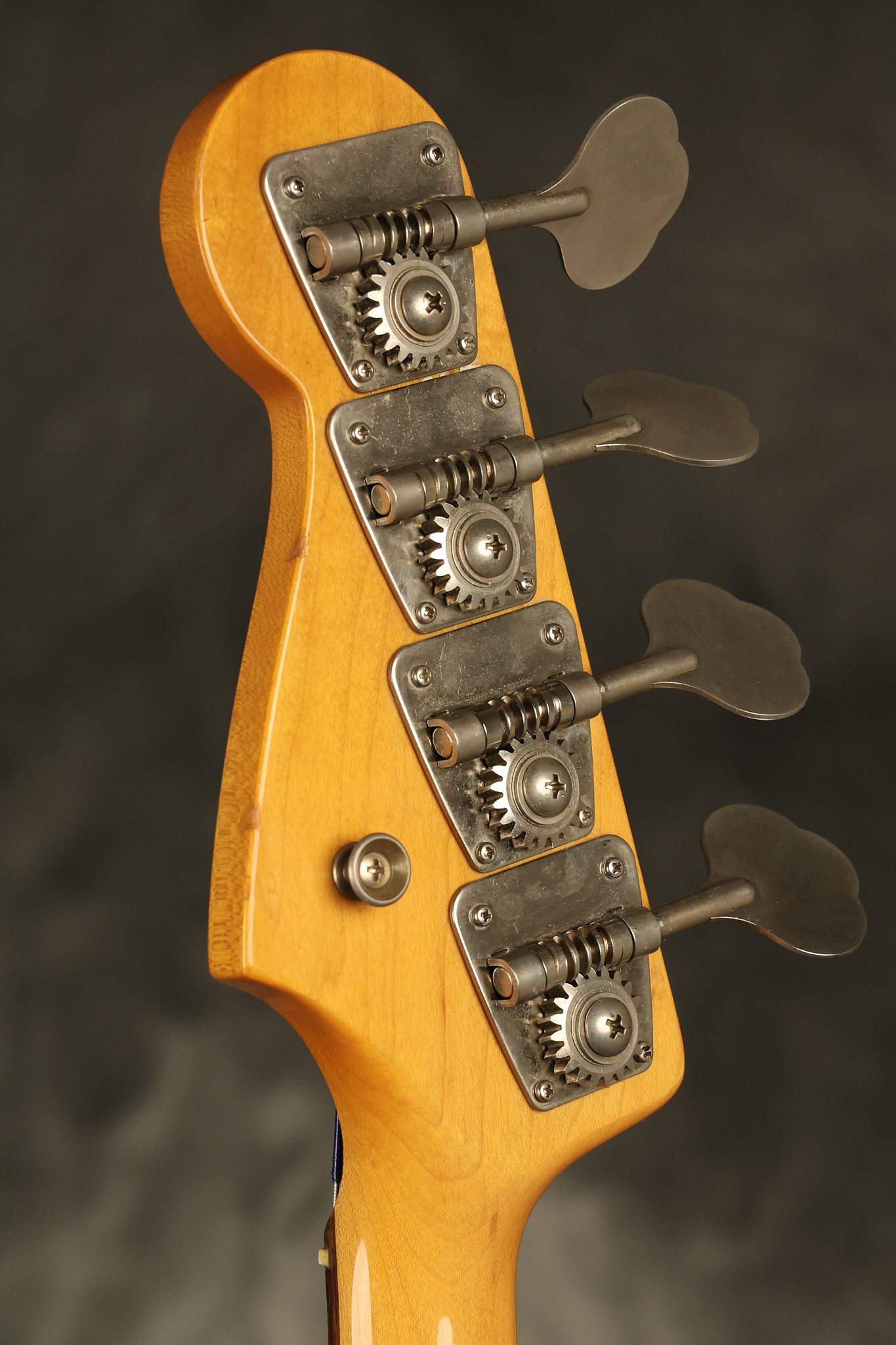 2005 Fender Crafted in Japan '62 Reissue Jazz Bass in Fiesta Red. It has a great playing neck with great frets. It's all original and 100% complete along with its original hardshell case. It's in EXCELLENT condition with only a couple of small surface blemsihes, including finish cracks on the lower bass side contour of the body, and a few small marks on the underside of the headstock. Everything remains structurally sound with no breaks or repairs. All electronics work and sound great.