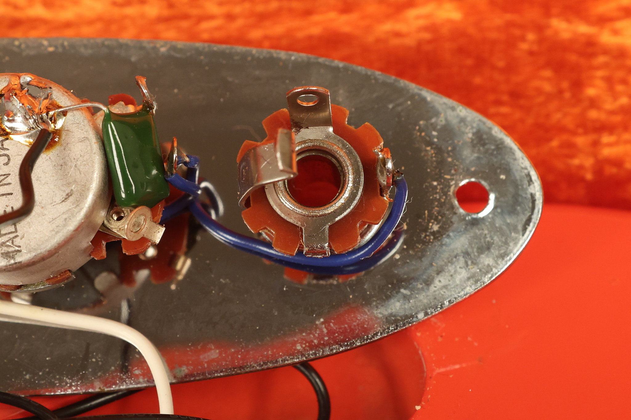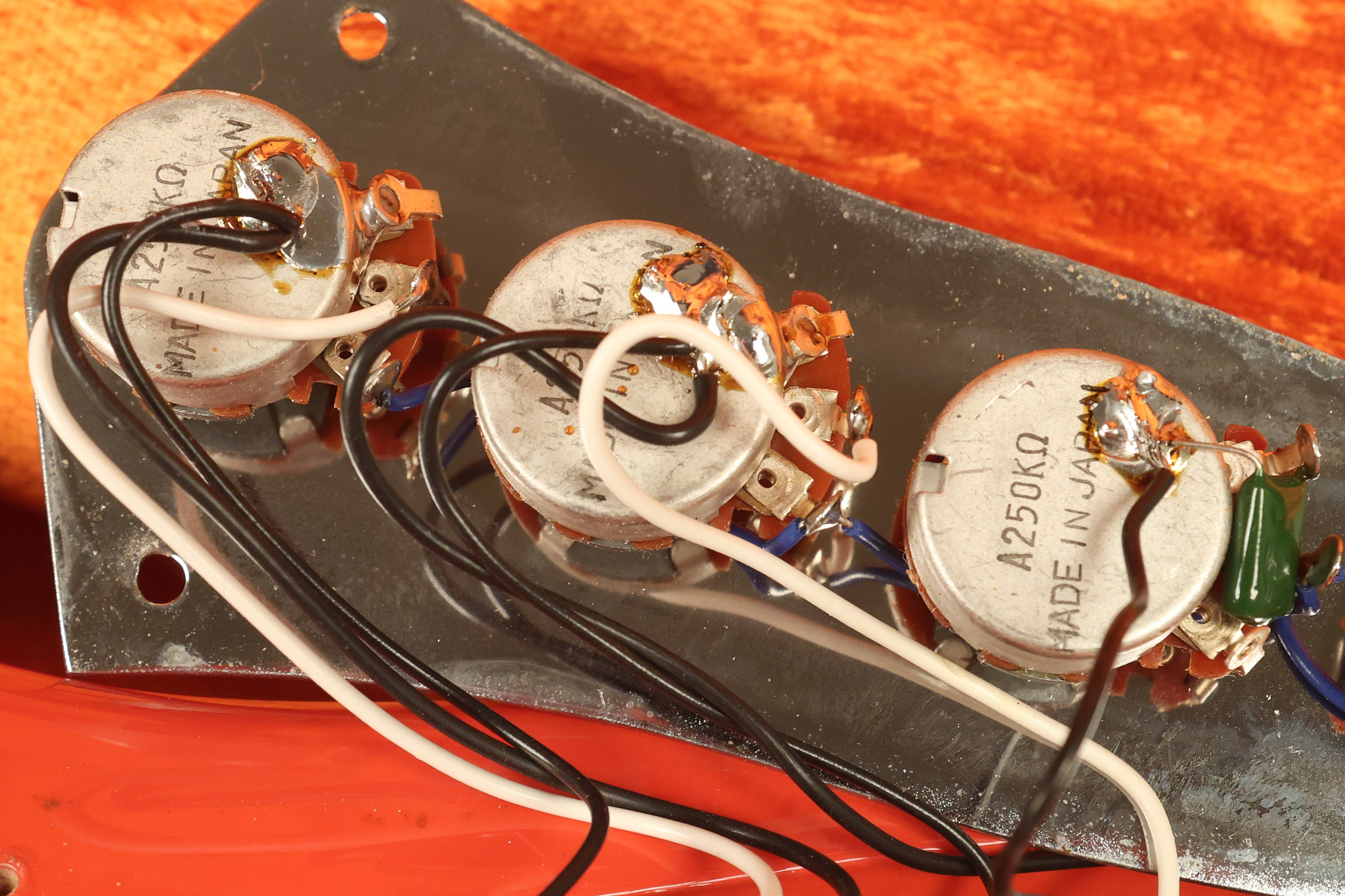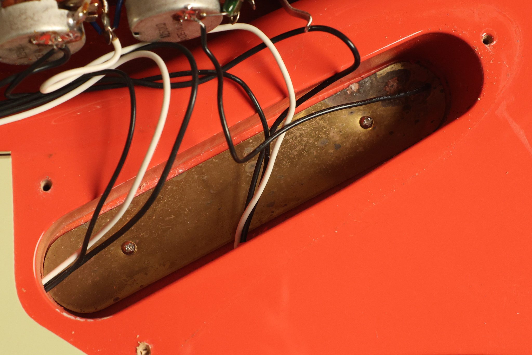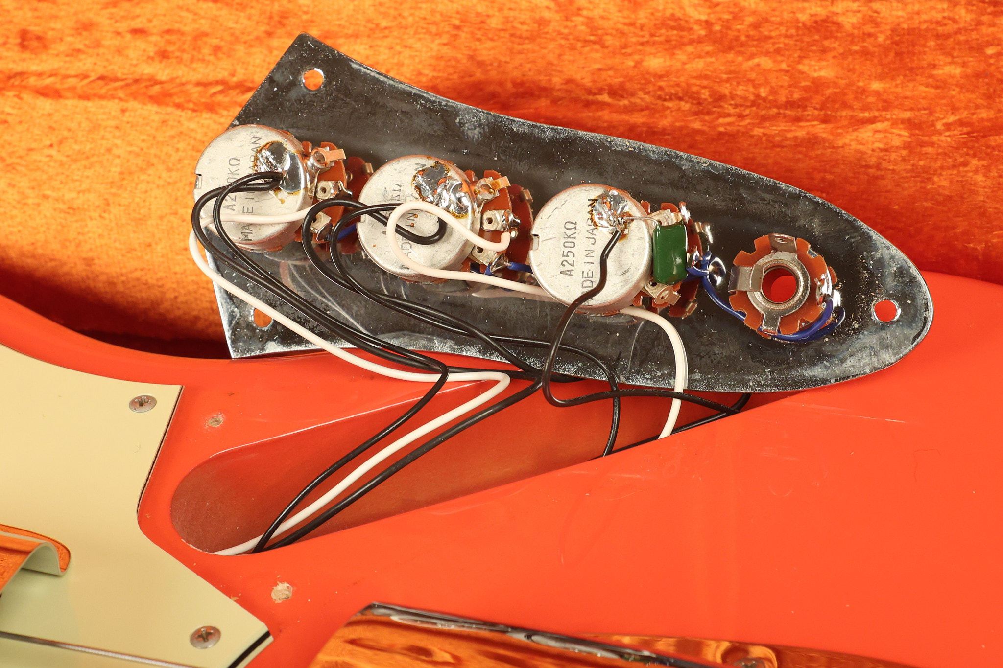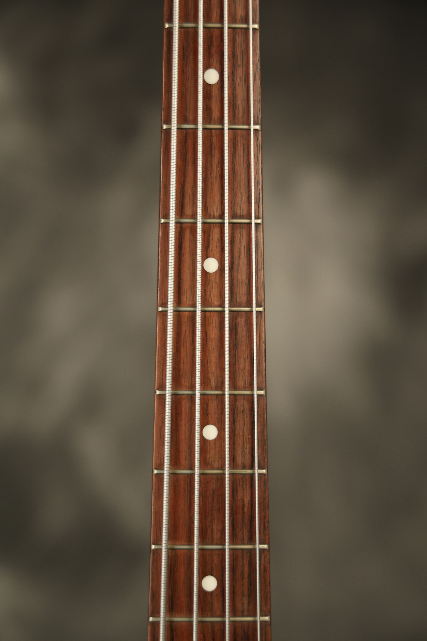 2005 Fender Crafted in Japan '62 Reissue Jazz Bass in Fiesta Red. It has a great playing neck with great frets. It's all original and 100% complete along with its original hardshell case. It's in EXCELLENT condition with only a couple of small surface blemsihes, including finish cracks on the lower bass side contour of the body, and a few small marks on the underside of the headstock. Everything remains structurally sound with no breaks or repairs. All electronics work and sound great.
