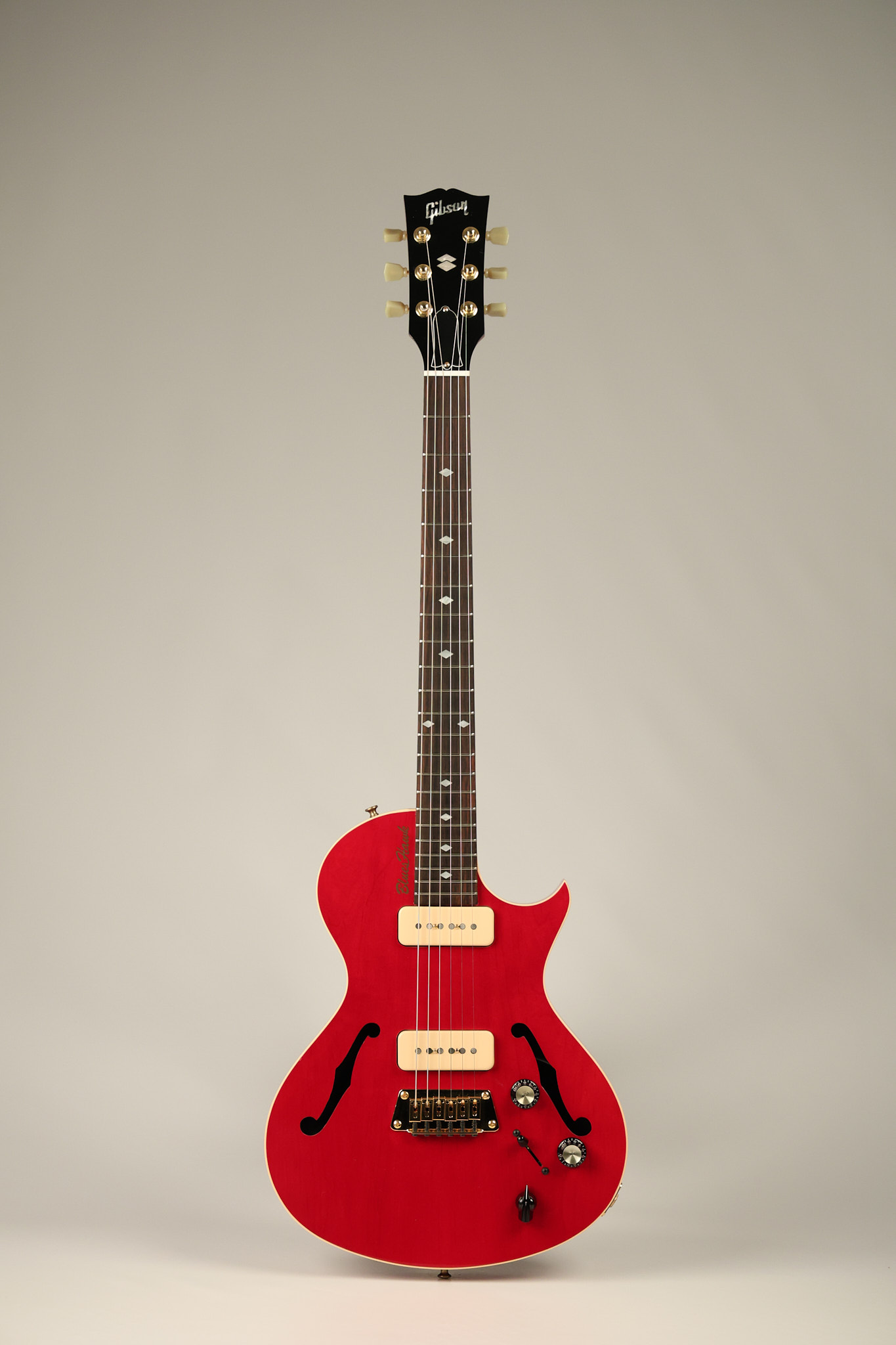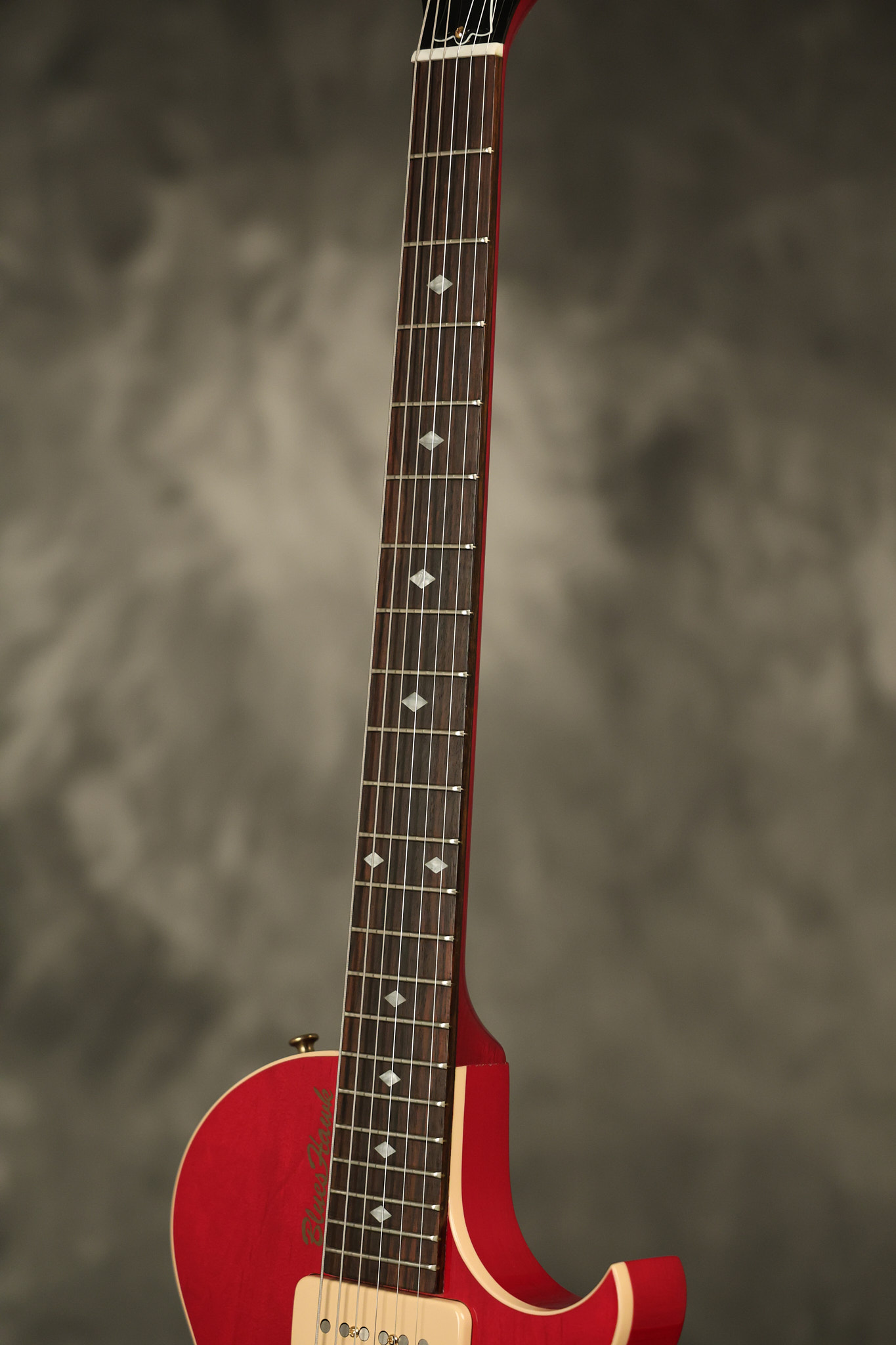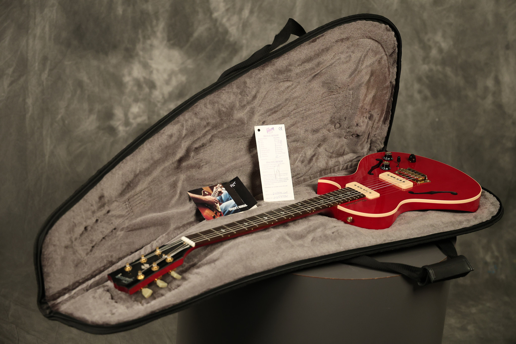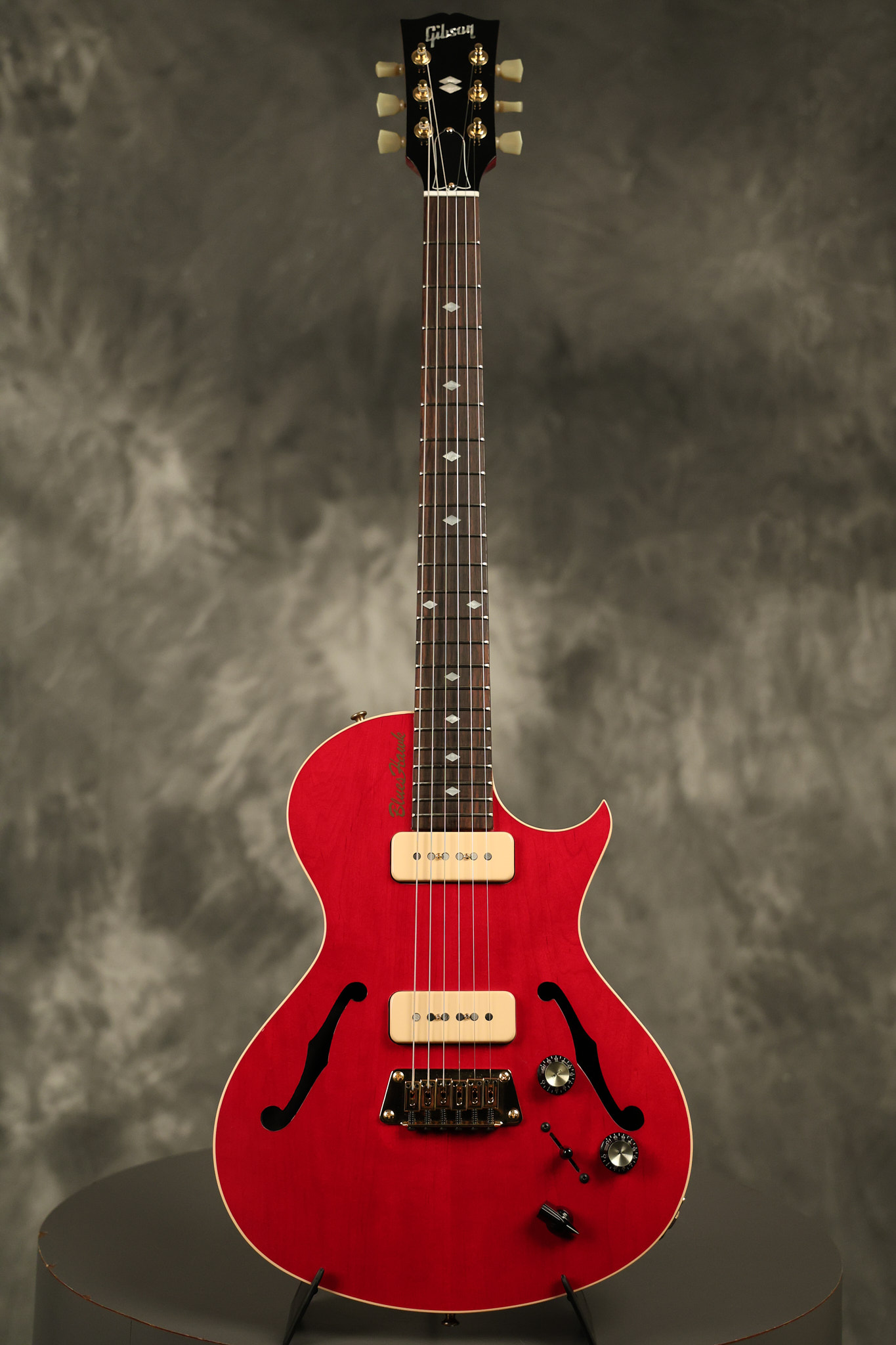 2005 Gibson Blueshawk in Heritage Cherry. It has a great playing neck with great frets. It's all original and 100% complete along with its original Gibson gigbag and papers. It's in NEAR MINT condition with only very little extremely minor cosmetic wear. The protective plastic is still on the back panels. Everything remains structurally sound with no cracks, breaks or repairs. All electronics work and sound great.
