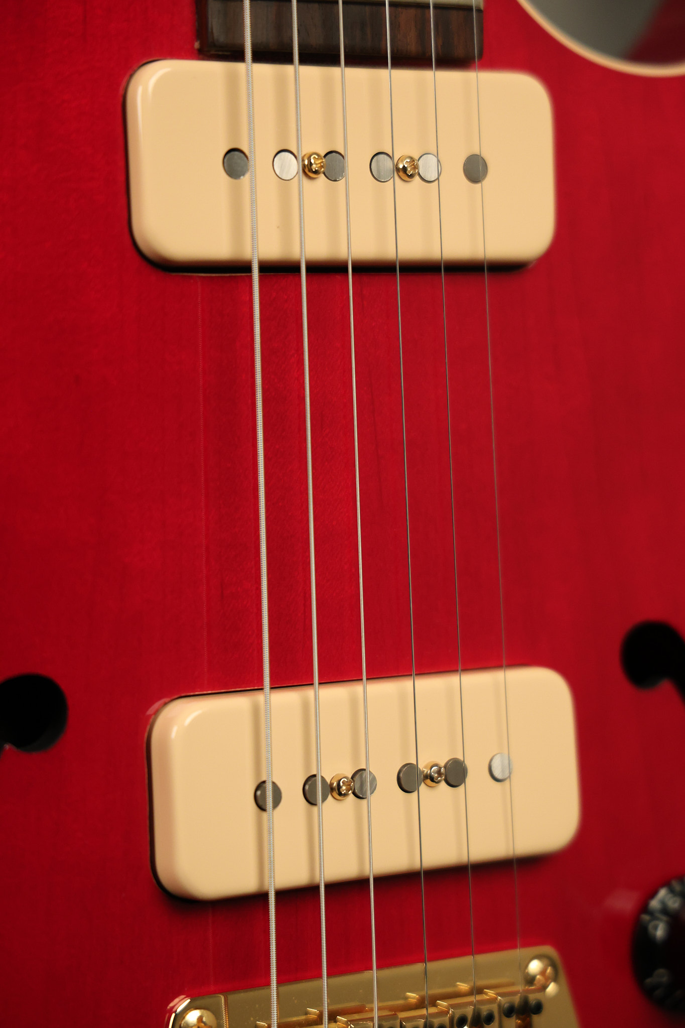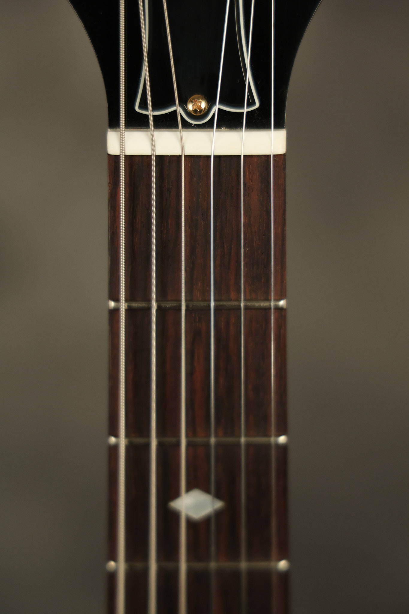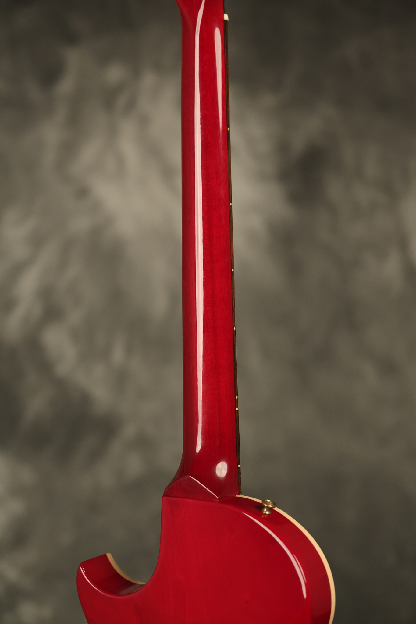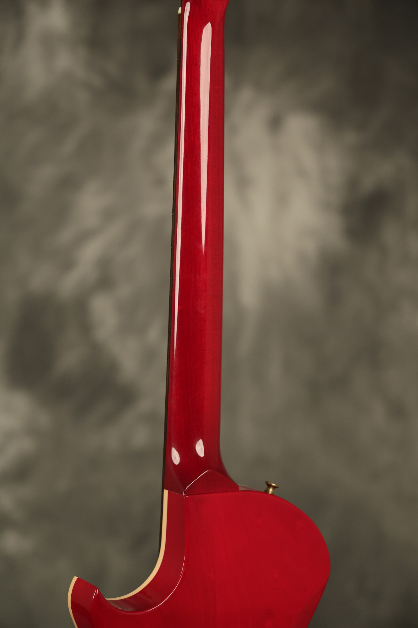 2005 Gibson Blueshawk in Heritage Cherry. It has a great playing neck with great frets. It's all original and 100% complete along with its original Gibson gigbag and papers. It's in NEAR MINT condition with only very little extremely minor cosmetic wear. The protective plastic is still on the back panels. Everything remains structurally sound with no cracks, breaks or repairs. All electronics work and sound great.