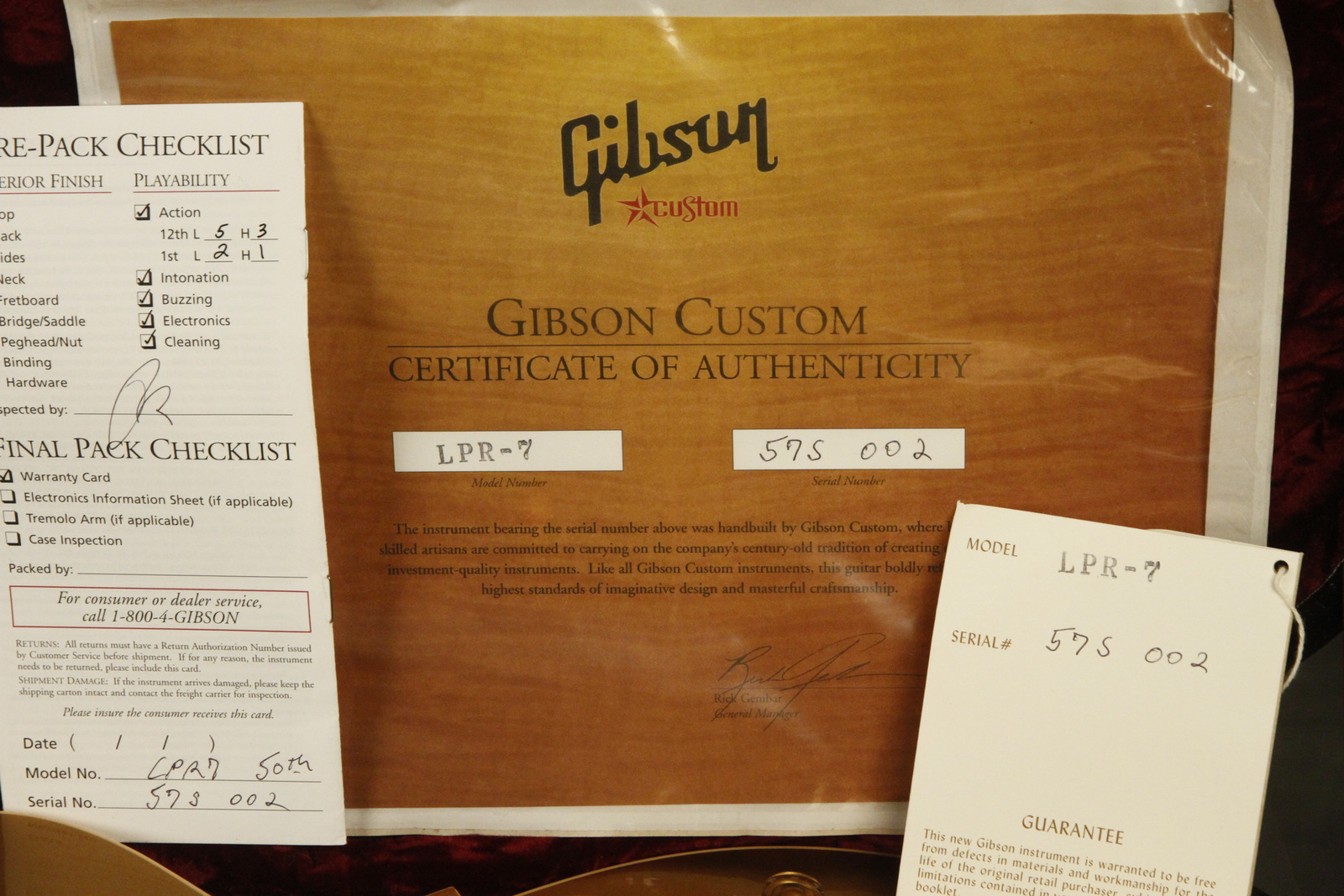 2007 Gibson Custom Shop 50th Anniversary '57 Les Paul Standard reissue in an ALL GOLD finish. This is serial number #002 in a Limited run of only 157 Standards. It has a great playing neck with great frets. It's all original and 100% complete along with its original hardshell case, certificate of authenticity and everything else that was included when it was sold new. It's in NEAR MINT condition with only a few tiny barely noticeable surface blemishes. Everything remains structurally sound with no cracks, breaks or repairs. All electronics work and sound great.