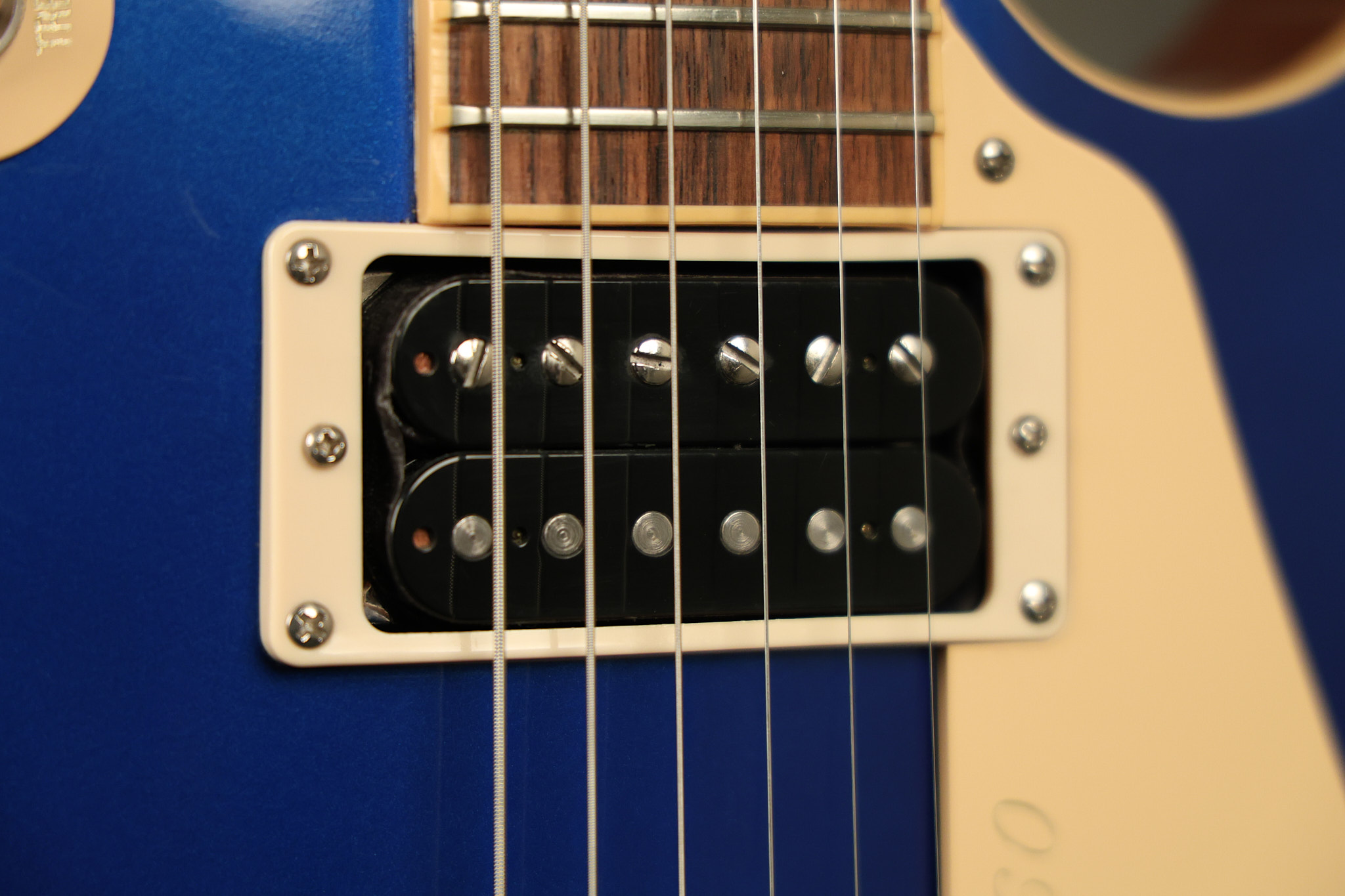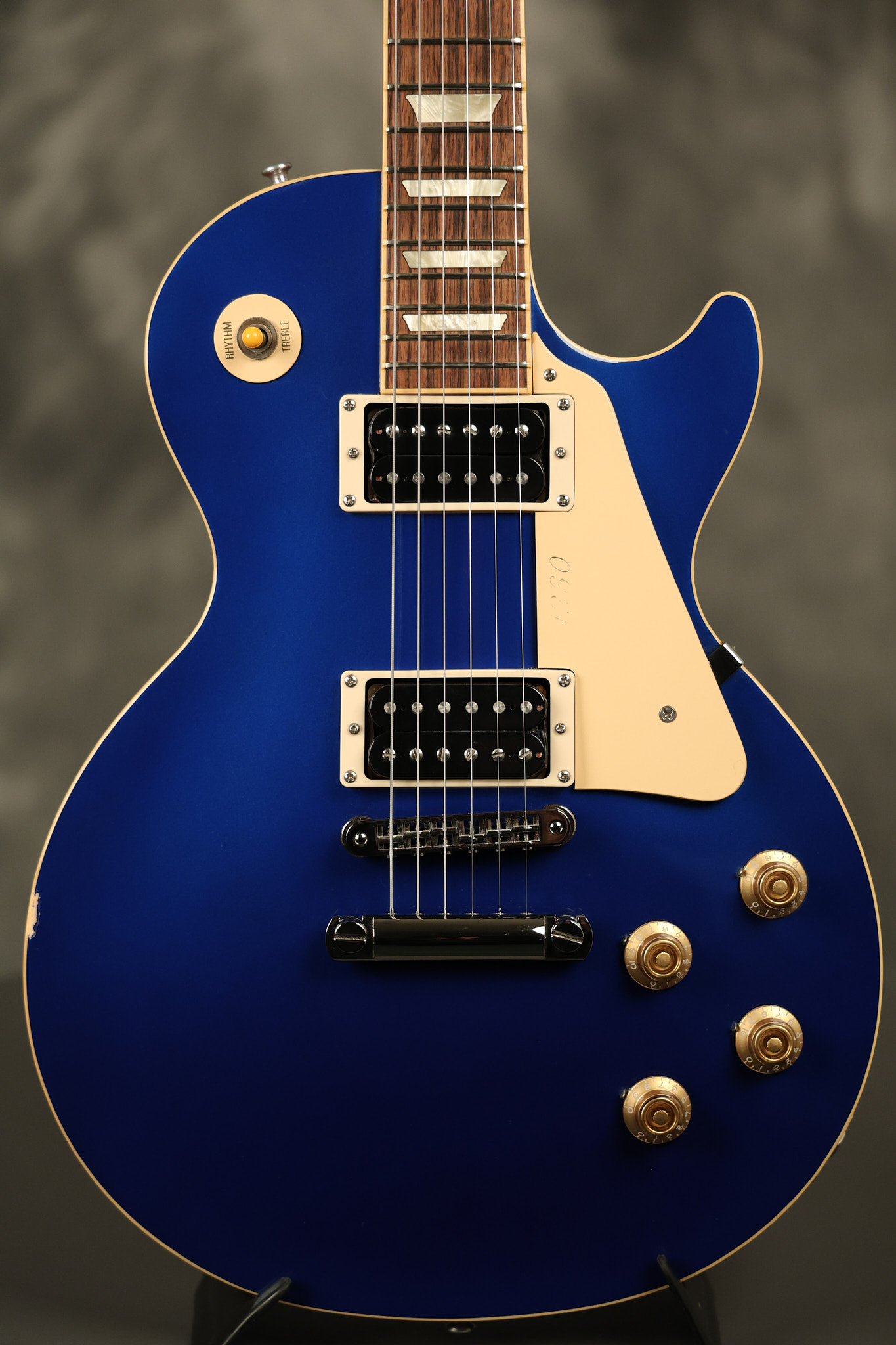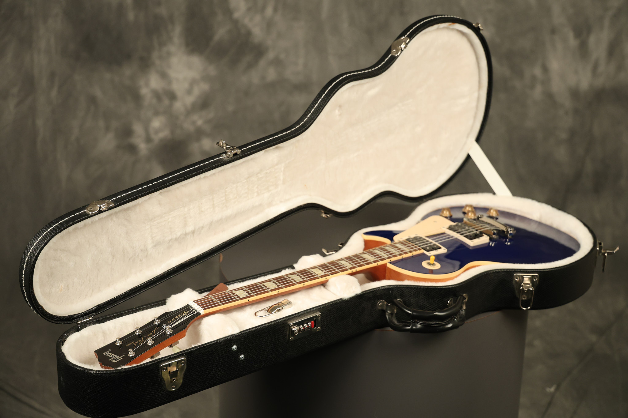 2007 Gibson Les Paul Classic in Sapphire Blue which was an exclusive color made for Musician's Friend. It has a great playing neck with great frets. It's all original and 100% complete along with its original hardshell case (one broken latch). It's in very good condition with a few nicks + dings and other minor cosmetic wear. The guitar itself remains structurally sound with no cracks, breaks or repairs. All electronics work and sound great.