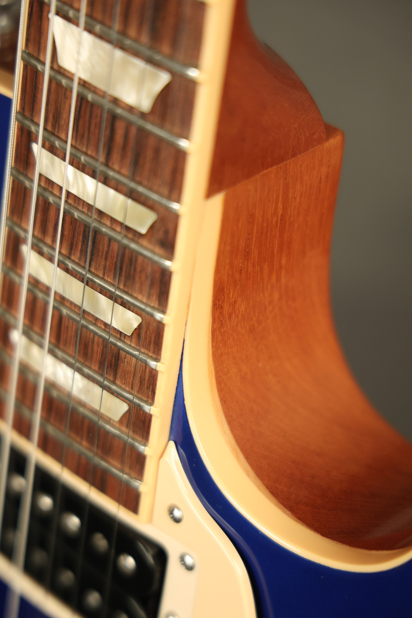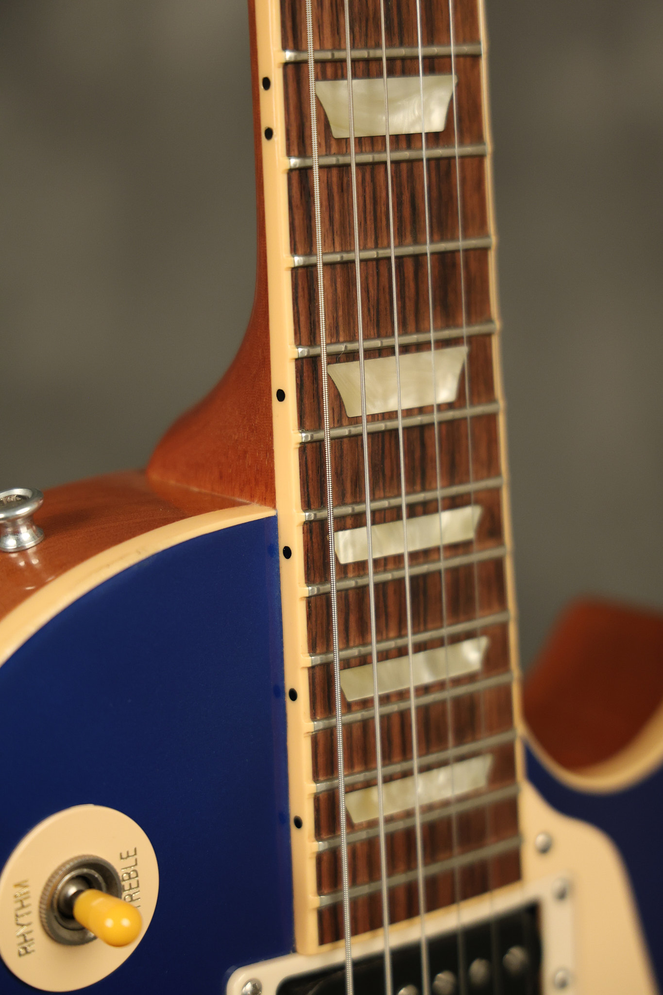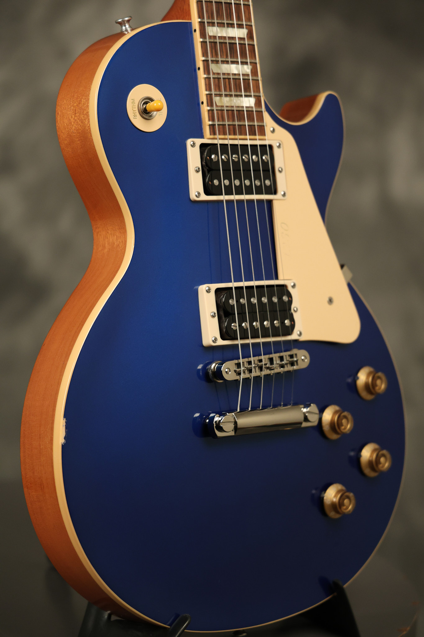 2007 Gibson Les Paul Classic in Sapphire Blue which was an exclusive color made for Musician's Friend. It has a great playing neck with great frets. It's all original and 100% complete along with its original hardshell case (one broken latch). It's in very good condition with a few nicks + dings and other minor cosmetic wear. The guitar itself remains structurally sound with no cracks, breaks or repairs. All electronics work and sound great.