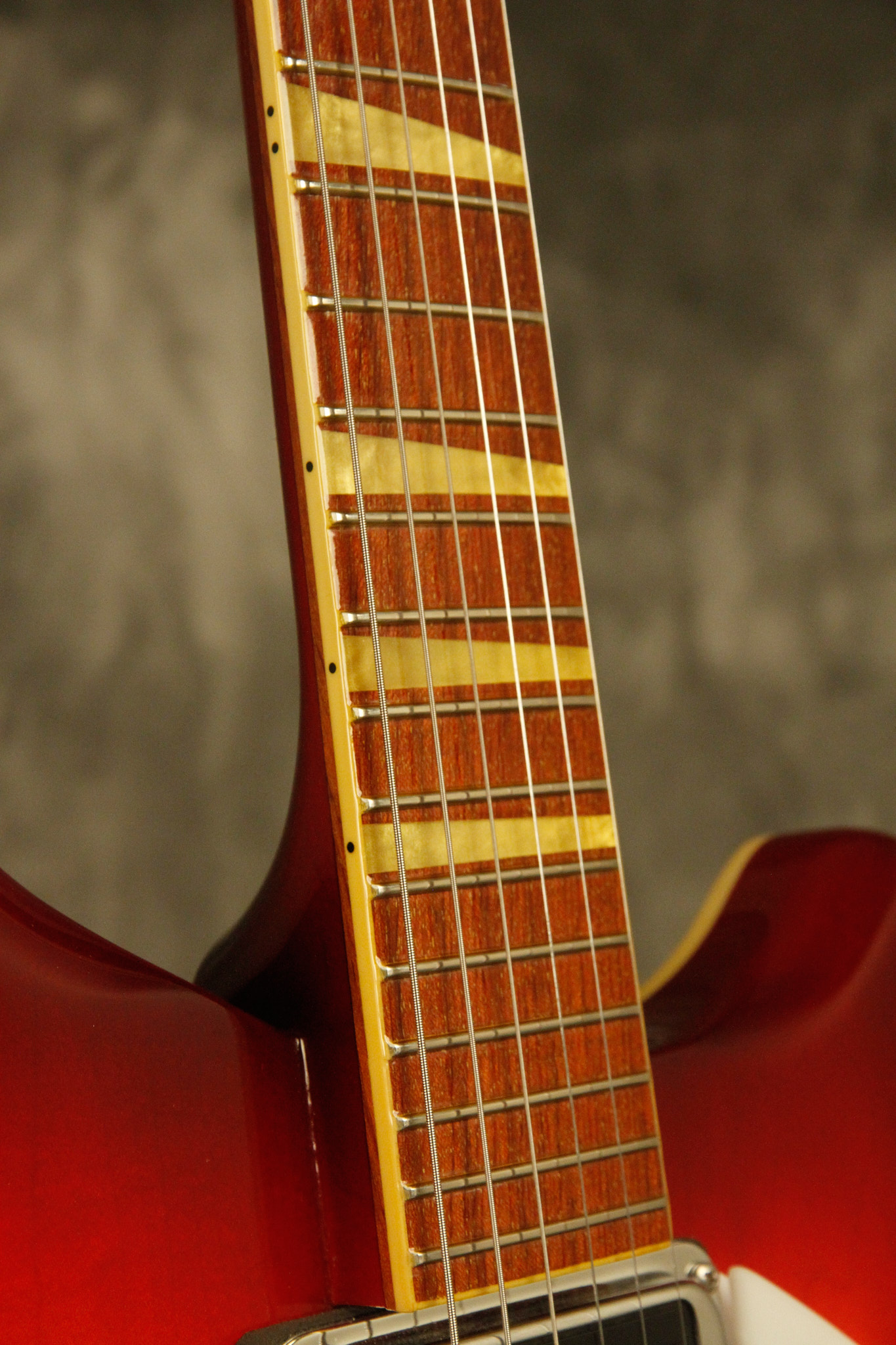 2008 Rickenbacker 360 in the Color of the Year Amber Fireglo. It has a great playing neck with great frets. It's all original and 100% complete along with its original hardshell case. It's in EXCELLENT condition with only extremely minor barely noticeable nicks + dings and other extremely minor surface wear. Everything remains structurally sound with no cracks, breaks or repairs. All electronics work and sound great.