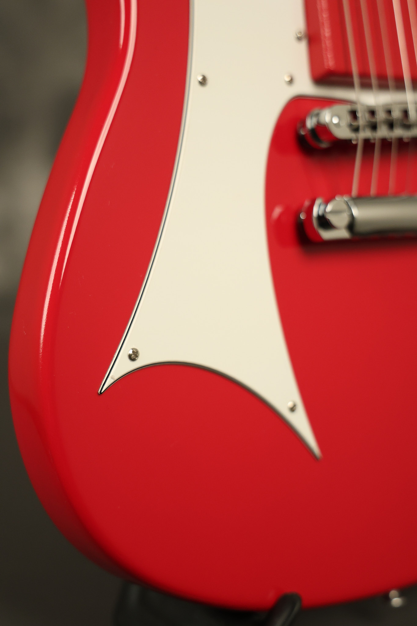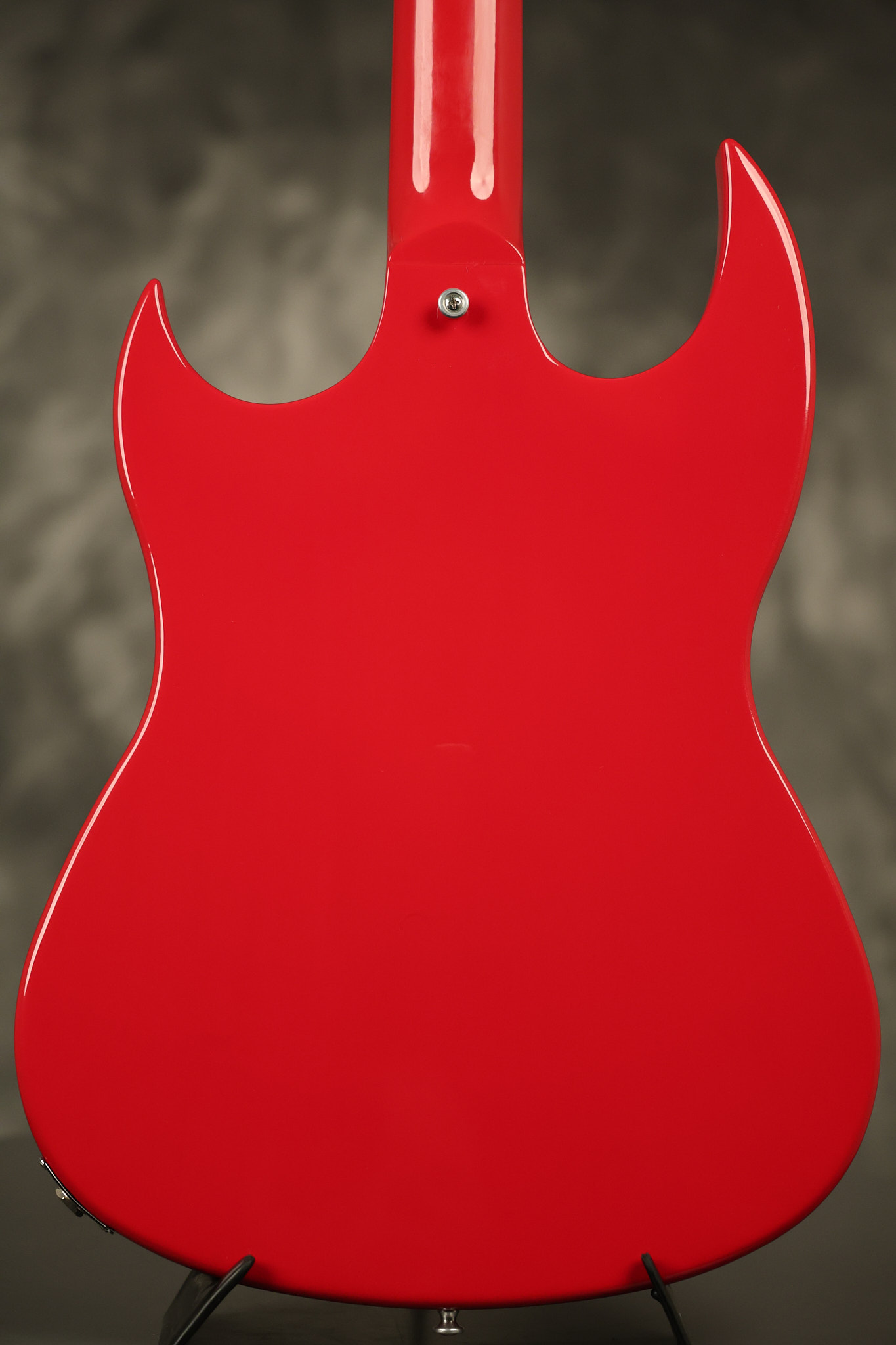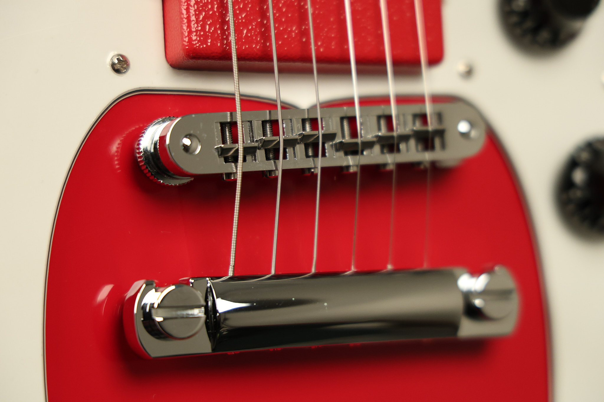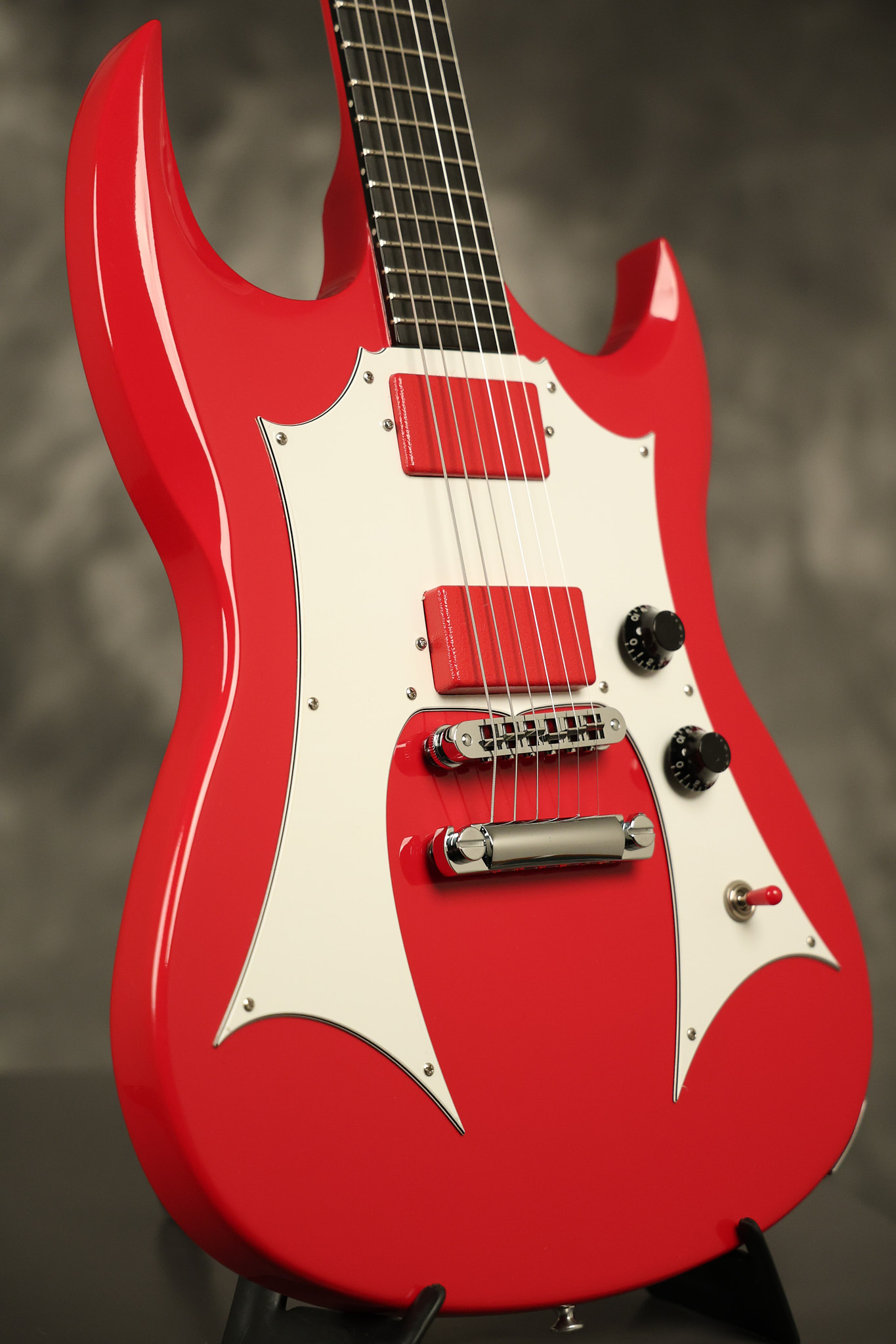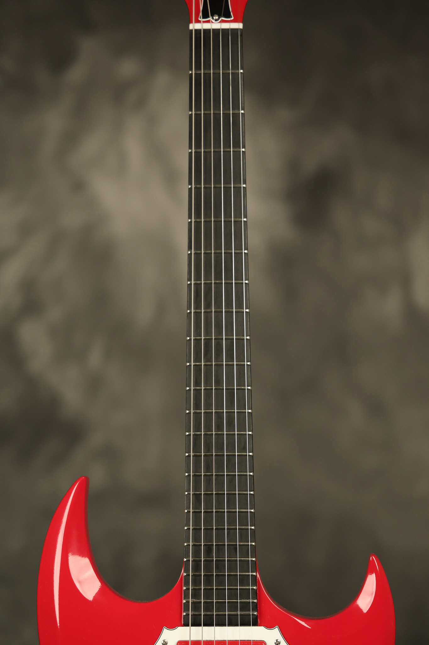 2009 Gibson Limited Run EYE guitar in Fire Engine Red. It has a great playing neck with great frets. It's all original and 100% complete along with its original certificate of authenticity and original hardshell case. It's in NEAR MINT condition with only very little extremely minor blemishes. The original protective plastic is still on the pickguard. Everything remains structurally sound with no cracks, breaks or repairs. All electronics work and sound great.
