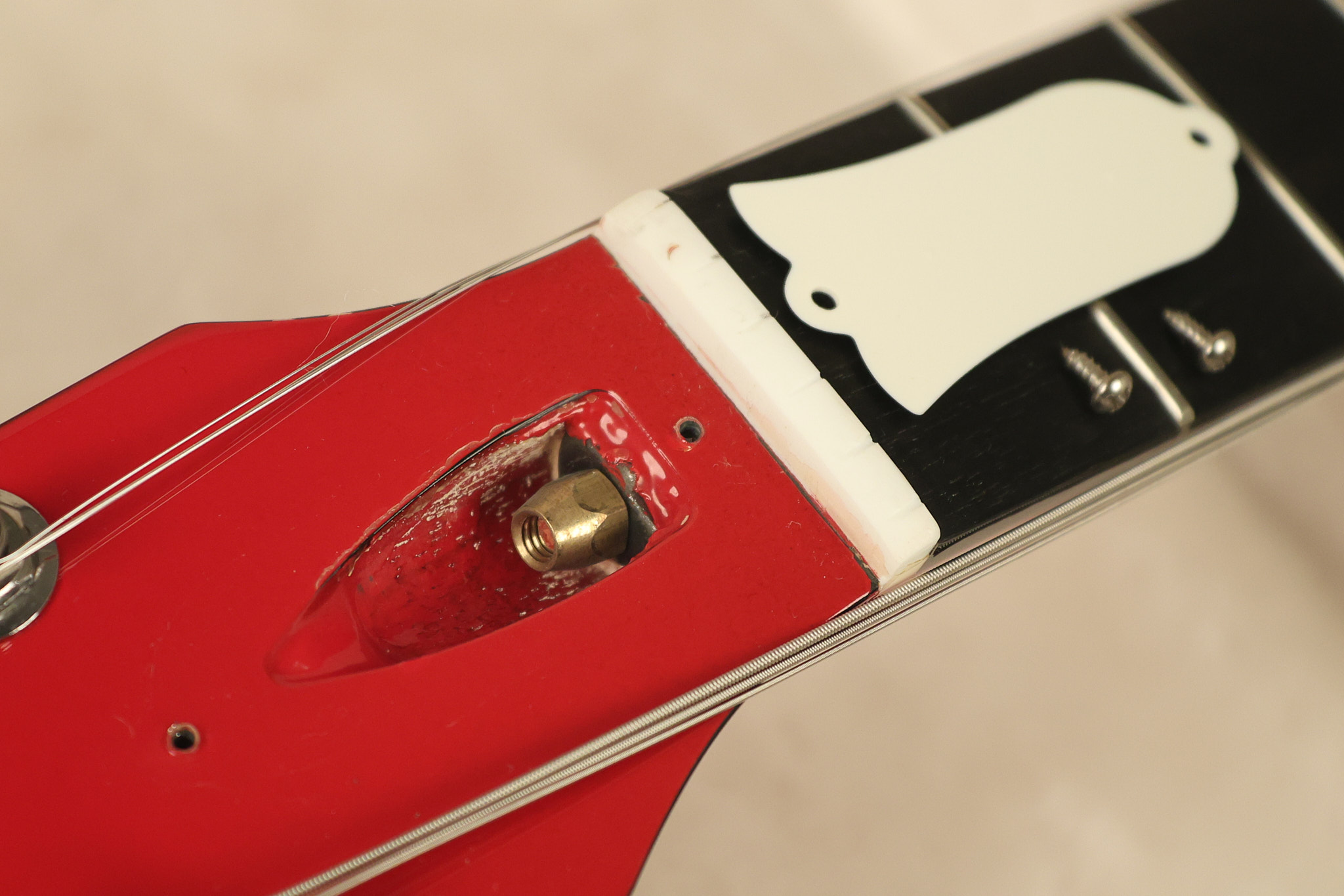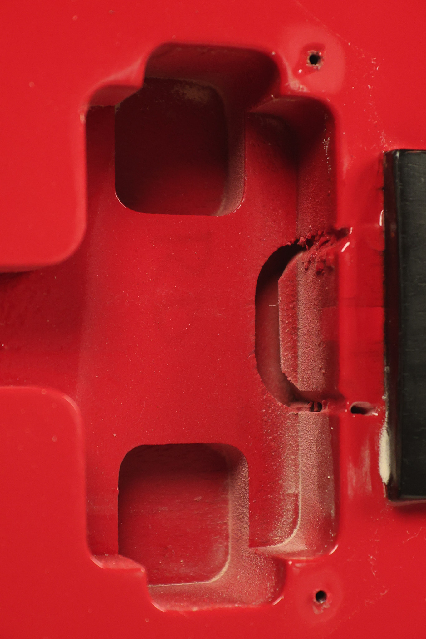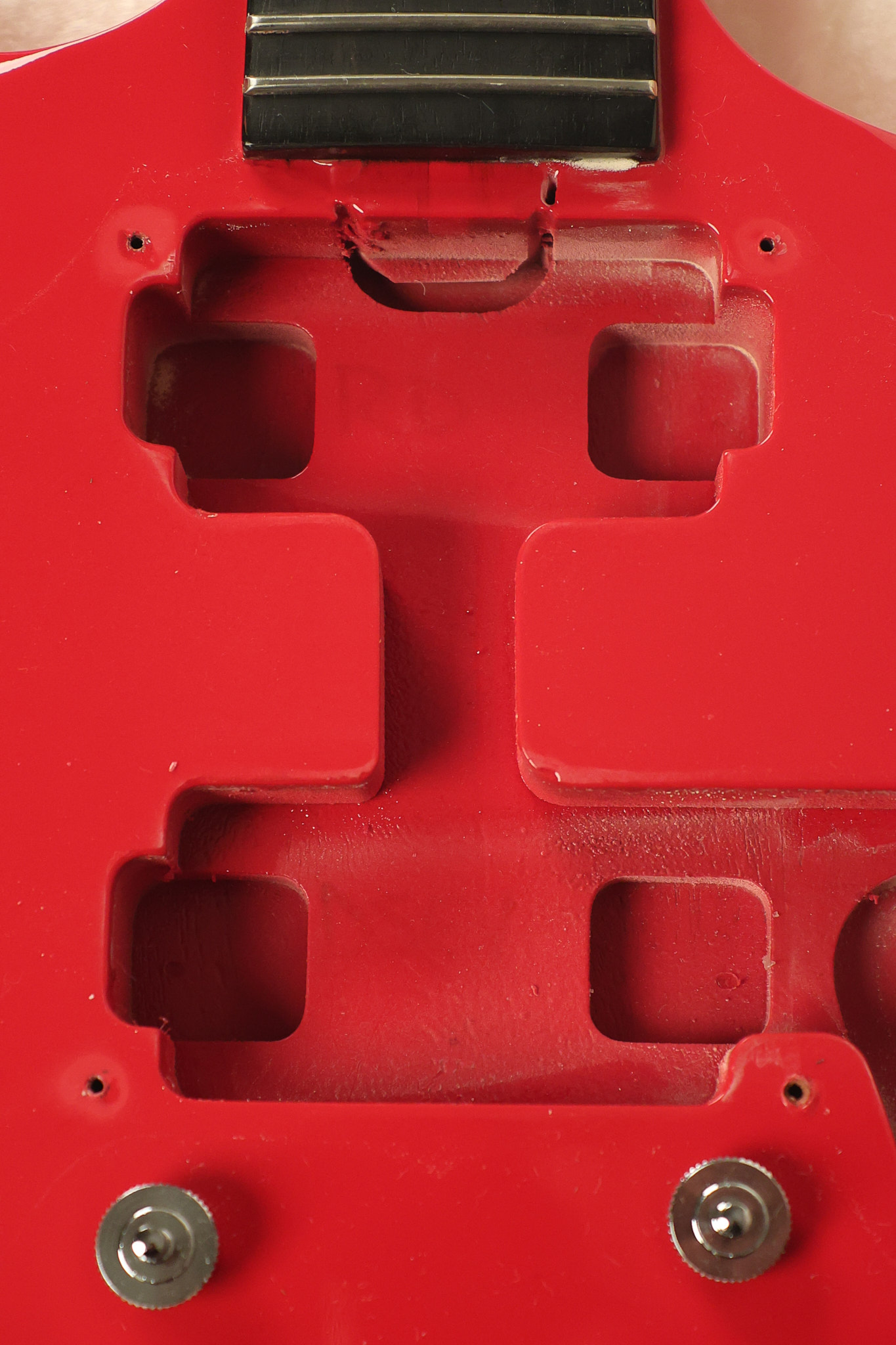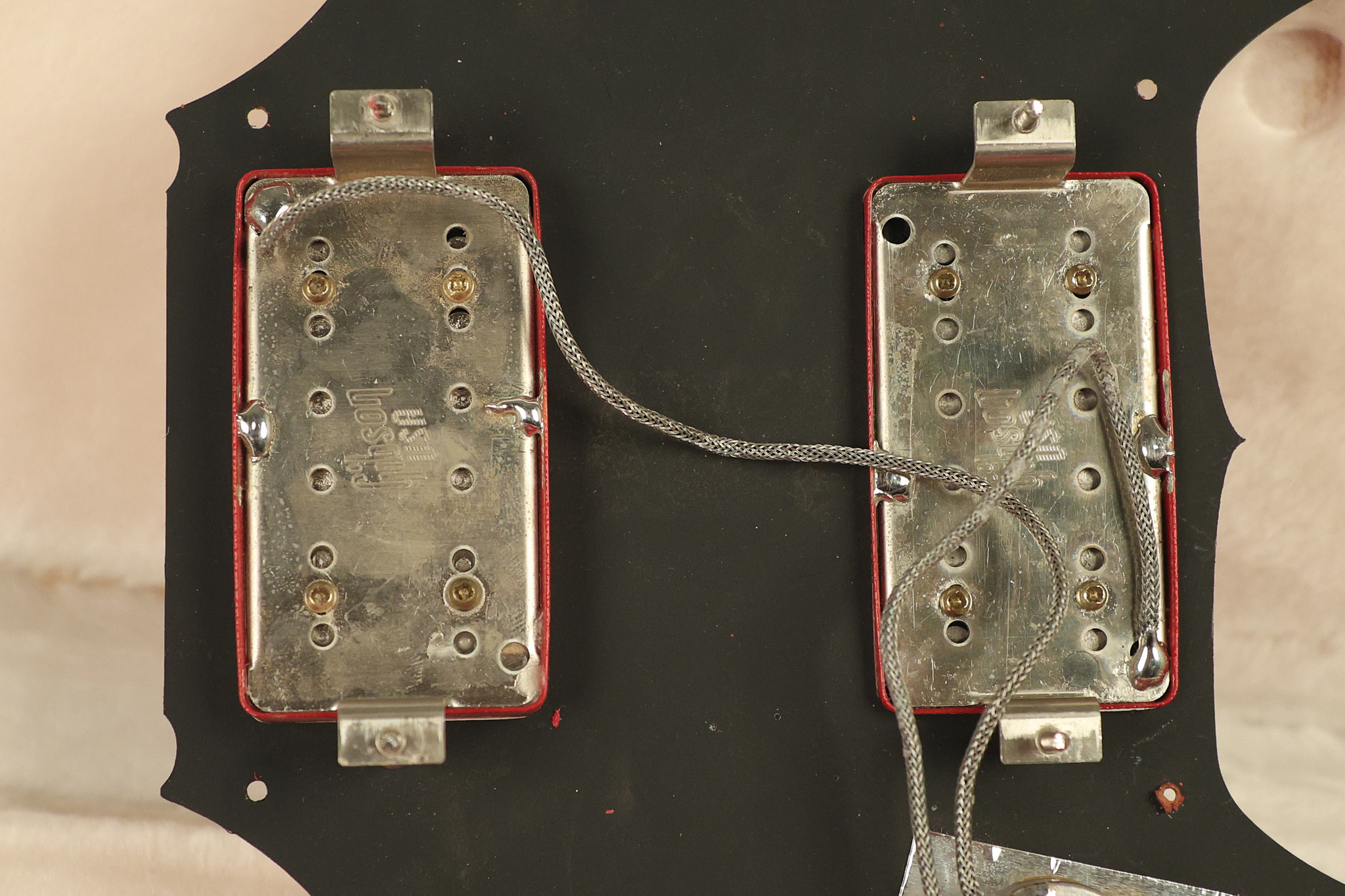 2009 Gibson Limited Run EYE guitar in Fire Engine Red. It has a great playing neck with great frets. It's all original and 100% complete along with its original certificate of authenticity and original hardshell case. It's in NEAR MINT condition with only very little extremely minor blemishes. The original protective plastic is still on the pickguard. Everything remains structurally sound with no cracks, breaks or repairs. All electronics work and sound great.