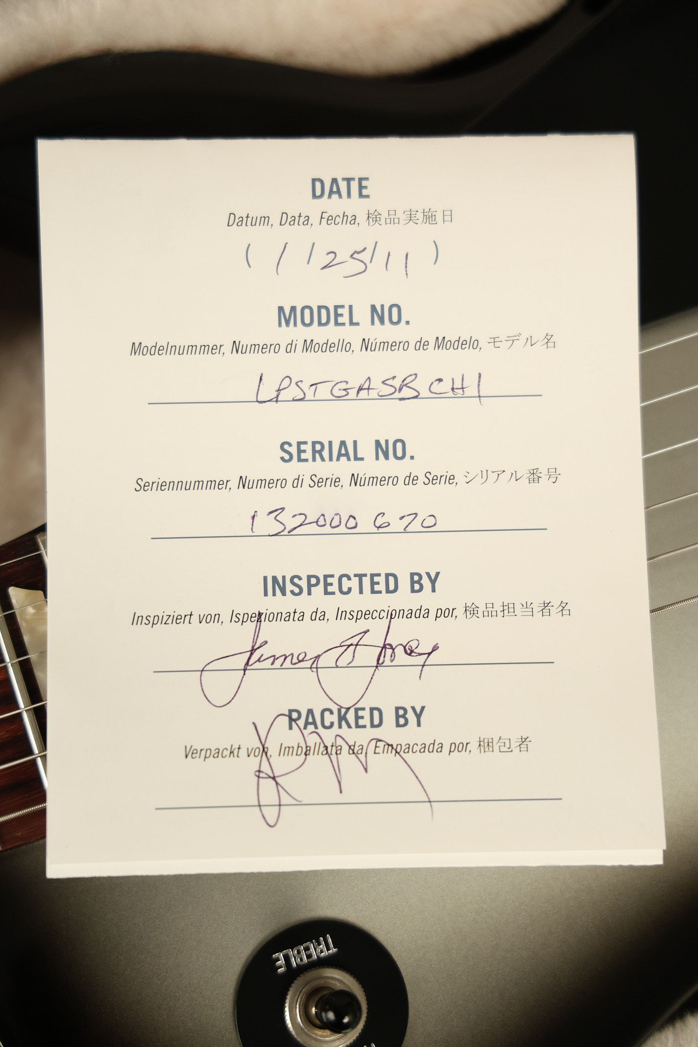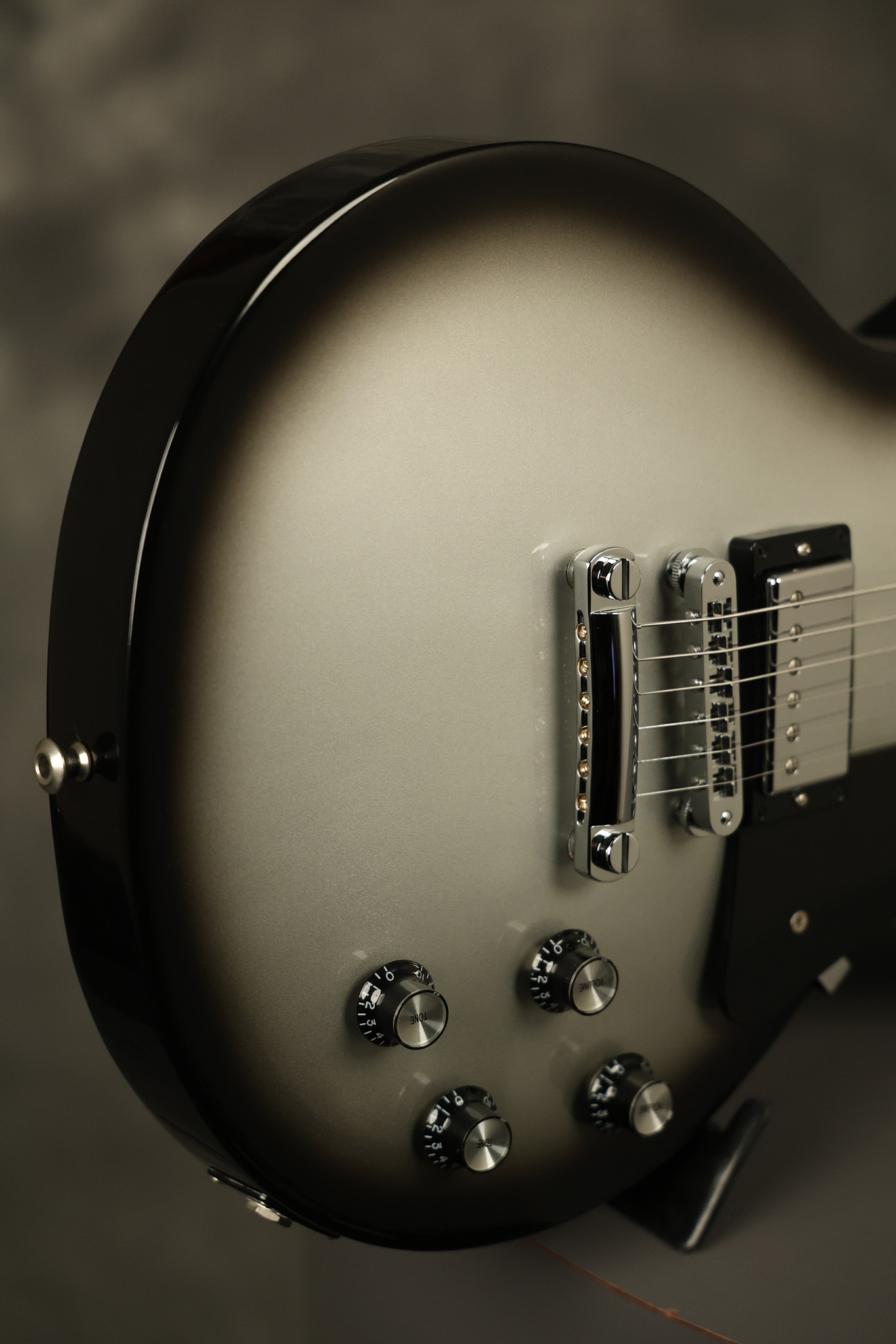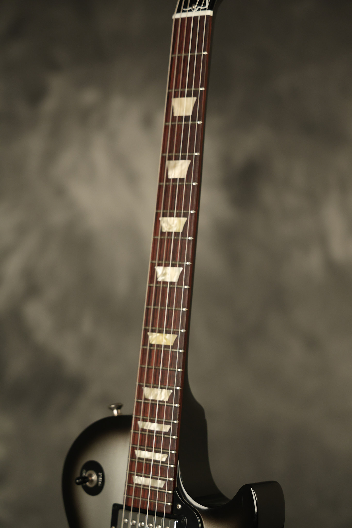 2010 Gibson Les Paul Studio in Silverburst. It has a good playing neck with great frets. It's all original with the exception of the strap buttons and is 100% complete along with its original hardshell case. It's in EXCELLENT condition with only very little very minor surface wear. Everything remains structurally sound with no cracks, breaks or repairs. All electronics work and sound great.