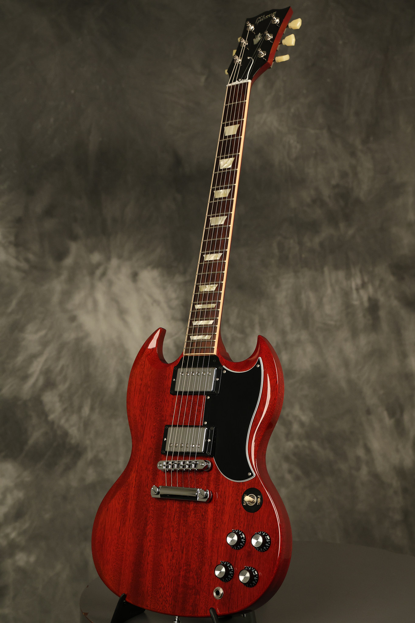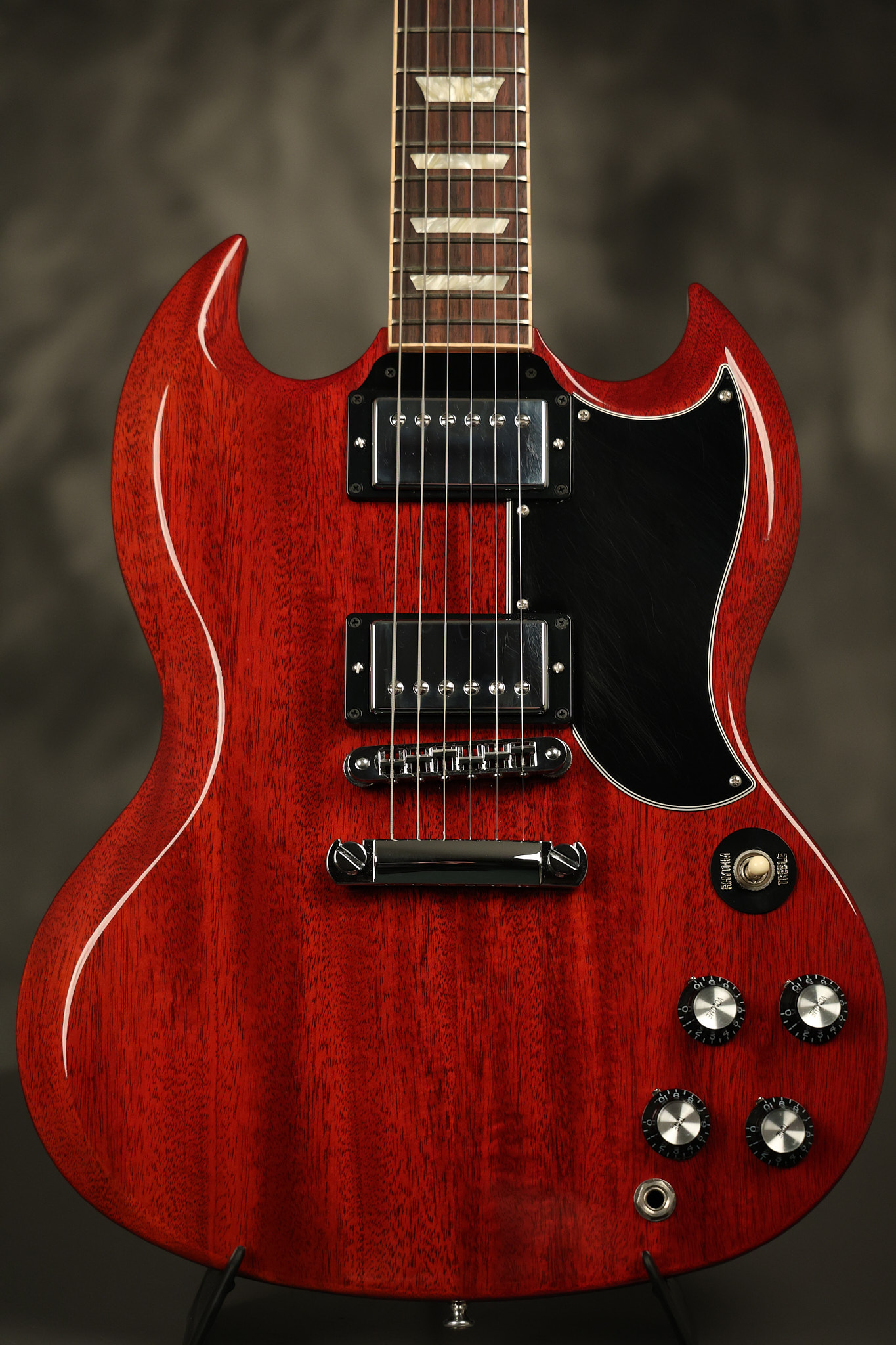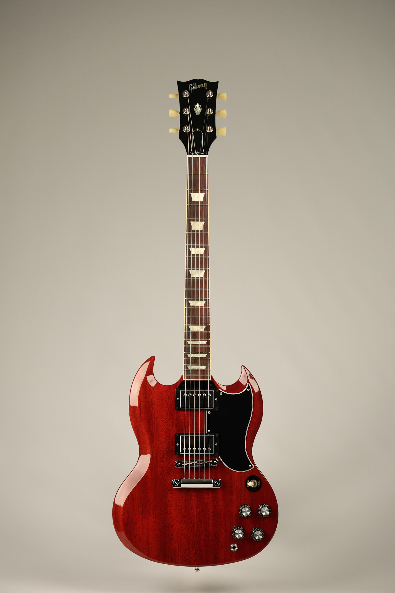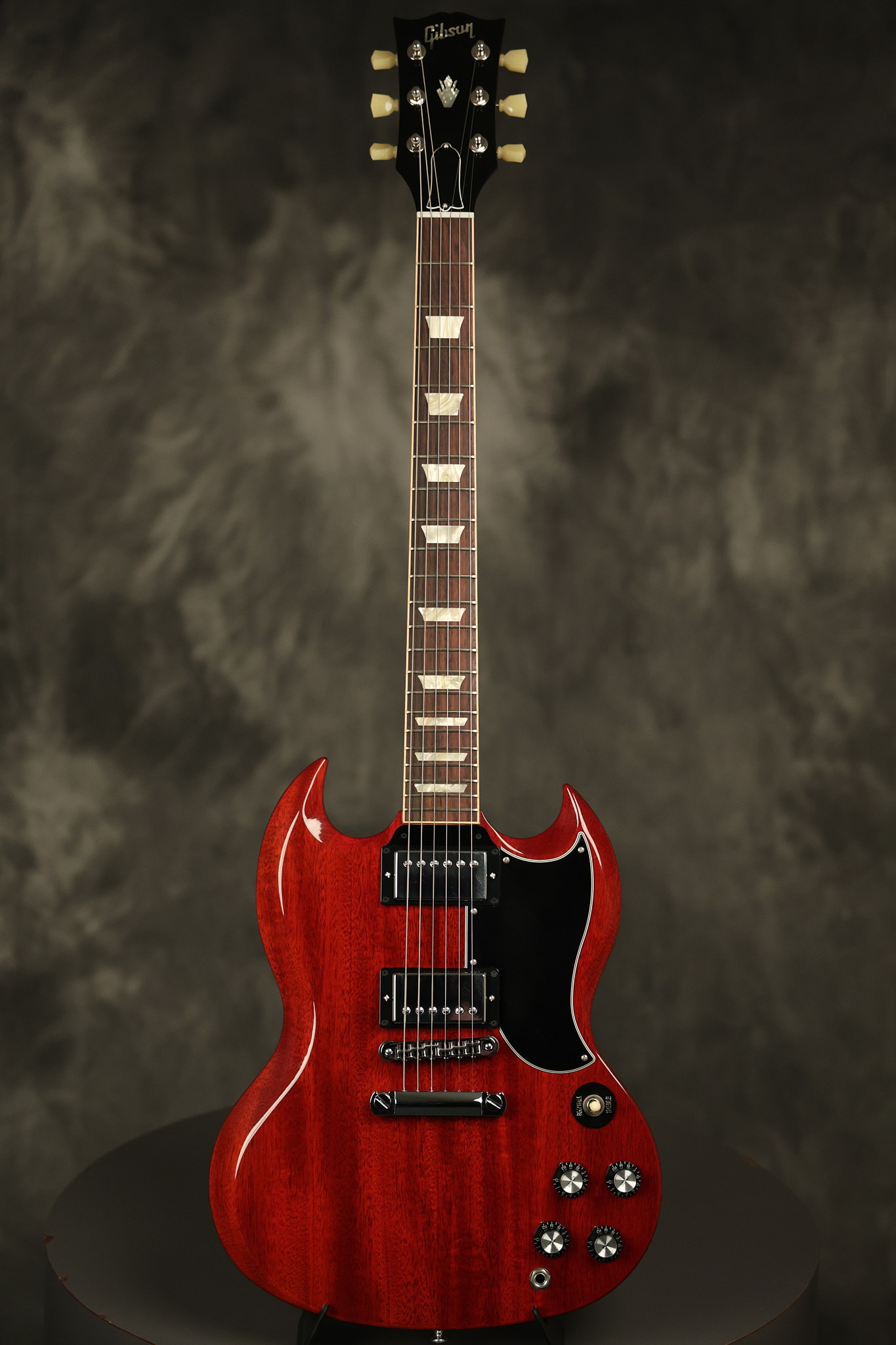2012 Gibson SG Standard '61 reissue in Cherry. It has a great playing neck with great frets. It's all original and 100% complete including its original hardshell case and papers. It's in NEAR MINT condition with only very minor surface wear which is mostly on the pickguard. Everything remains structurally sound with no cracks, breaks or repairs. All electronics work and sound great.