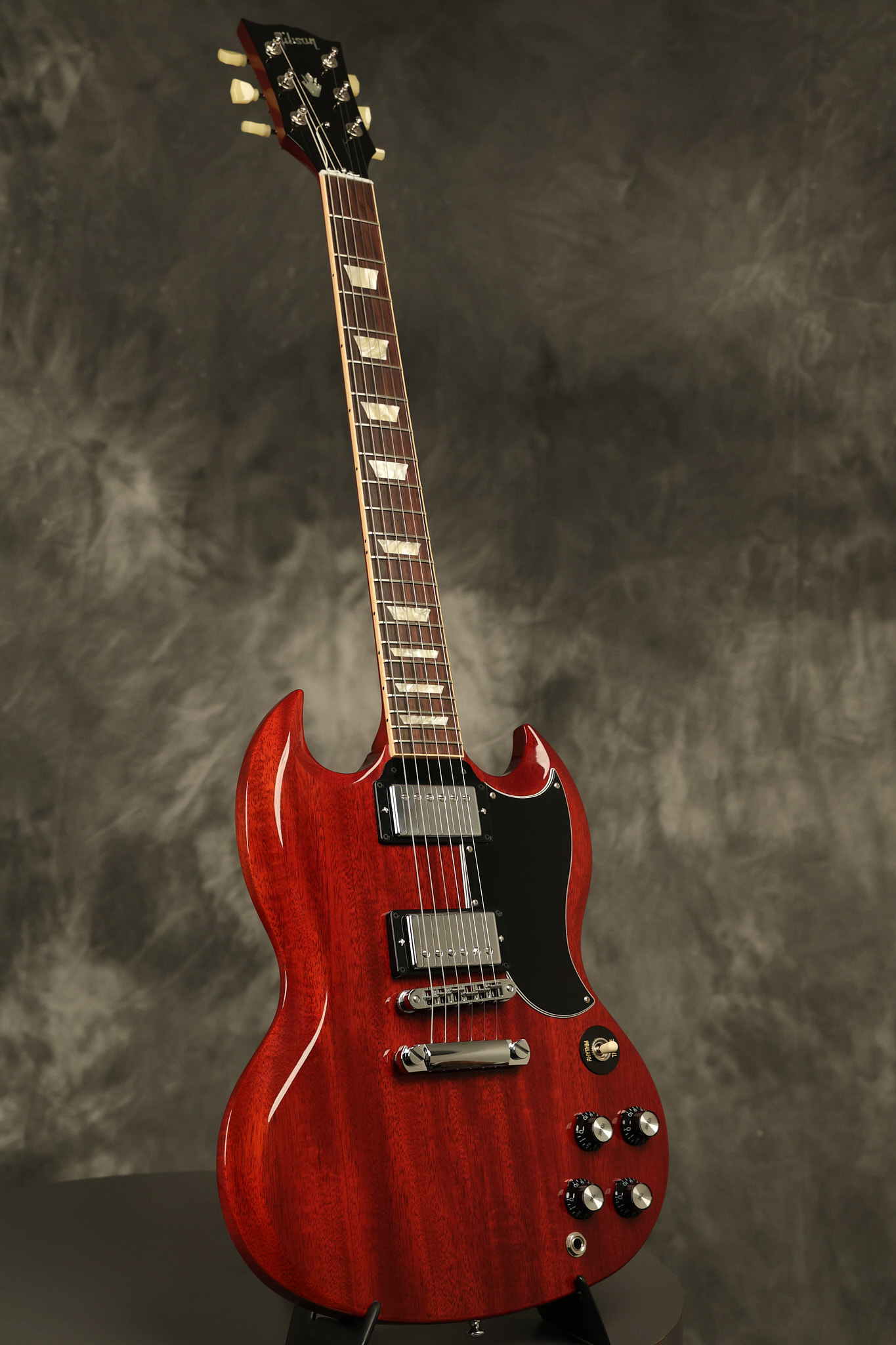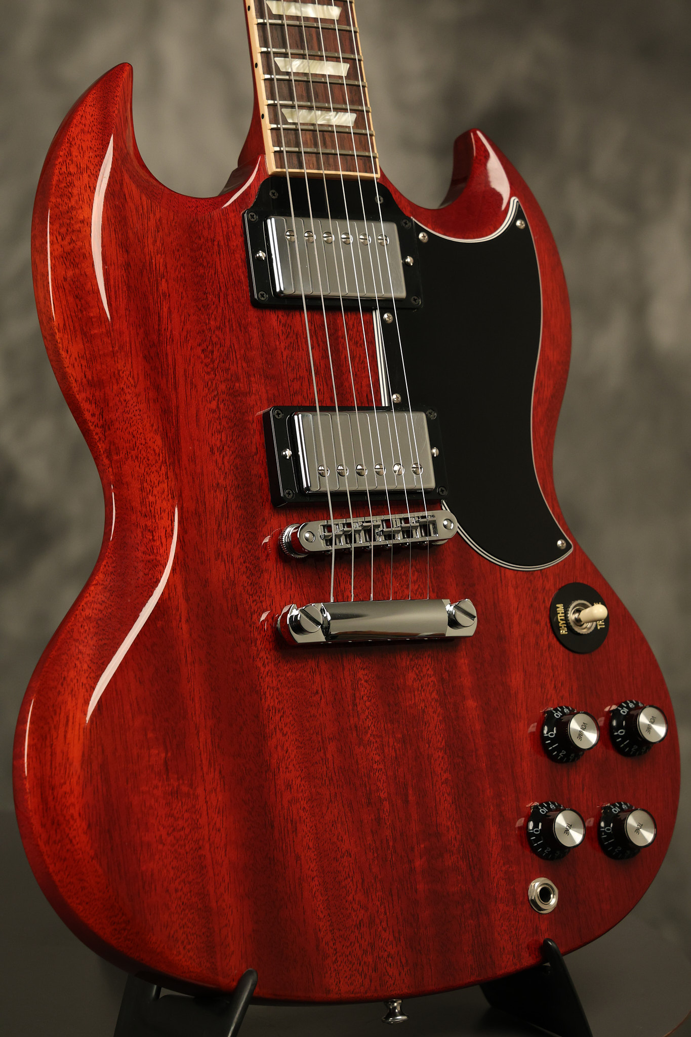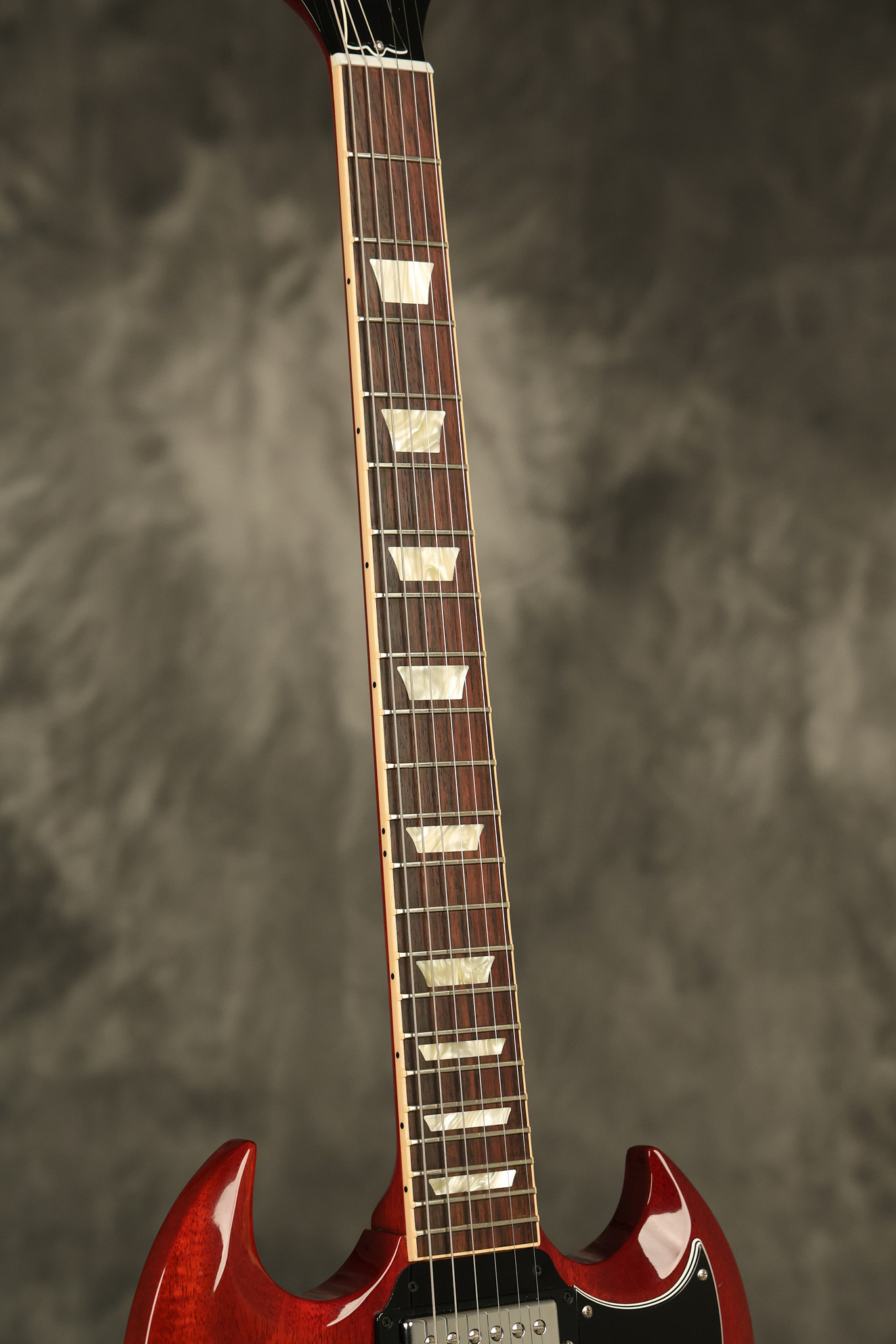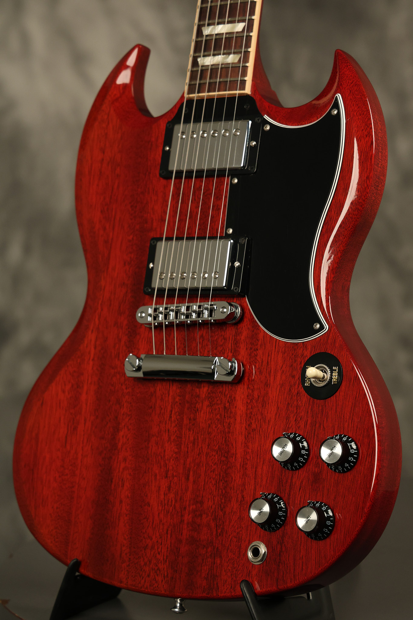 2012 Gibson SG Standard '61 reissue in Cherry. It has a great playing neck with great frets. It's all original and 100% complete including its original hardshell case and papers. It's in NEAR MINT condition with only very minor surface wear which is mostly on the pickguard. Everything remains structurally sound with no cracks, breaks or repairs. All electronics work and sound great.