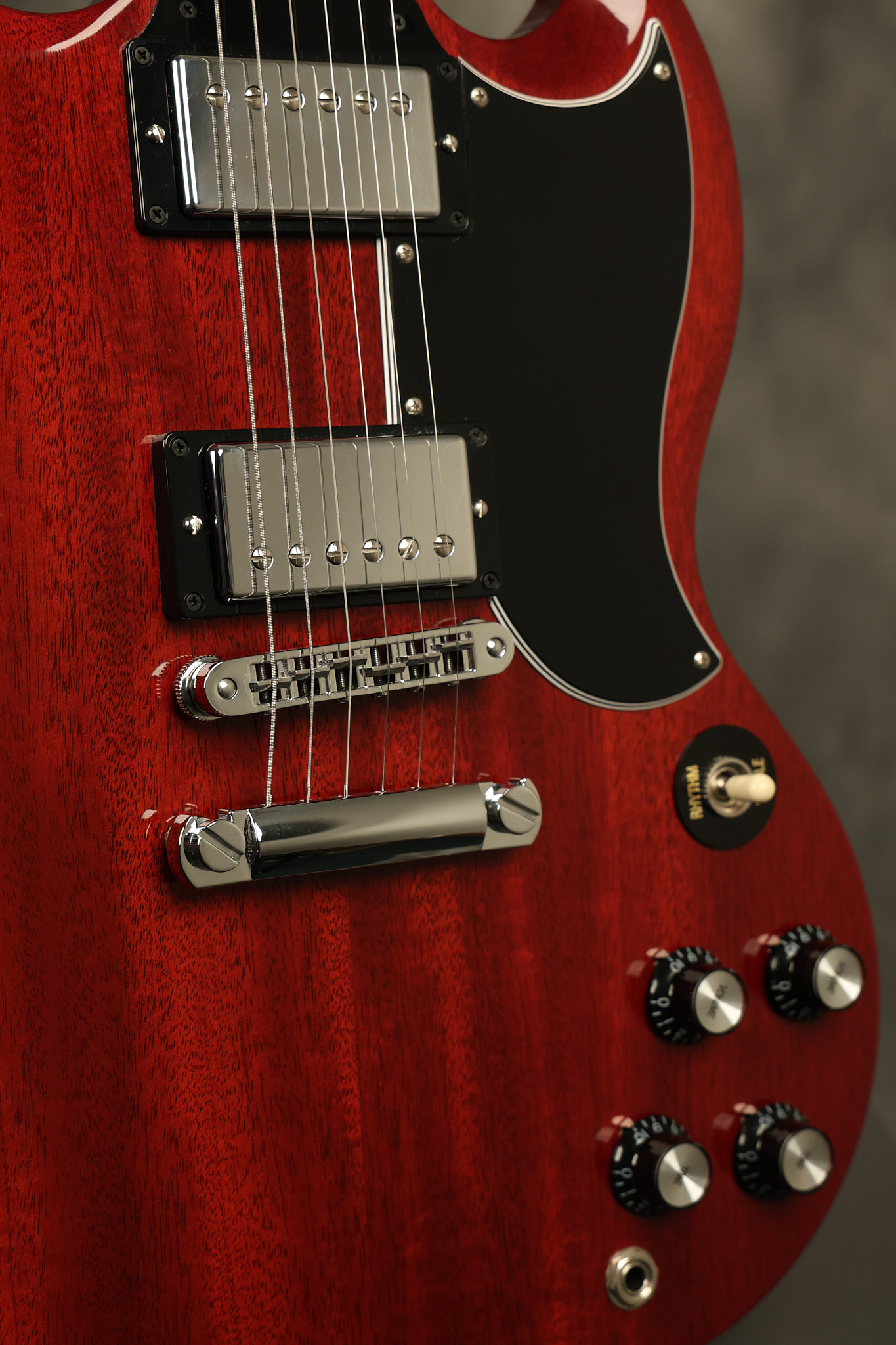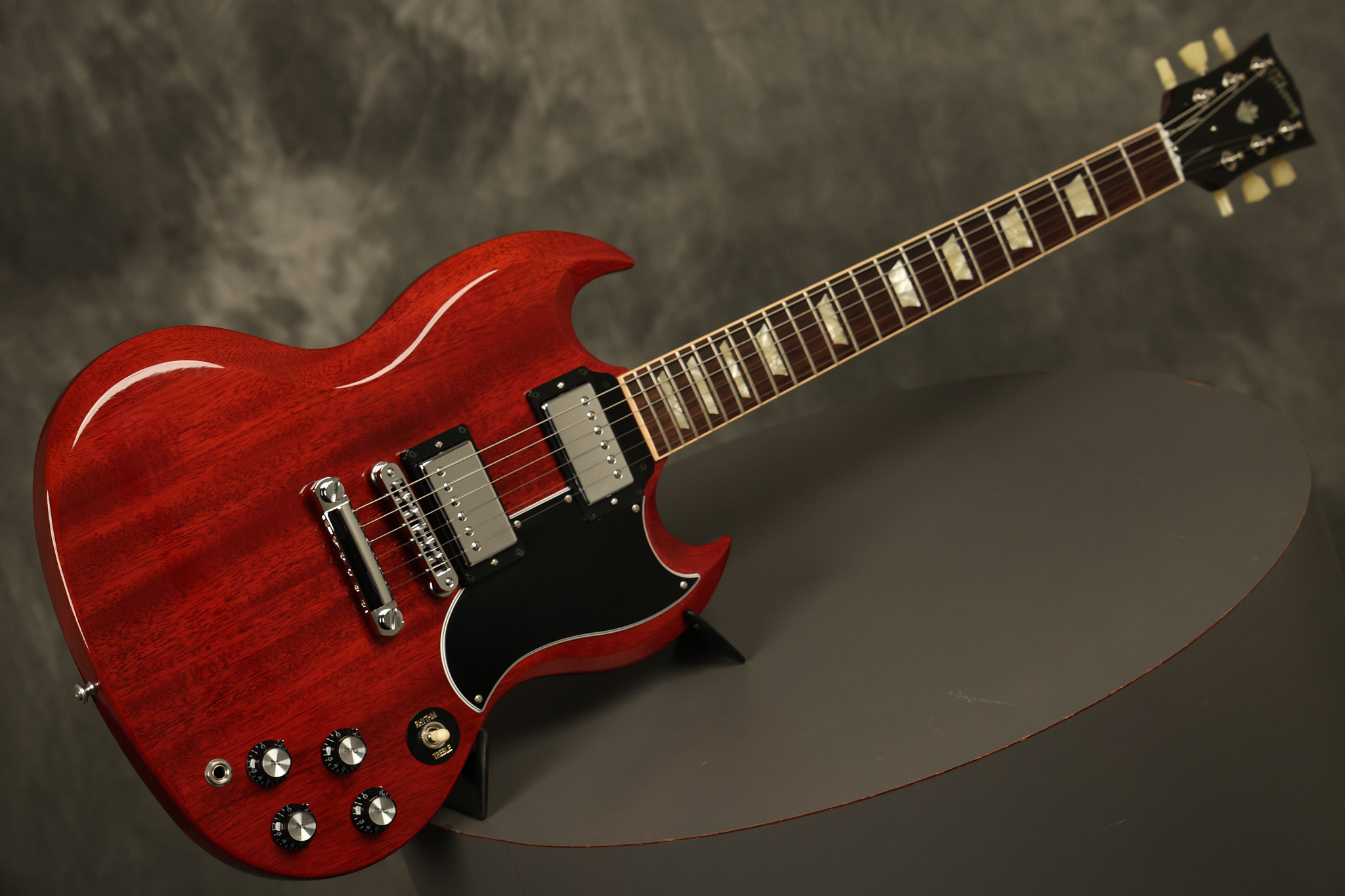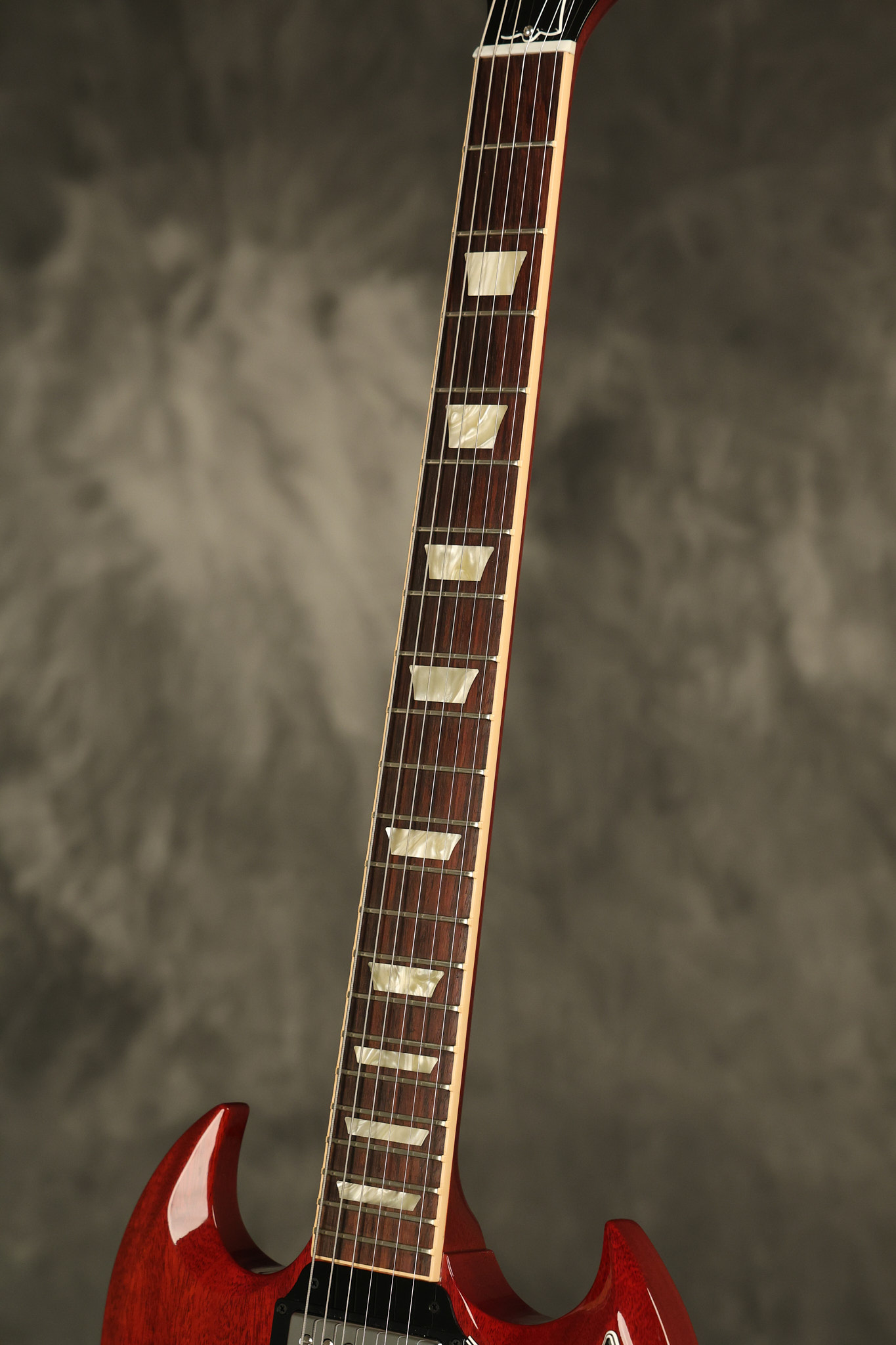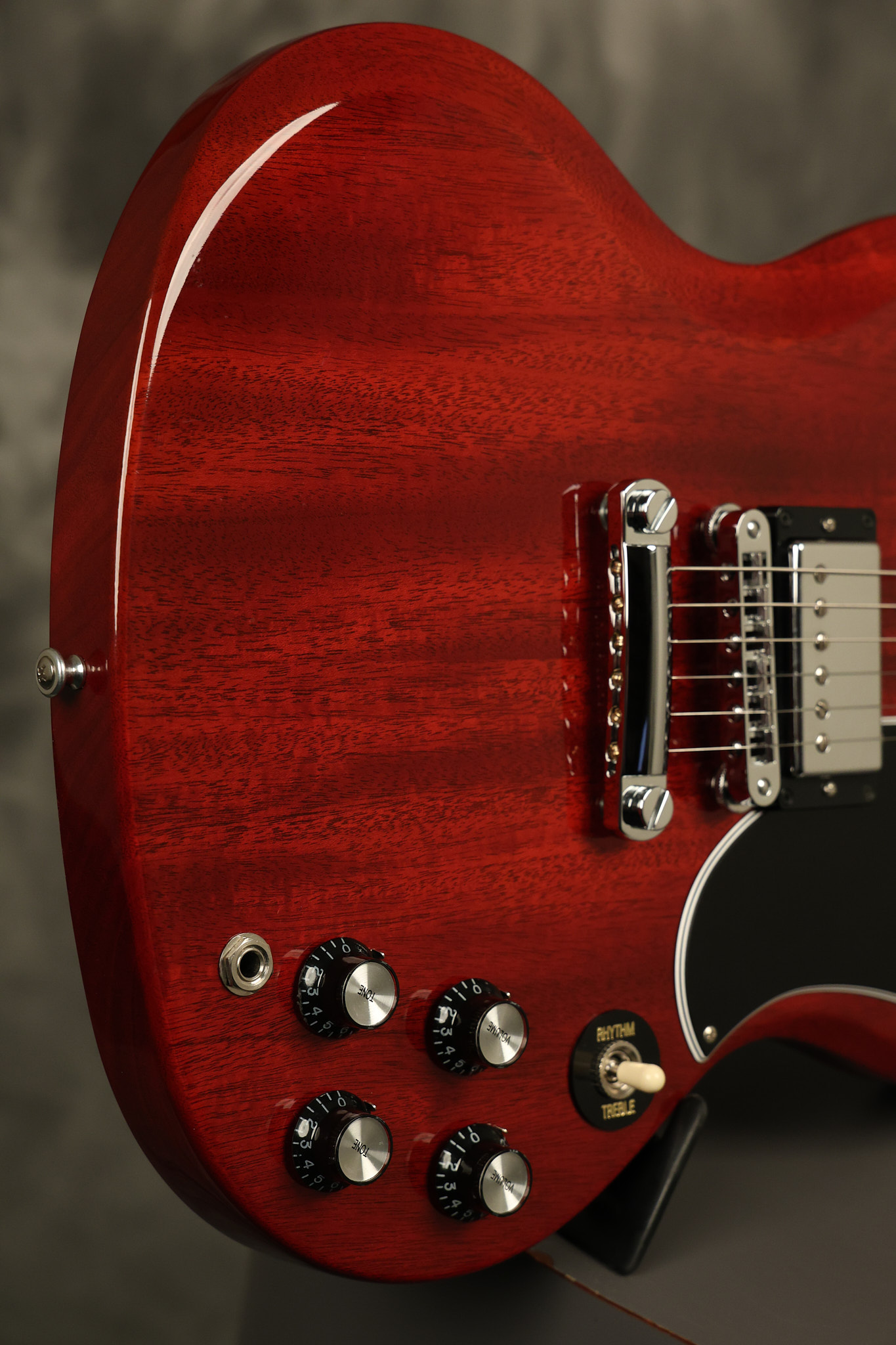 2012 Gibson SG Standard '61 reissue in Cherry. It has a great playing neck with great frets. It's all original and 100% complete including its original hardshell case and papers. It's in NEAR MINT condition with only very minor surface wear which is mostly on the pickguard. Everything remains structurally sound with no cracks, breaks or repairs. All electronics work and sound great.