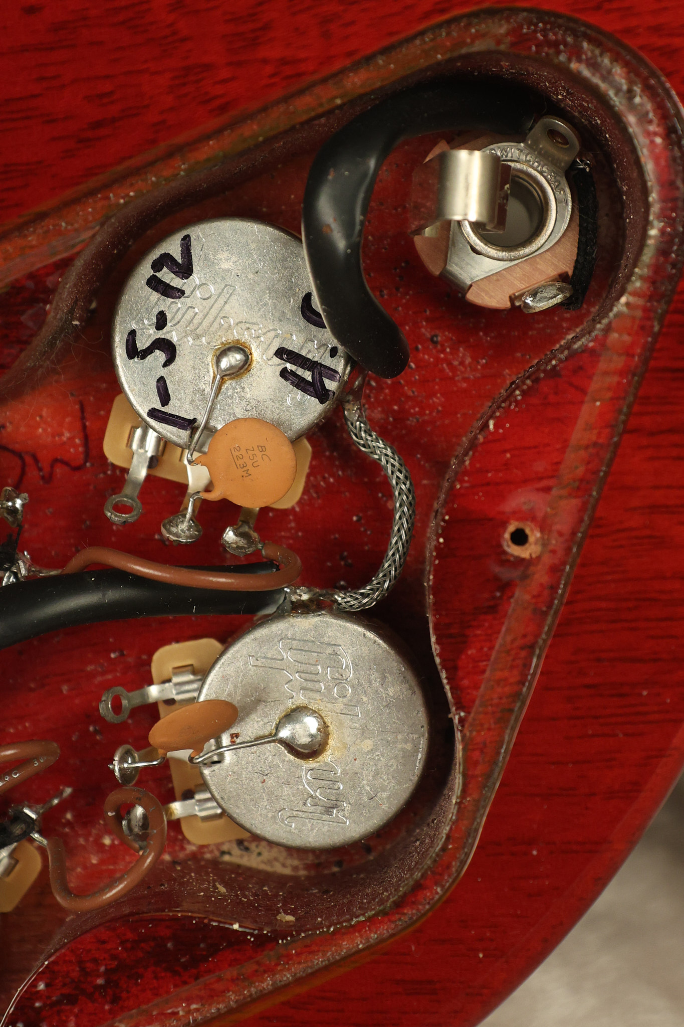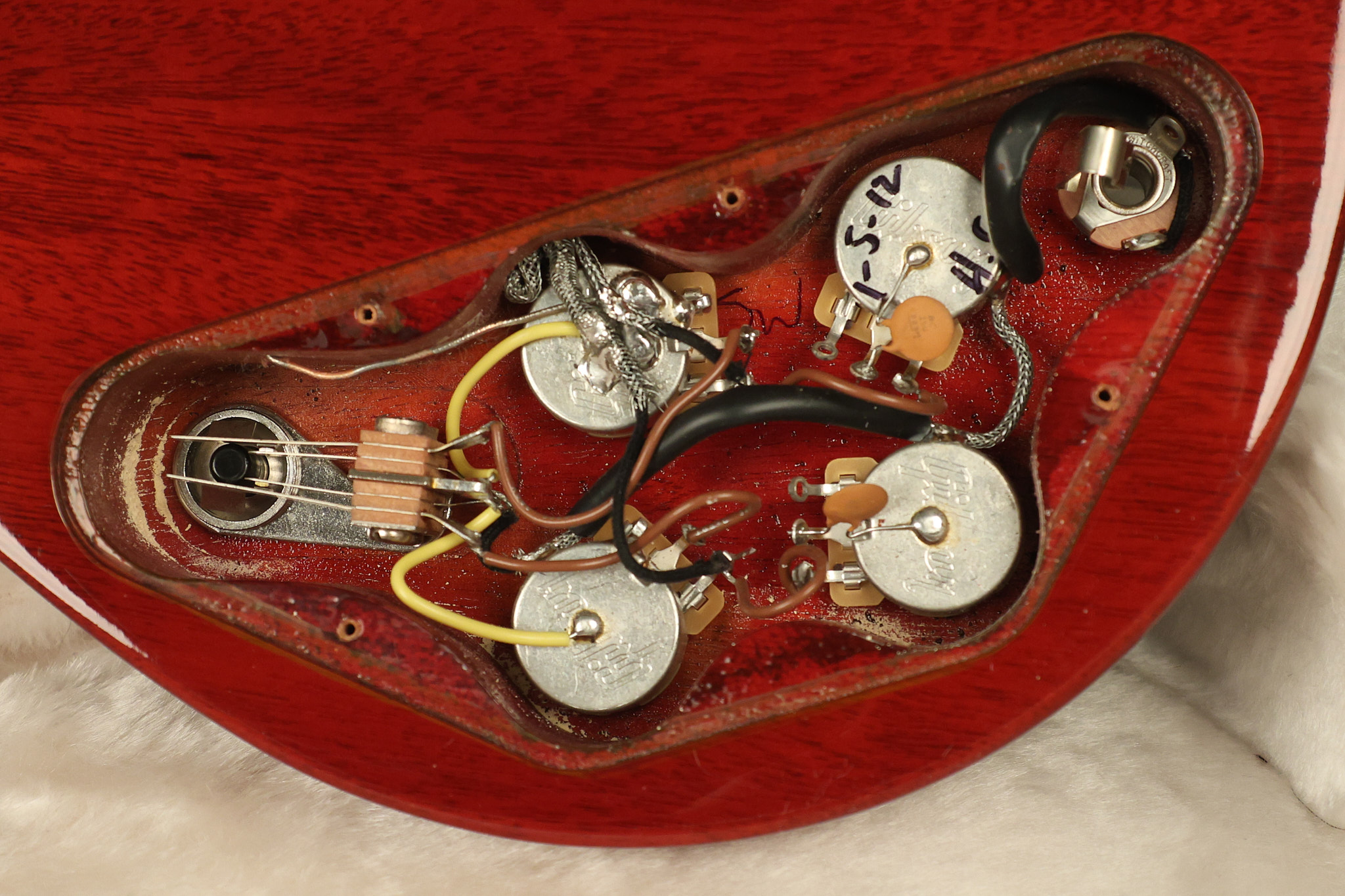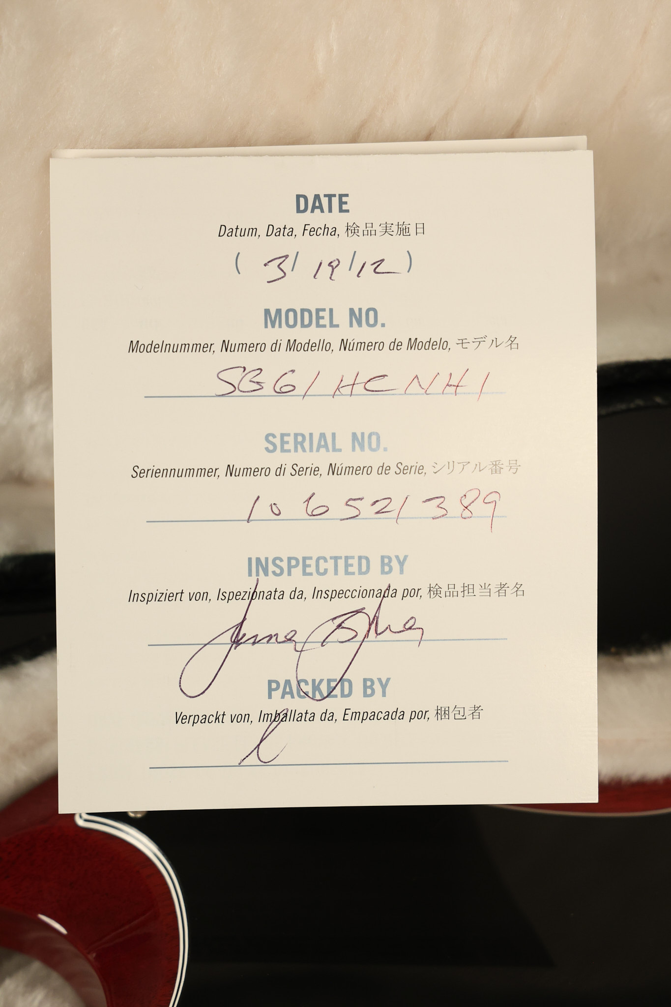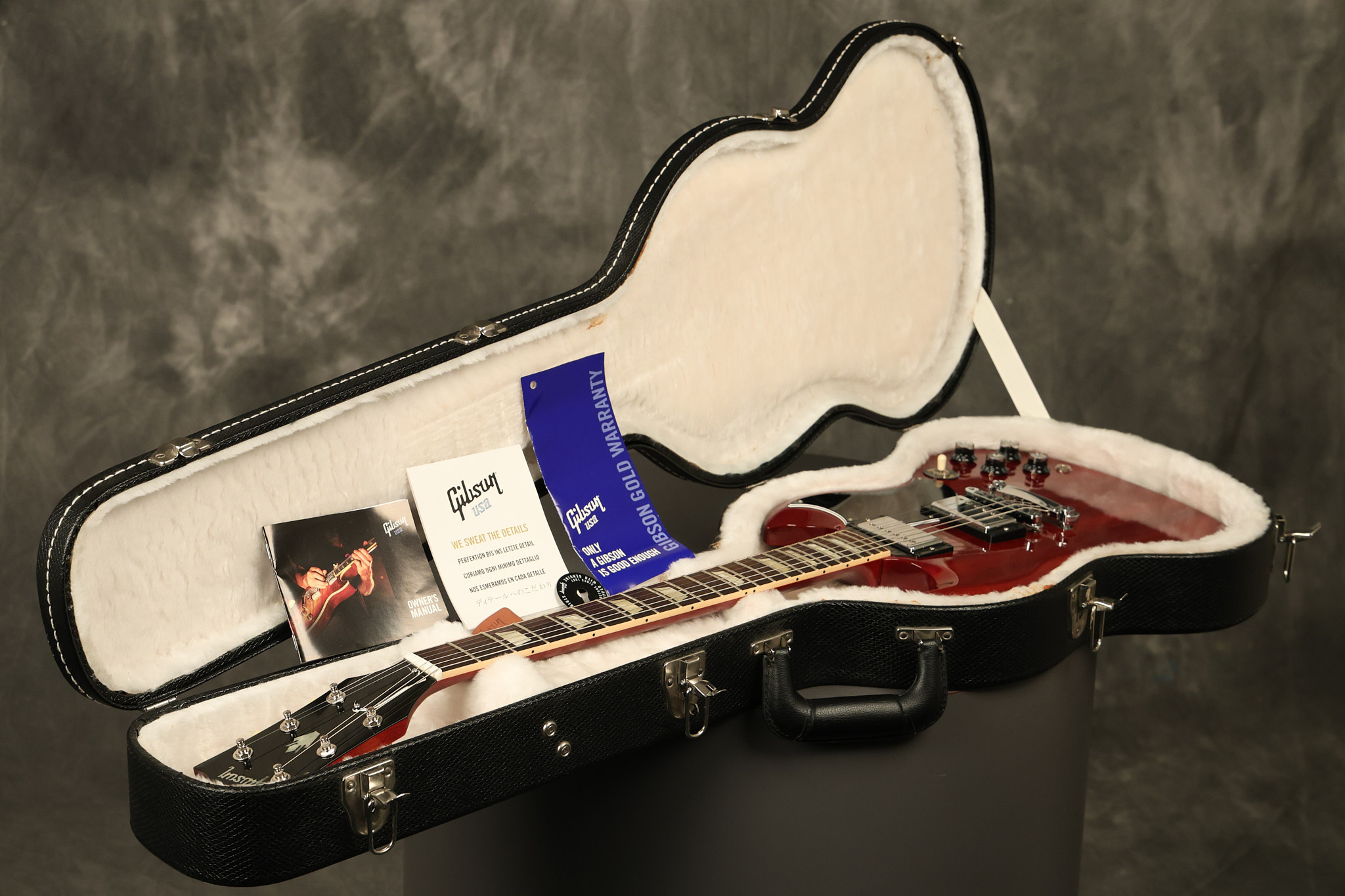 2012 Gibson SG Standard '61 reissue in Cherry. It has a great playing neck with great frets. It's all original and 100% complete including its original hardshell case and papers. It's in NEAR MINT condition with only very minor surface wear which is mostly on the pickguard. Everything remains structurally sound with no cracks, breaks or repairs. All electronics work and sound great.