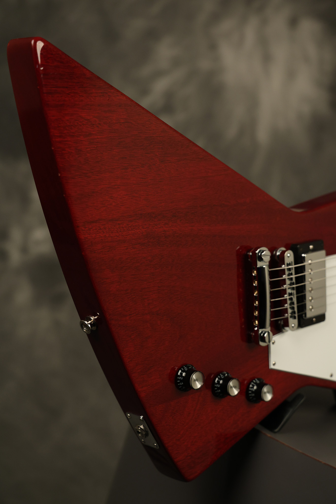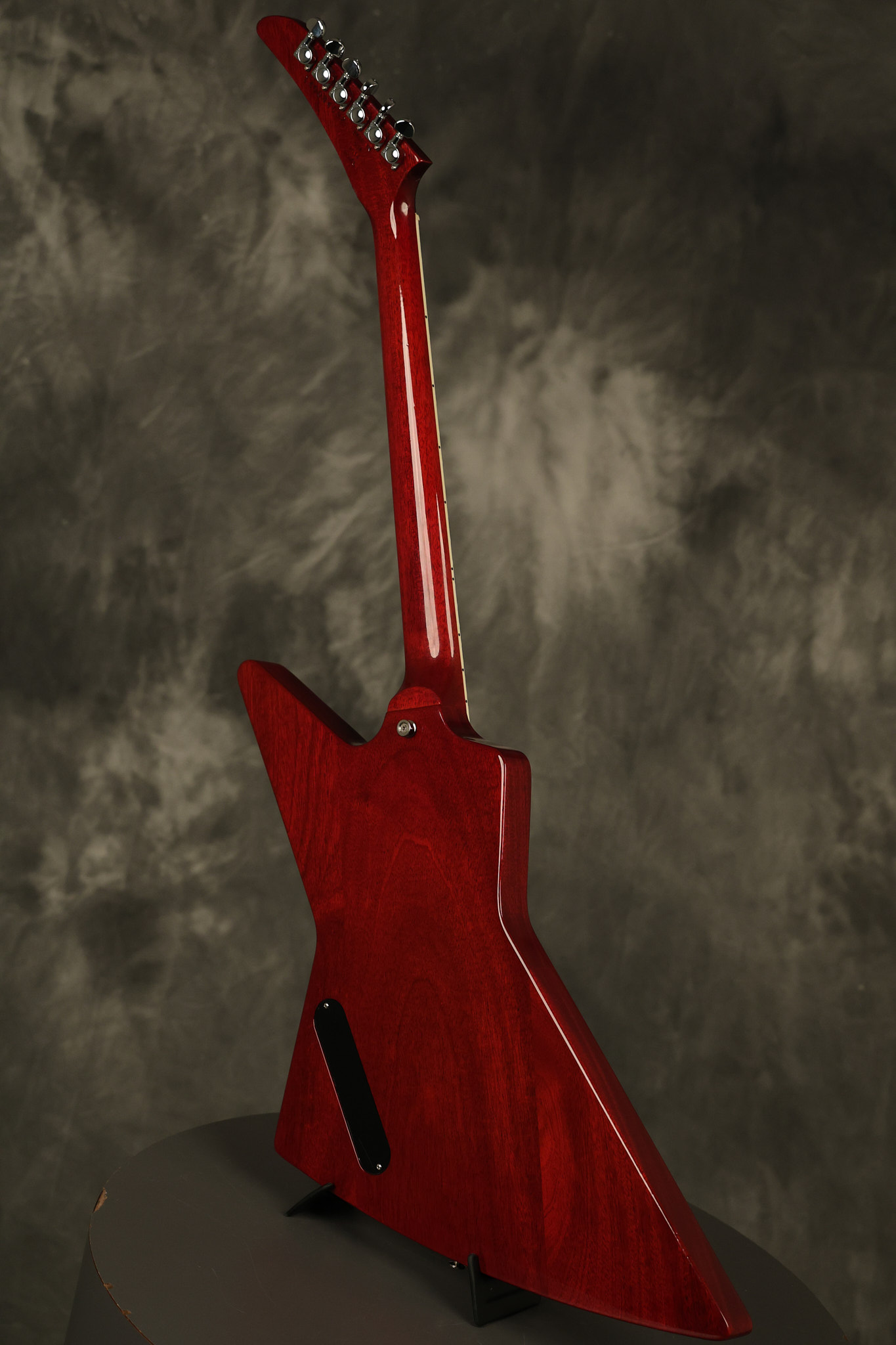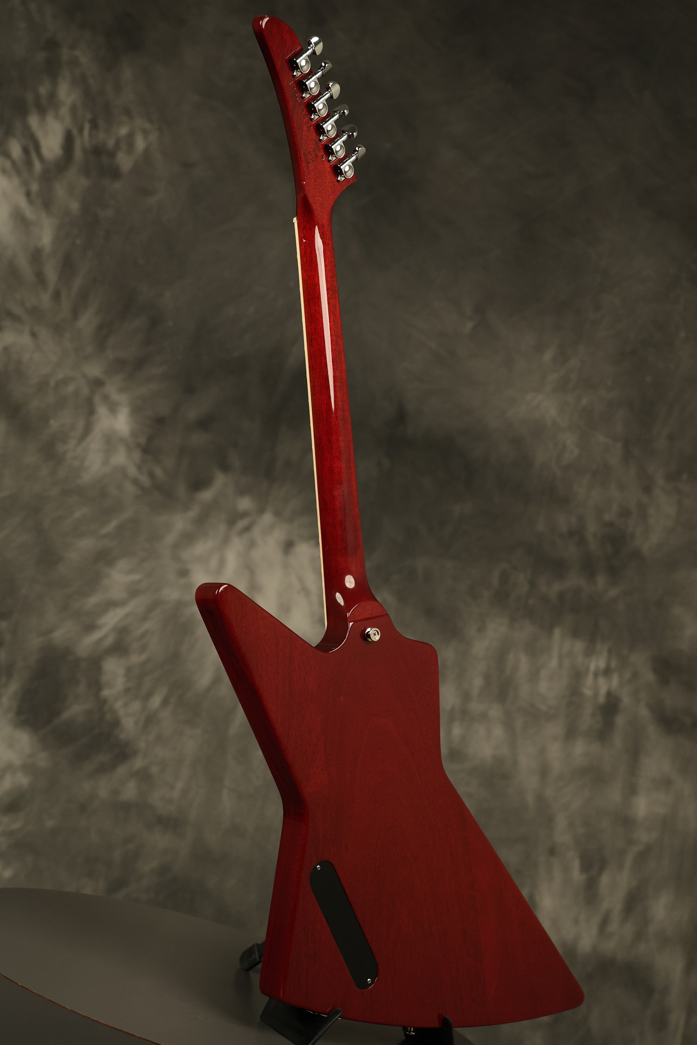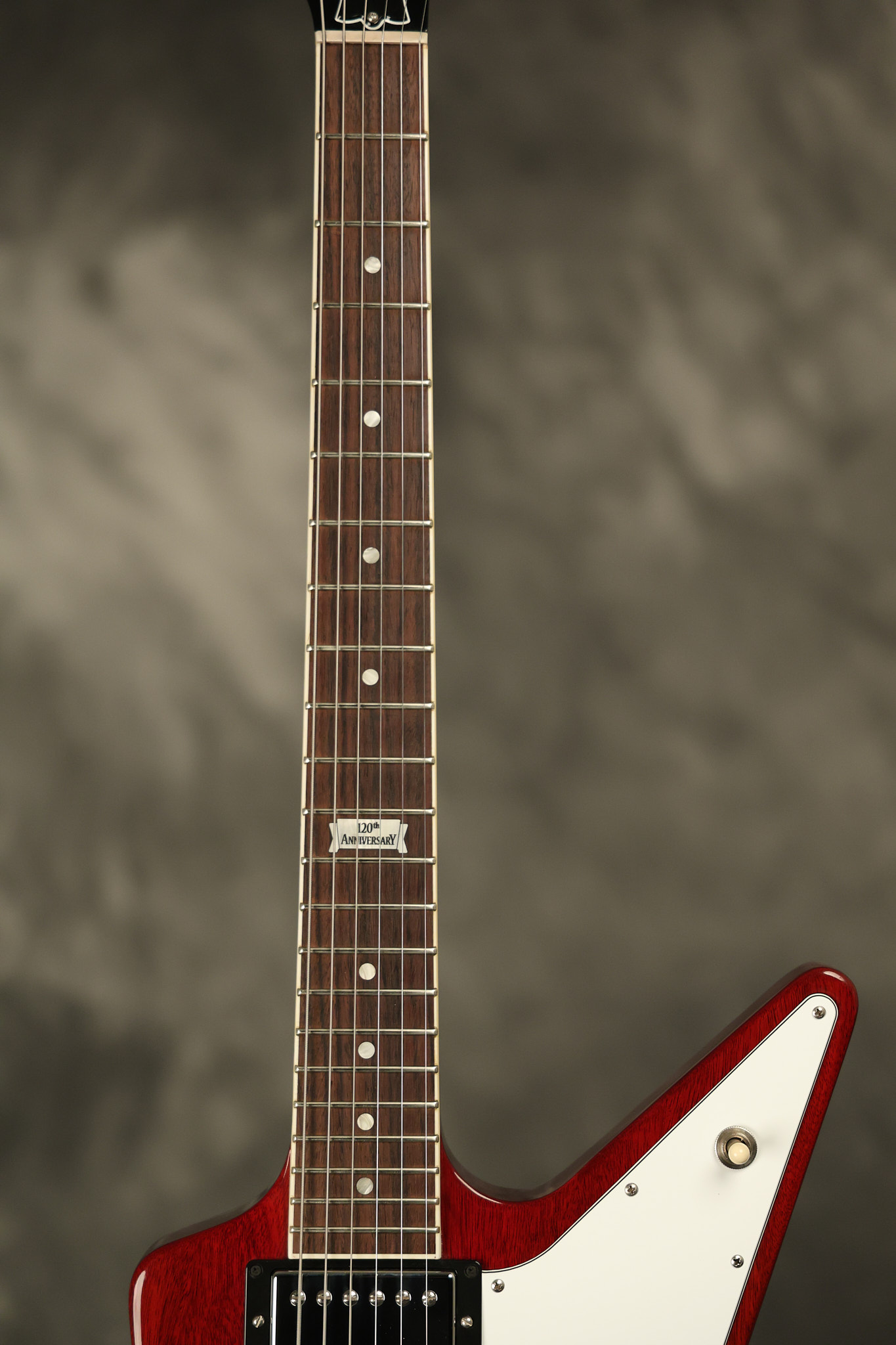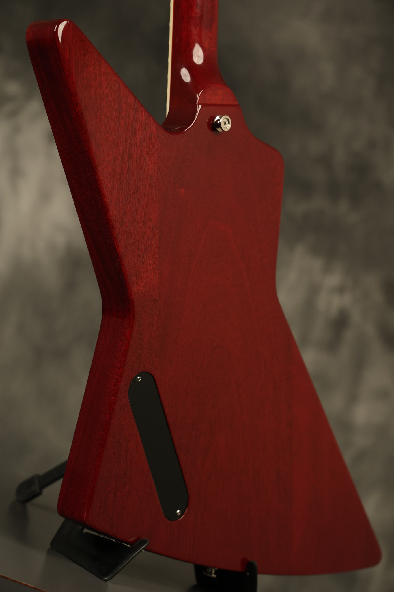 2014 Gibson 120th Anniversary model Explorer in Heritage Cherry. It has a great playing neck with great frets. It's all original with the addition of one replaced Gibson volume knobs as the original was cracked, but is still included. It is also 100% complete along with its original hardshell case. It's in very good condition with some minor nicks + dings, very light belt buckle wear on the back of the body, two marks in the finish on the underside of the headstock caused from an old guitar hanger and other minor cosmetic wear. Everything remains structurally sound with no cracks, breaks or repairs. All electronics work and sound great.