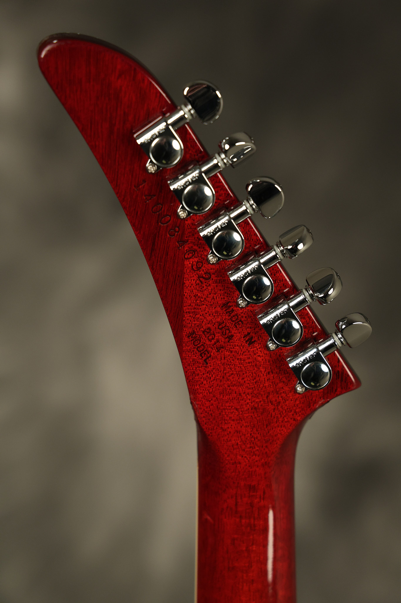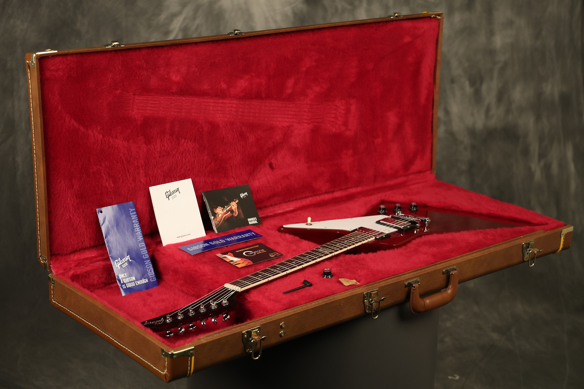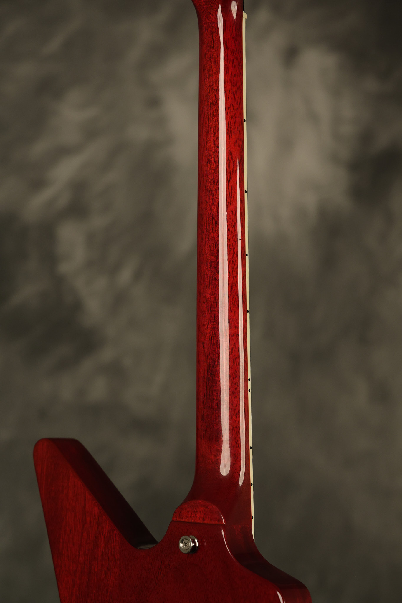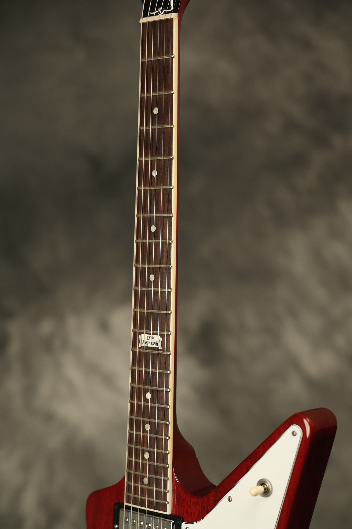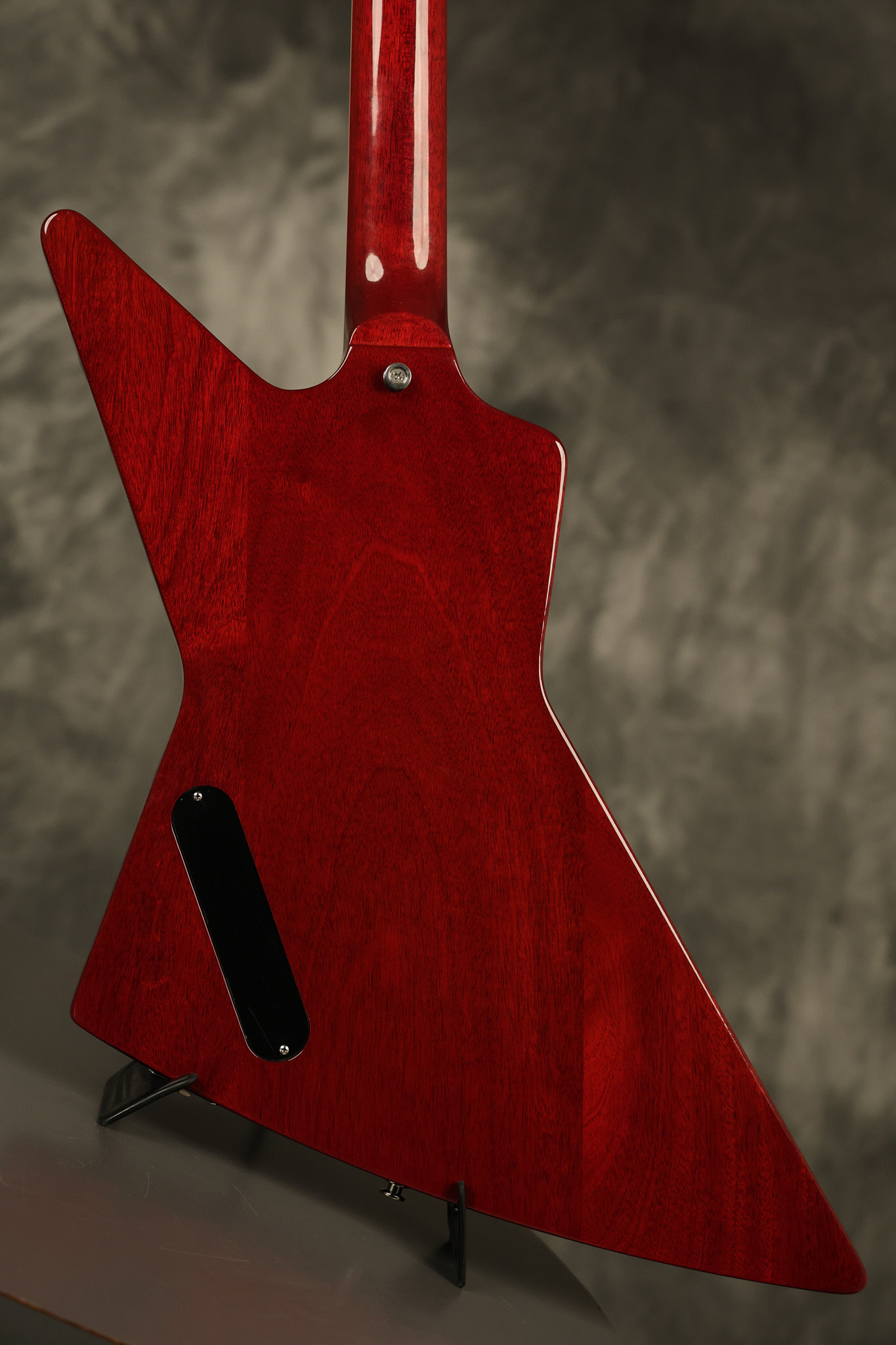 2014 Gibson 120th Anniversary model Explorer in Heritage Cherry. It has a great playing neck with great frets. It's all original with the addition of one replaced Gibson volume knobs as the original was cracked, but is still included. It is also 100% complete along with its original hardshell case. It's in very good condition with some minor nicks + dings, very light belt buckle wear on the back of the body, two marks in the finish on the underside of the headstock caused from an old guitar hanger and other minor cosmetic wear. Everything remains structurally sound with no cracks, breaks or repairs. All electronics work and sound great.