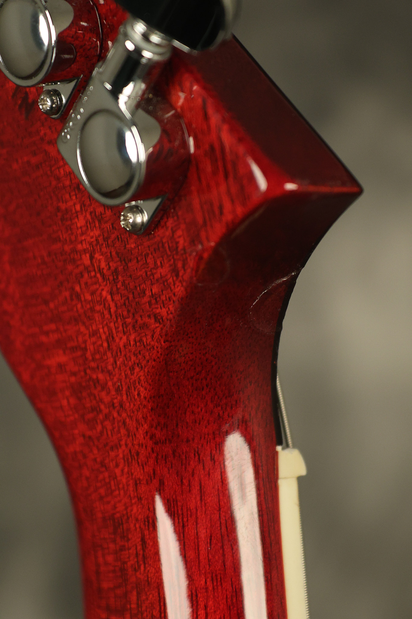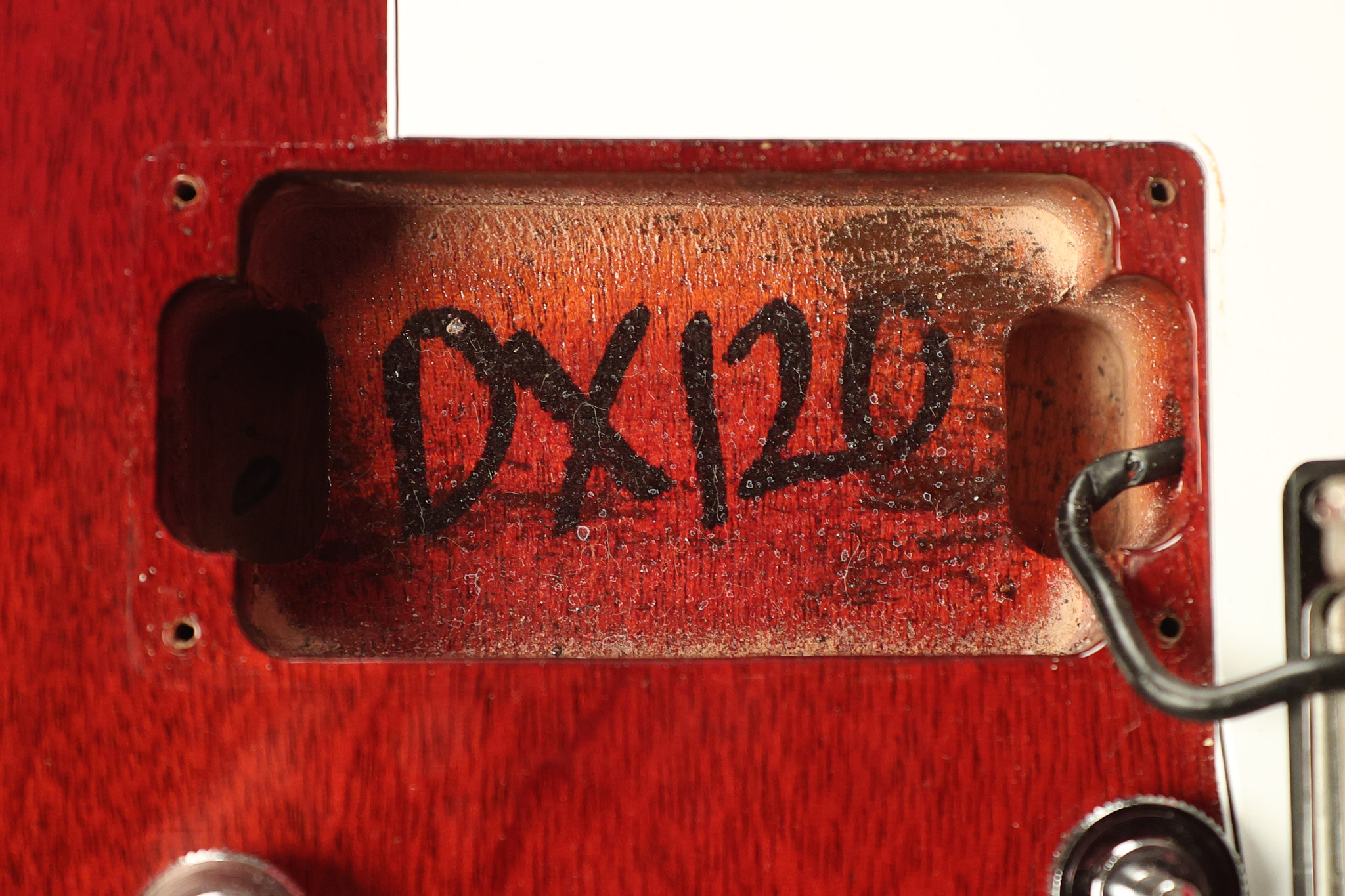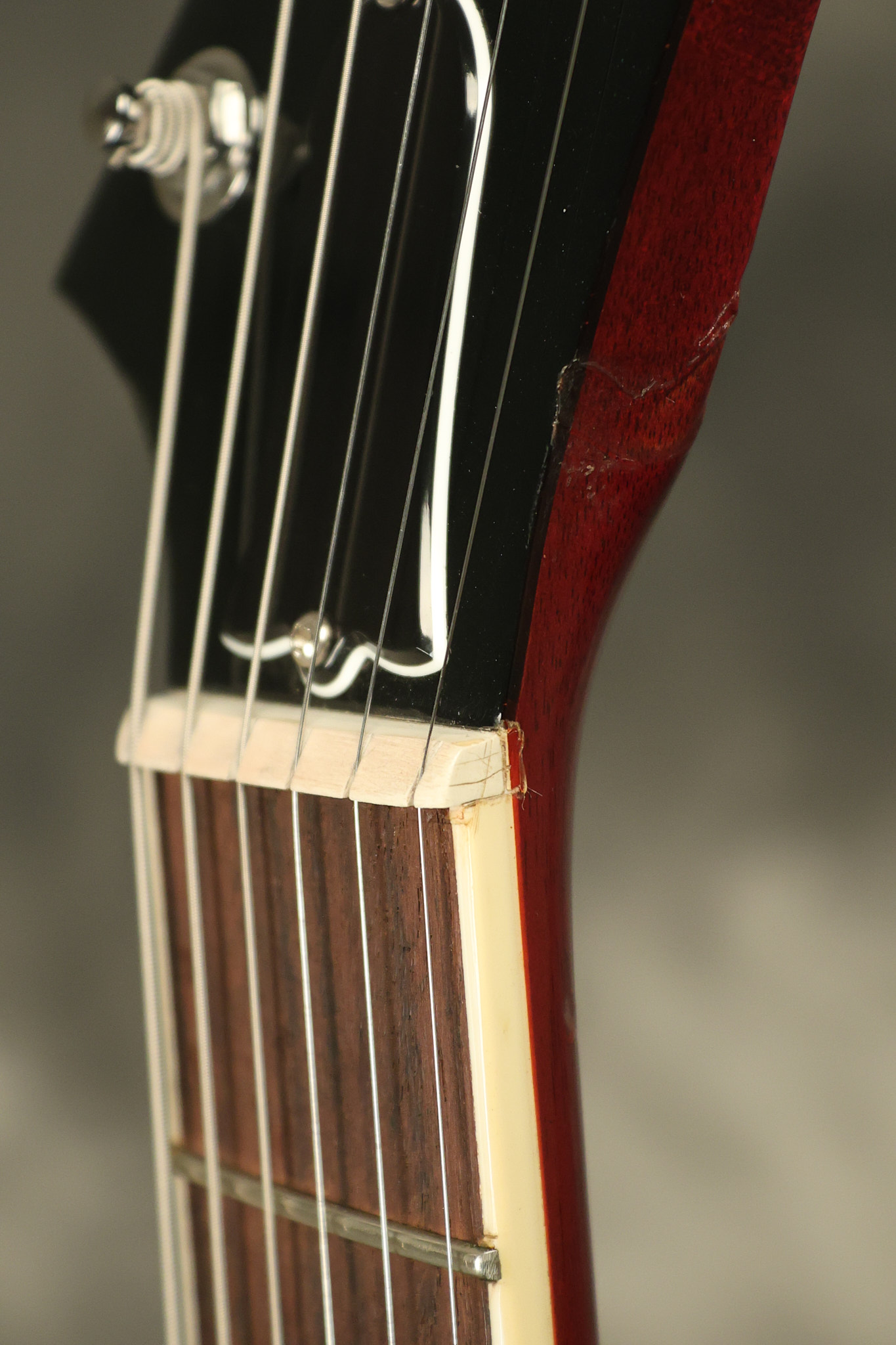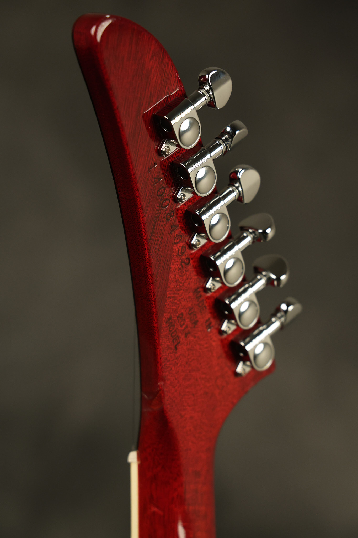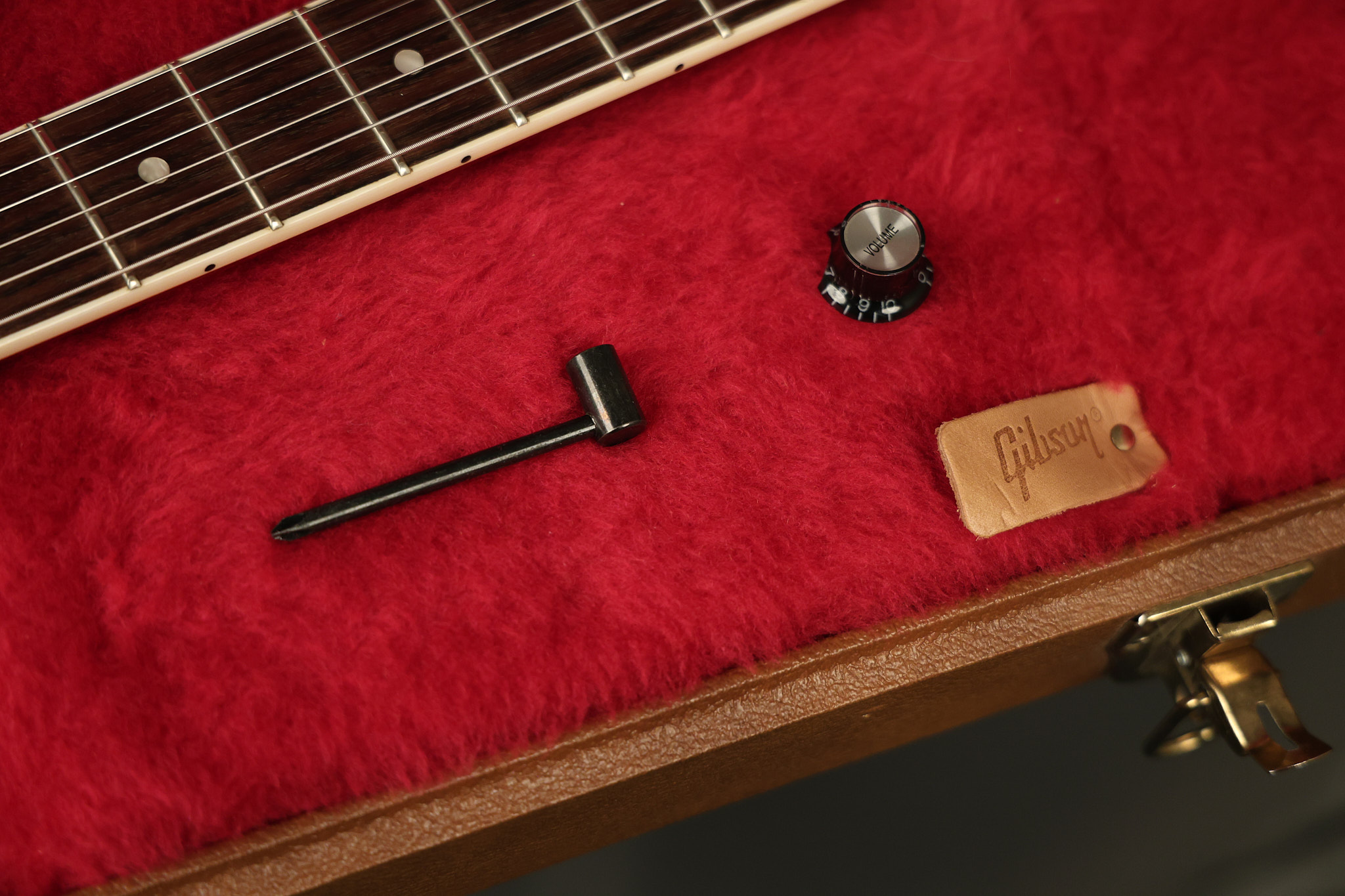 2014 Gibson 120th Anniversary model Explorer in Heritage Cherry. It has a great playing neck with great frets. It's all original with the addition of one replaced Gibson volume knobs as the original was cracked, but is still included. It is also 100% complete along with its original hardshell case. It's in very good condition with some minor nicks + dings, very light belt buckle wear on the back of the body, two marks in the finish on the underside of the headstock caused from an old guitar hanger and other minor cosmetic wear. Everything remains structurally sound with no cracks, breaks or repairs. All electronics work and sound great.