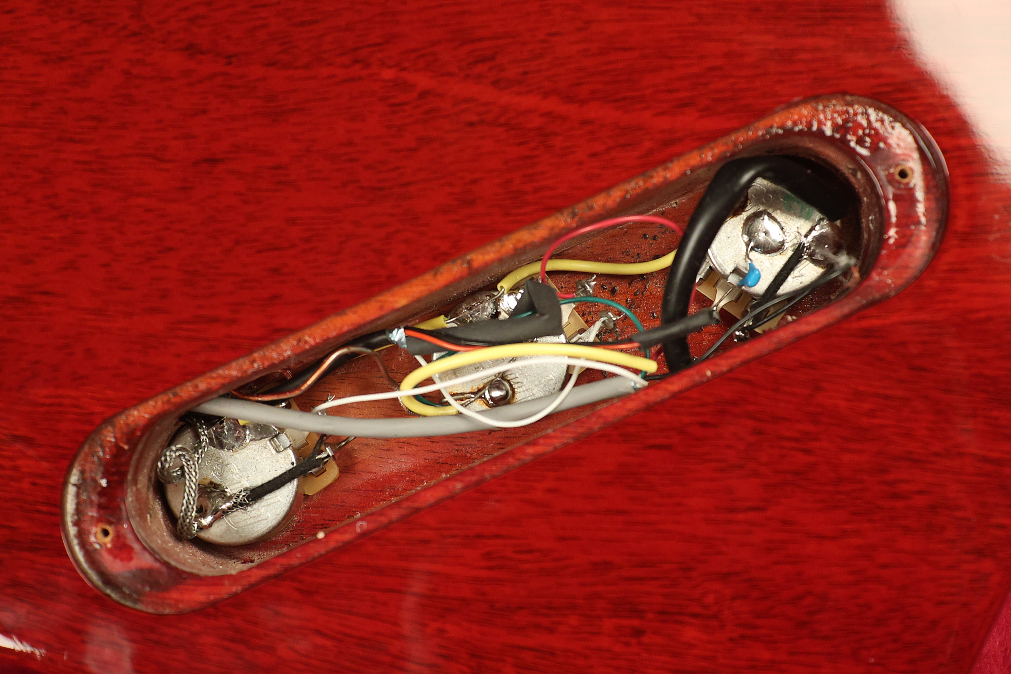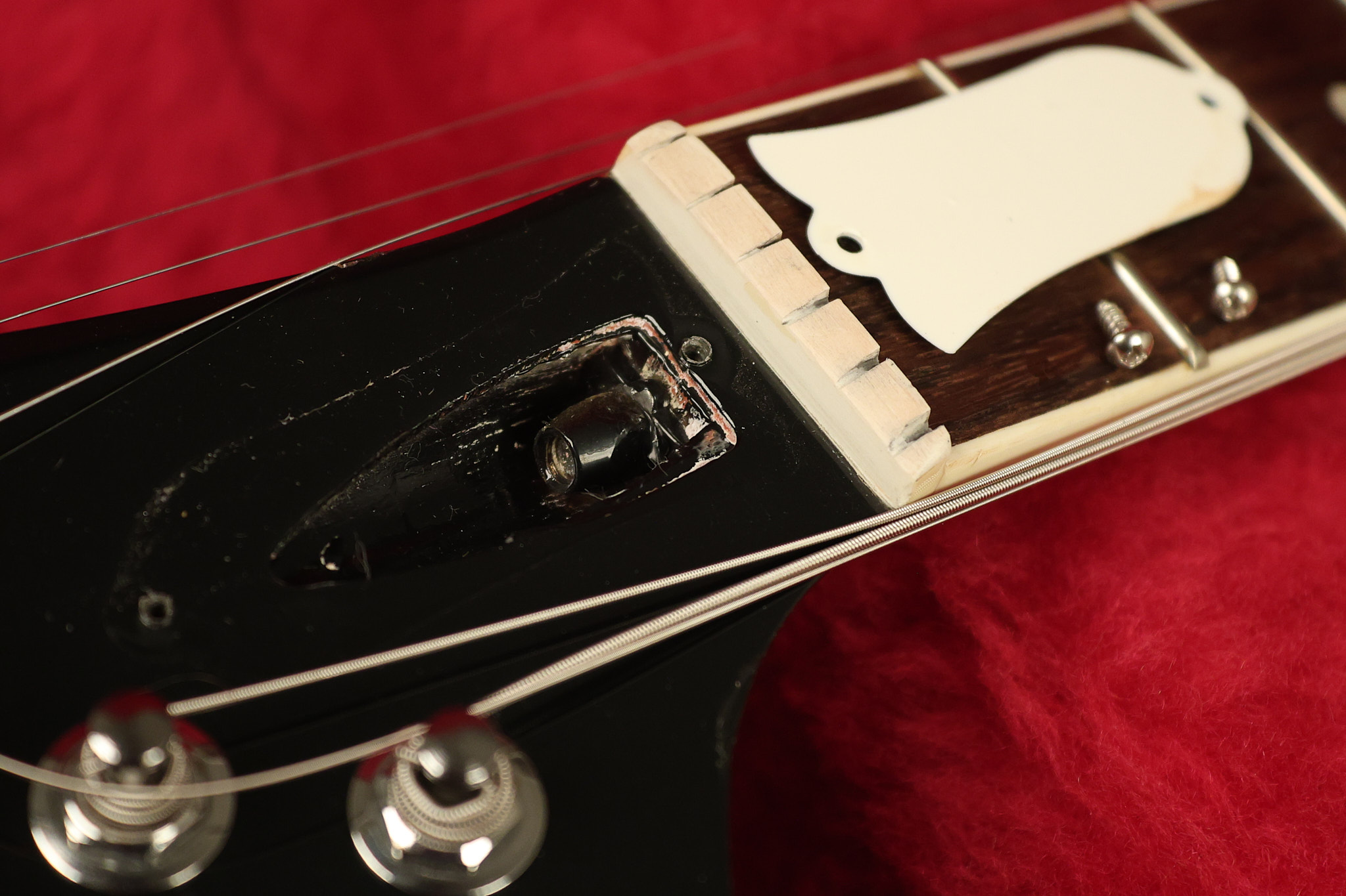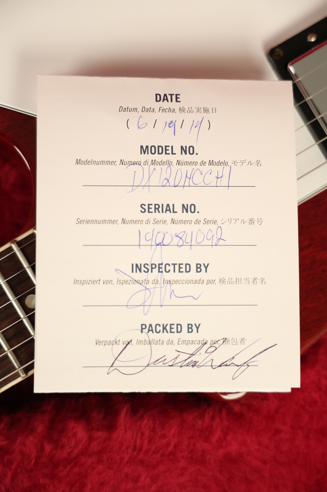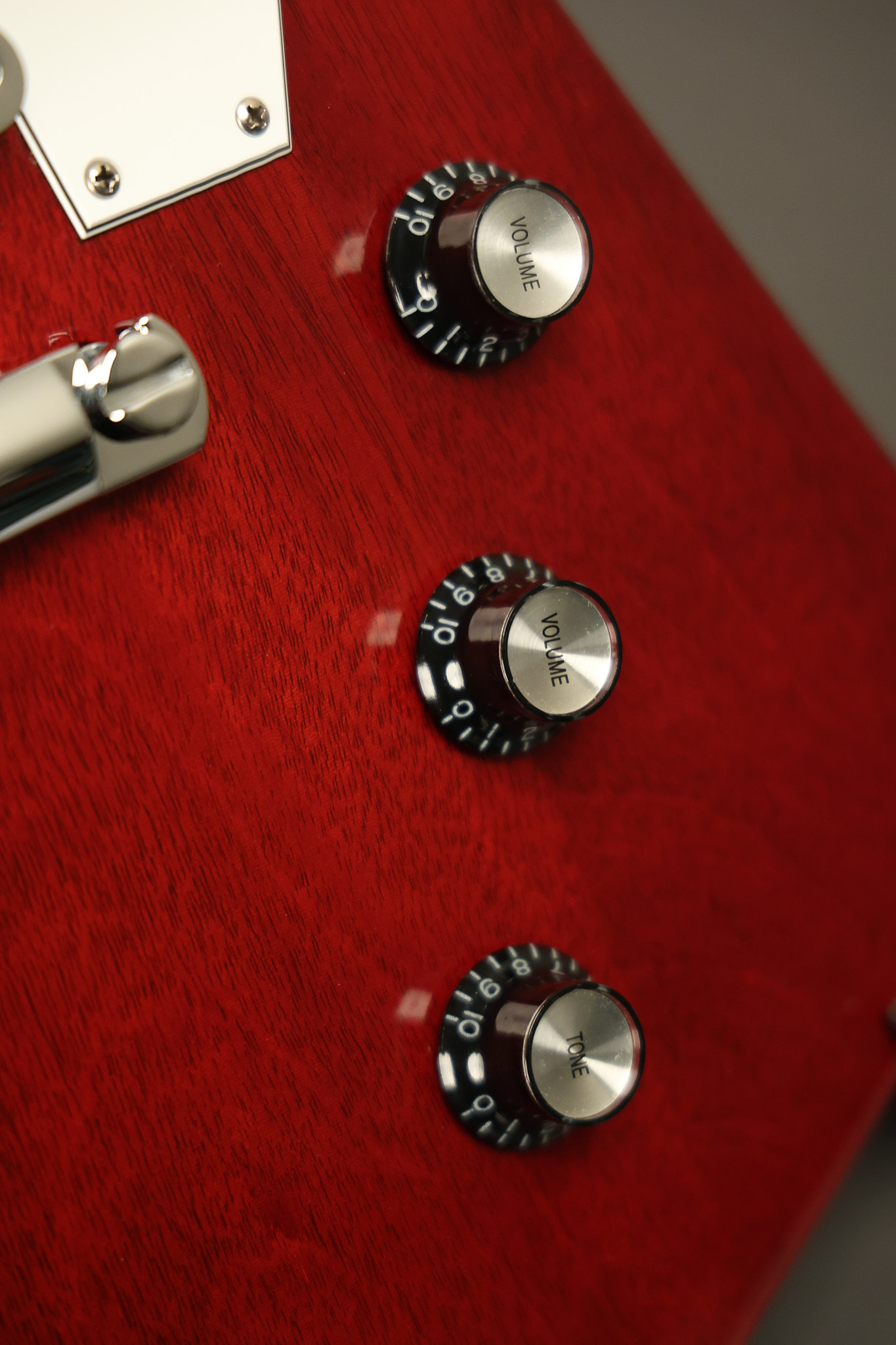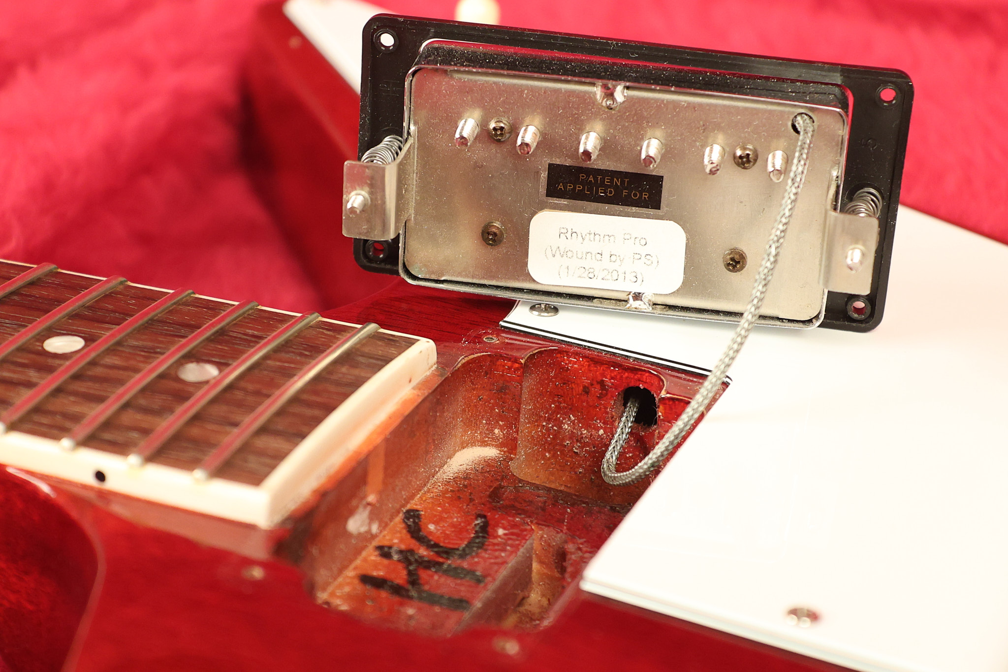 2014 Gibson 120th Anniversary model Explorer in Heritage Cherry. It has a great playing neck with great frets. It's all original with the addition of one replaced Gibson volume knobs as the original was cracked, but is still included. It is also 100% complete along with its original hardshell case. It's in very good condition with some minor nicks + dings, very light belt buckle wear on the back of the body, two marks in the finish on the underside of the headstock caused from an old guitar hanger and other minor cosmetic wear. Everything remains structurally sound with no cracks, breaks or repairs. All electronics work and sound great.