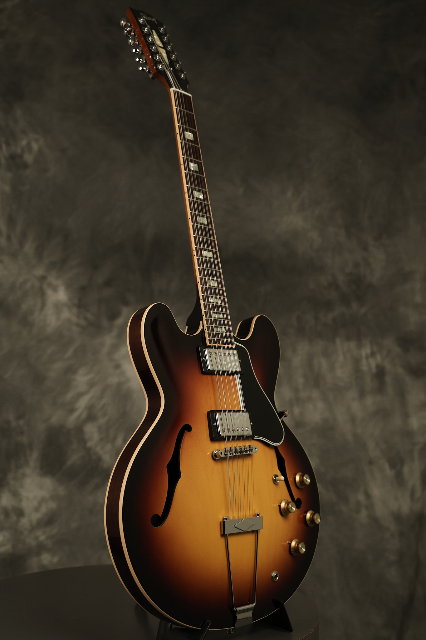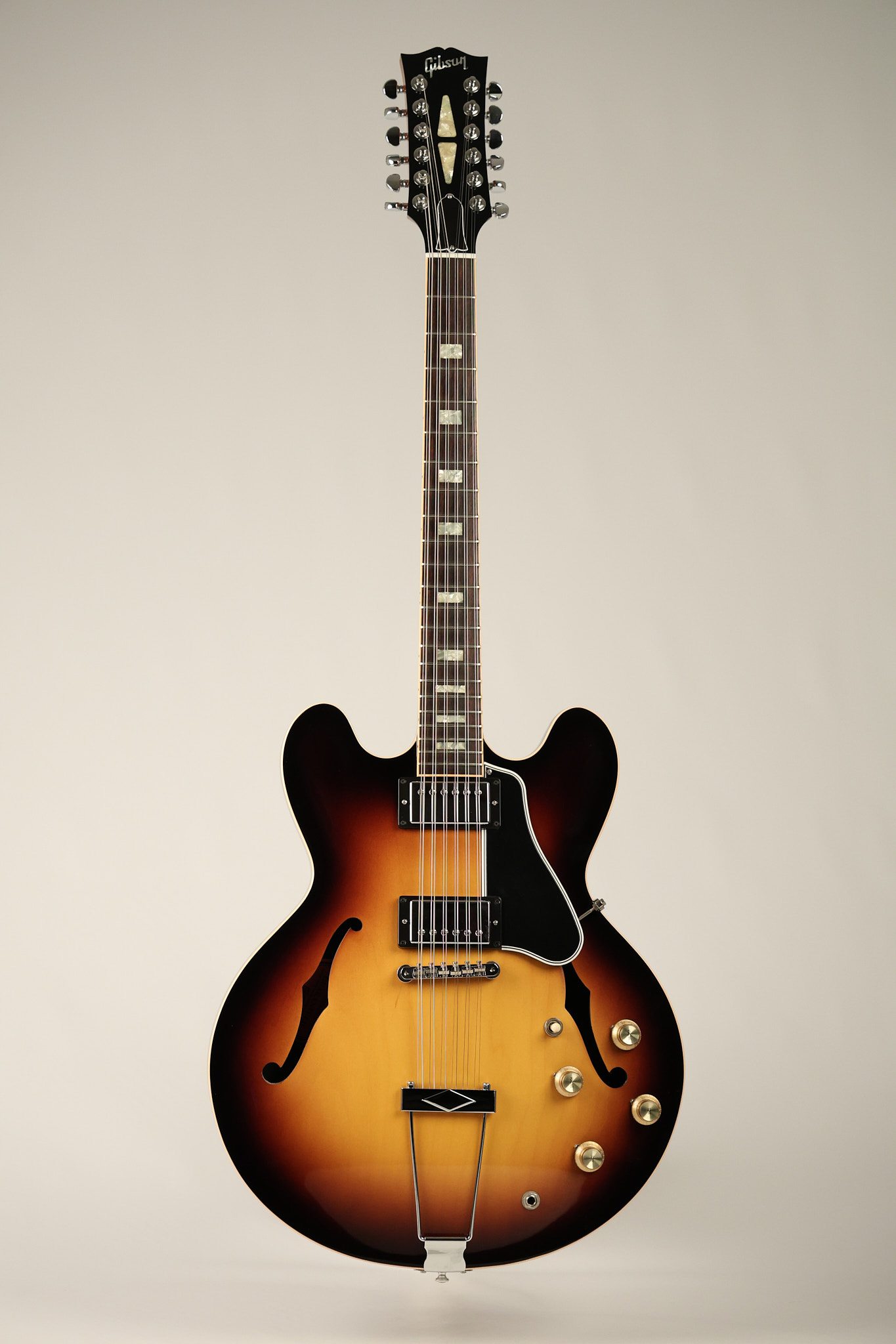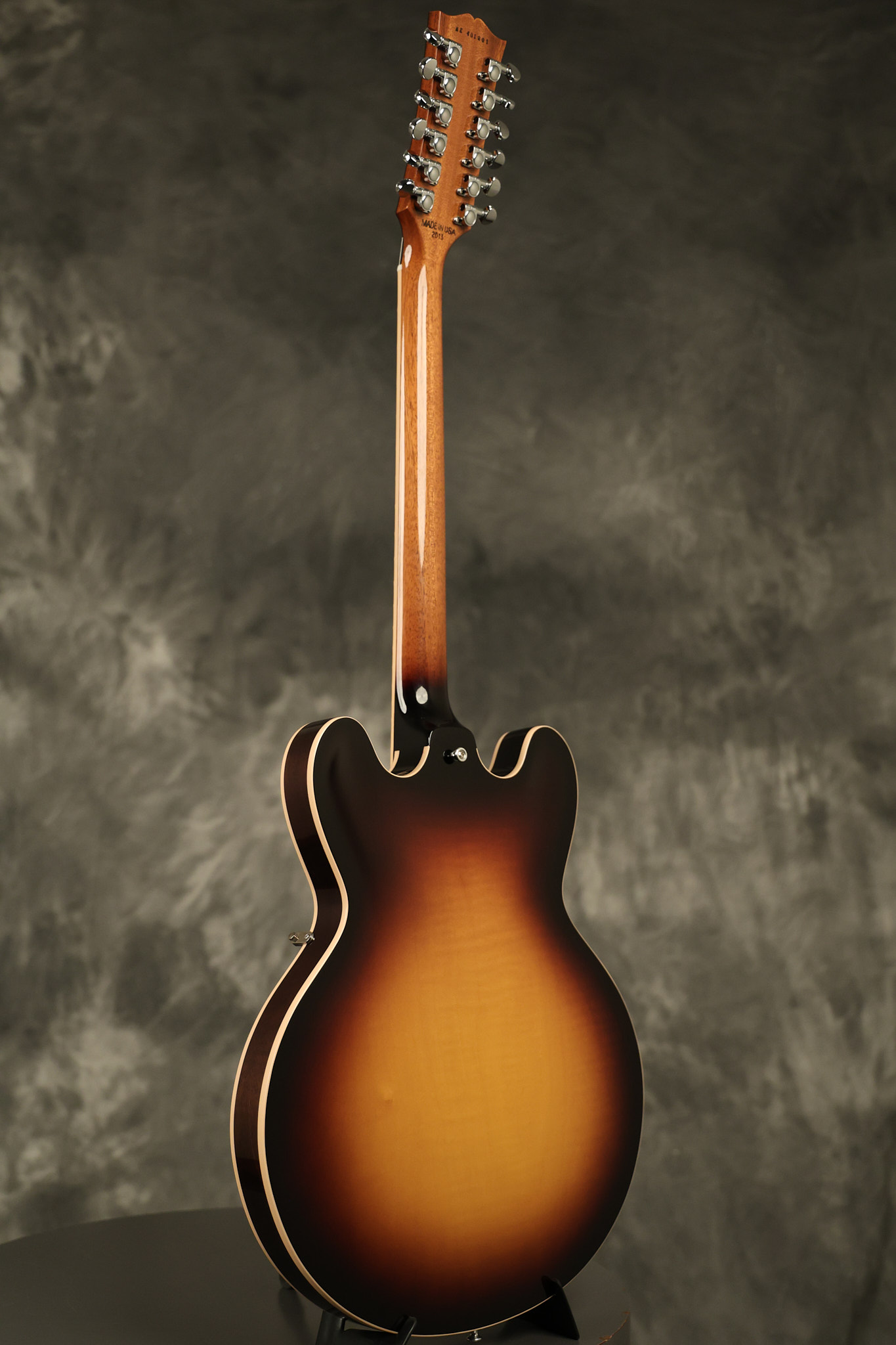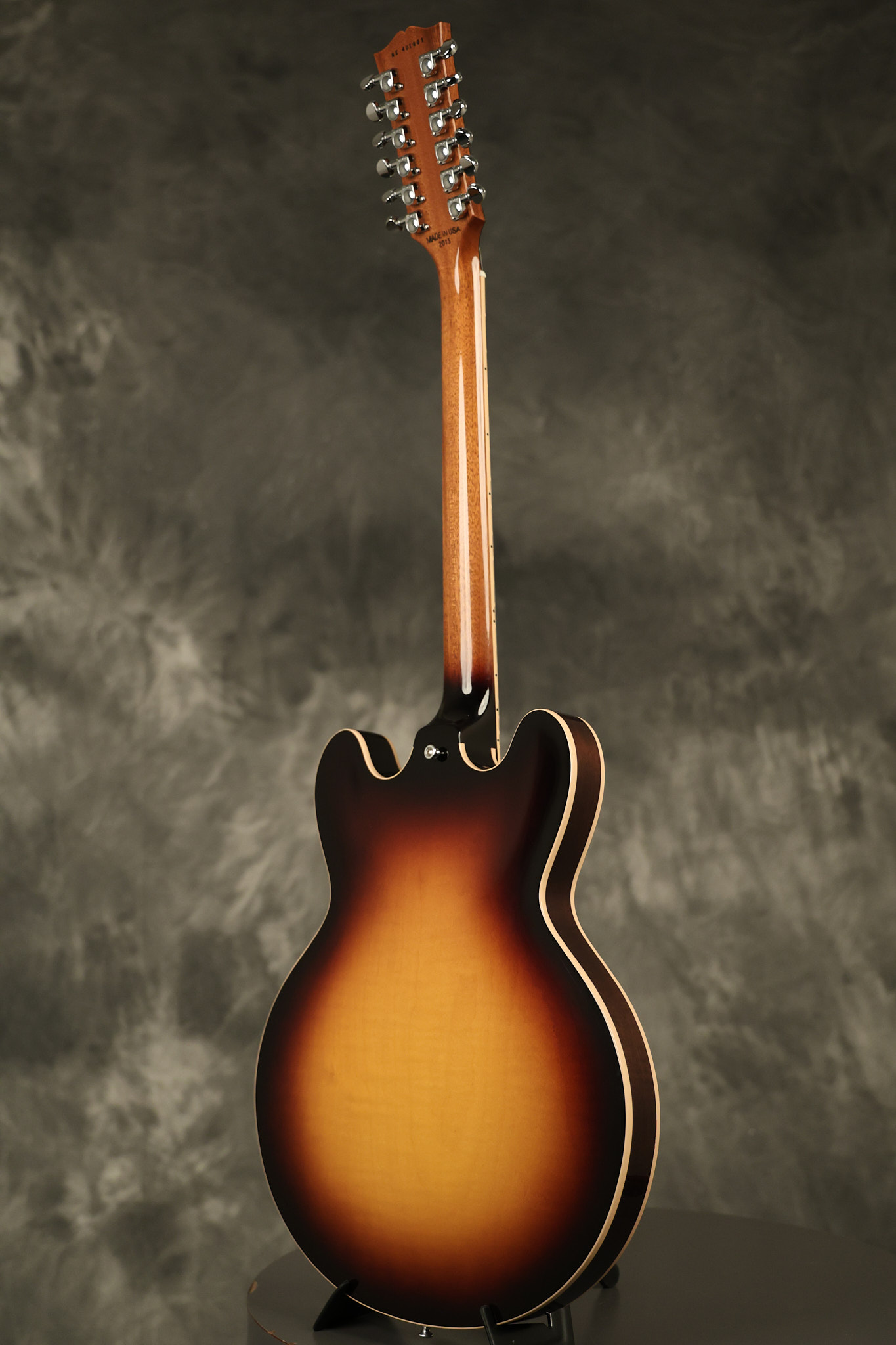 2014 Gibson Memphis ES-335 12-string in Sunburst. It has a great playing neck with great frets. It's all original and 100% complete along with its original hardshell case and certificate of authenticity. It's in EXCELLENT condition with only a few extremely minor nicks + dings and other very minor barely noticeable surface wear. Everything remains structurally sound with no cracks, breaks or repairs. All electronics work and sound great.