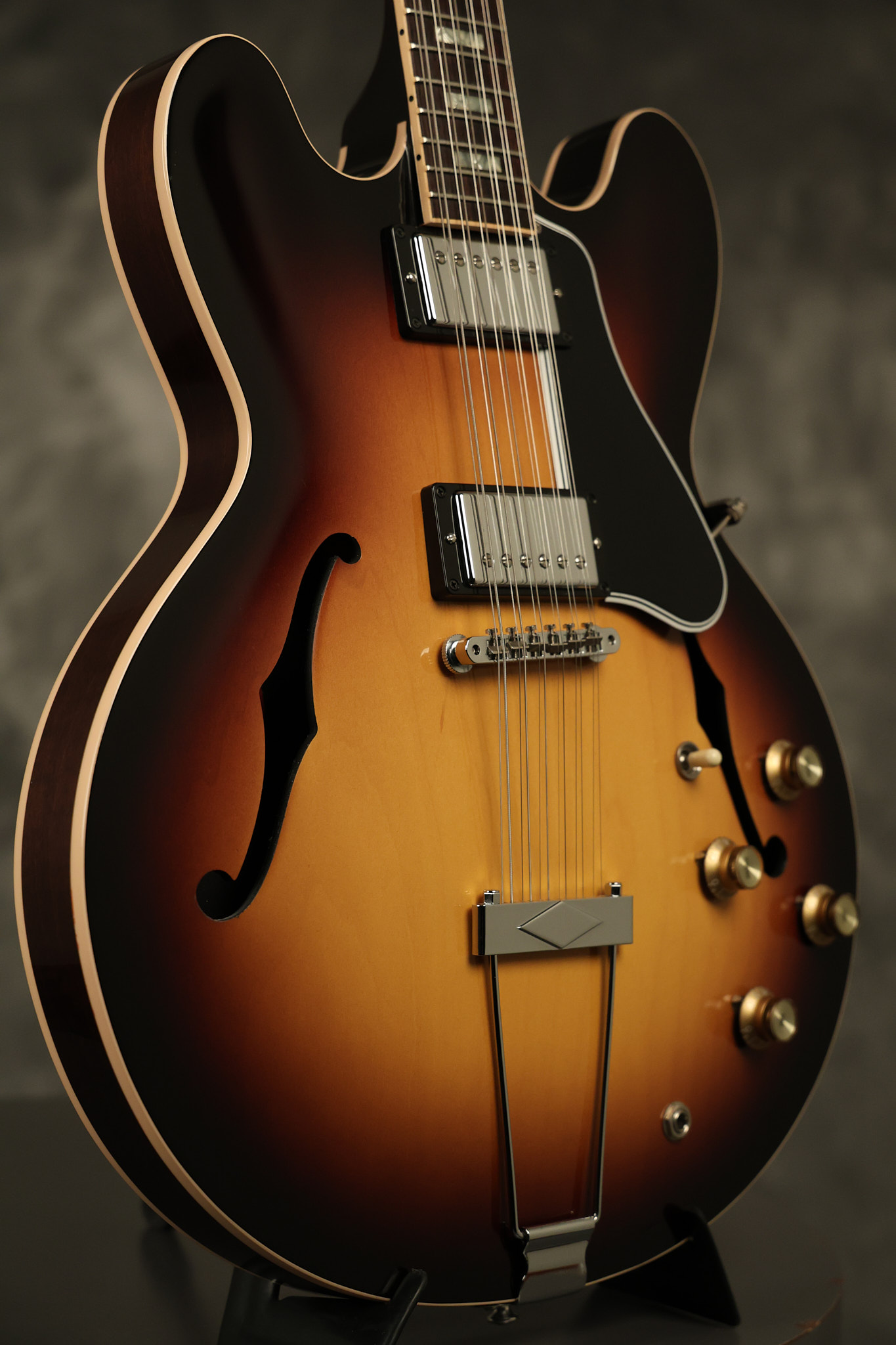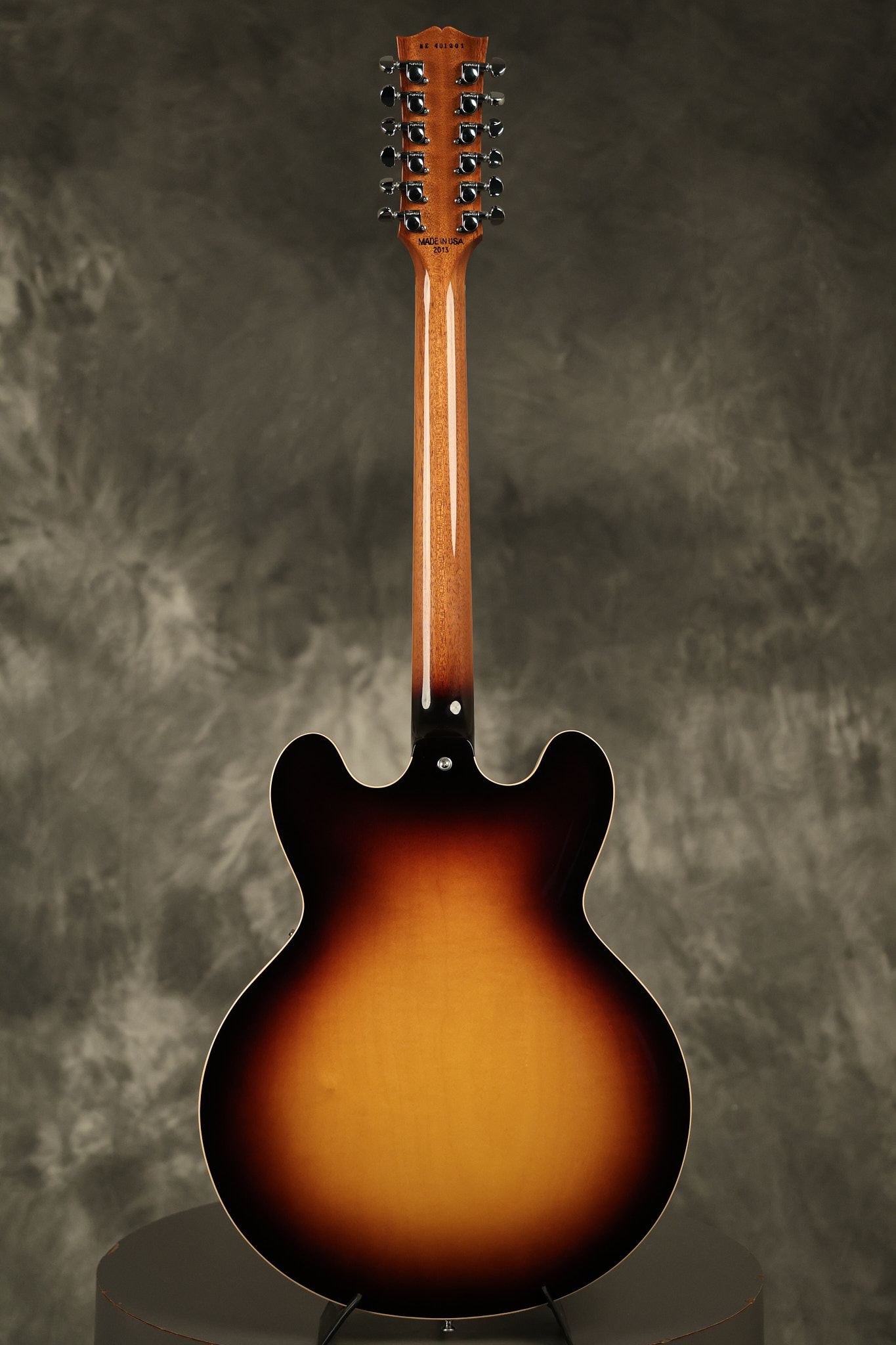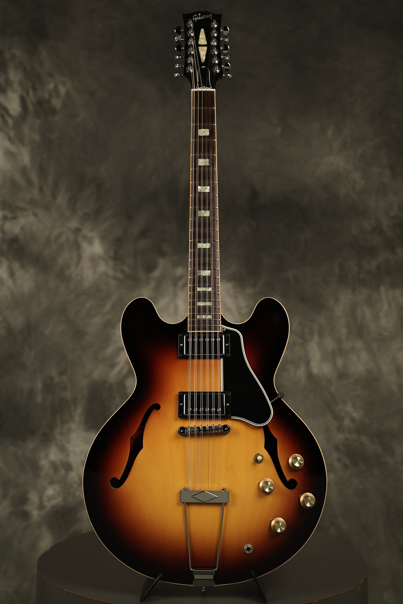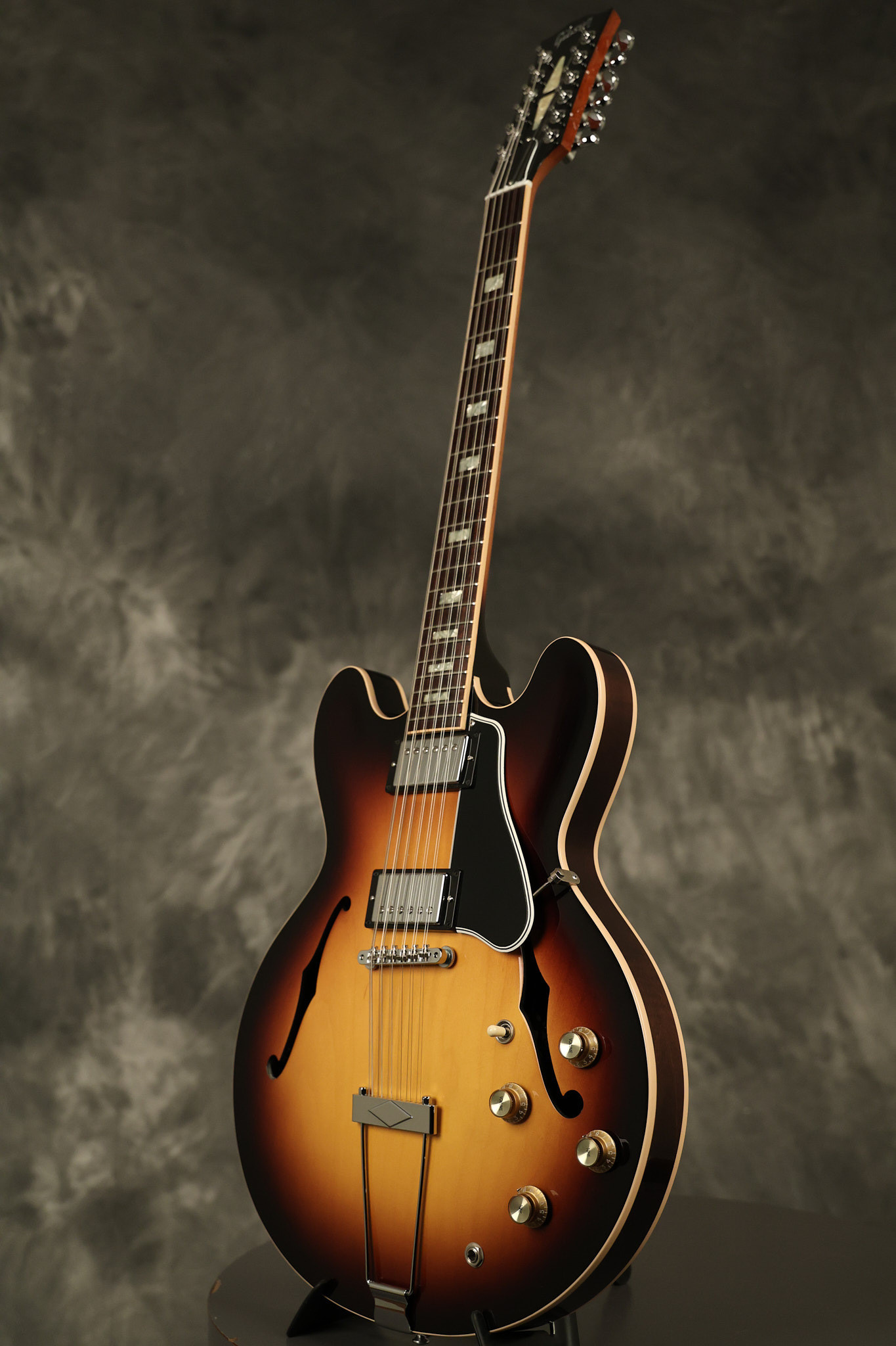 2014 Gibson Memphis ES-335 12-string in Sunburst. It has a great playing neck with great frets. It's all original and 100% complete along with its original hardshell case and certificate of authenticity. It's in EXCELLENT condition with only a few extremely minor nicks + dings and other very minor barely noticeable surface wear. Everything remains structurally sound with no cracks, breaks or repairs. All electronics work and sound great.