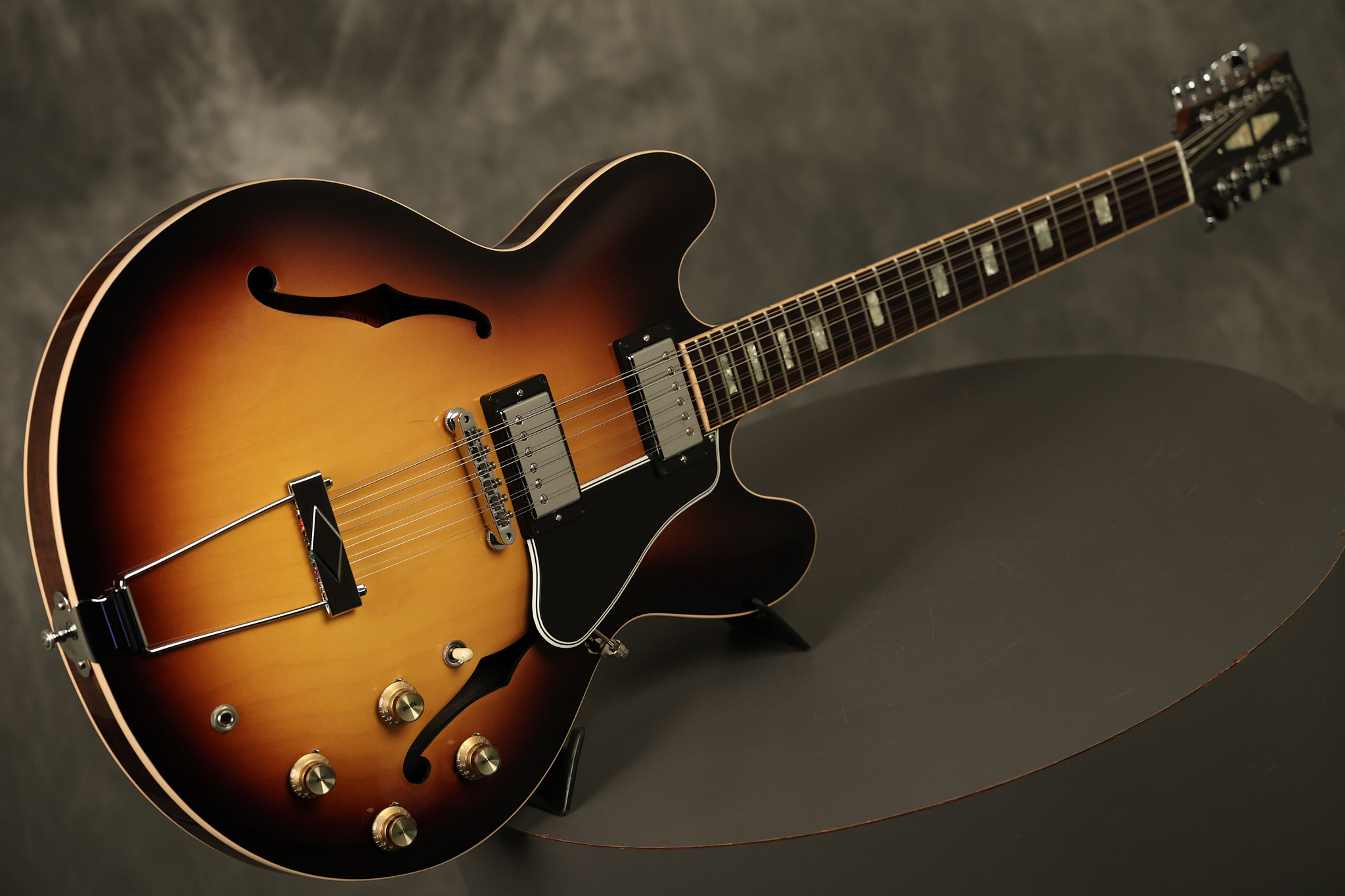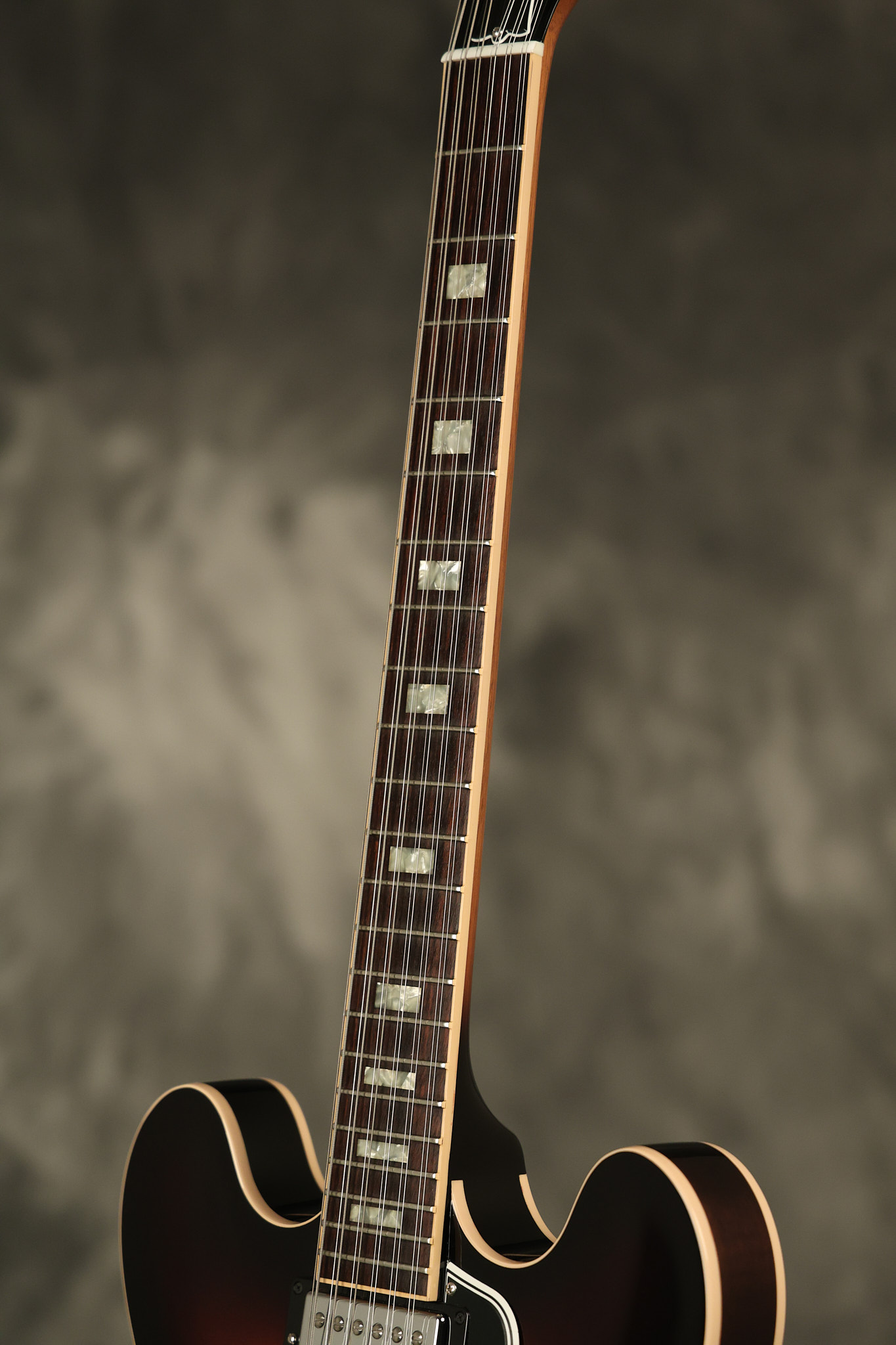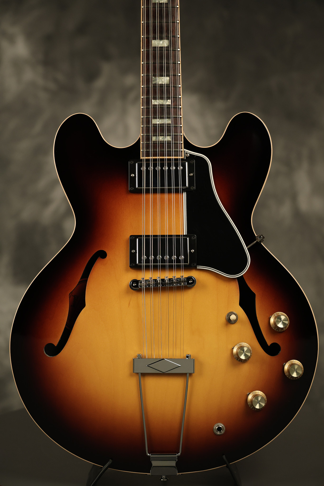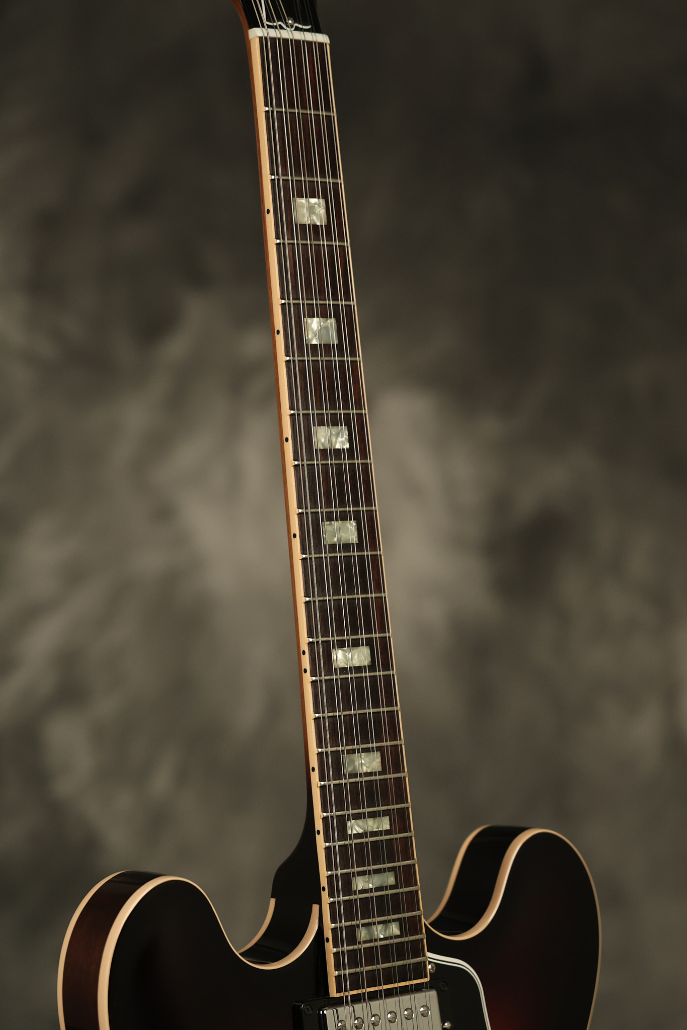 2014 Gibson Memphis ES-335 12-string in Sunburst. It has a great playing neck with great frets. It's all original and 100% complete along with its original hardshell case and certificate of authenticity. It's in EXCELLENT condition with only a few extremely minor nicks + dings and other very minor barely noticeable surface wear. Everything remains structurally sound with no cracks, breaks or repairs. All electronics work and sound great.