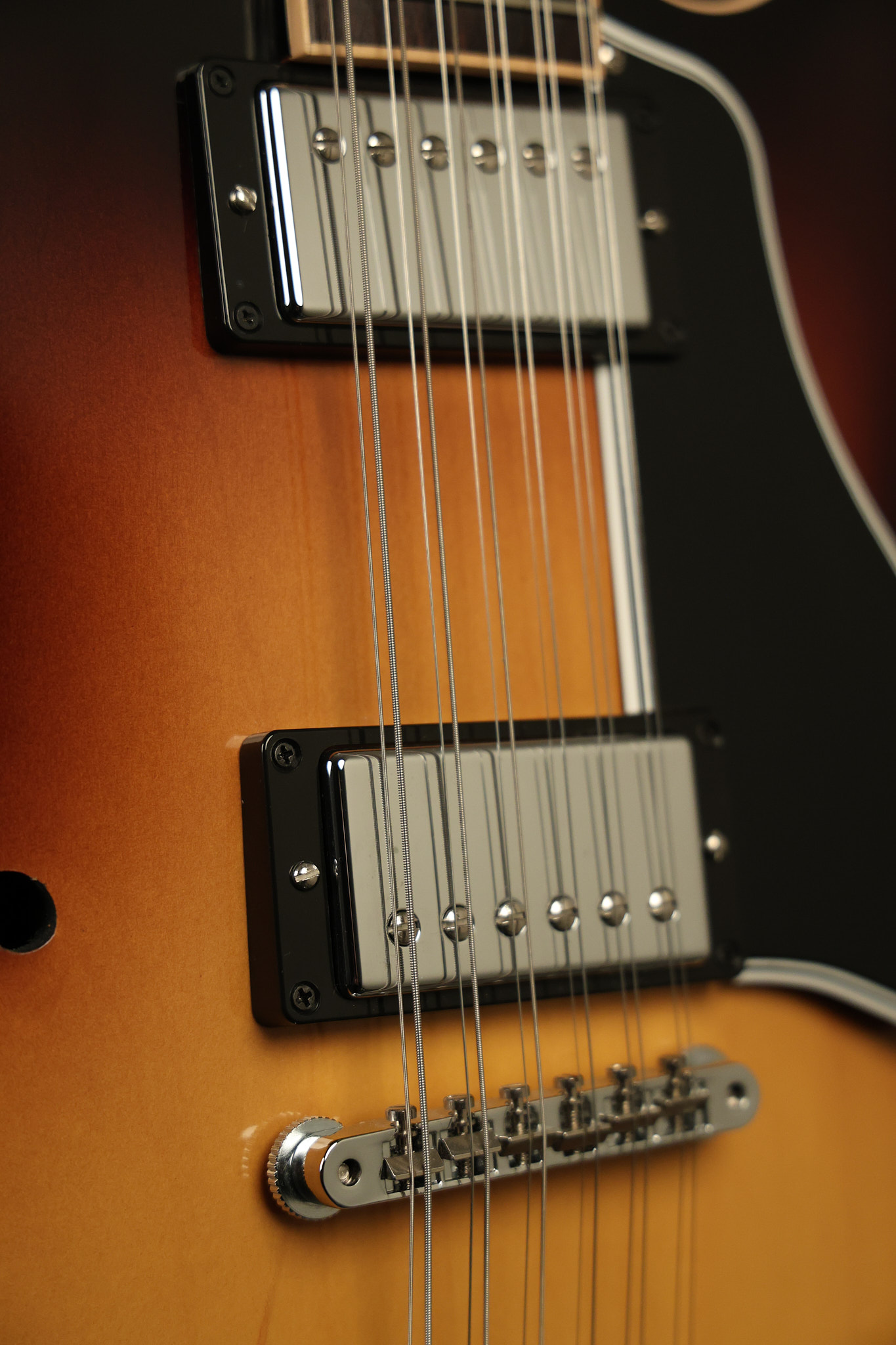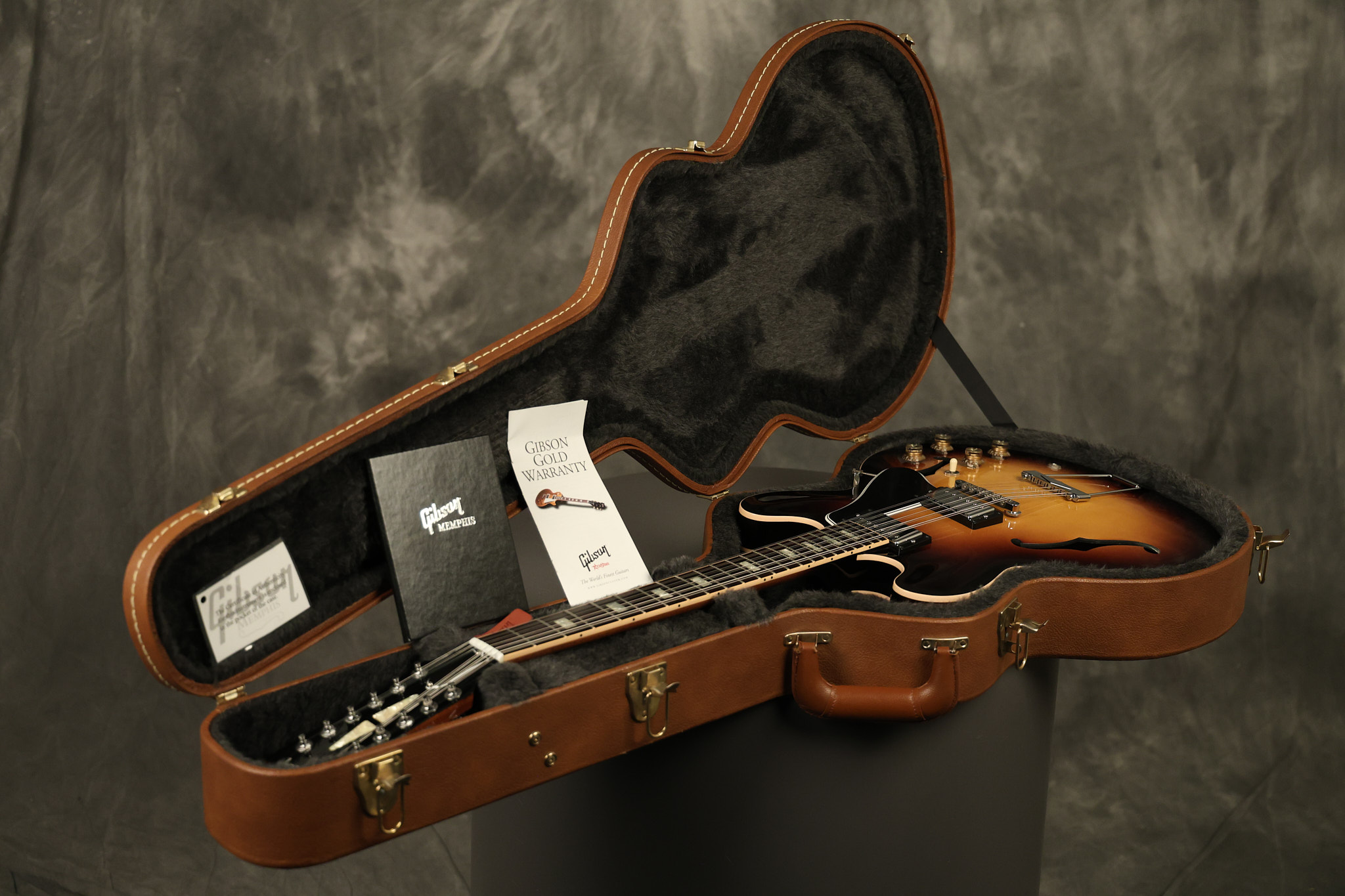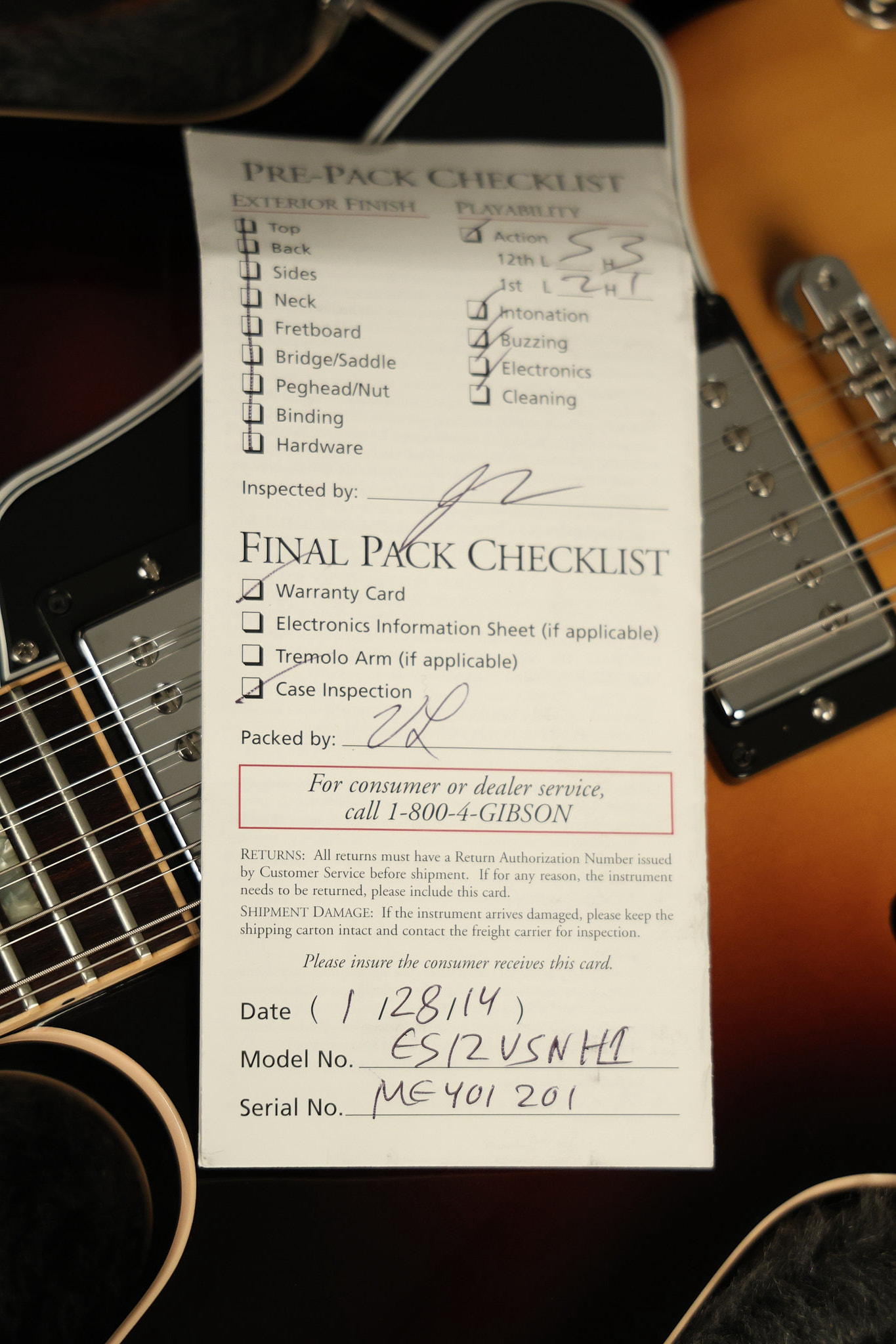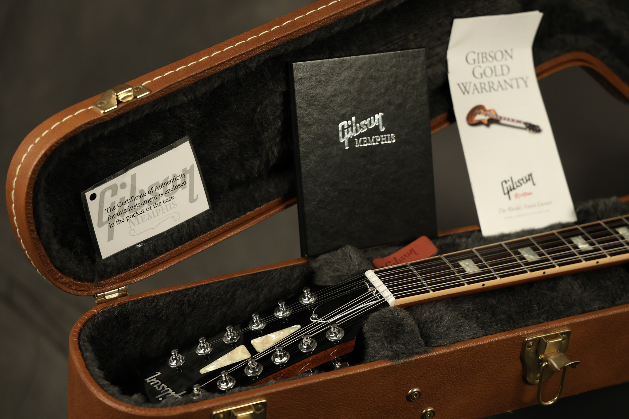 2014 Gibson Memphis ES-335 12-string in Sunburst. It has a great playing neck with great frets. It's all original and 100% complete along with its original hardshell case and certificate of authenticity. It's in EXCELLENT condition with only a few extremely minor nicks + dings and other very minor barely noticeable surface wear. Everything remains structurally sound with no cracks, breaks or repairs. All electronics work and sound great.