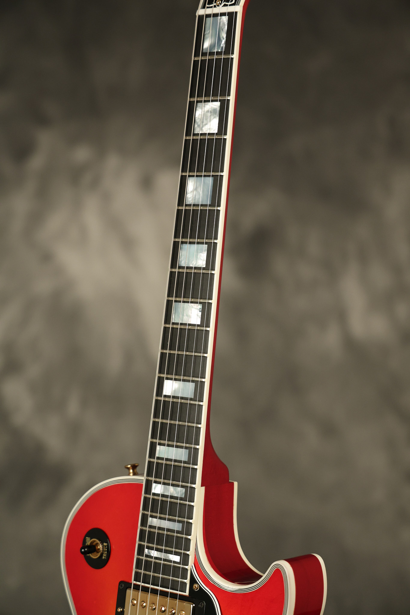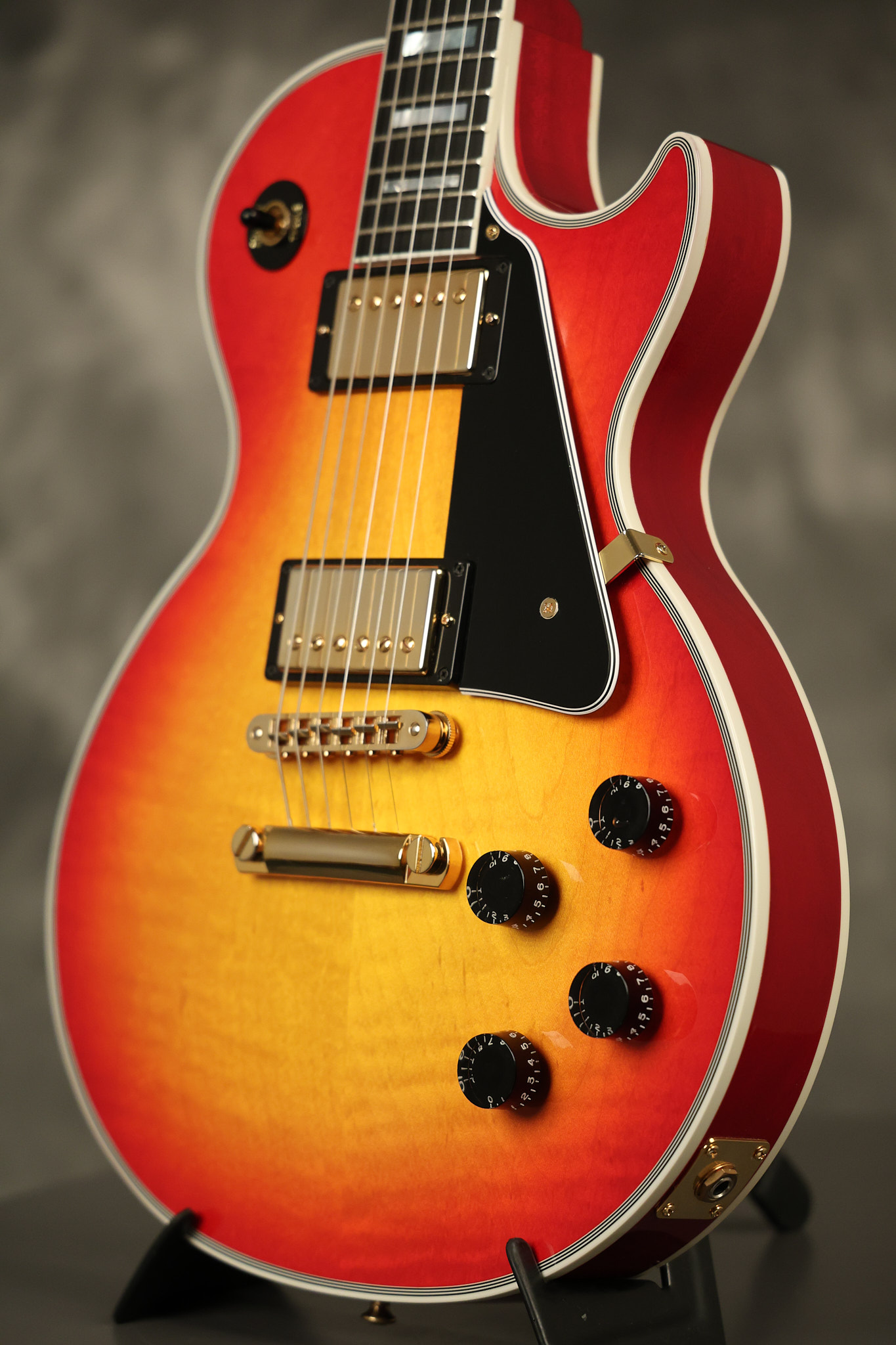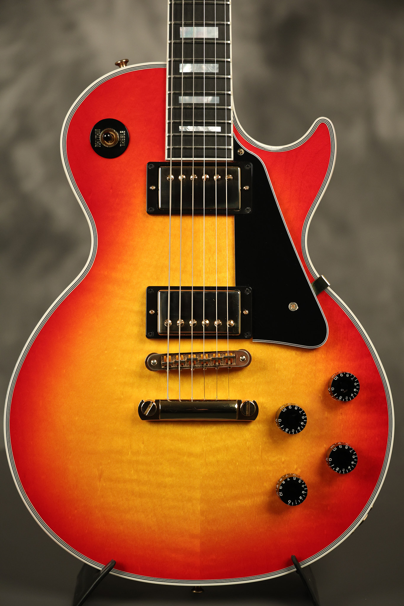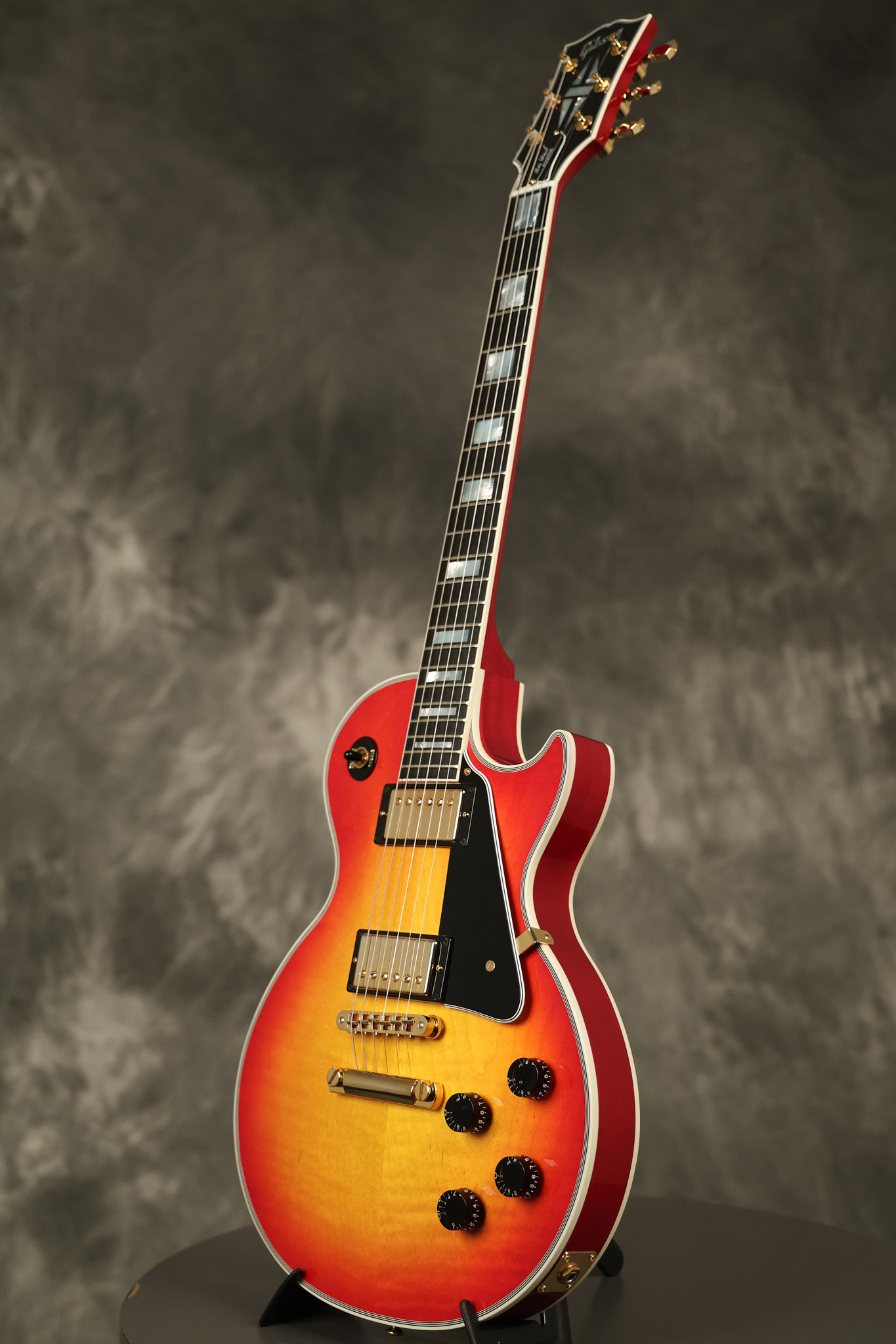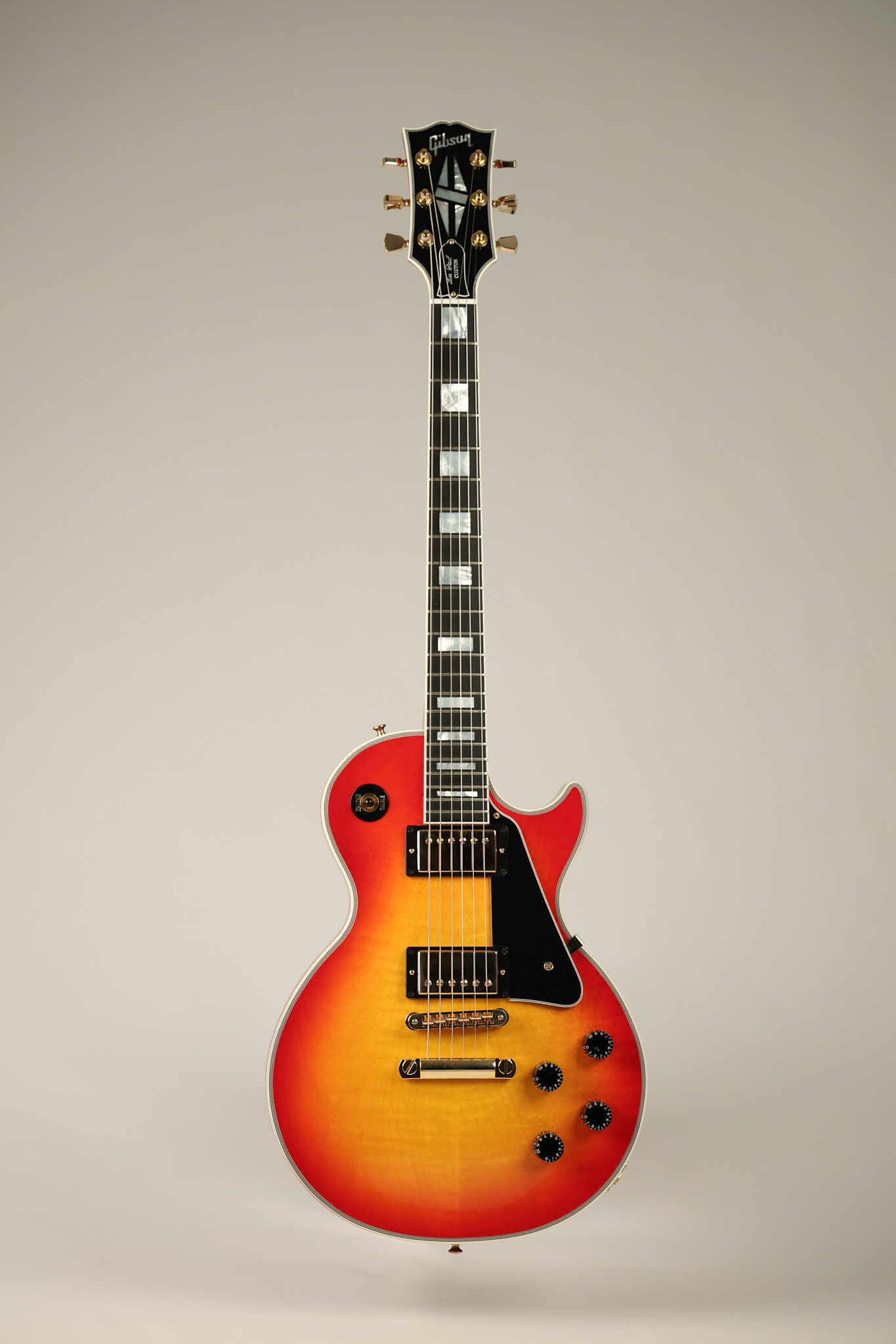 2016 Gibson Custom Shop Les Paul Custom in Cherry Sunburst. It has a great playing neck with great frets. It's all original and 100% complete along with its original hardshell case, certificate of authenticity, warranty checklist, additional metal Gibson Custom switch cover and original white switch tip (the pictured additional black switch is also included). It's in EXCELLENT condition with only very minor cosmetic wear. Everything remains structurally sound with no cracks, breaks or repairs. All electronics work and sound great.