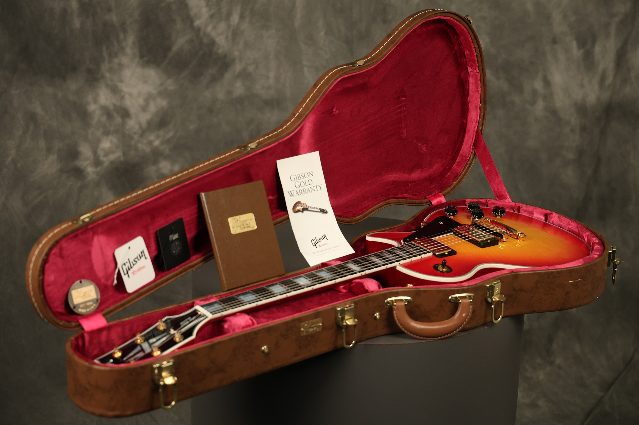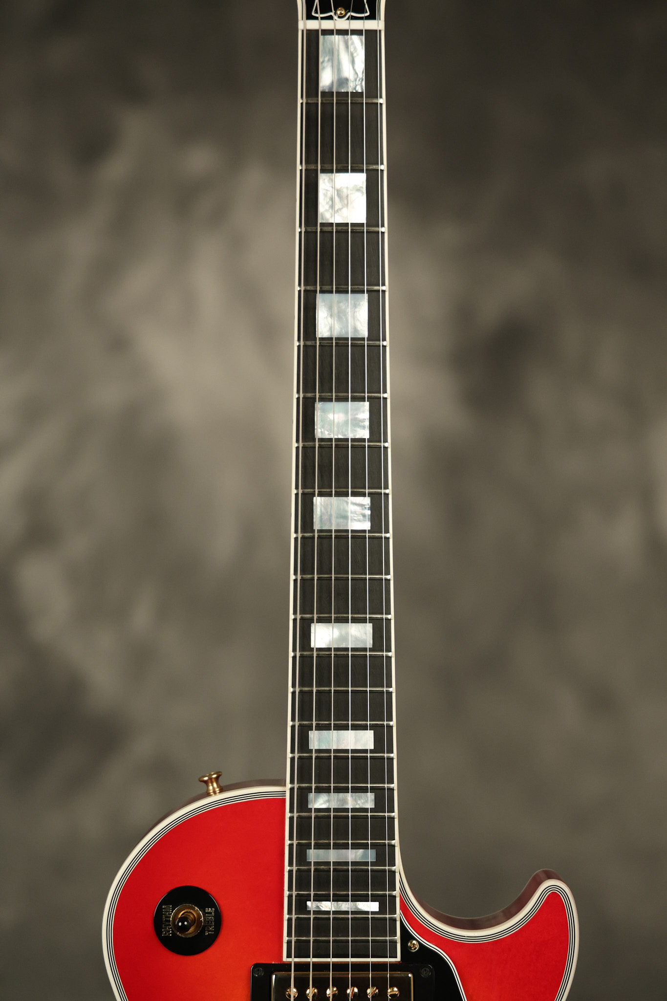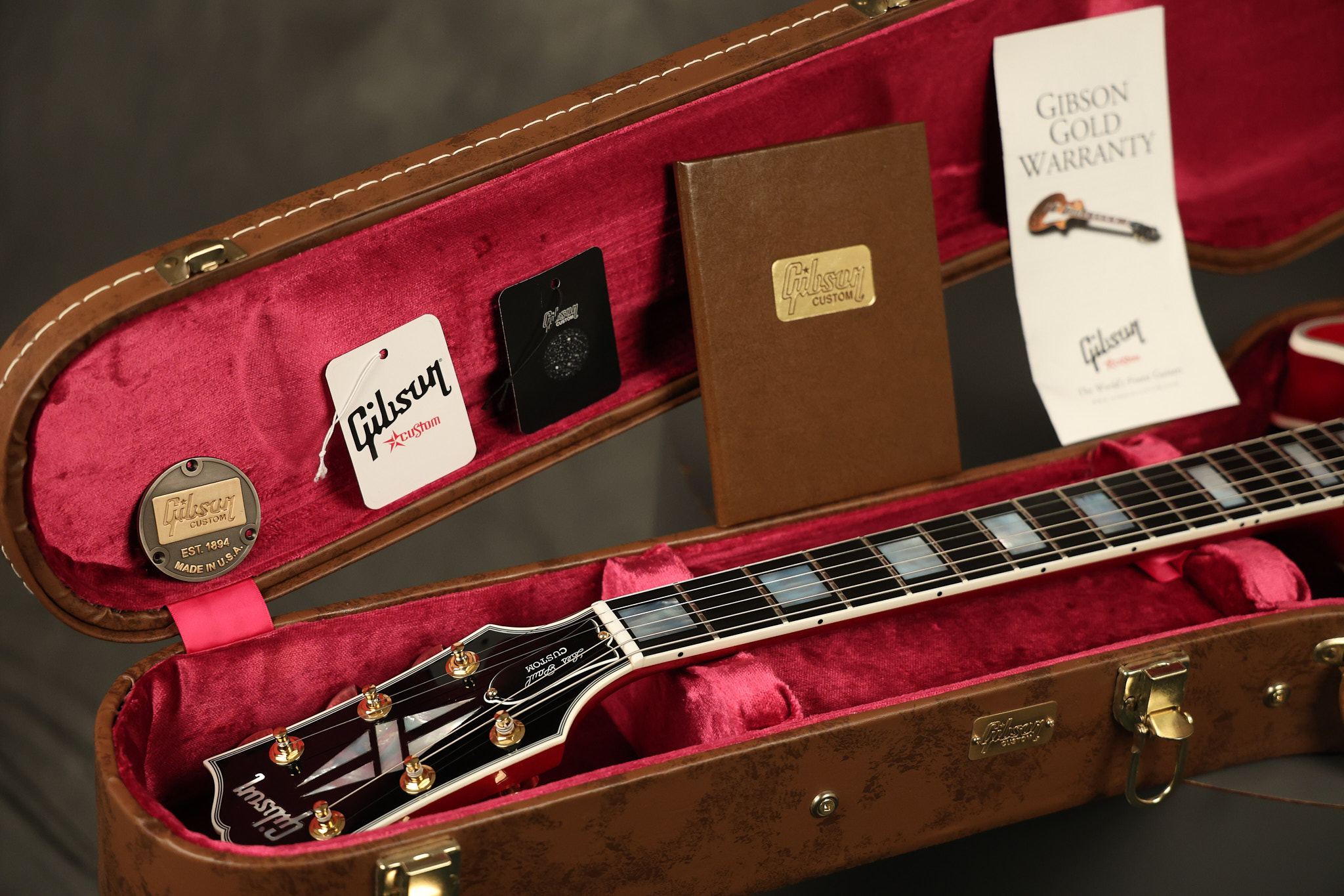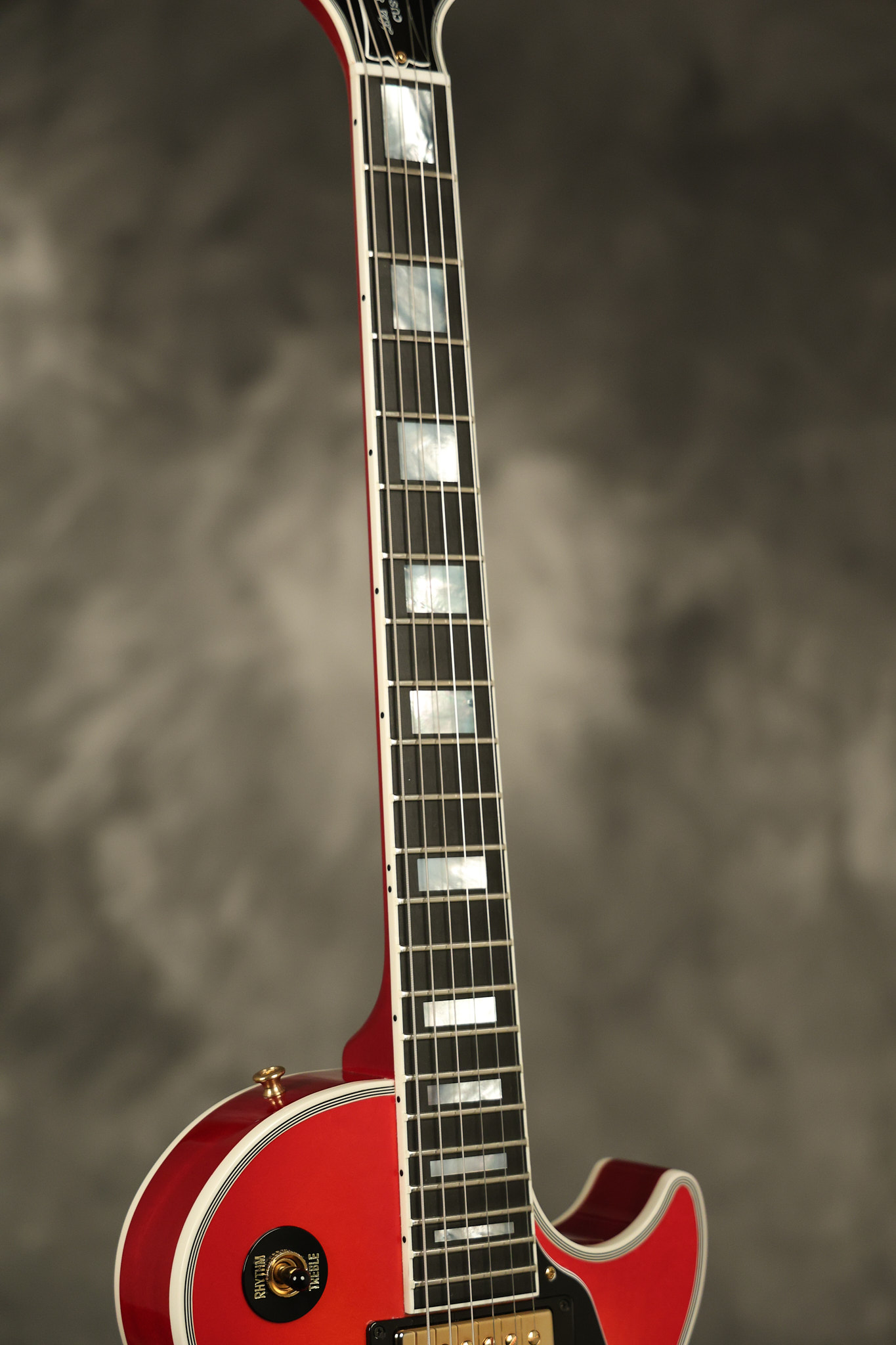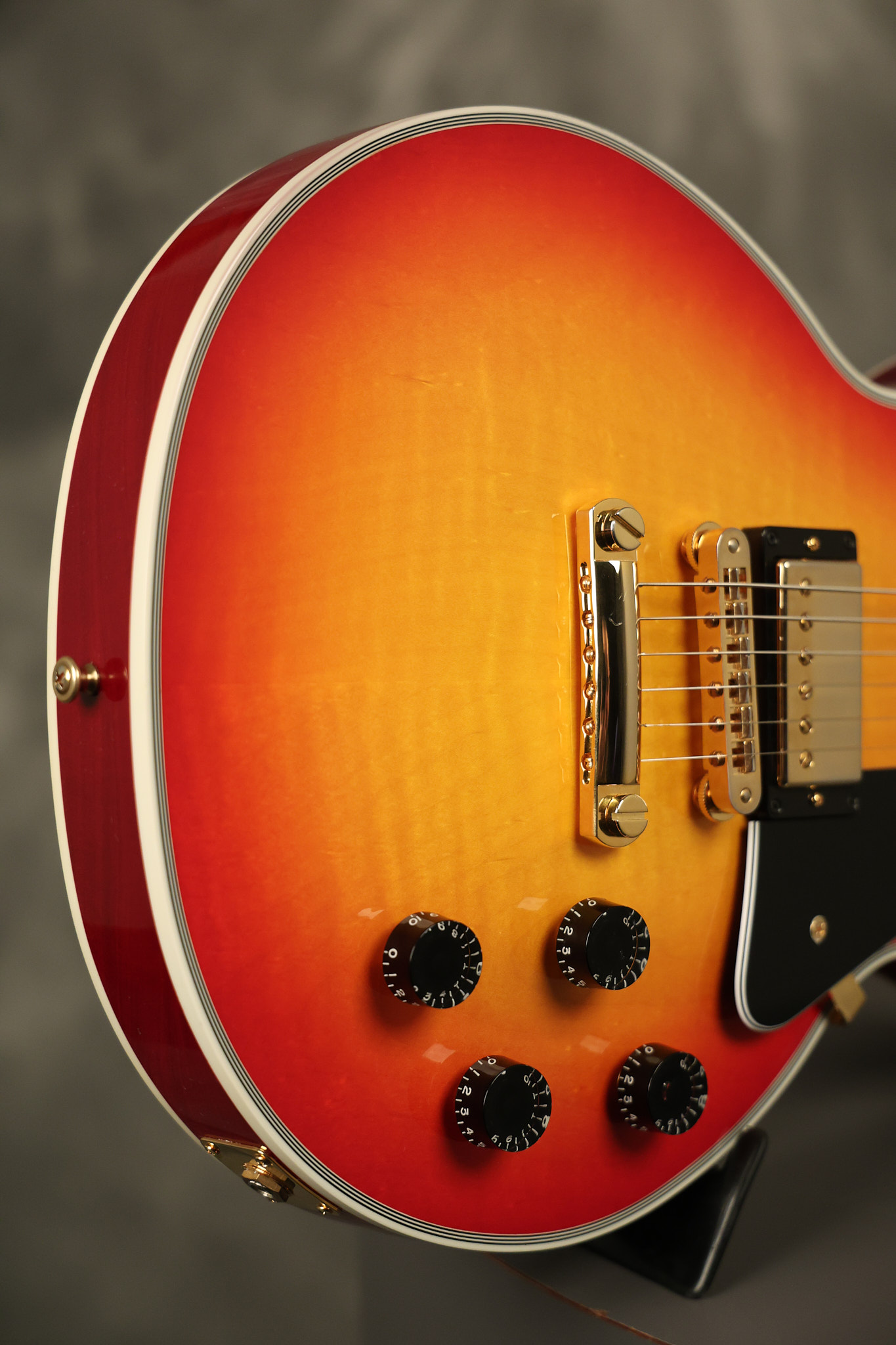2016 Gibson Custom Shop Les Paul Custom in Cherry Sunburst. It has a great playing neck with great frets. It's all original and 100% complete along with its original hardshell case, certificate of authenticity, warranty checklist, additional metal Gibson Custom switch cover and original white switch tip (the pictured additional black switch is also included). It's in EXCELLENT condition with only very minor cosmetic wear. Everything remains structurally sound with no cracks, breaks or repairs. All electronics work and sound great.