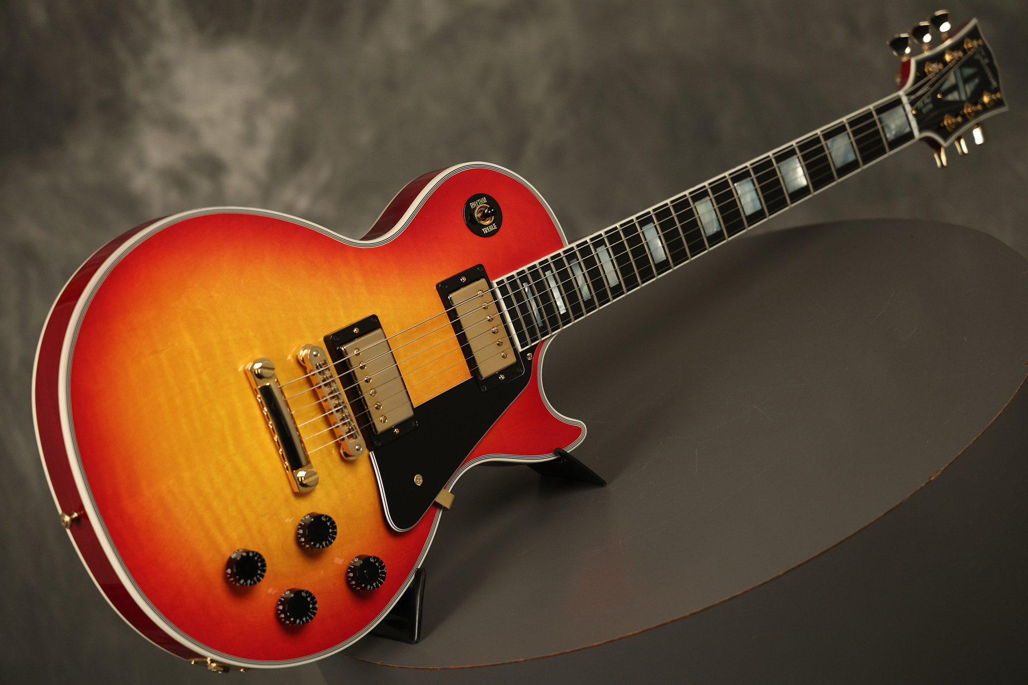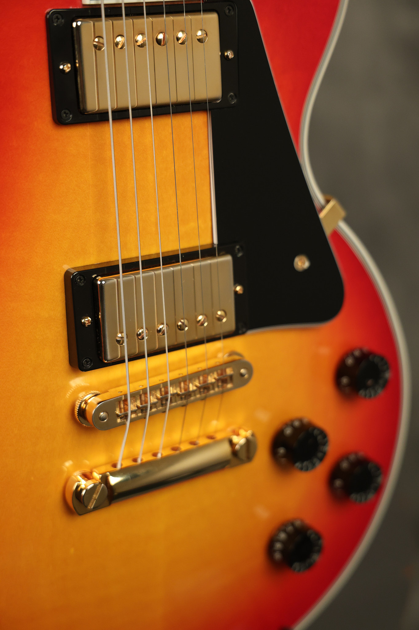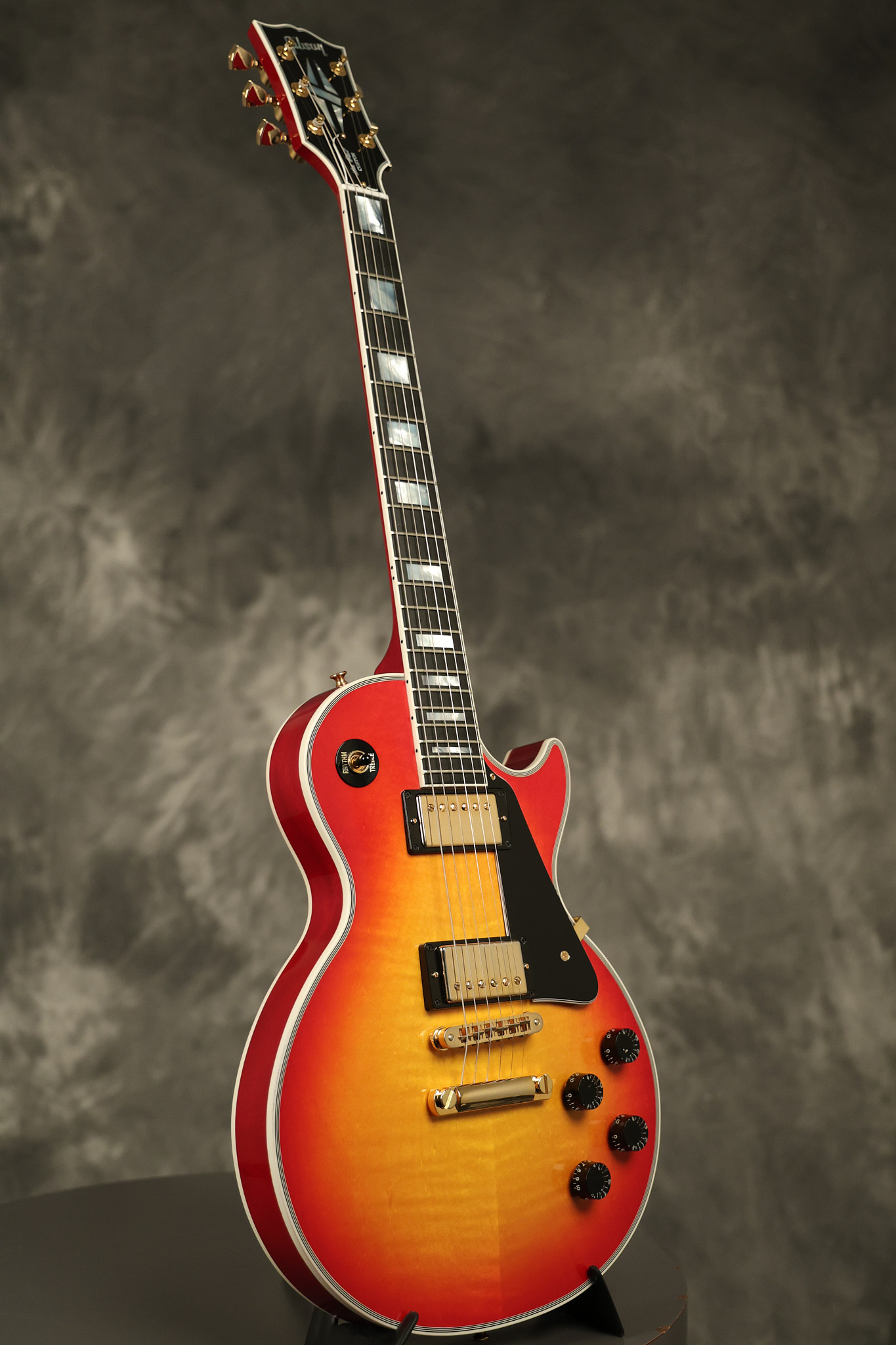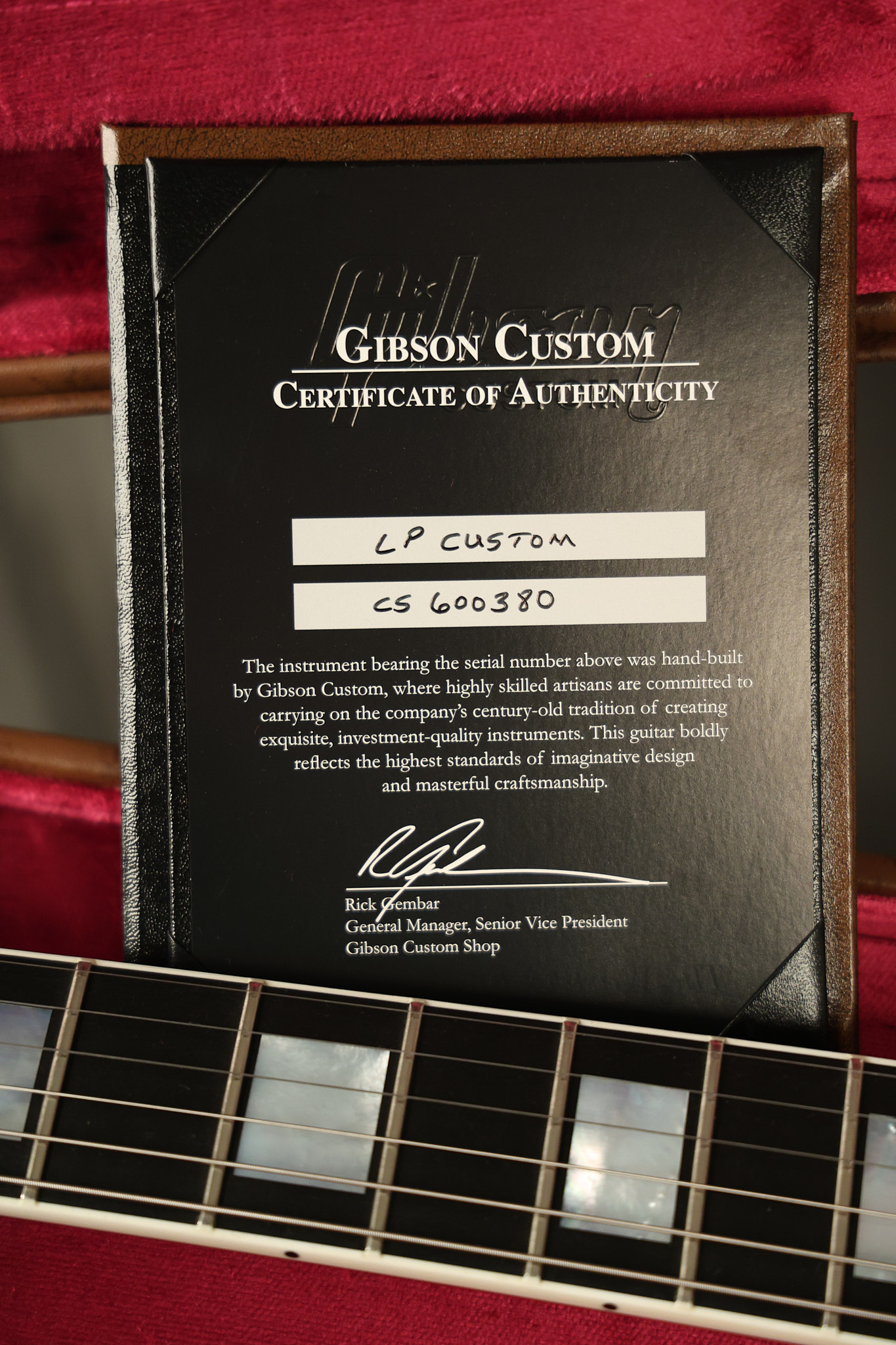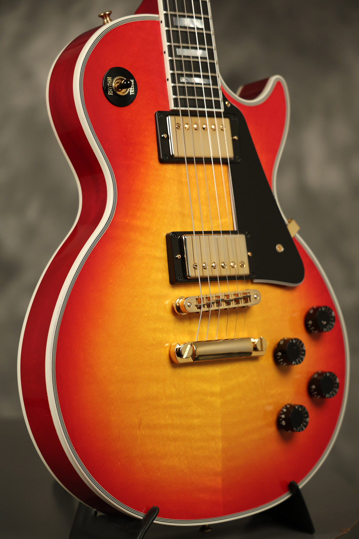 2016 Gibson Custom Shop Les Paul Custom in Cherry Sunburst. It has a great playing neck with great frets. It's all original and 100% complete along with its original hardshell case, certificate of authenticity, warranty checklist, additional metal Gibson Custom switch cover and original white switch tip (the pictured additional black switch is also included). It's in EXCELLENT condition with only very minor cosmetic wear. Everything remains structurally sound with no cracks, breaks or repairs. All electronics work and sound great.