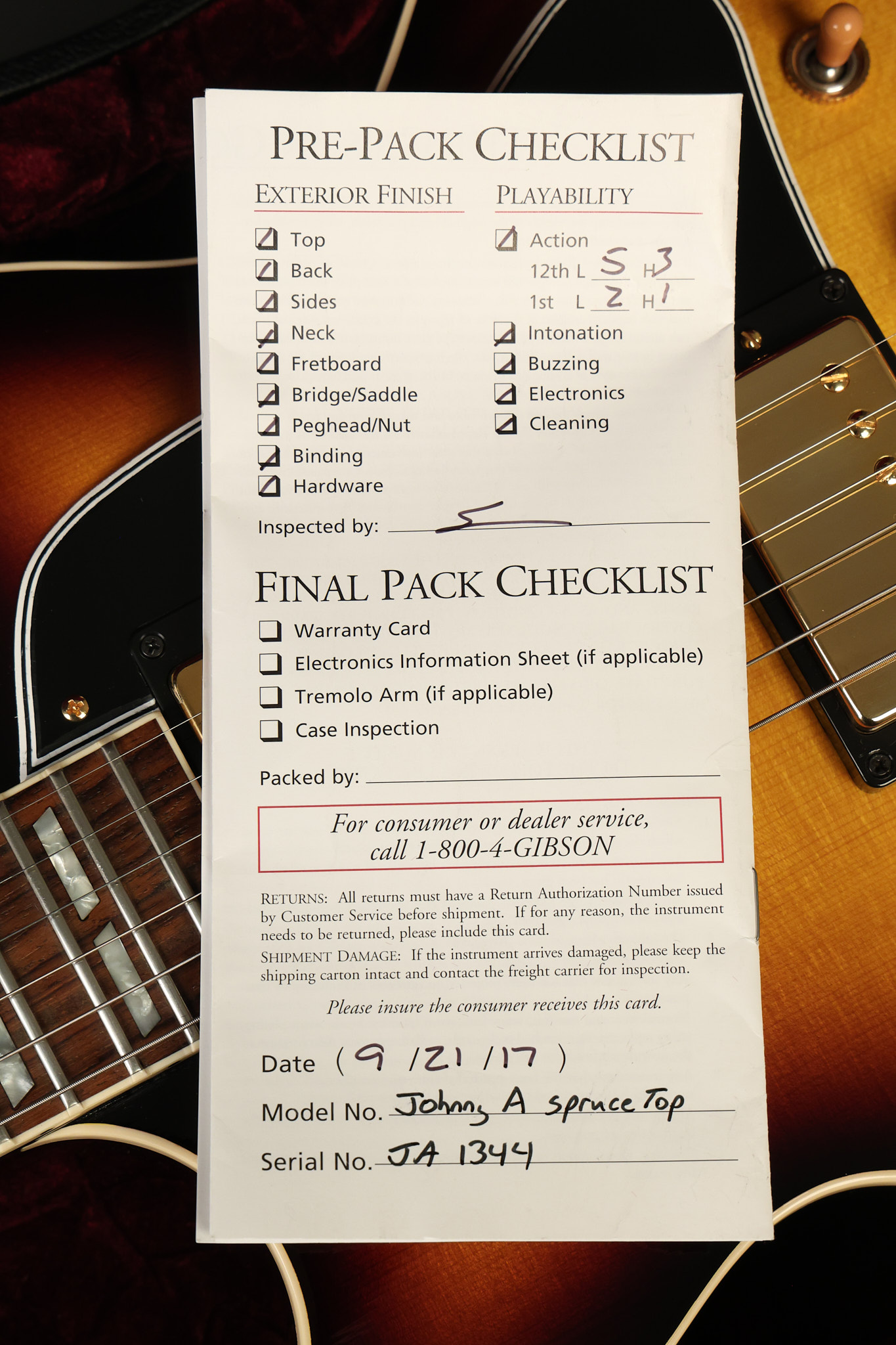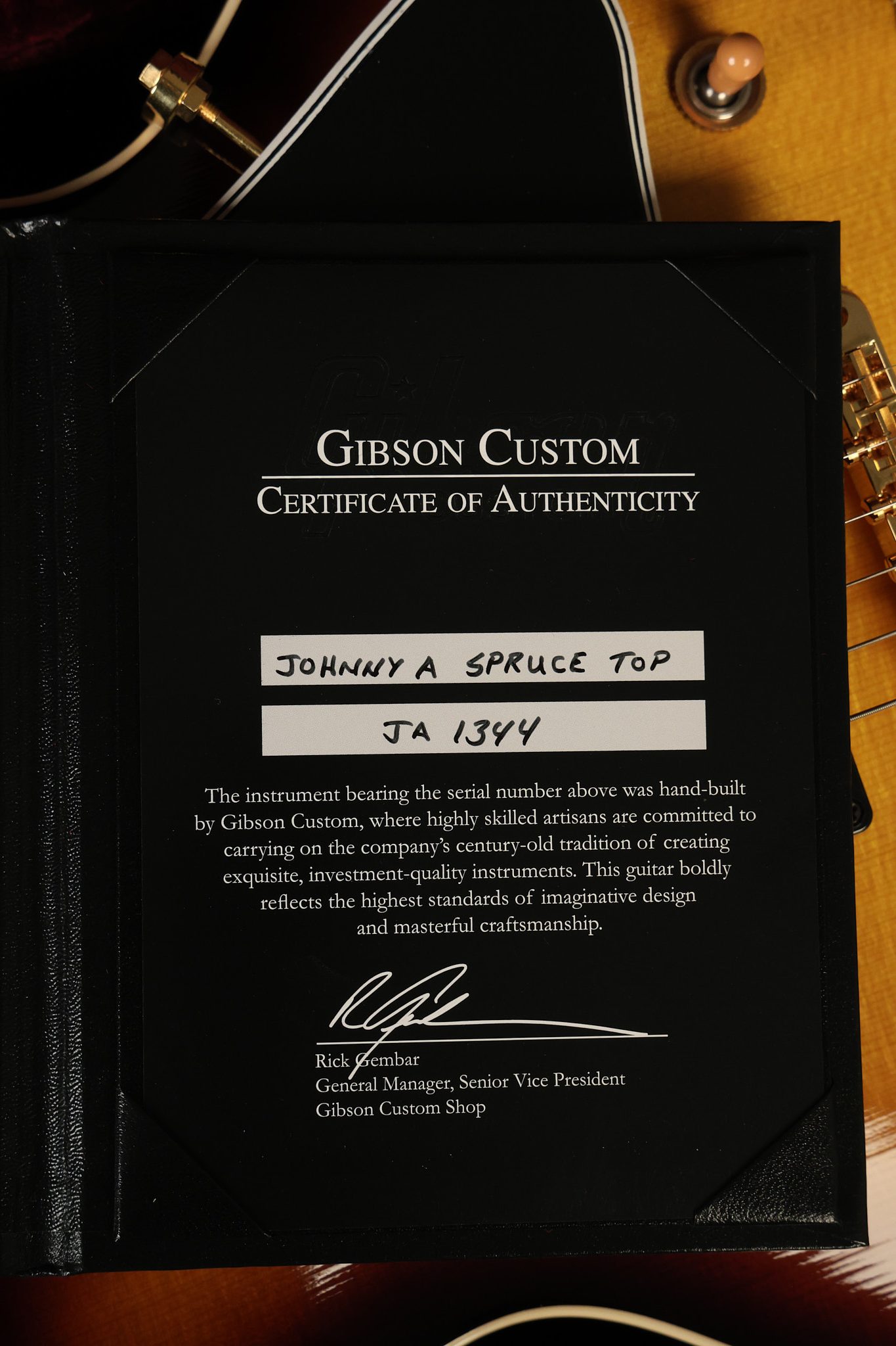 2017 Gibson Custom Shop Johnny A signature model with a Spruce top. It has a great playing neck with great frets. It's all original and 100% complete along with its original hardshell case and certificate of authenticity. It's in NEAR MINT condition with only very little near invisible surface wear. All electronics work and sound great.