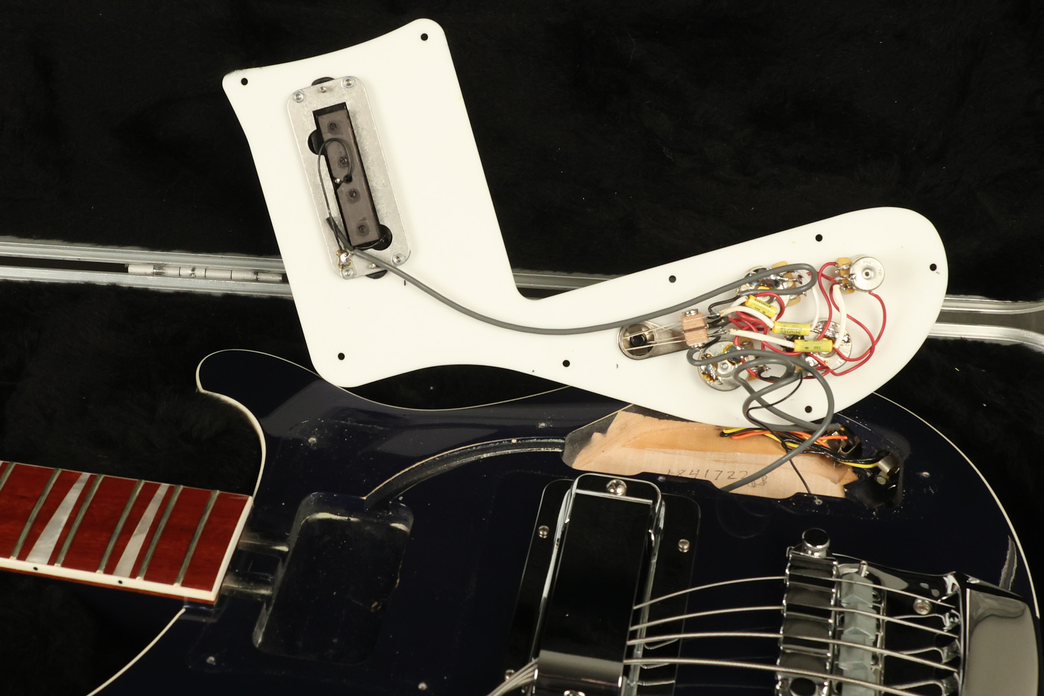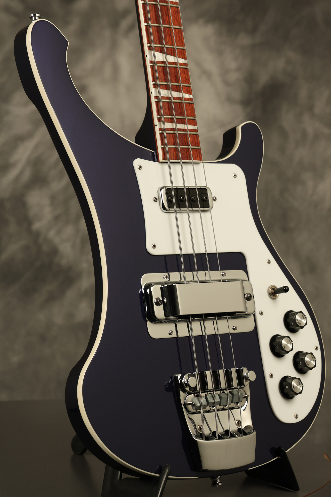 2018 Rickenbacker 4003 in Midnight Blue. It has a great playing neck with great frets. It's all original and 100% complete along with its original hardshell case. It's in EXCELLENT condition with only very little barely noticeable cosmetic wear. All electronics work and sound great.