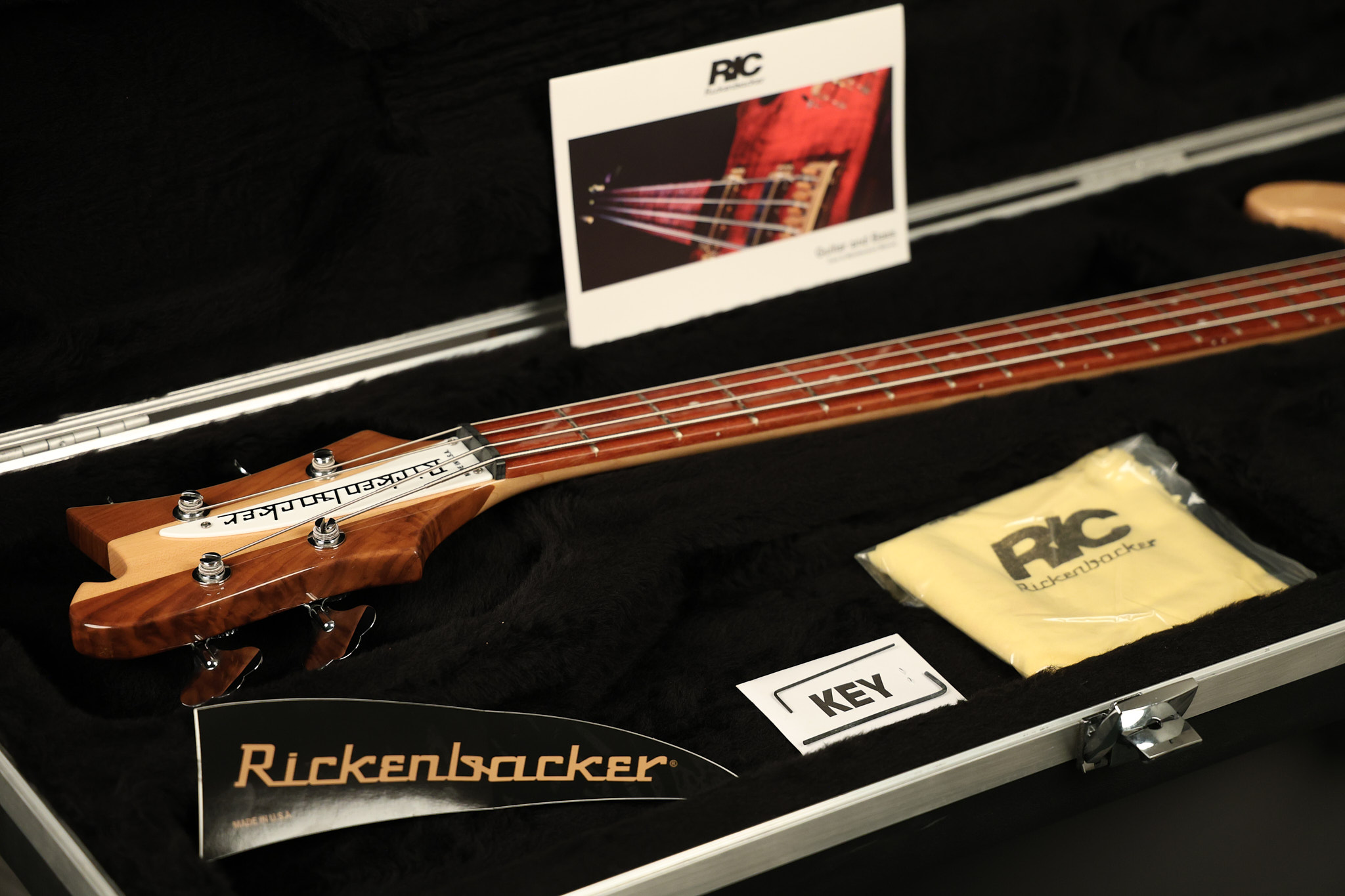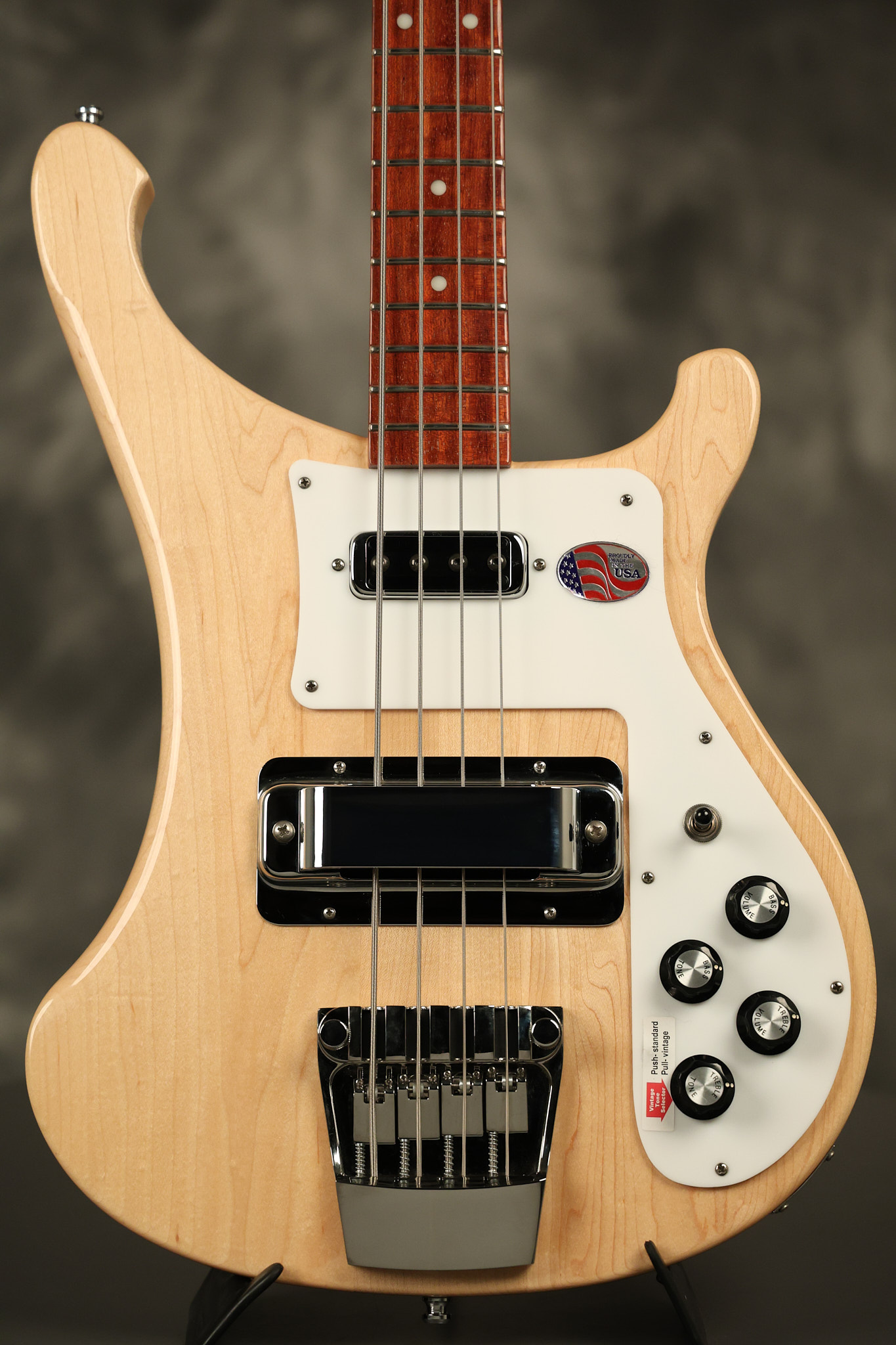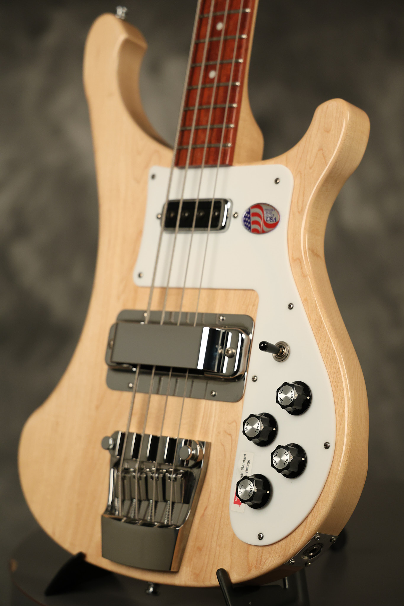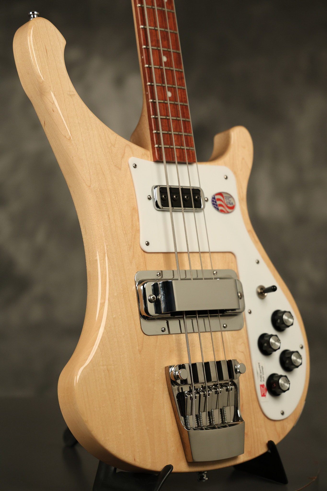 2019 Rickenbacker 4003S in Mapleglo. It has a great playing neck with great frets. It's all original and 100% complete along with its original hardshell case. It's in NEAR MINT condition with only some extremely minor near invisible surface blemishes. Everything remains structurally sound with no cracks, breaks or repairs. All electronics work and sound great.