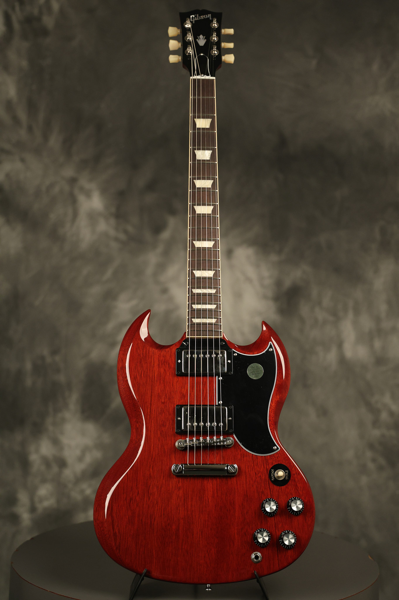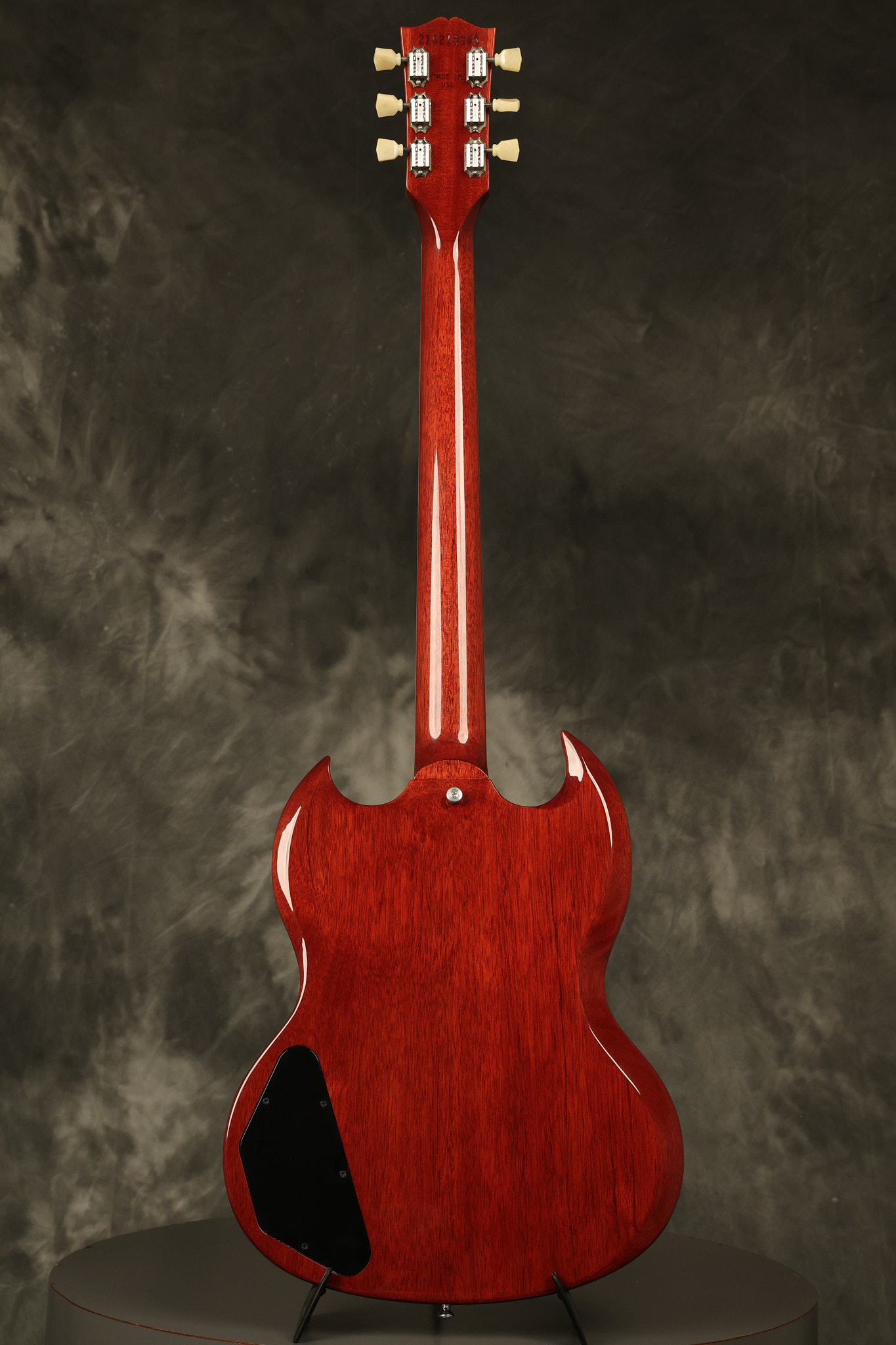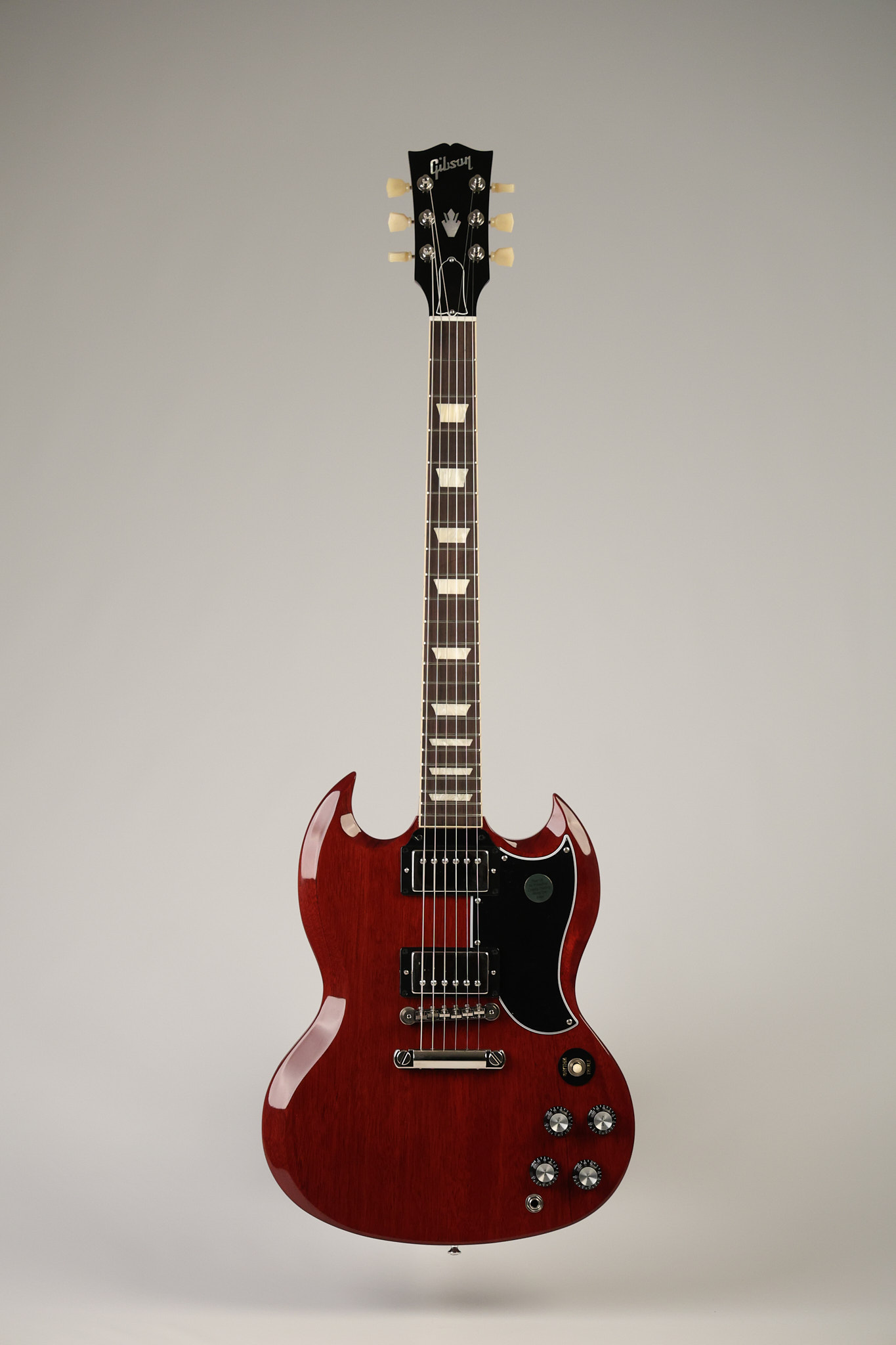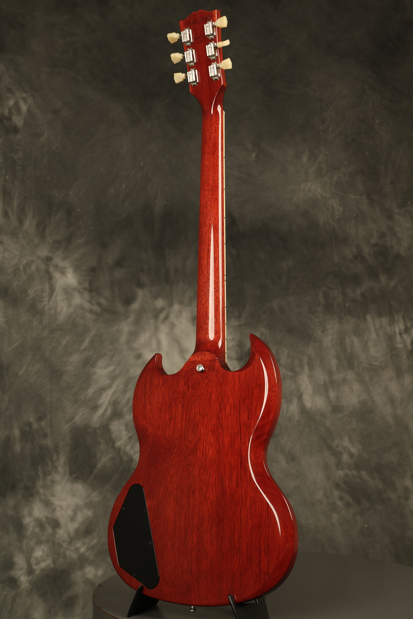 2021 Gibson SG Standard '61 reissue in Cherry. It has a great playing neck with great frets. It's all original and 100% complete along with its original hardshell case. It's in EXCELLENT condition with some tiny barely noticeable blemishes in the finish and some other minor surface wear. The protective plastic is still on the pickguard. Everything remains structurally sound with no cracks, breaks or repairs. All electronics work and sound great.