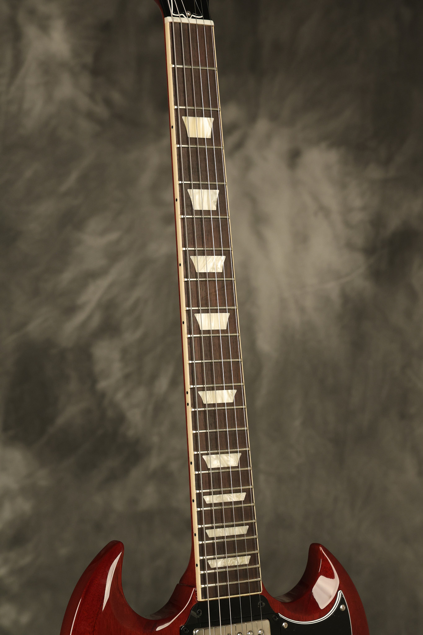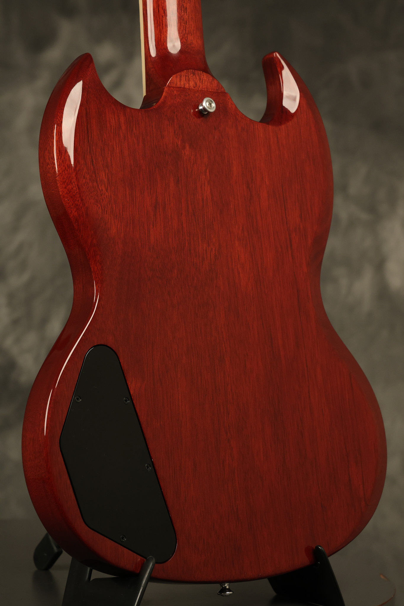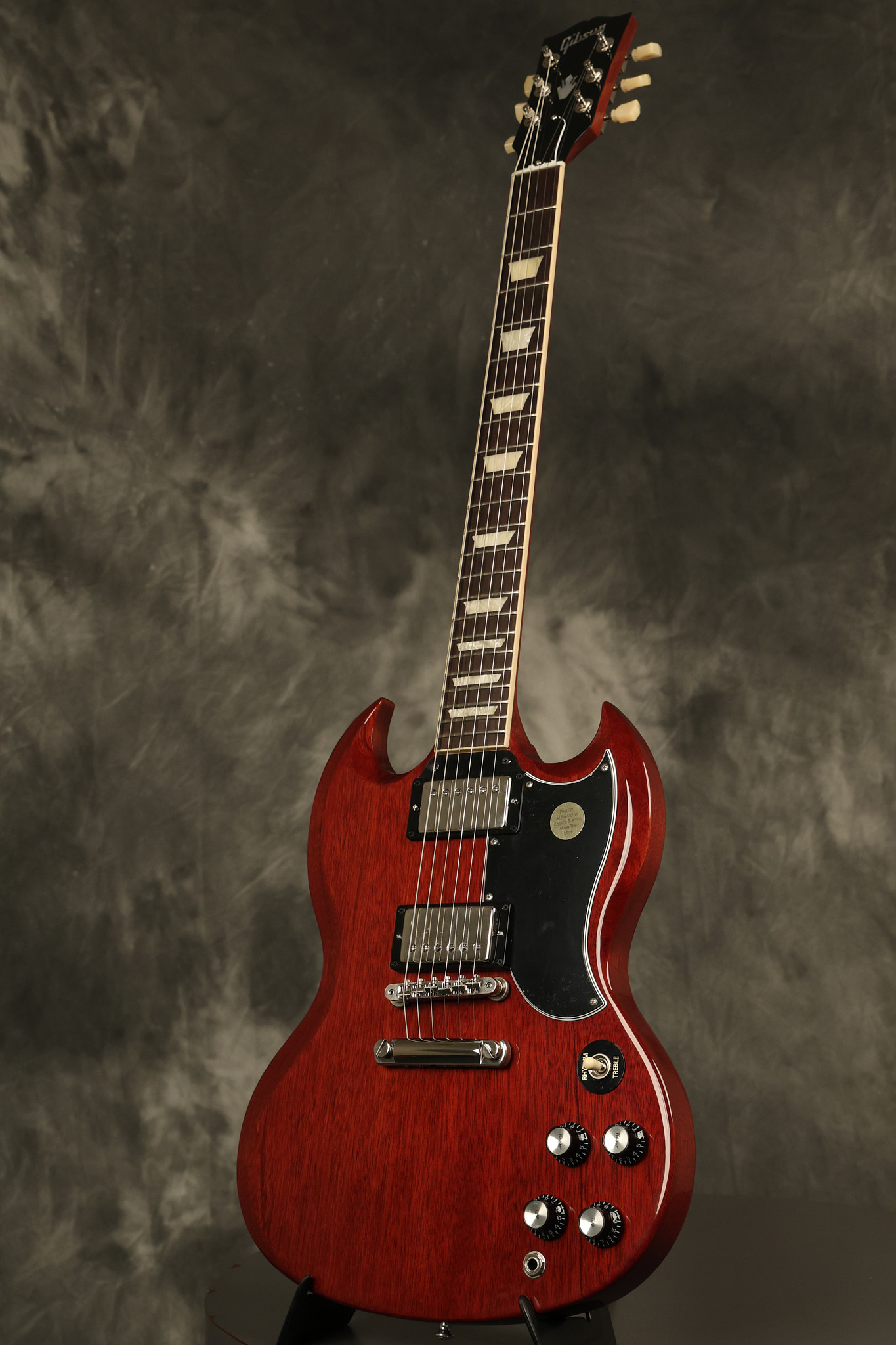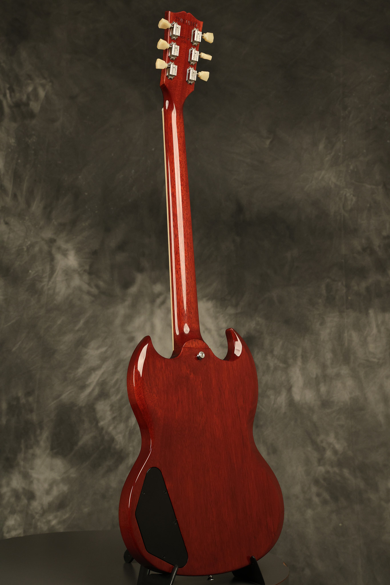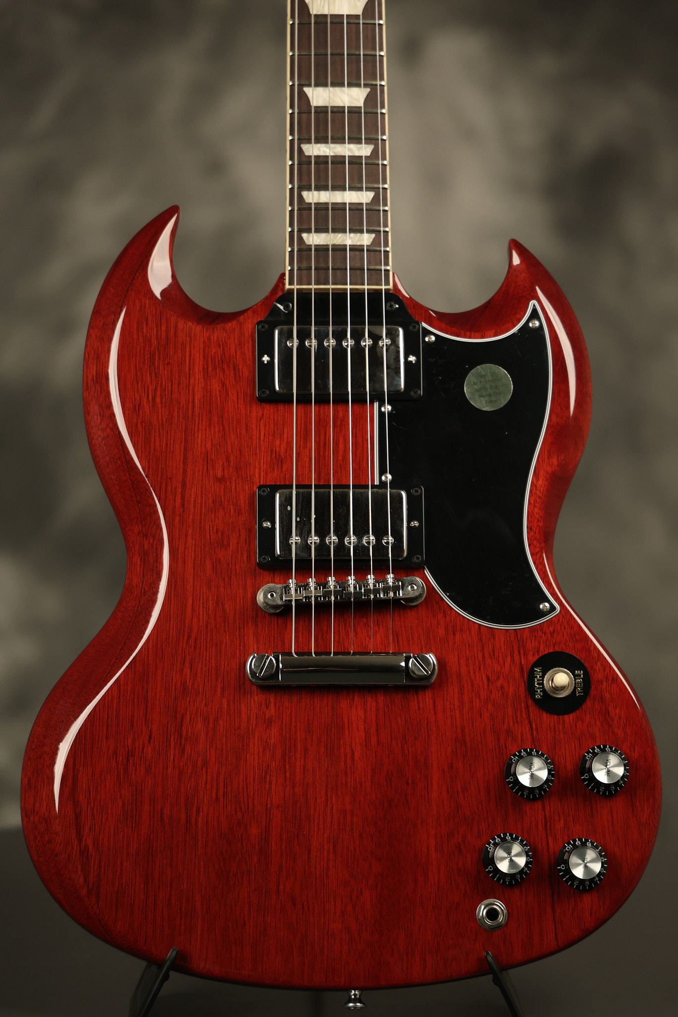 2021 Gibson SG Standard '61 reissue in Cherry. It has a great playing neck with great frets. It's all original and 100% complete along with its original hardshell case. It's in EXCELLENT condition with some tiny barely noticeable blemishes in the finish and some other minor surface wear. The protective plastic is still on the pickguard. Everything remains structurally sound with no cracks, breaks or repairs. All electronics work and sound great.