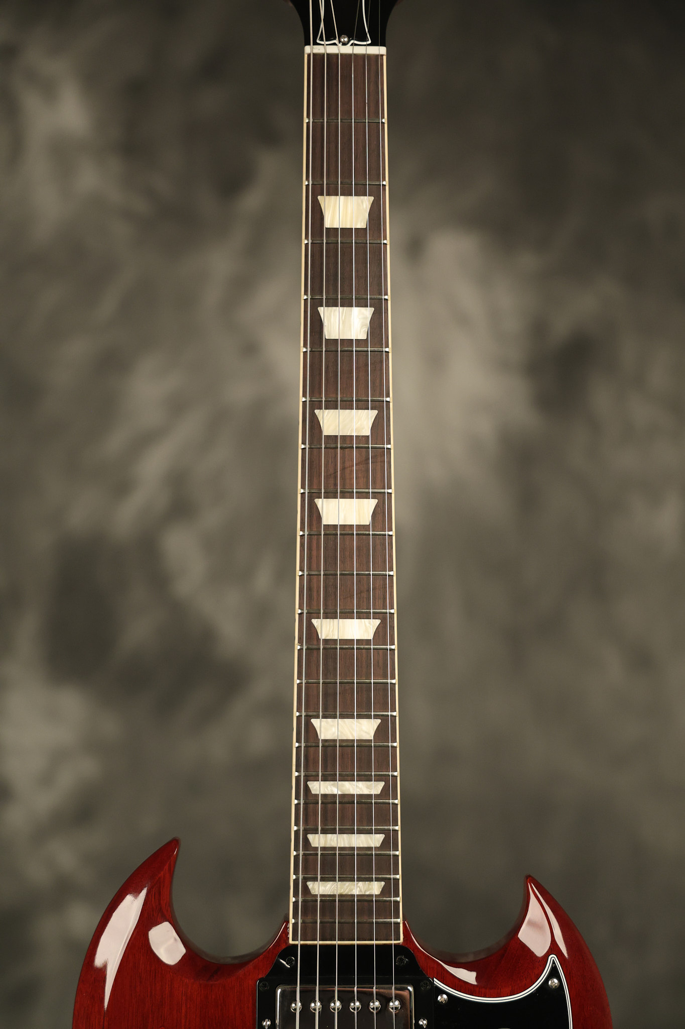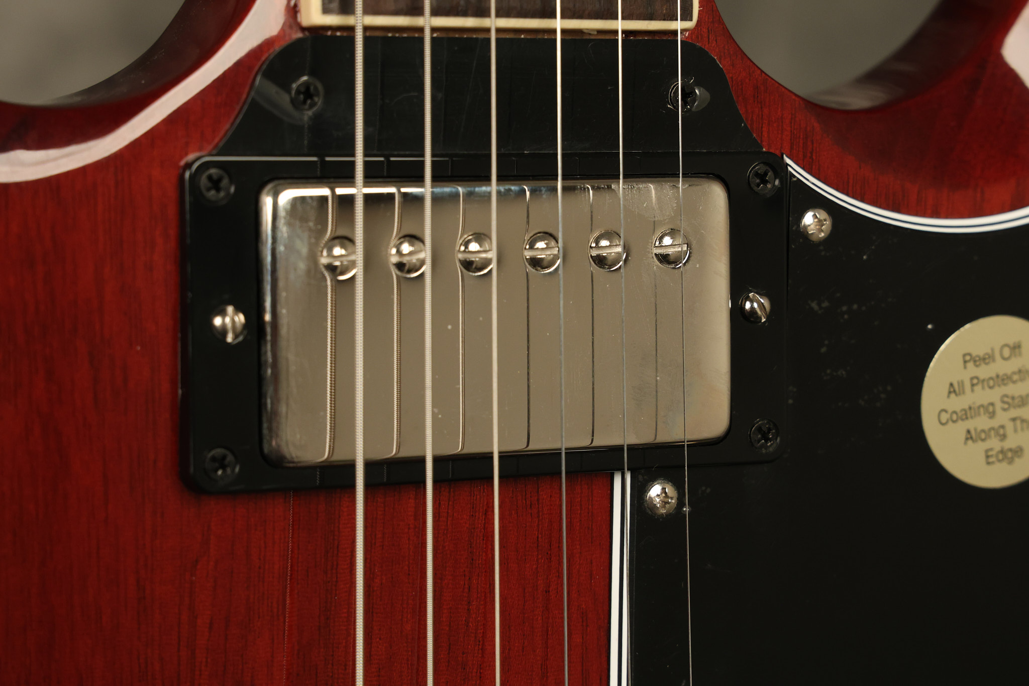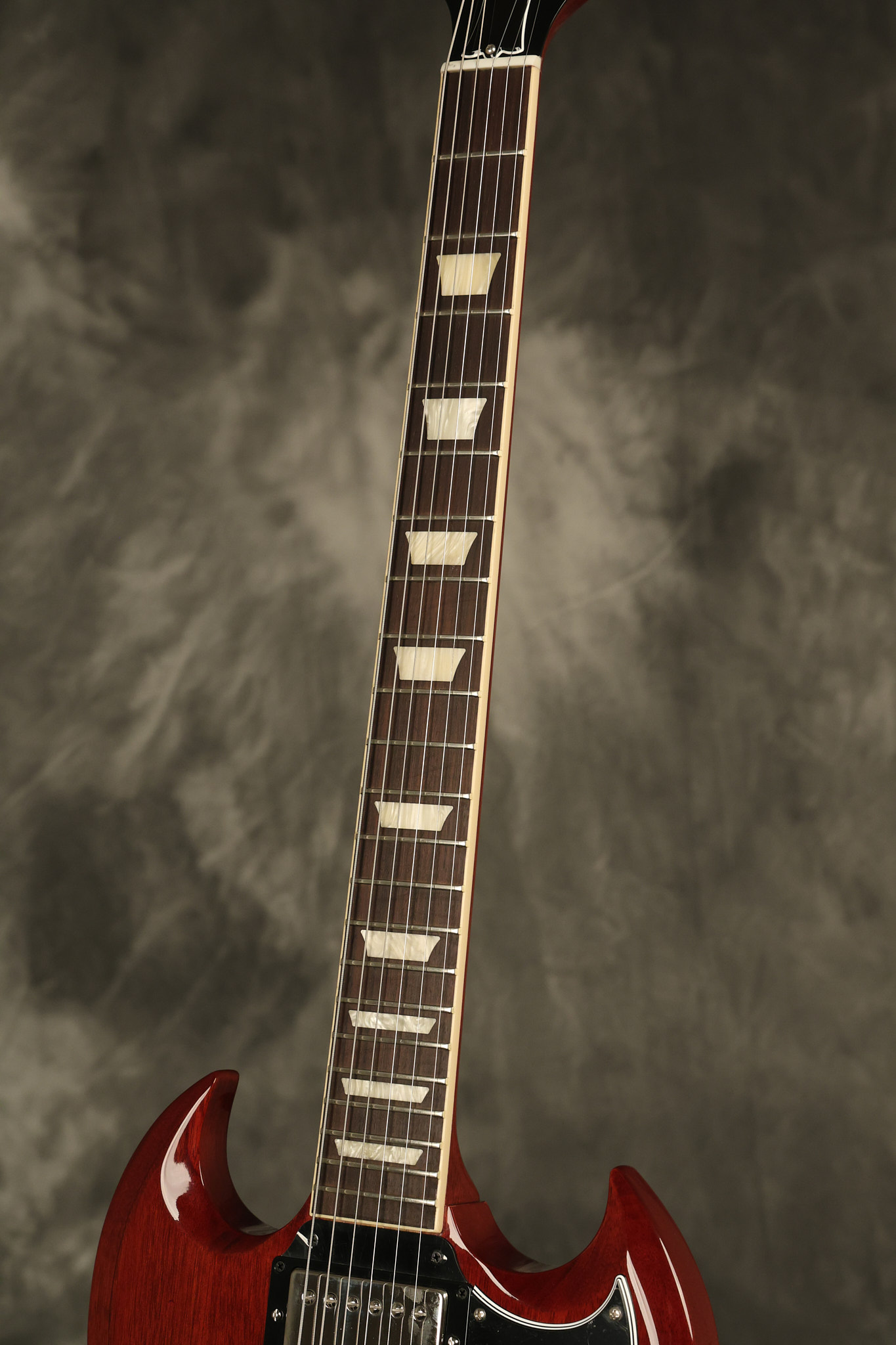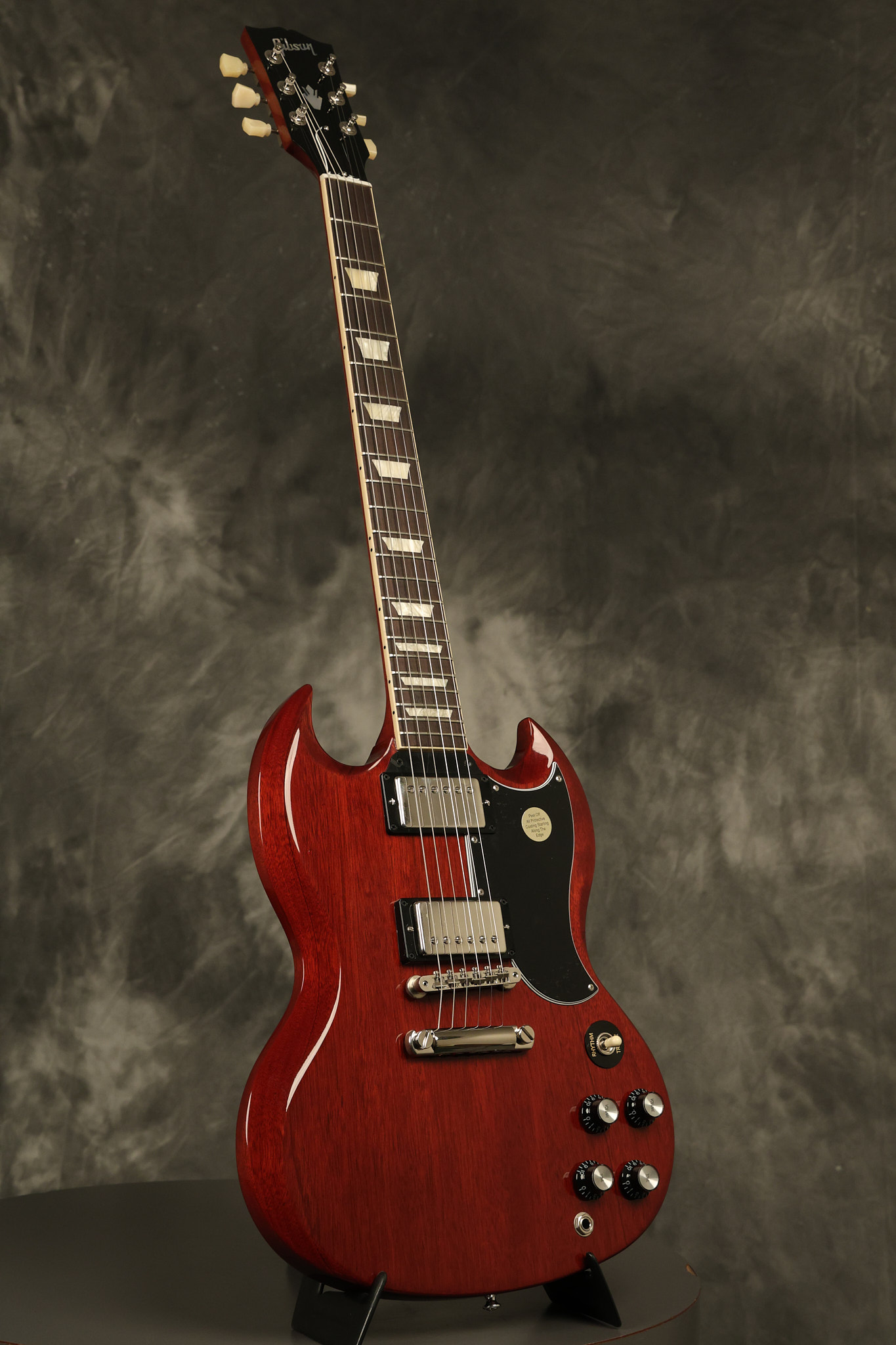 2021 Gibson SG Standard '61 reissue in Cherry. It has a great playing neck with great frets. It's all original and 100% complete along with its original hardshell case. It's in EXCELLENT condition with some tiny barely noticeable blemishes in the finish and some other minor surface wear. The protective plastic is still on the pickguard. Everything remains structurally sound with no cracks, breaks or repairs. All electronics work and sound great.