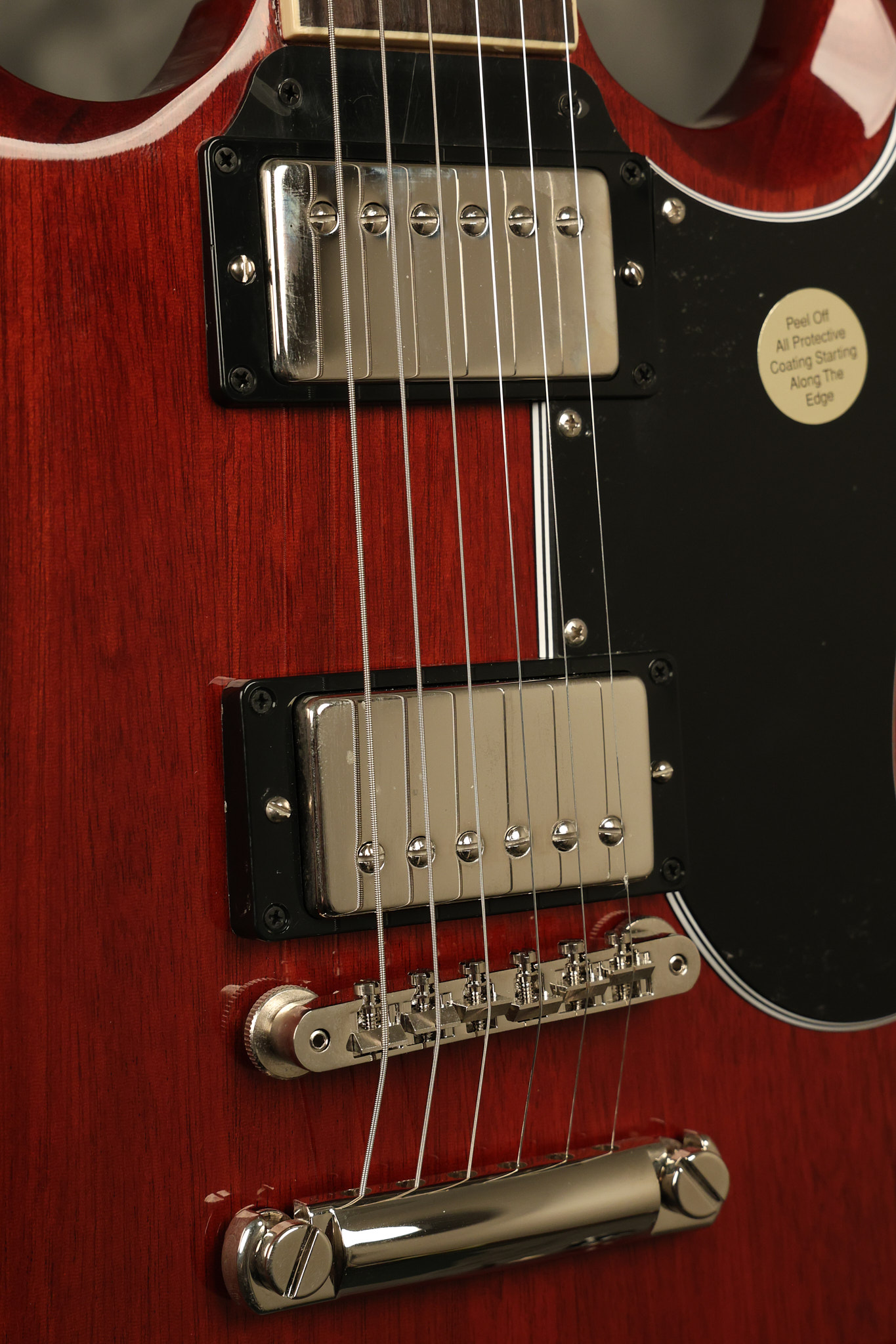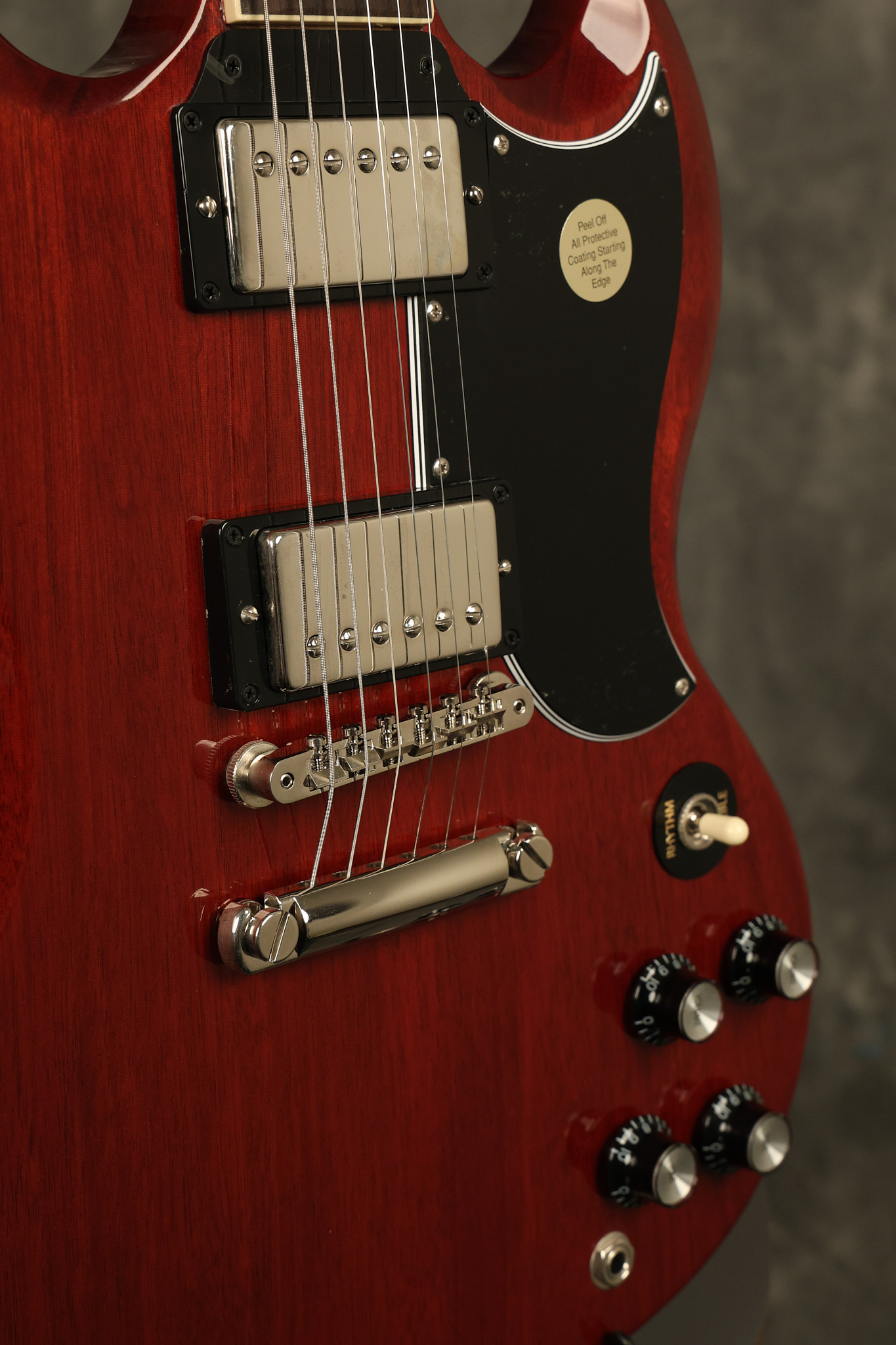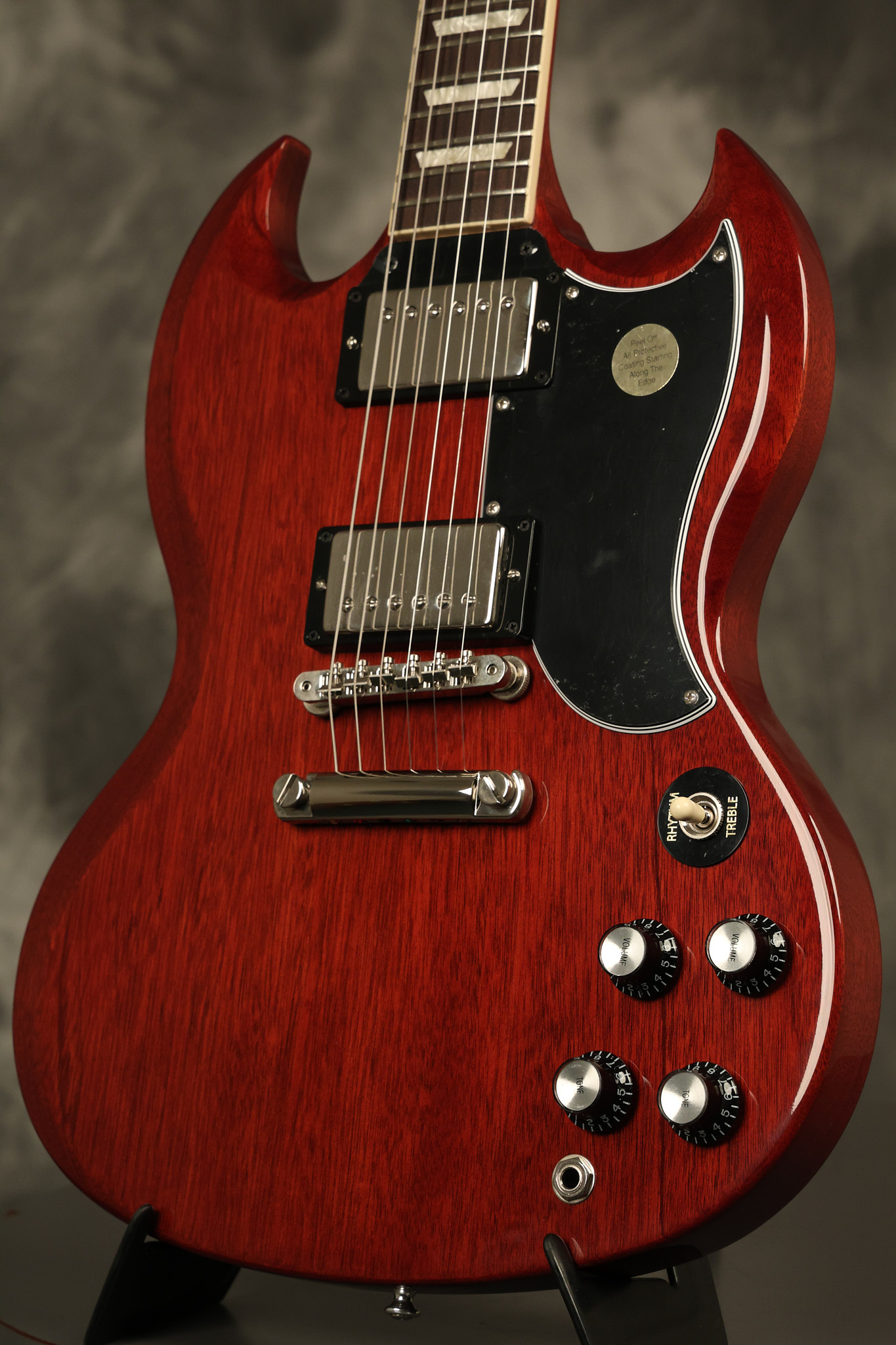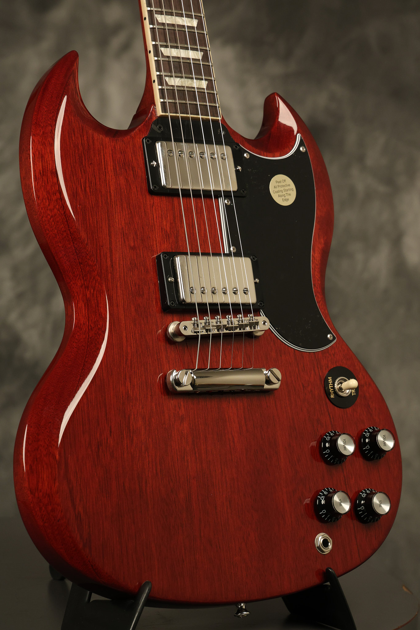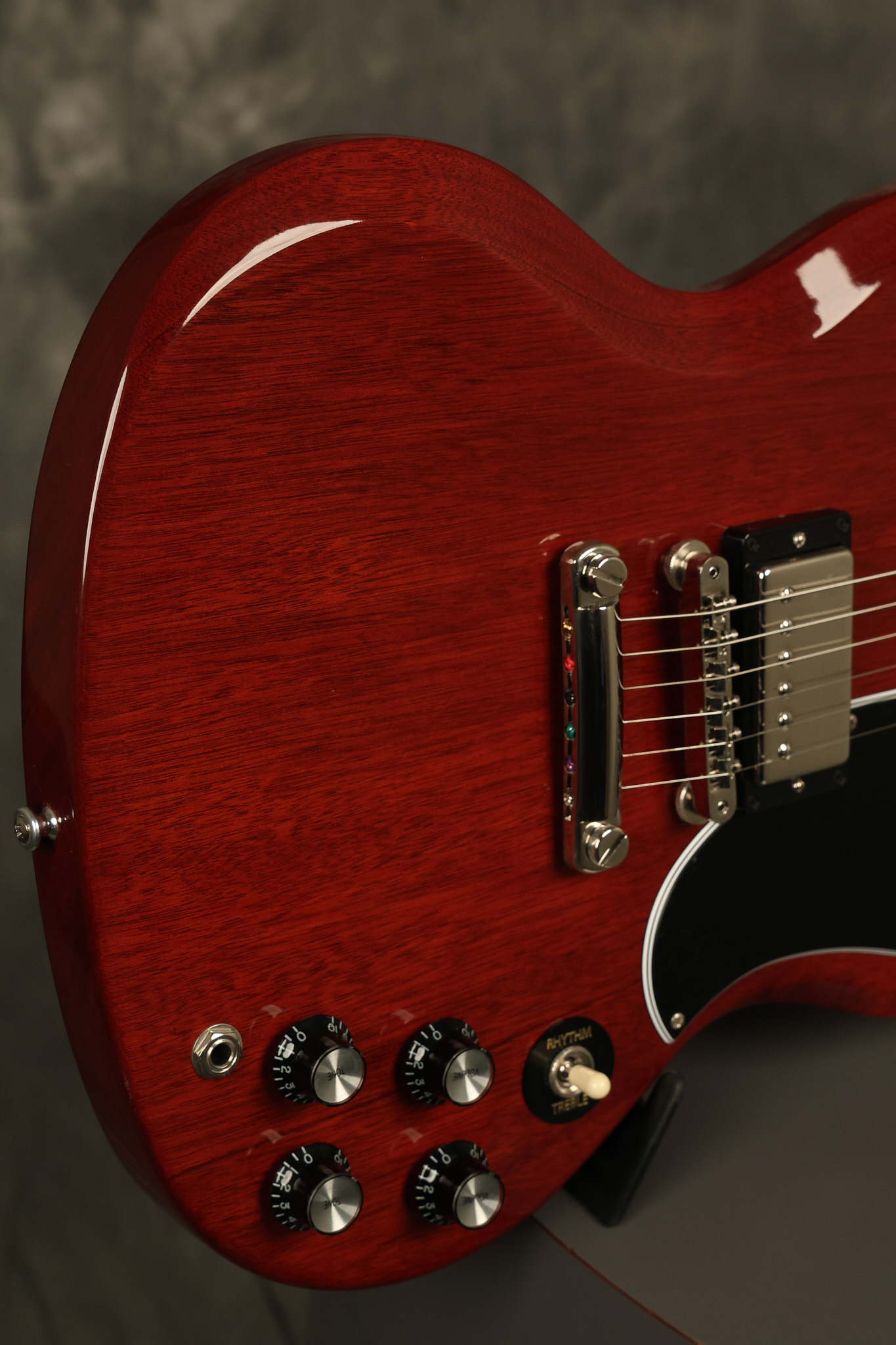 2021 Gibson SG Standard '61 reissue in Cherry. It has a great playing neck with great frets. It's all original and 100% complete along with its original hardshell case. It's in EXCELLENT condition with some tiny barely noticeable blemishes in the finish and some other minor surface wear. The protective plastic is still on the pickguard. Everything remains structurally sound with no cracks, breaks or repairs. All electronics work and sound great.