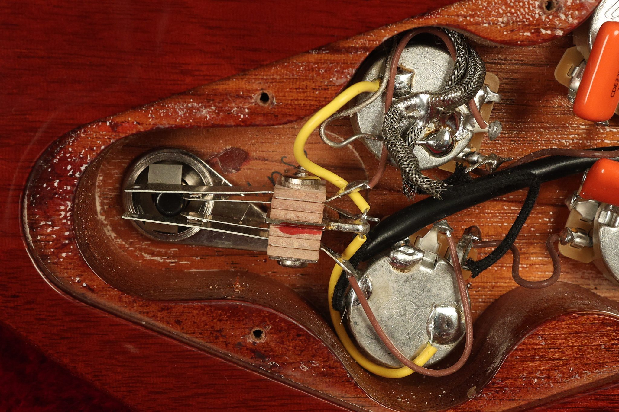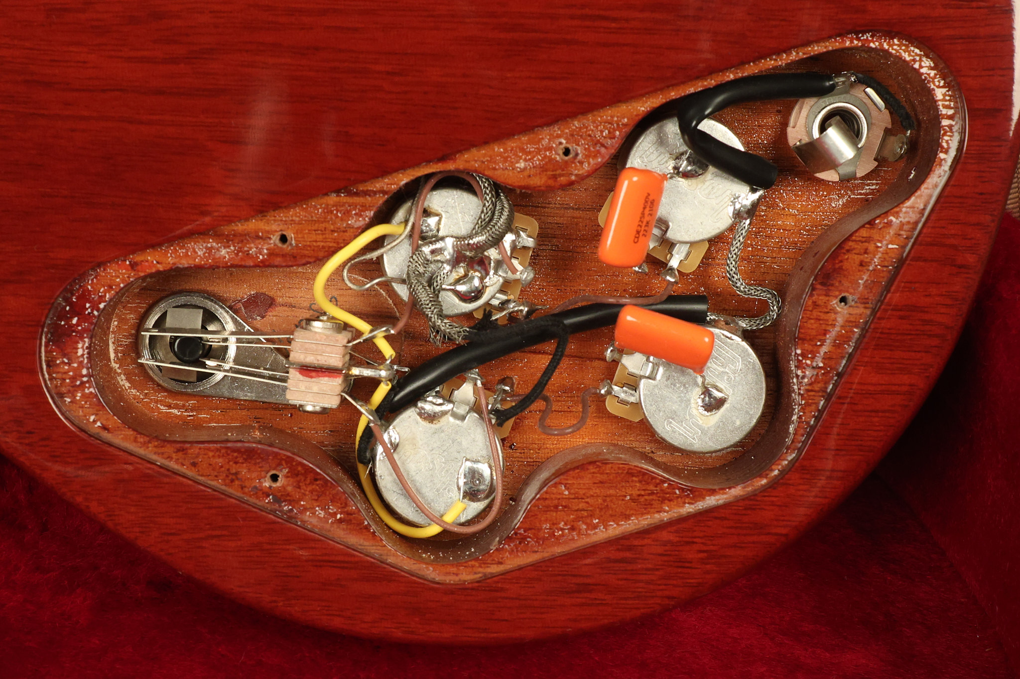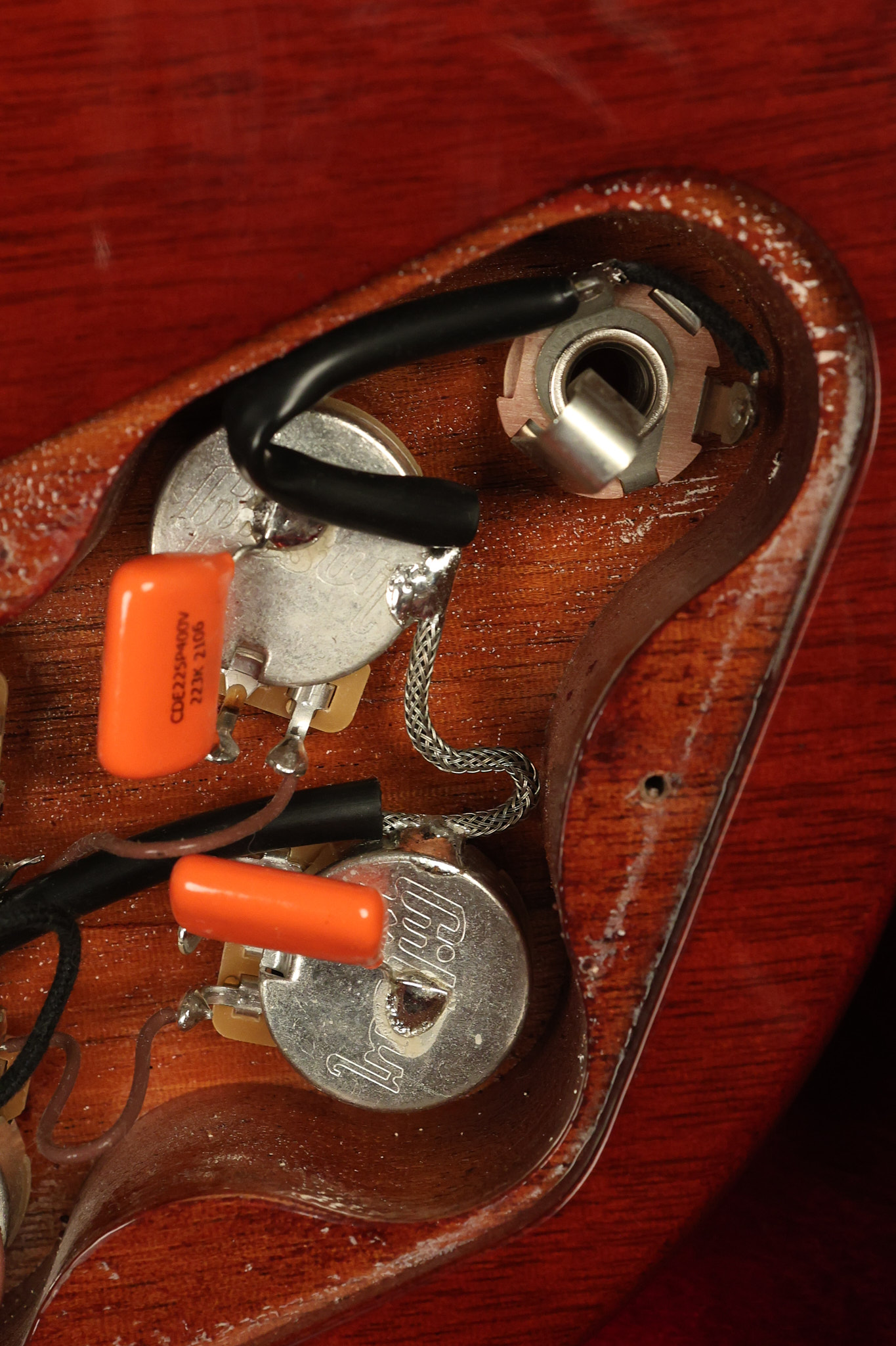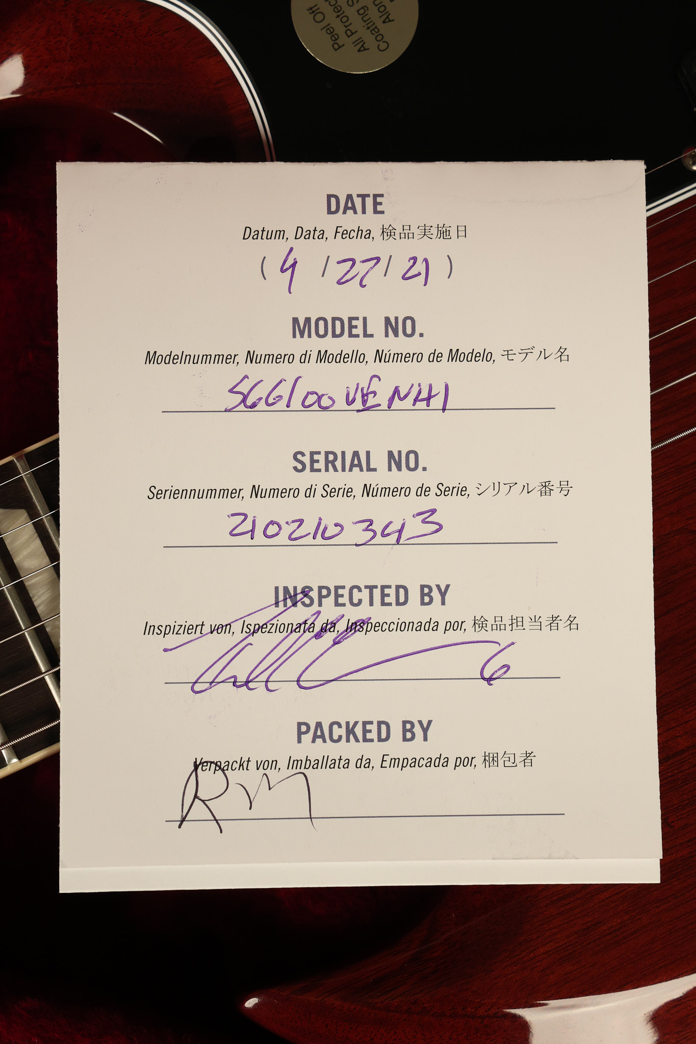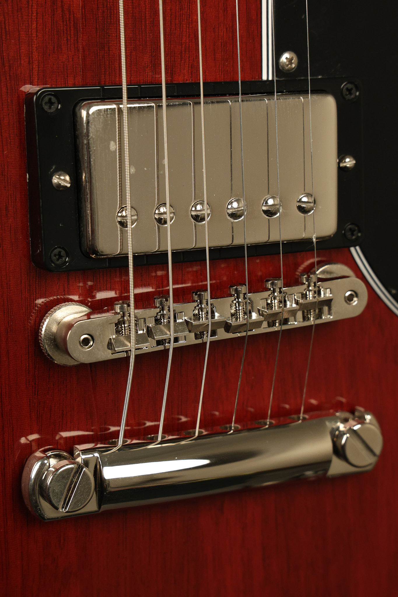 2021 Gibson SG Standard '61 reissue in Cherry. It has a great playing neck with great frets. It's all original and 100% complete along with its original hardshell case. It's in EXCELLENT condition with some tiny barely noticeable blemishes in the finish and some other minor surface wear. The protective plastic is still on the pickguard. Everything remains structurally sound with no cracks, breaks or repairs. All electronics work and sound great.