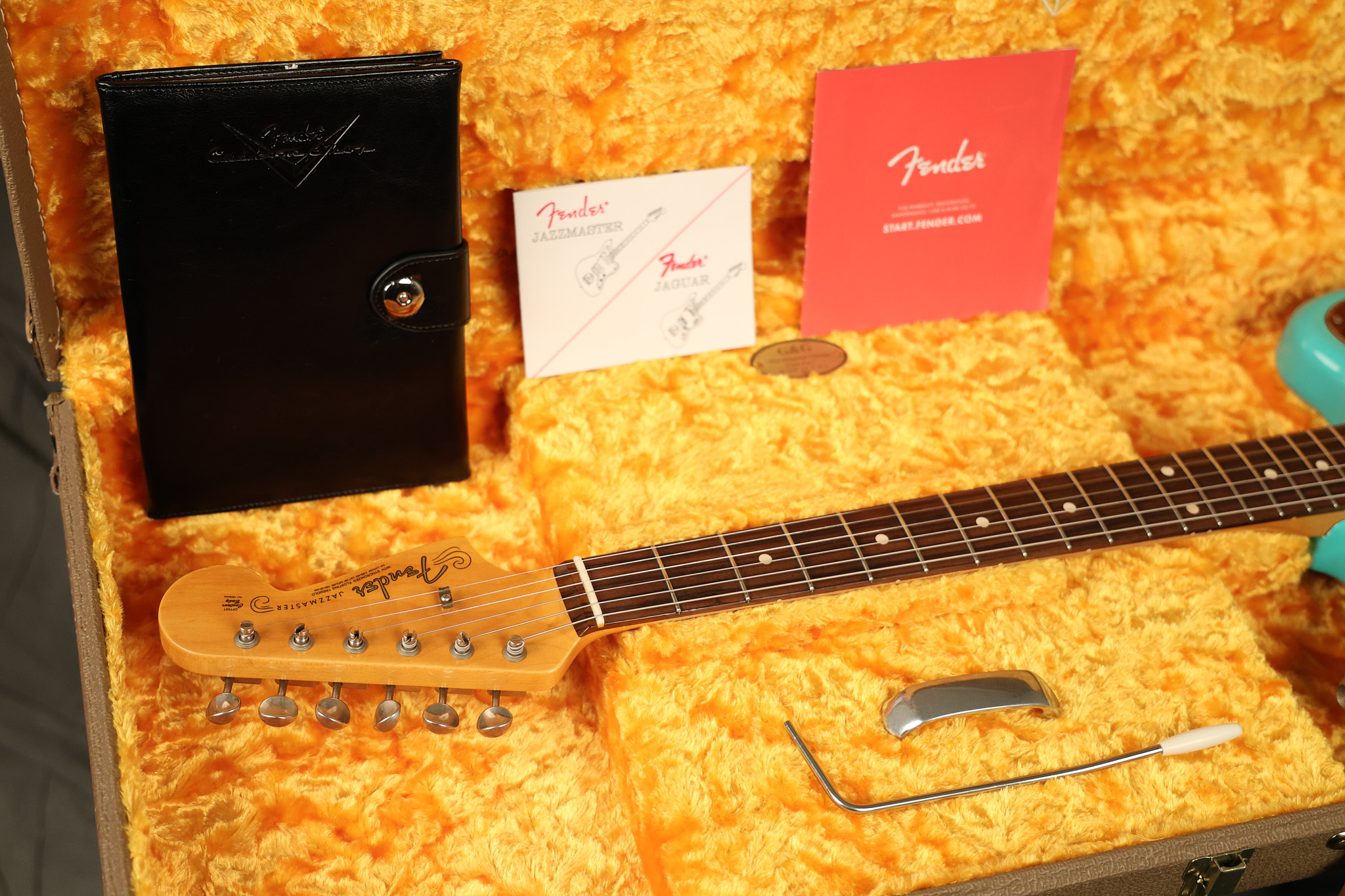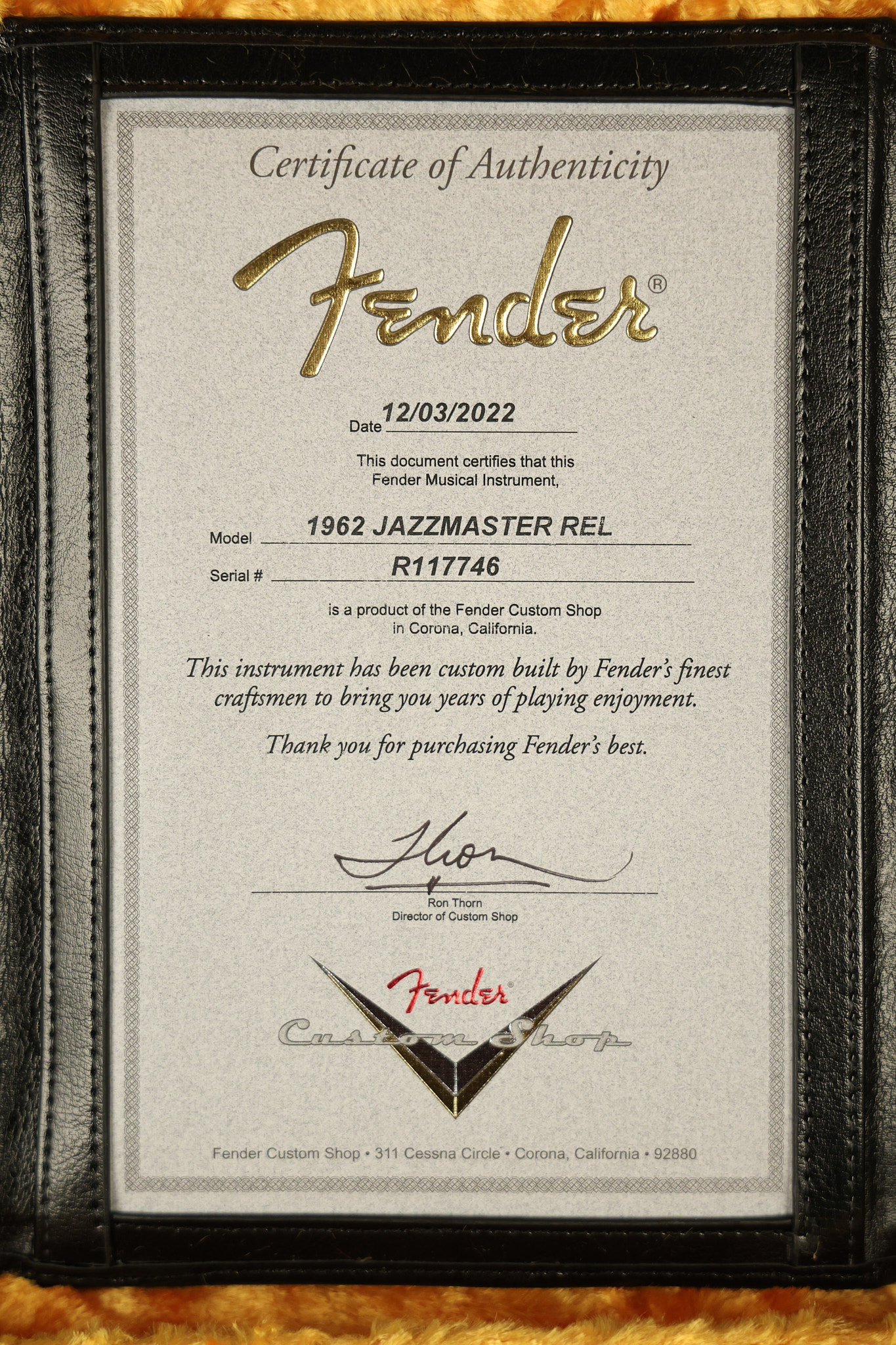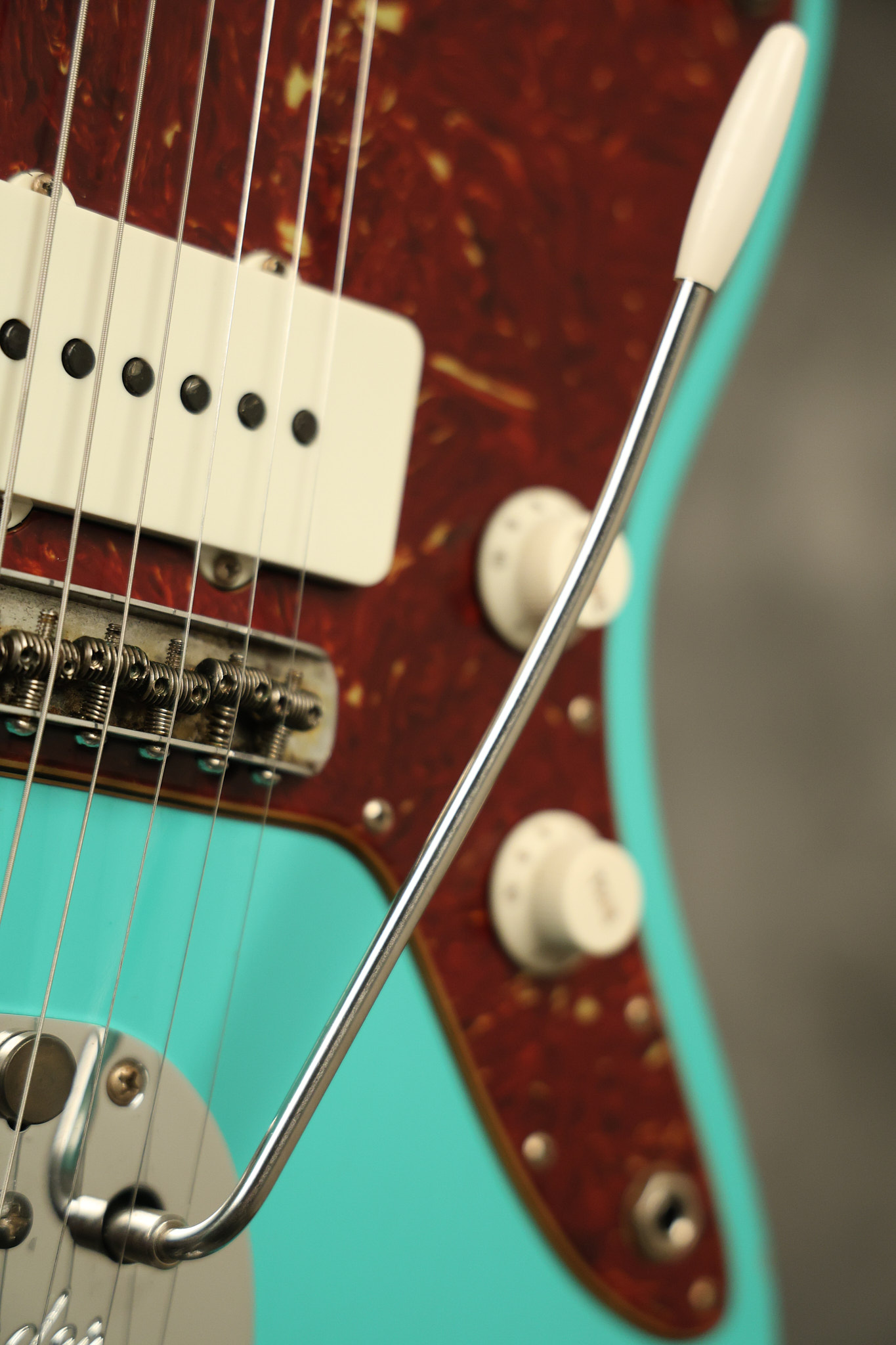 2022 Fender Custom Shop 1962 reissue Jazzmaster Relic in Seafoam Green. It's all original and 100% complete along with its original hardshell case, papers, tremolo arm, bridge cover and certificate of authenticity. This Relic looks great and is in EXCELLENT condition. Everything remains structurally sound with no cracks, breaks or repairs. All electronics work and sound great.