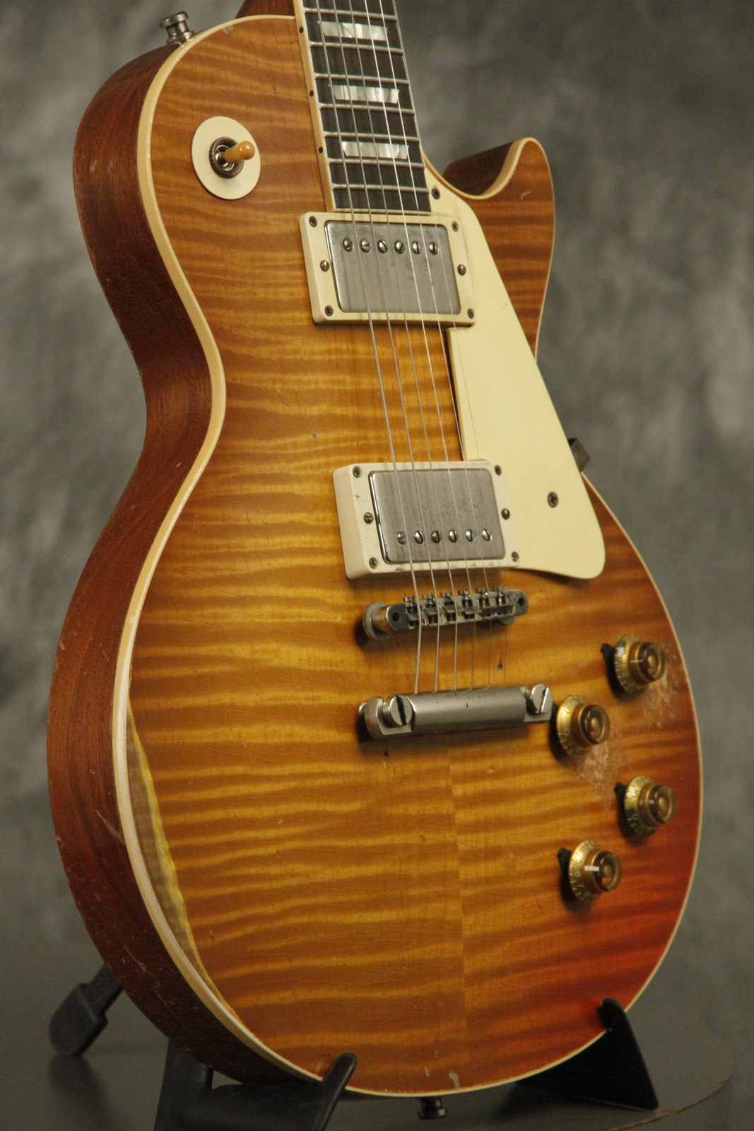 2022 Gibson Custom Shop Murphy Lab Ultra Heavy Aged replica of the "Gemini" 1959 Les Paul seen on page 116 + 117 in the Beauty of the Burst book. This is Prototype #1 with its certificate of authenticity. The top is HIGHLY figured maple and the fretboard is Brazilian Rosewood. The original hardshell case is also included. The weight is 9 lbs. 1 oz.