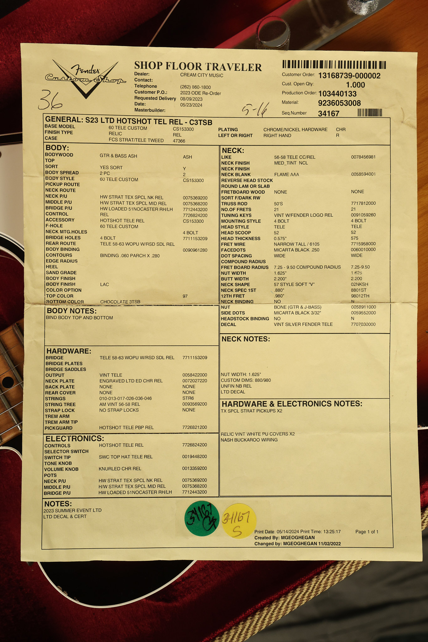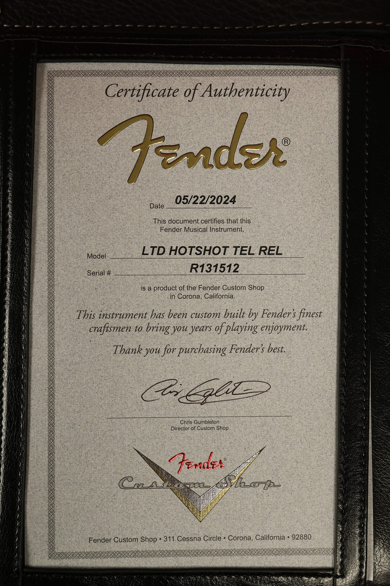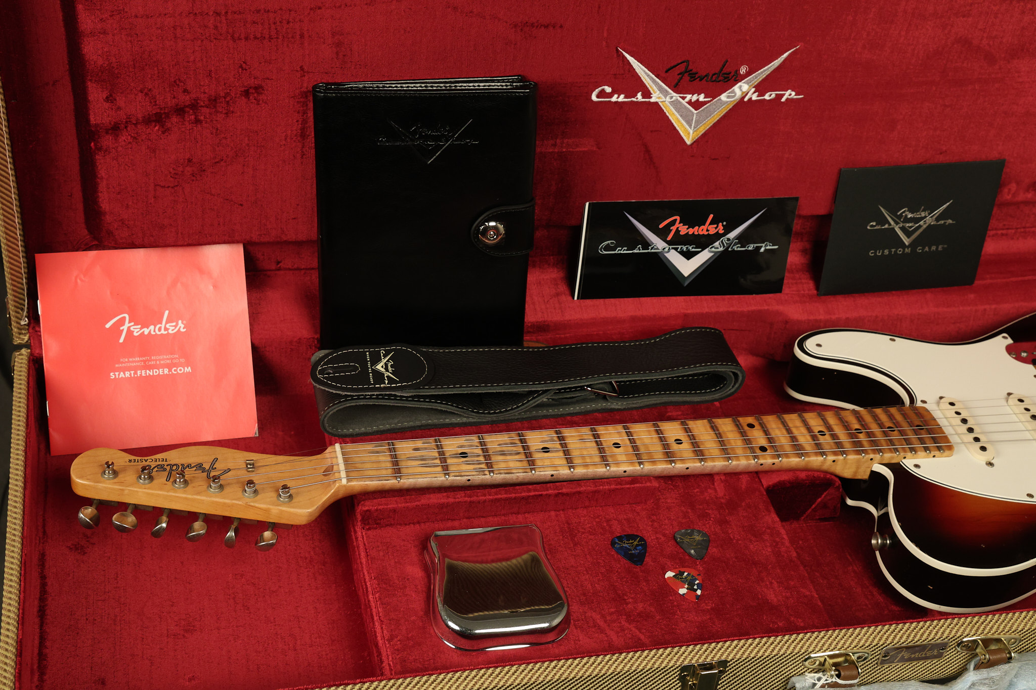 2024 Fender Custom Shop Limited Hotshot Telecaster Relic in Chocolate 3-Tone Sunburst. It has a great playing highly figured flame maple neck with great frets. It's all original and 100% complete along with its original hardshell case and the things that were included when it was sold new. The original certificate of authenticity had a misprinted serial number, so Fender provided the correct certificate. This Relic is in EXCELLENT condition. All electronics work and sound great.