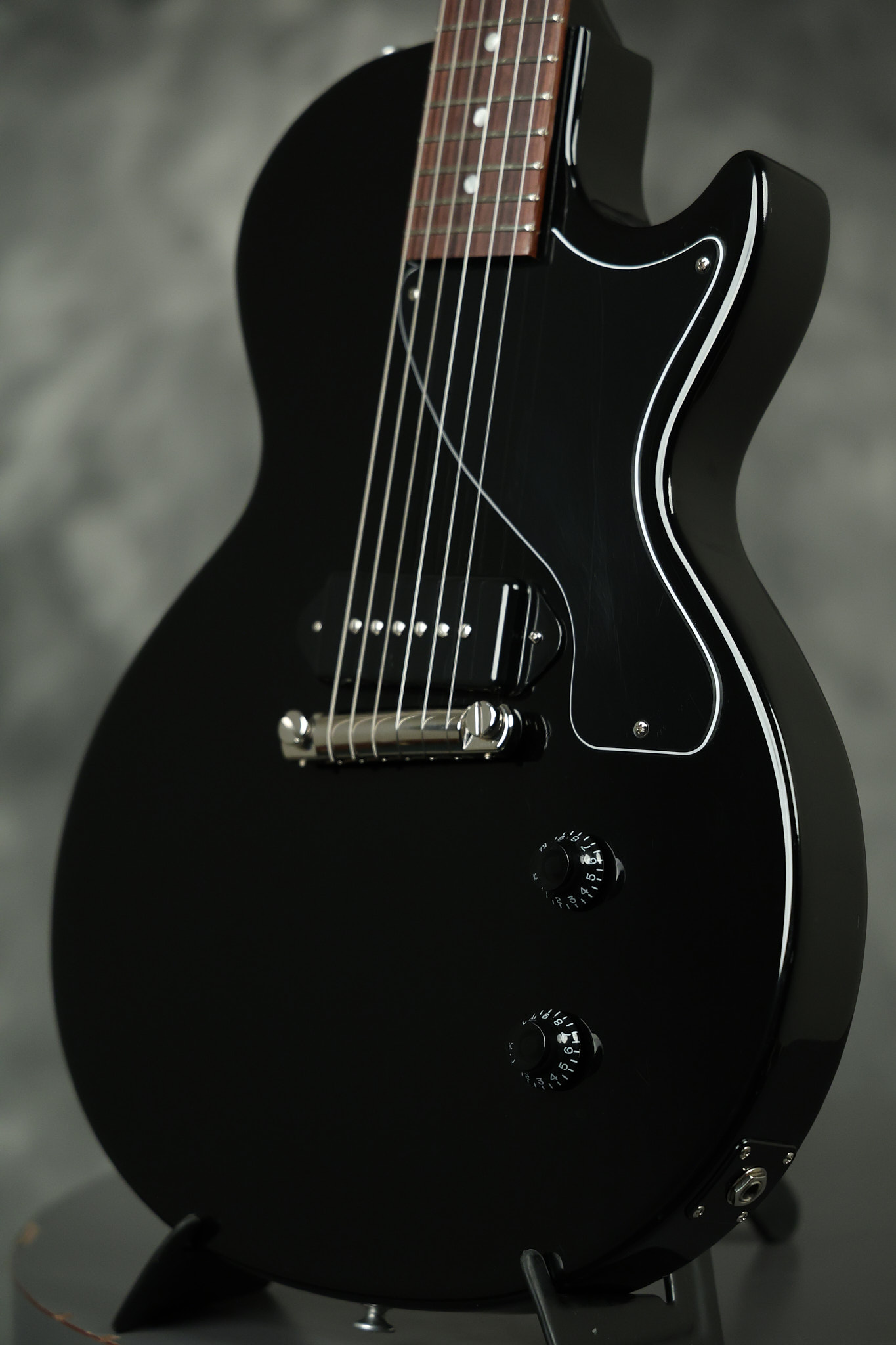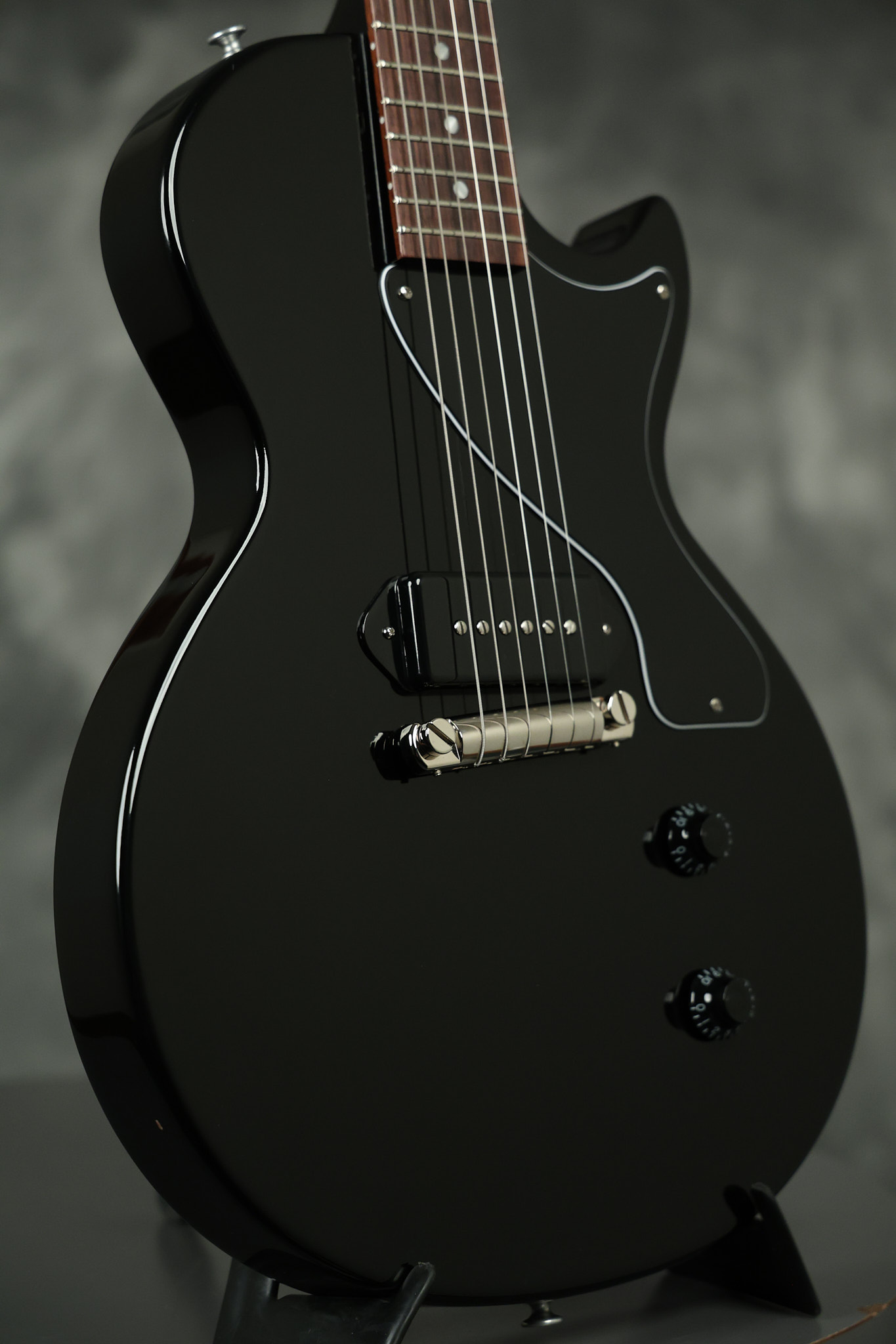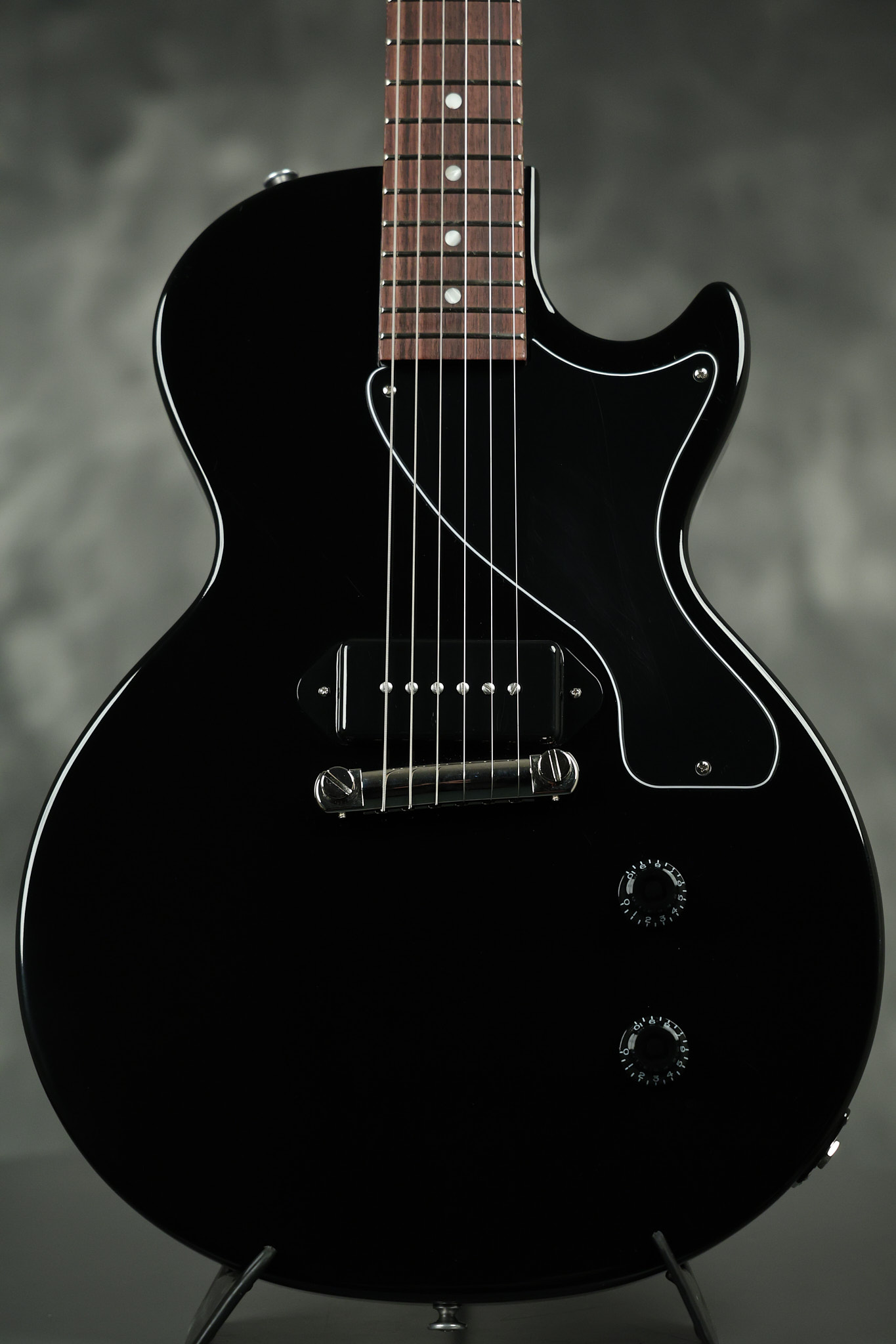 2024 Gibson Les Paul Junior in Ebony. It has a great playing neck with great frets. It's all original and 100% complete along with its original hardshell case, case keys, Gibson multi-tool and original paperwork. It's in EXCELLENT condition with only minor surface wear. Everything remains structurally sound with no cracks, breaks or repairs. All electronics work and sound great.